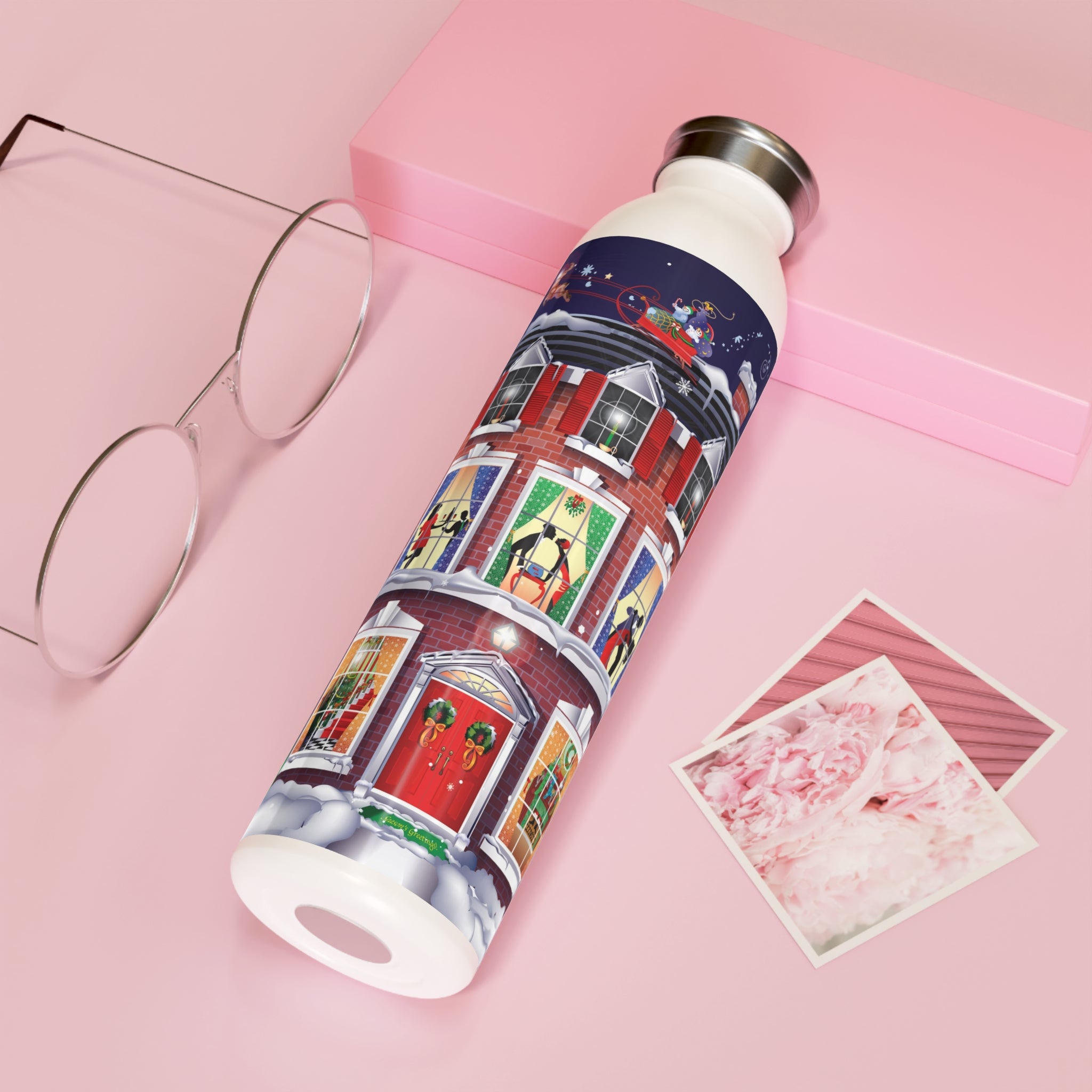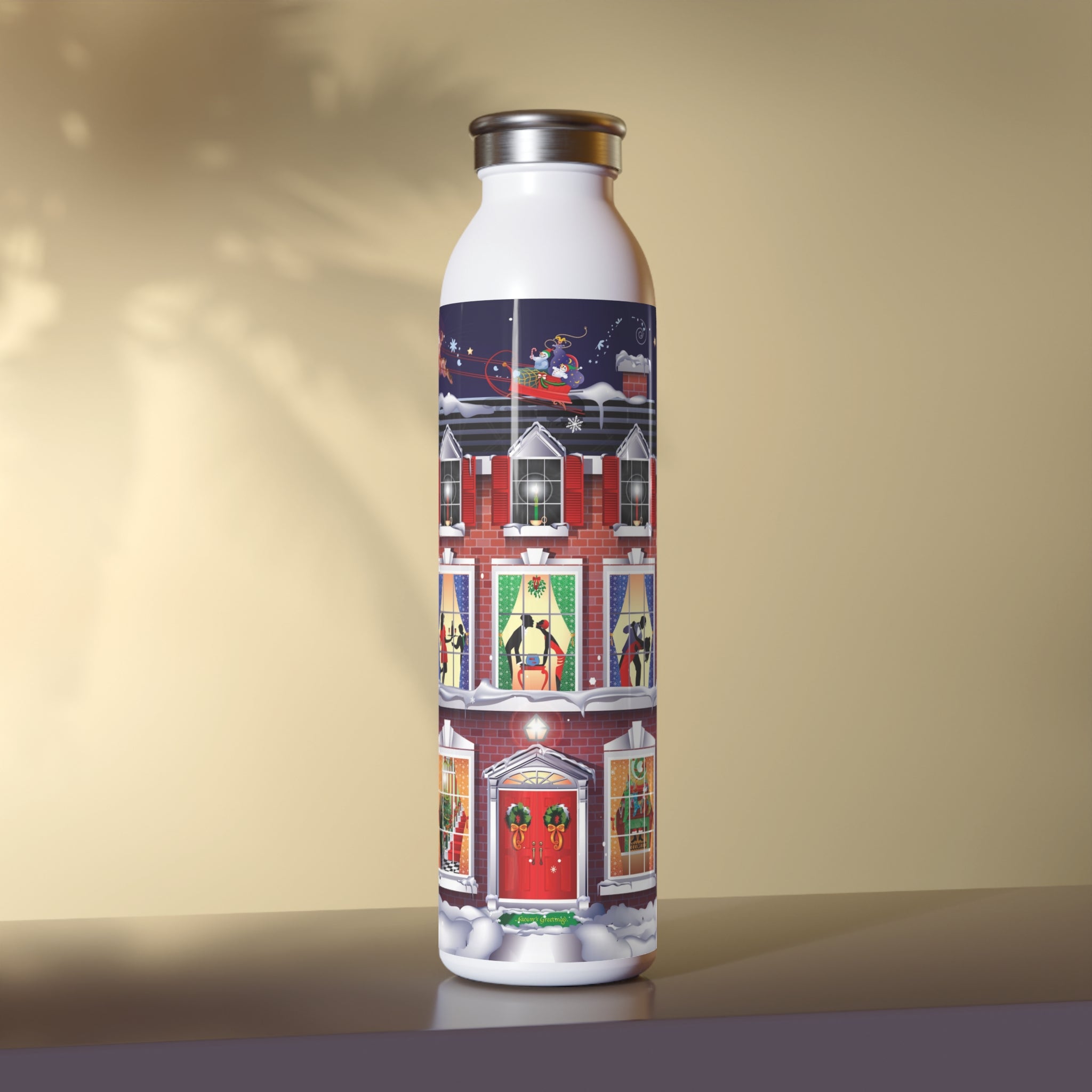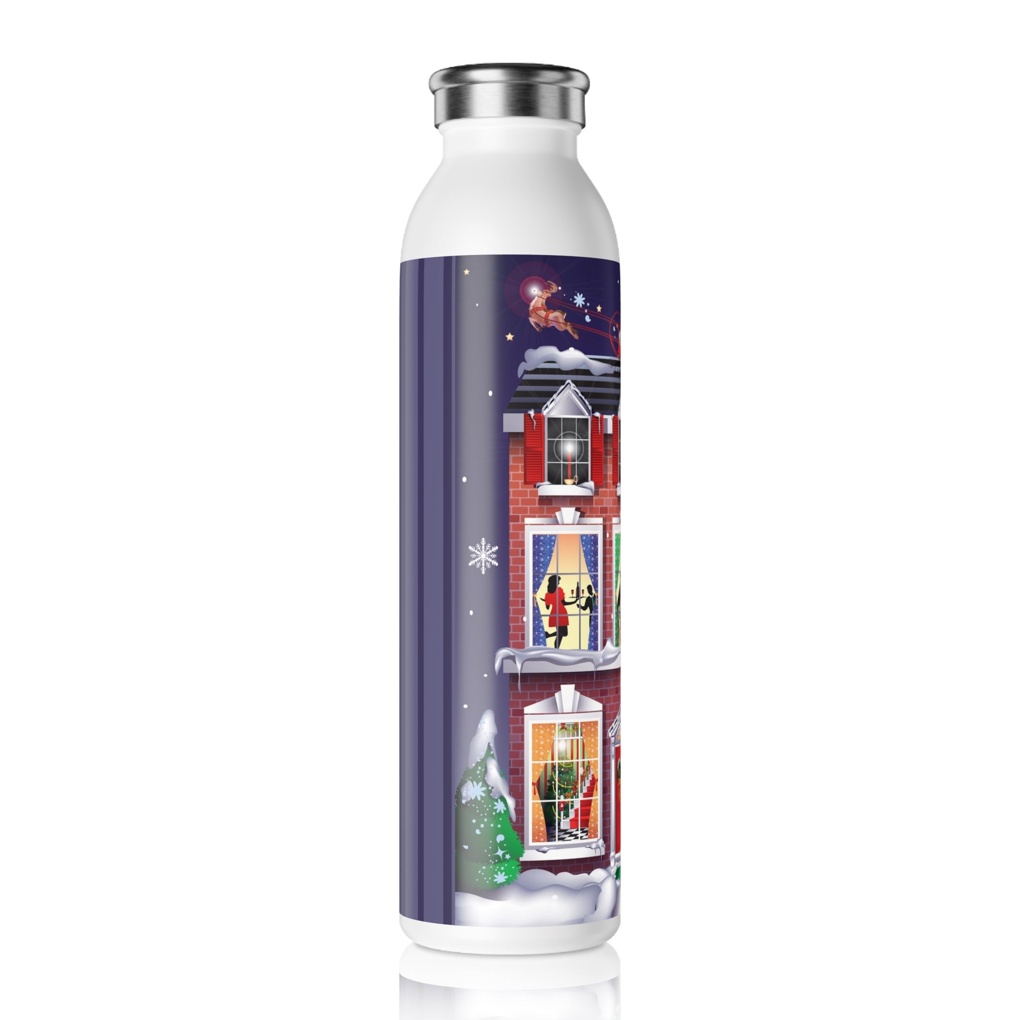 This 20oz slim water bottle is more than just functional — it carries the spirit of Christmas Eve in every detail. The double-wall stainless steel frame and vacuum insulation keep hot cocoa warm as you admire Santa’s sleigh soaring across the starry sky, or chilled drinks cool while you picture families gathered inside the glowing townhouse that wraps the bottle’s design.