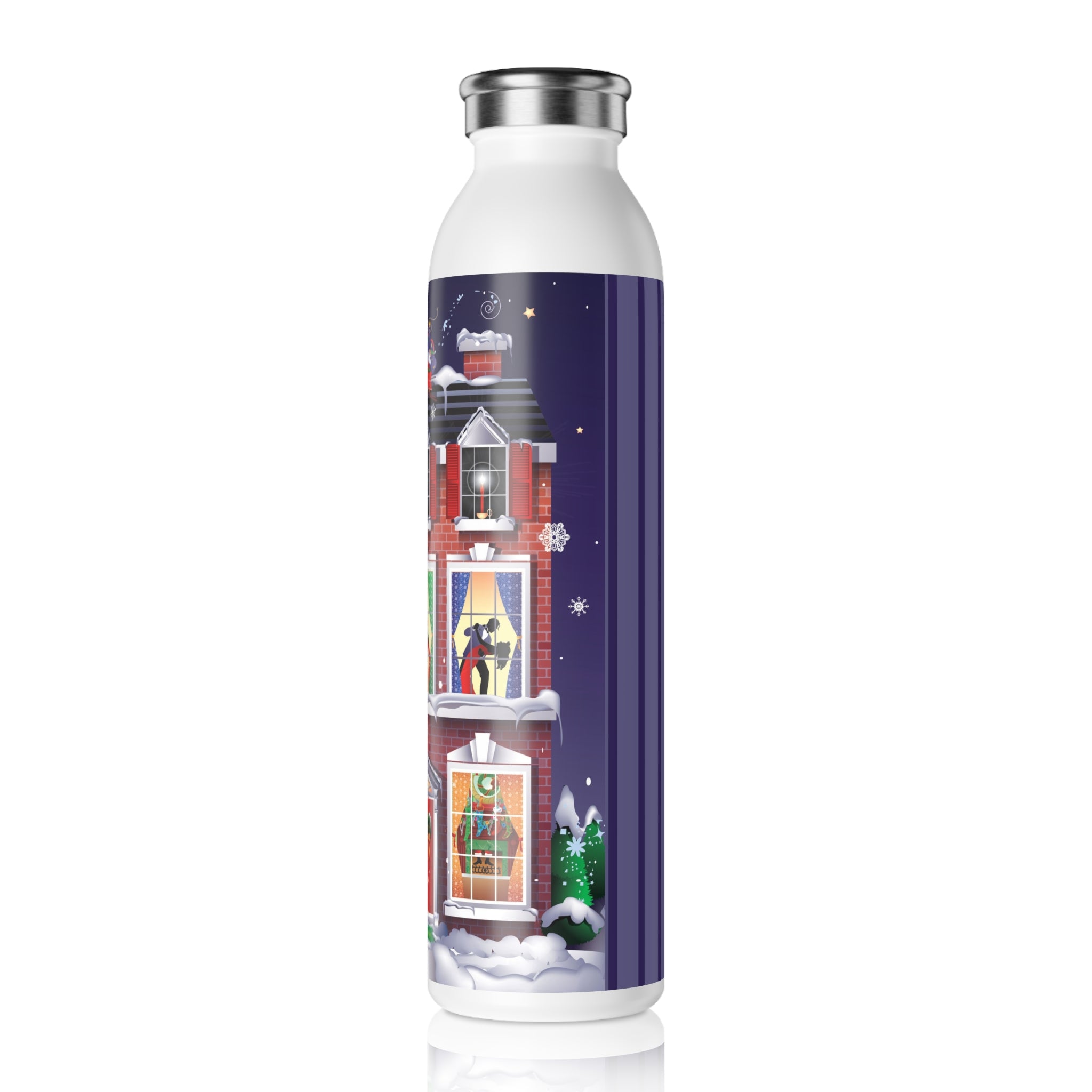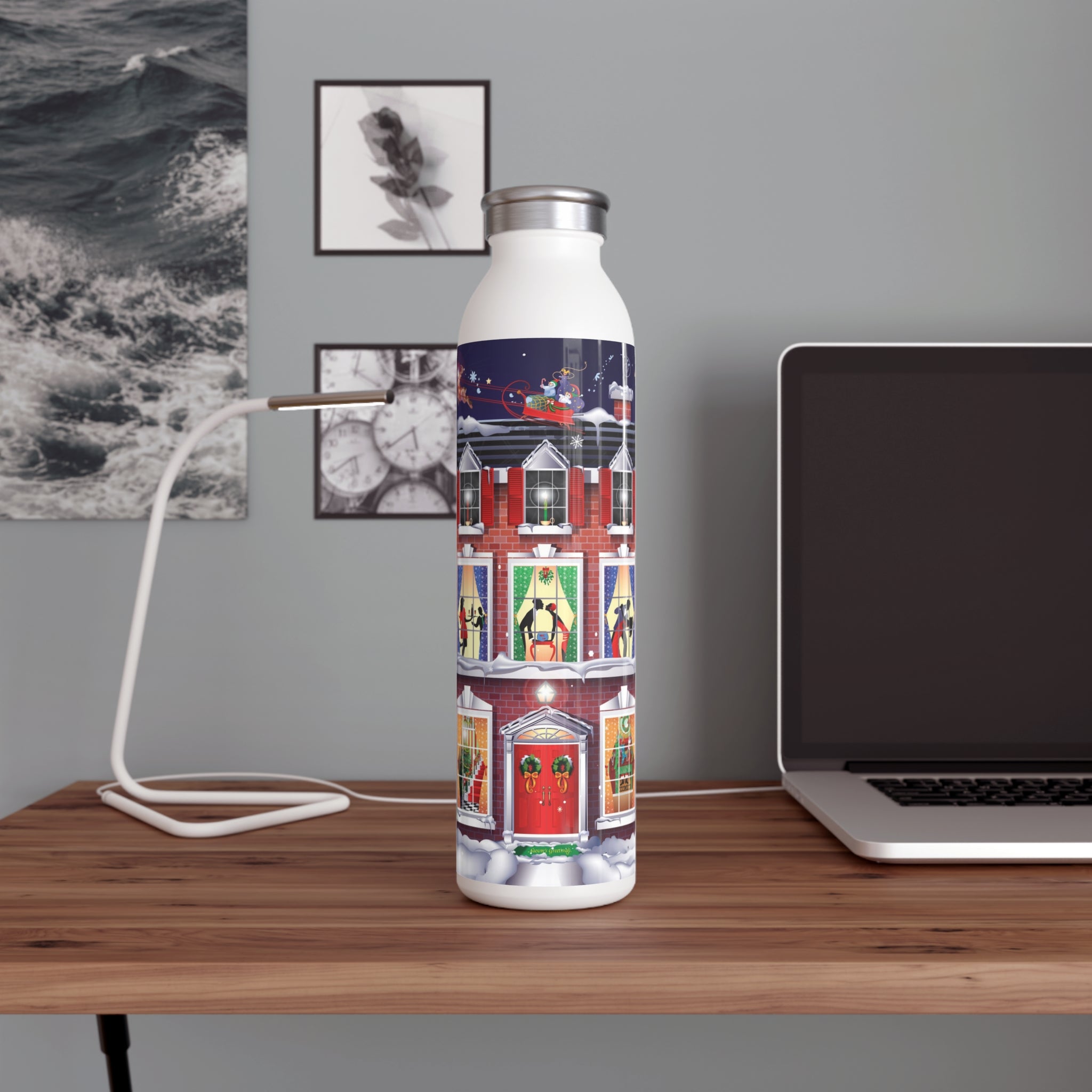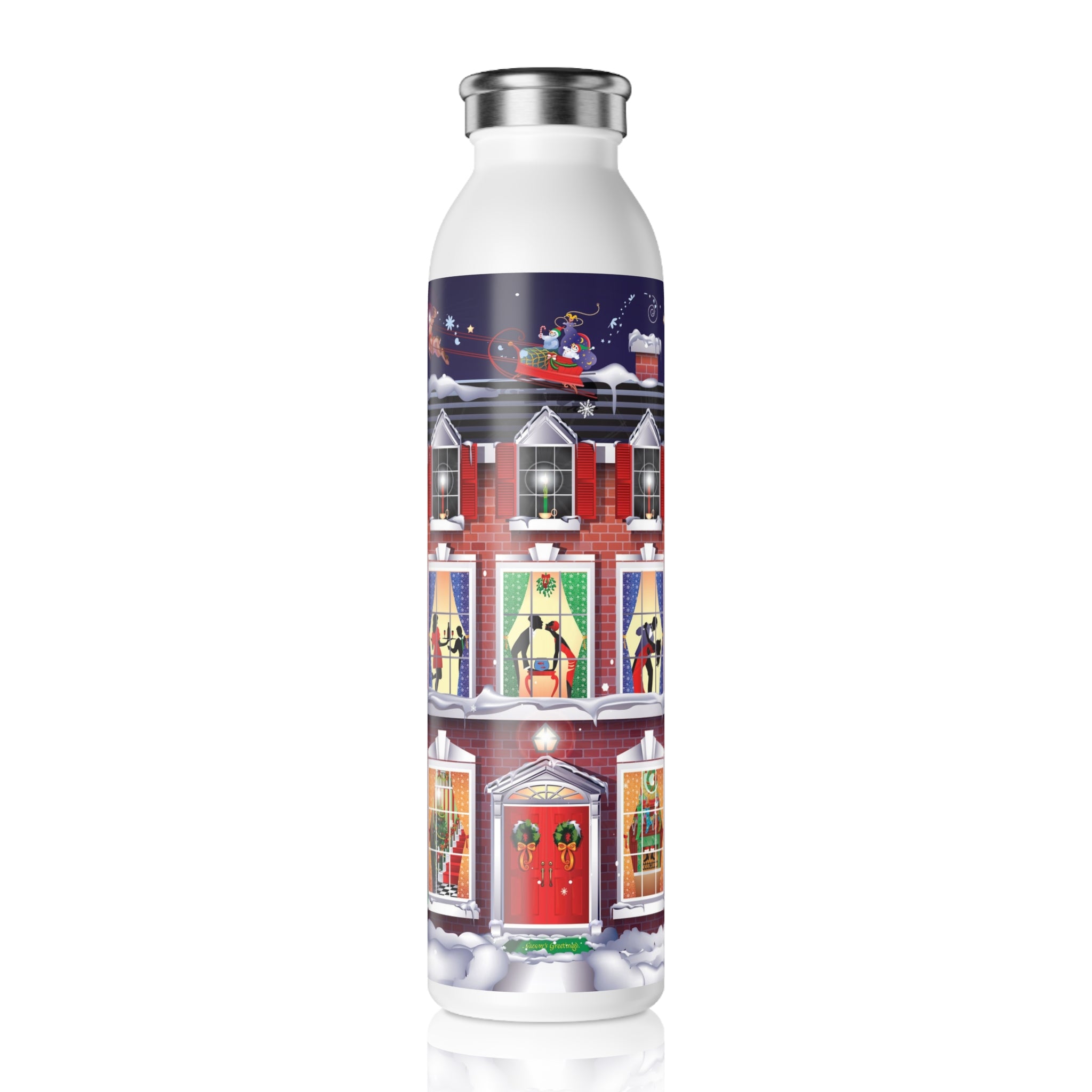 This 20oz slim water bottle is more than just functional — it carries the spirit of Christmas Eve in every detail. The double-wall stainless steel frame and vacuum insulation keep hot cocoa warm as you admire Santa’s sleigh soaring across the starry sky, or chilled drinks cool while you picture families gathered inside the glowing townhouse that wraps the bottle’s design.