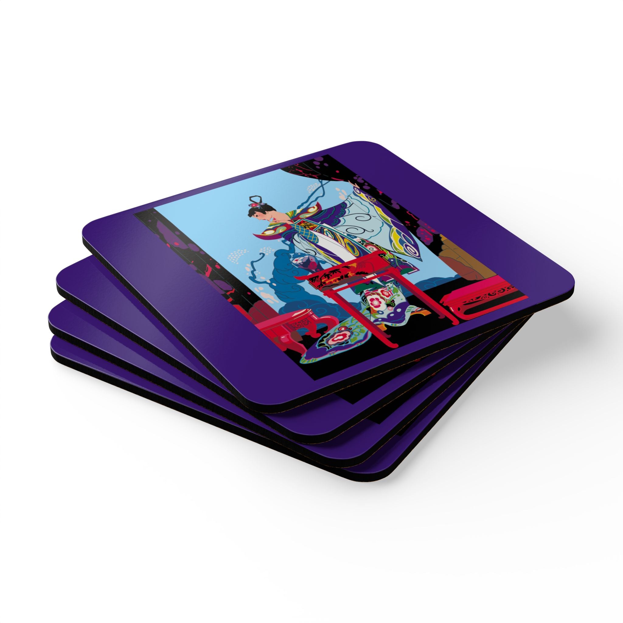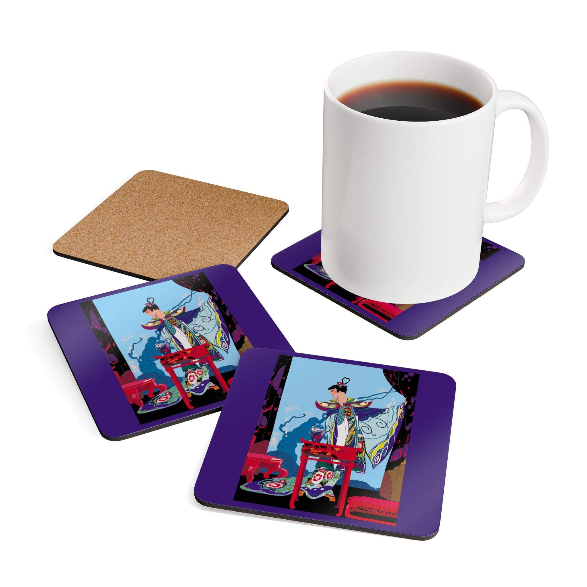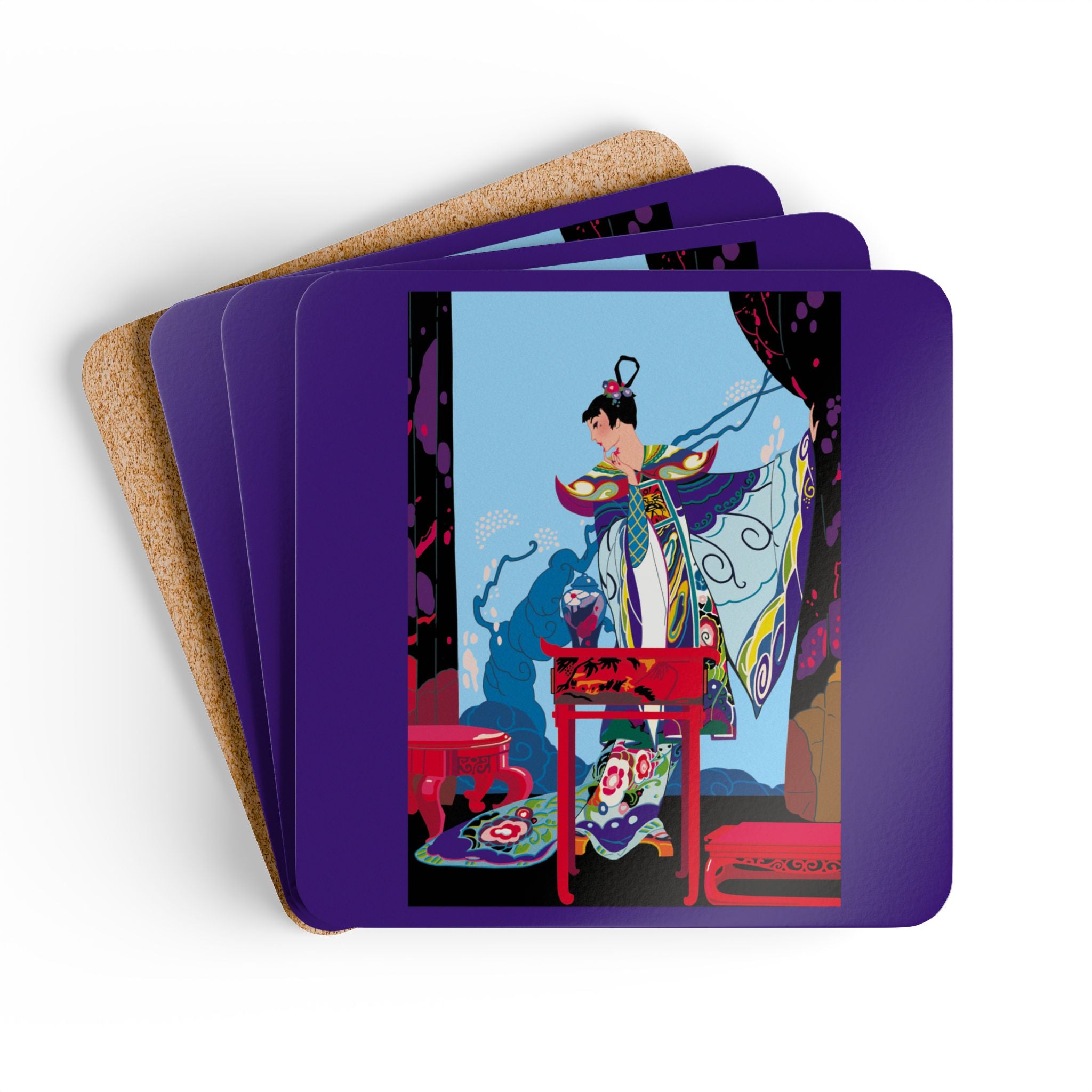 A Visual Journey by Umberto Brunelleschi | Corkwood Coaster Set captures the refined spirit of early 20th-century Parisian design. This elegant four-piece set combines timeless Art Deco aesthetics with everyday practicality, perfect for art lovers and collectors alike.