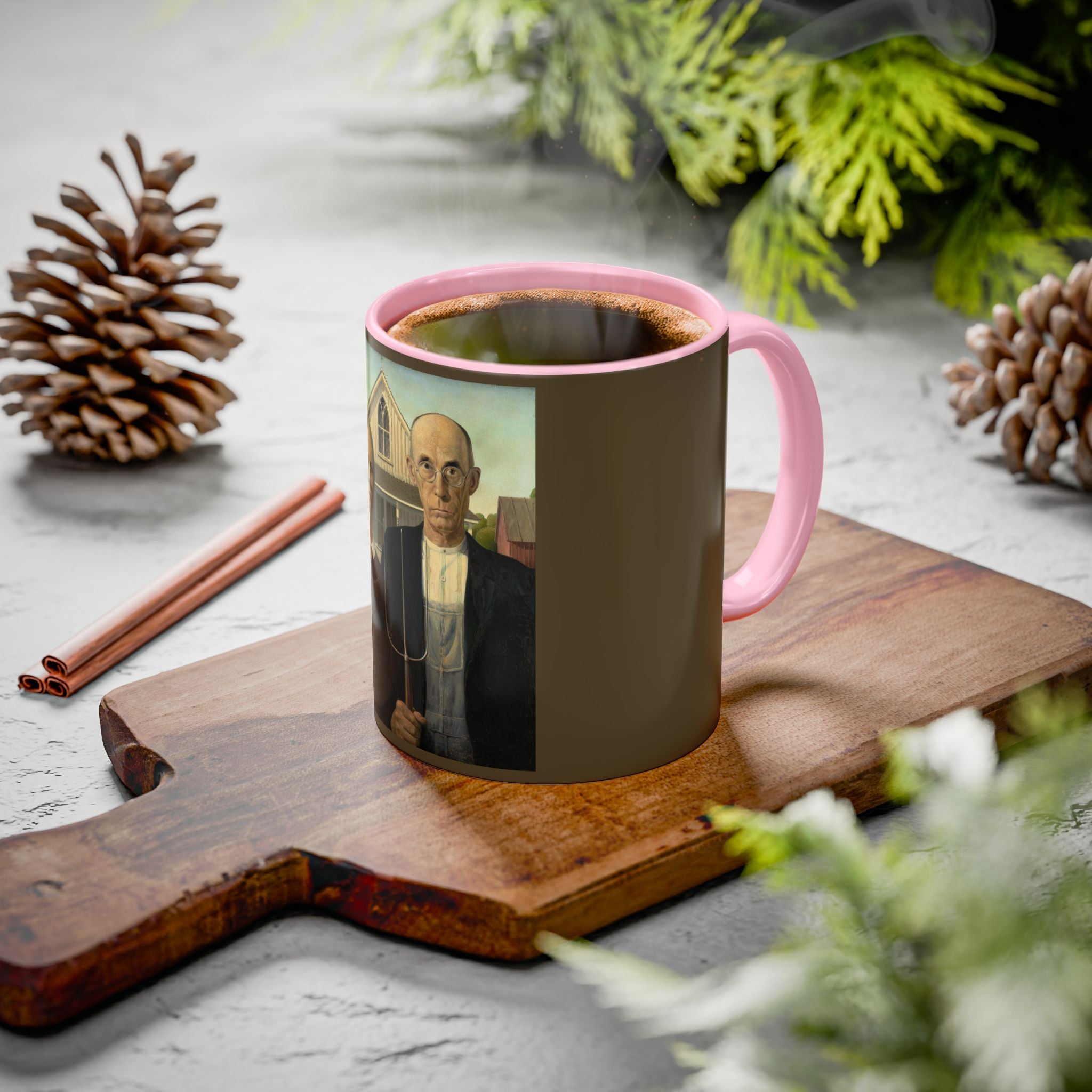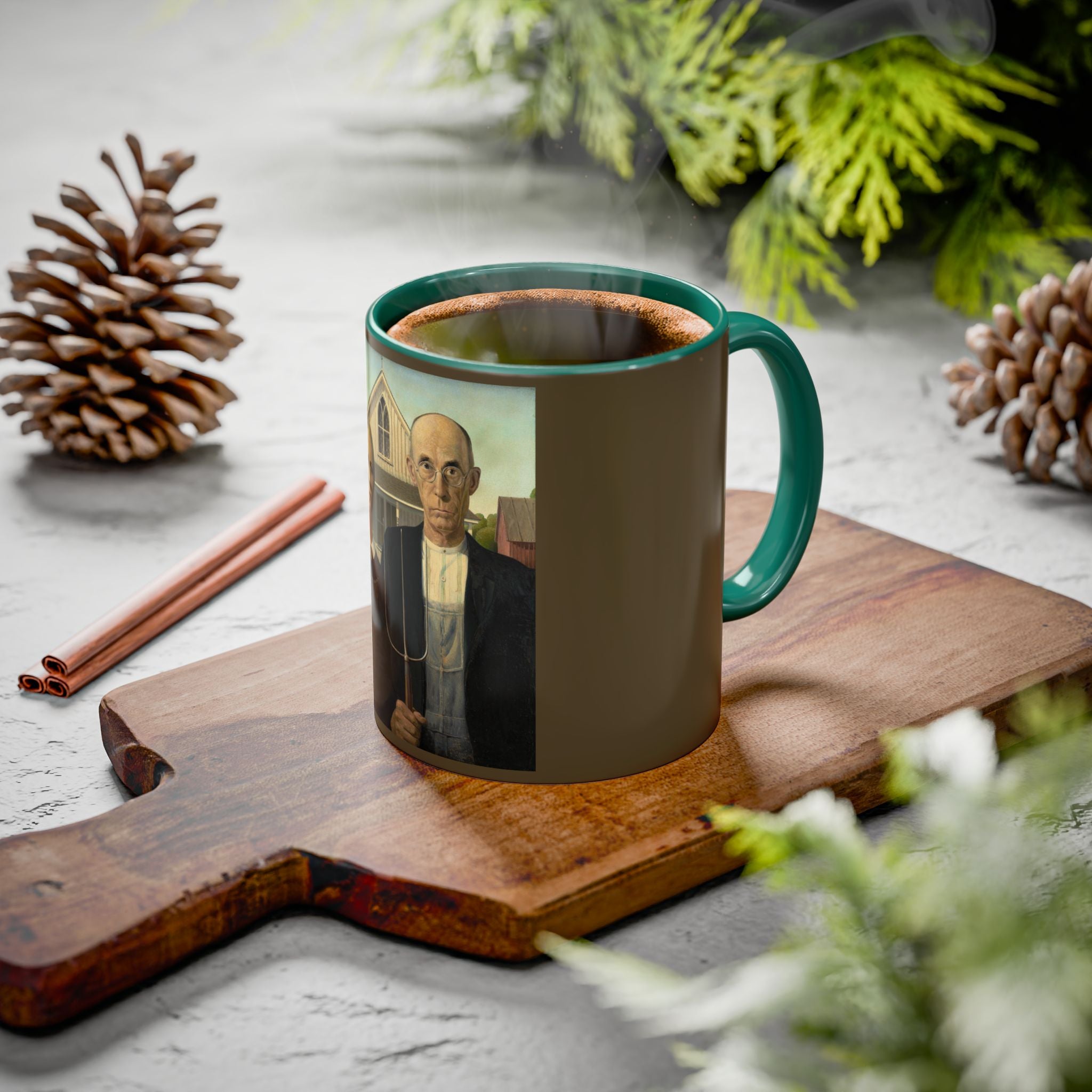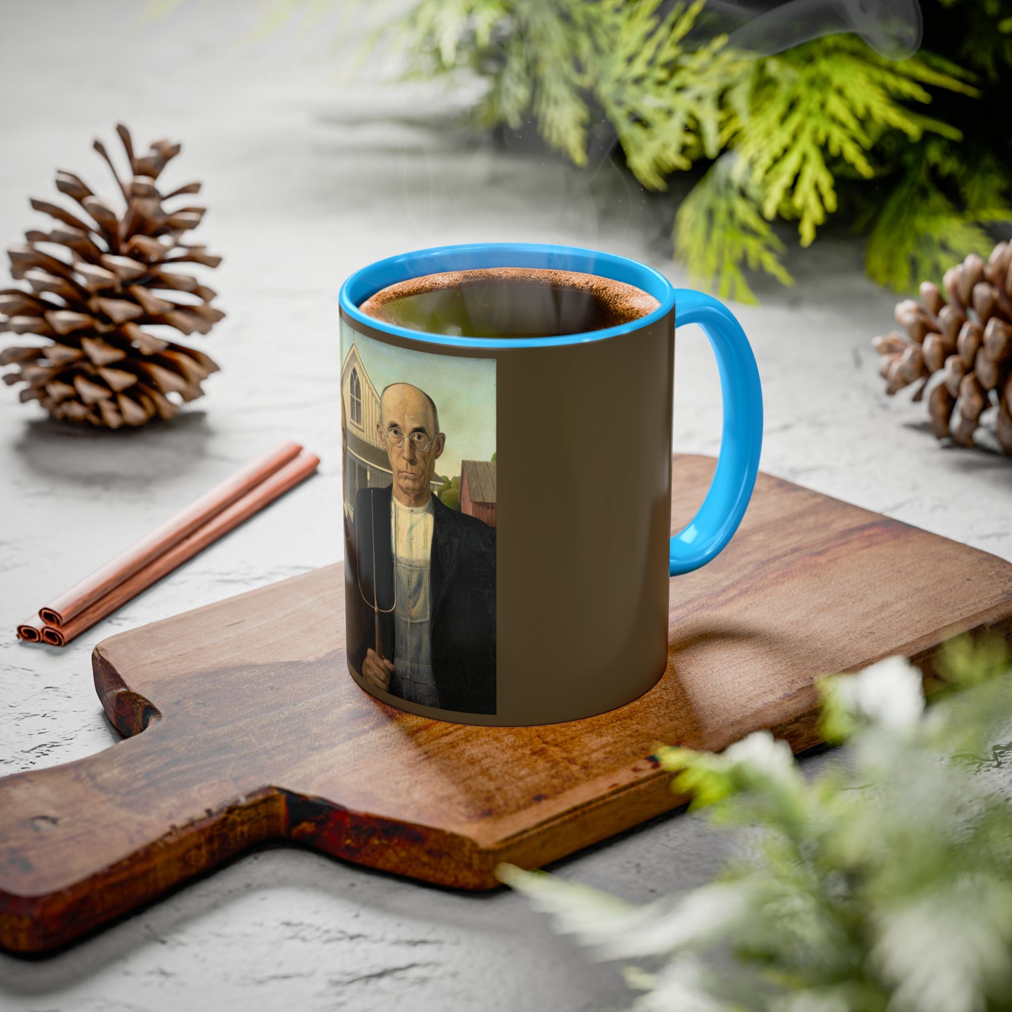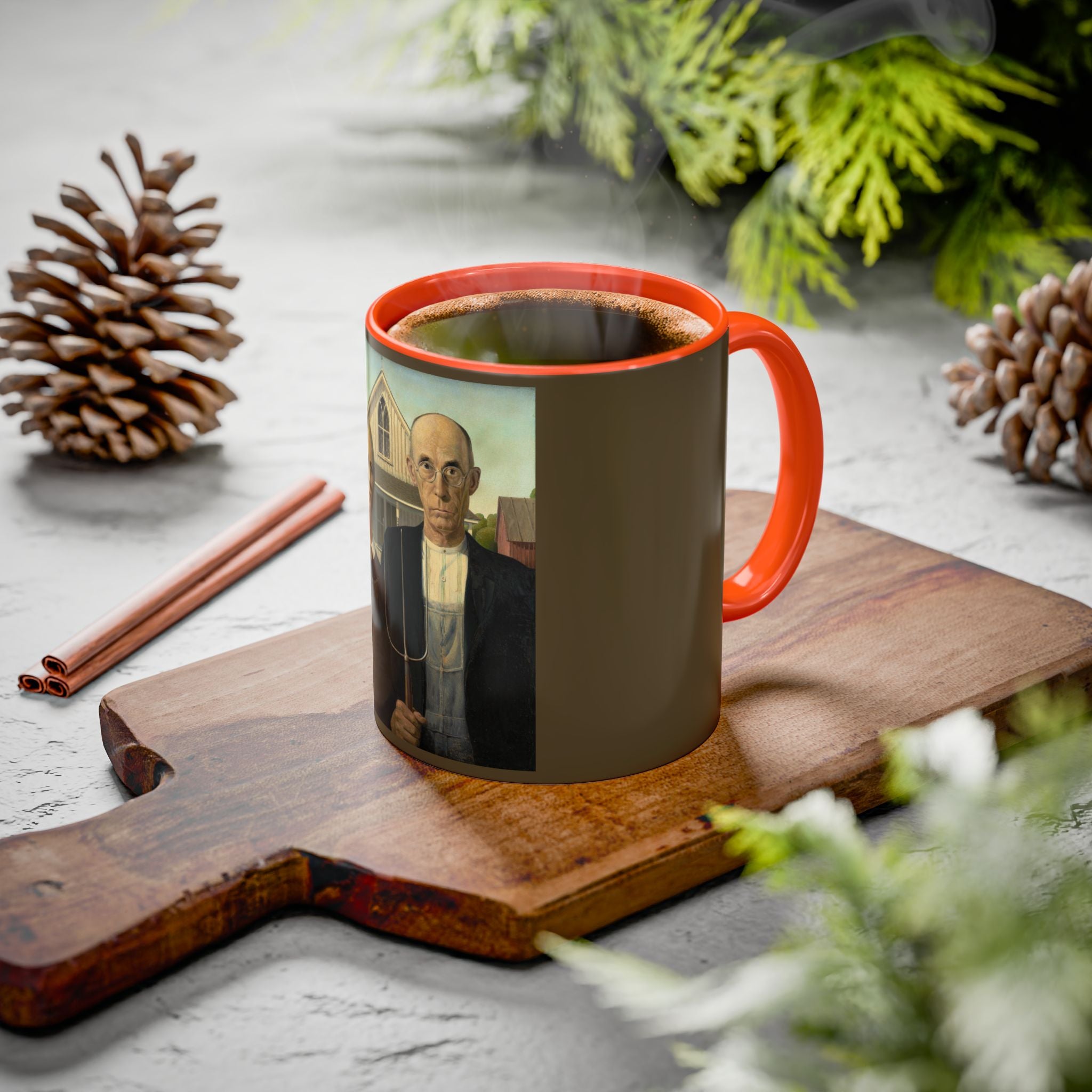 Mugs are a kitchen essential, and when infused with a personalized touch, they transform into cherished favorites. These mugs, offered in 12 vibrant color choices, can hold up to 11oz of your preferred rejuvenating beverage and feature a colored handle and interior. The glossy finish adds an elegant accent that beautifully complements the high-fidelity artwork print, making them not only a delightful addition to your kitchen but also a fantastic choice for thoughtful gifts.