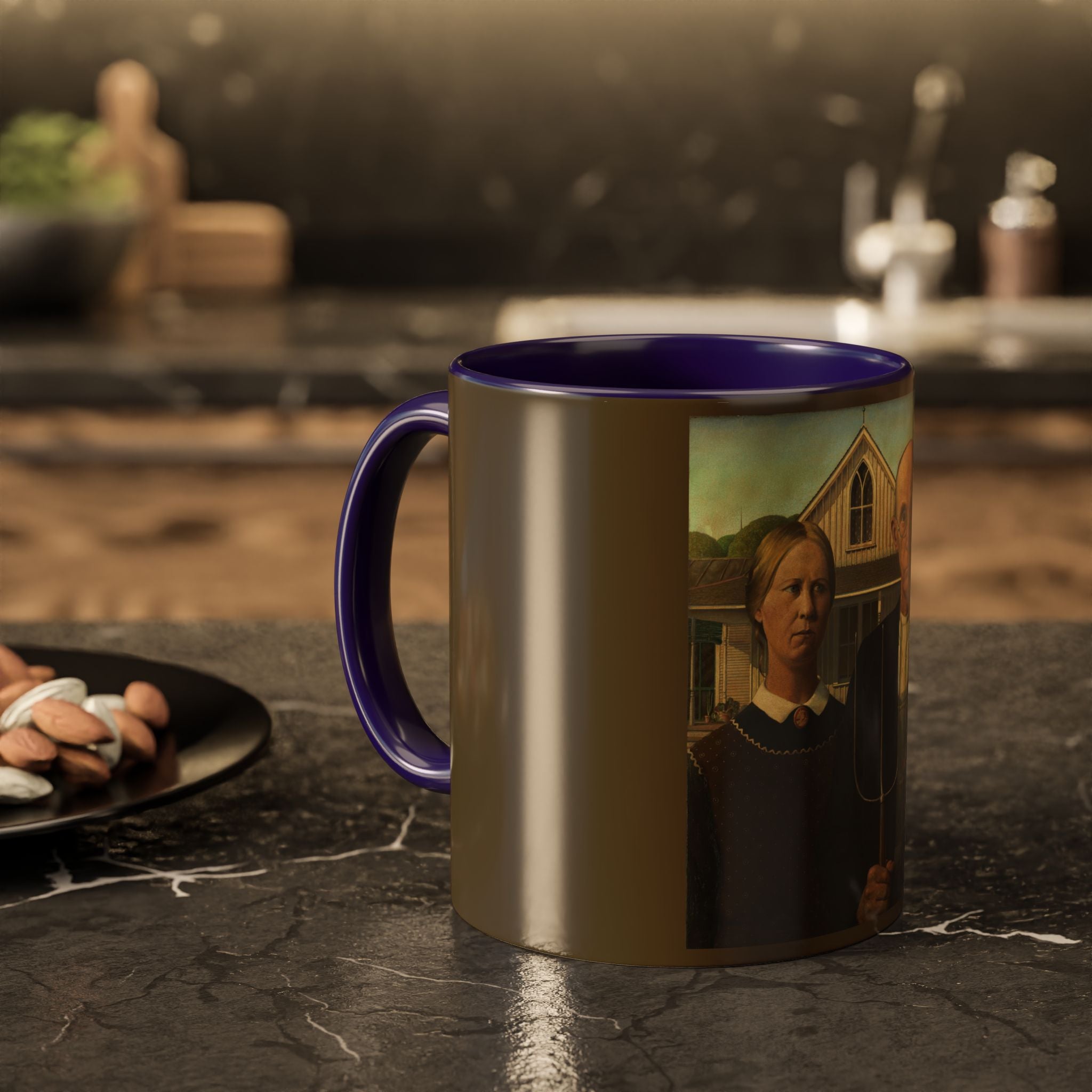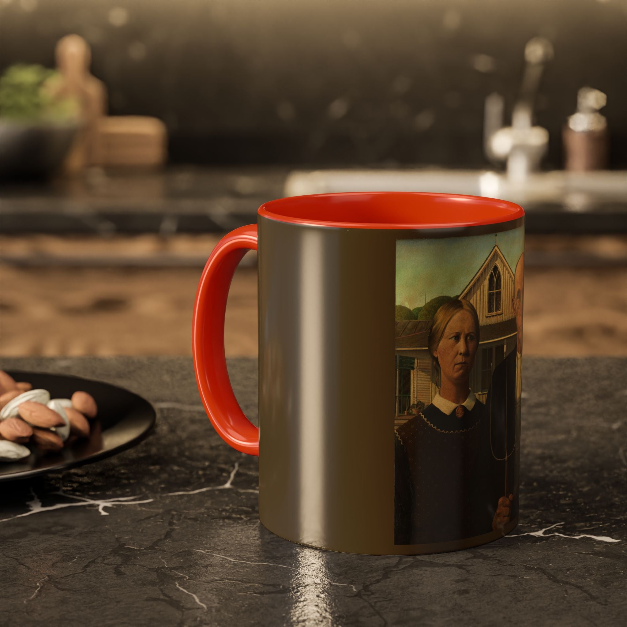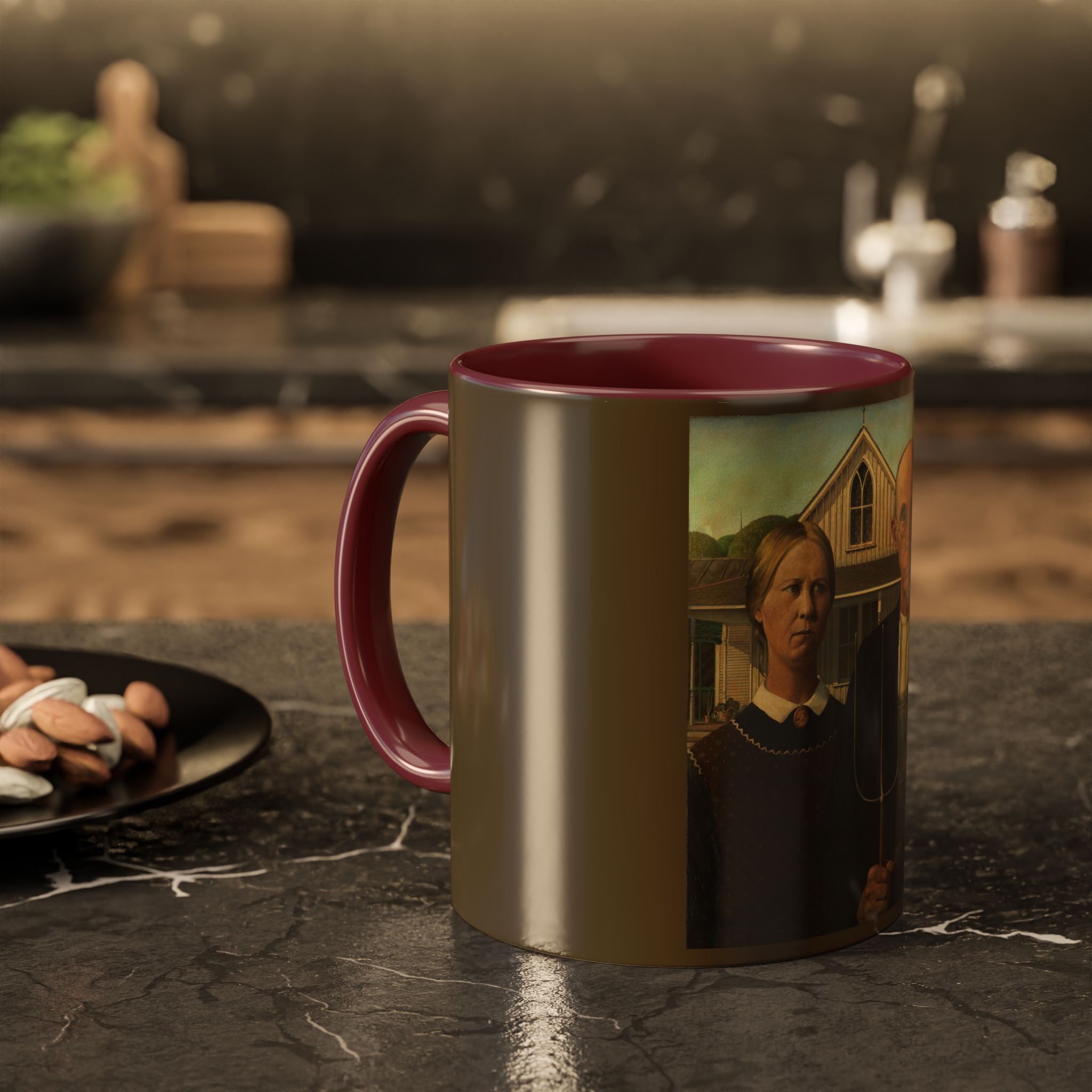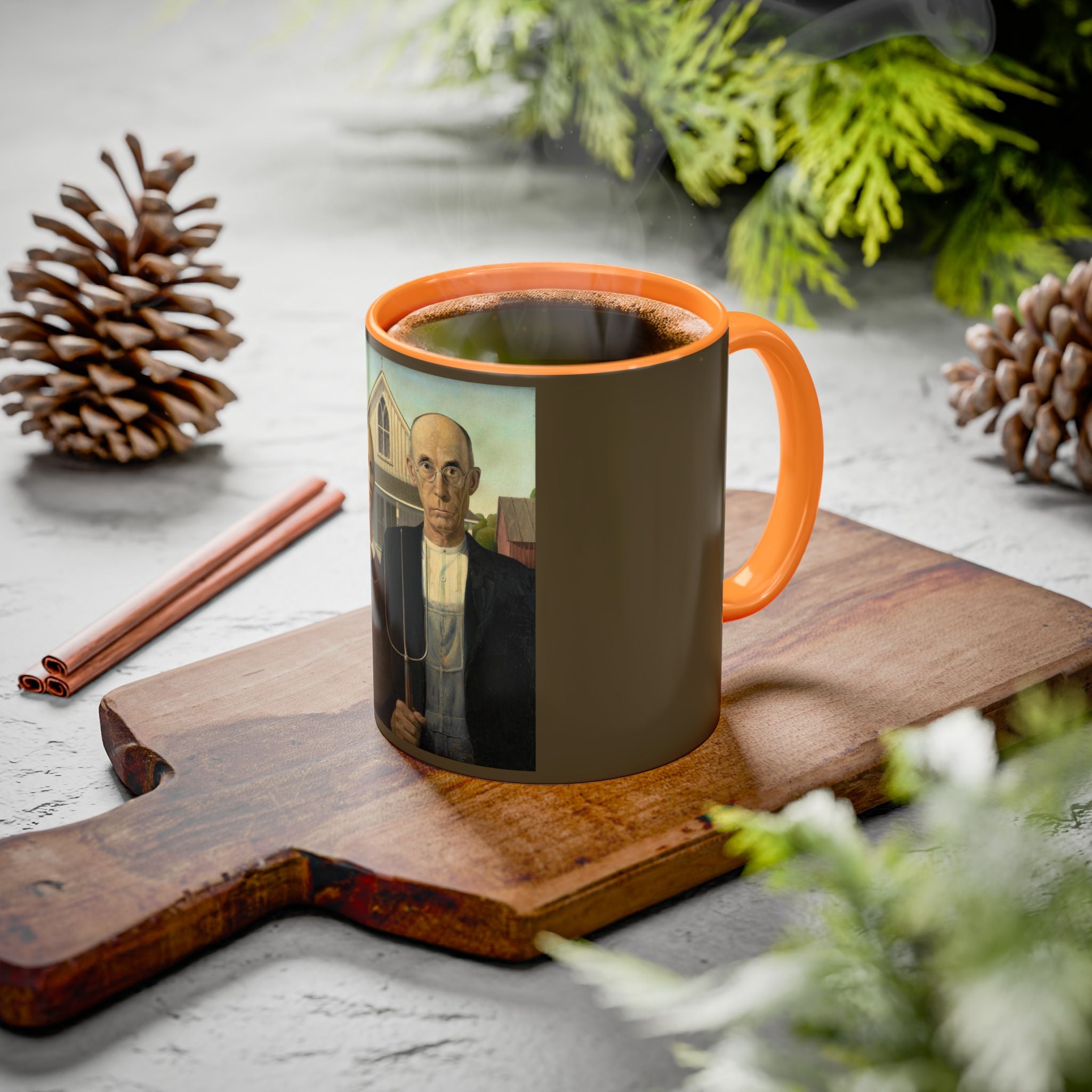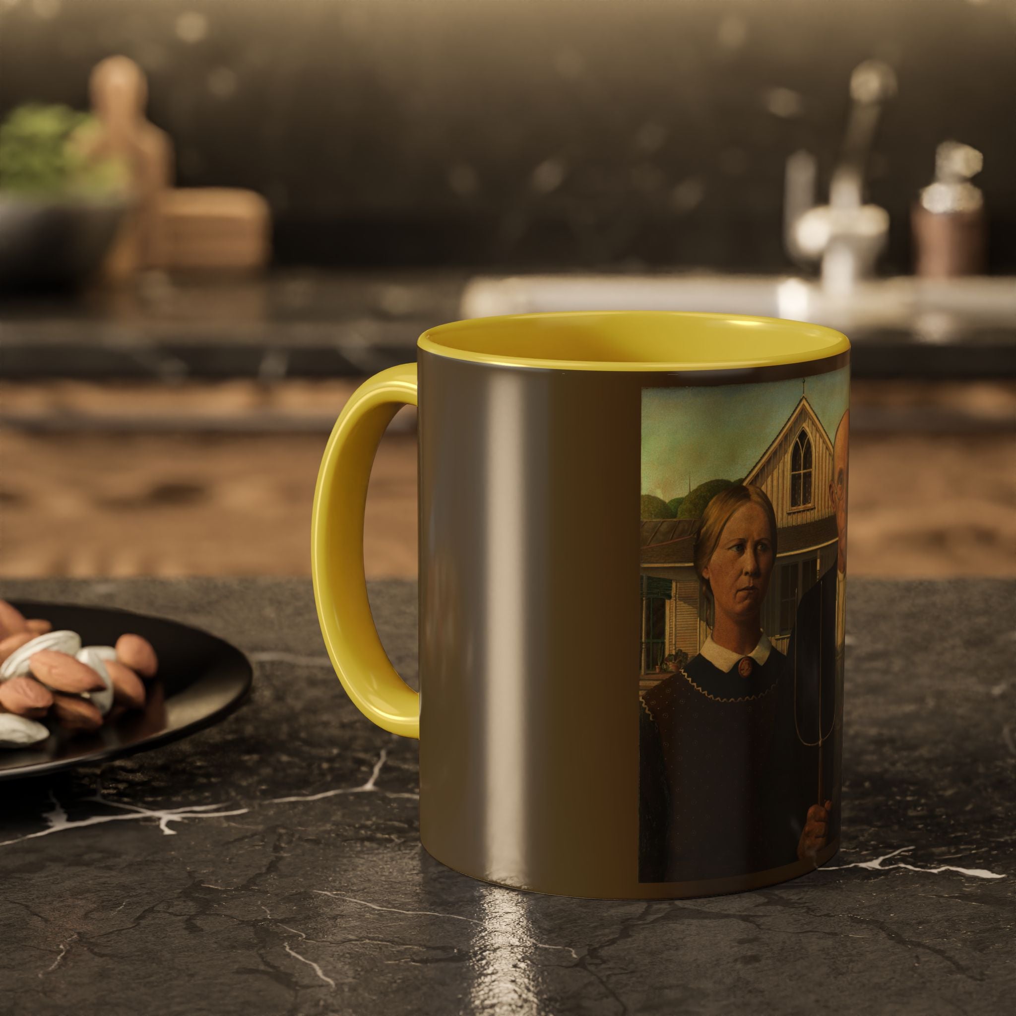 Mugs are a kitchen essential, and when infused with a personalized touch, they transform into cherished favorites. These mugs, offered in 12 vibrant color choices, can hold up to 11oz of your preferred rejuvenating beverage and feature a colored handle and interior. The glossy finish adds an elegant accent that beautifully complements the high-fidelity artwork print, making them not only a delightful addition to your kitchen but also a fantastic choice for thoughtful gifts.