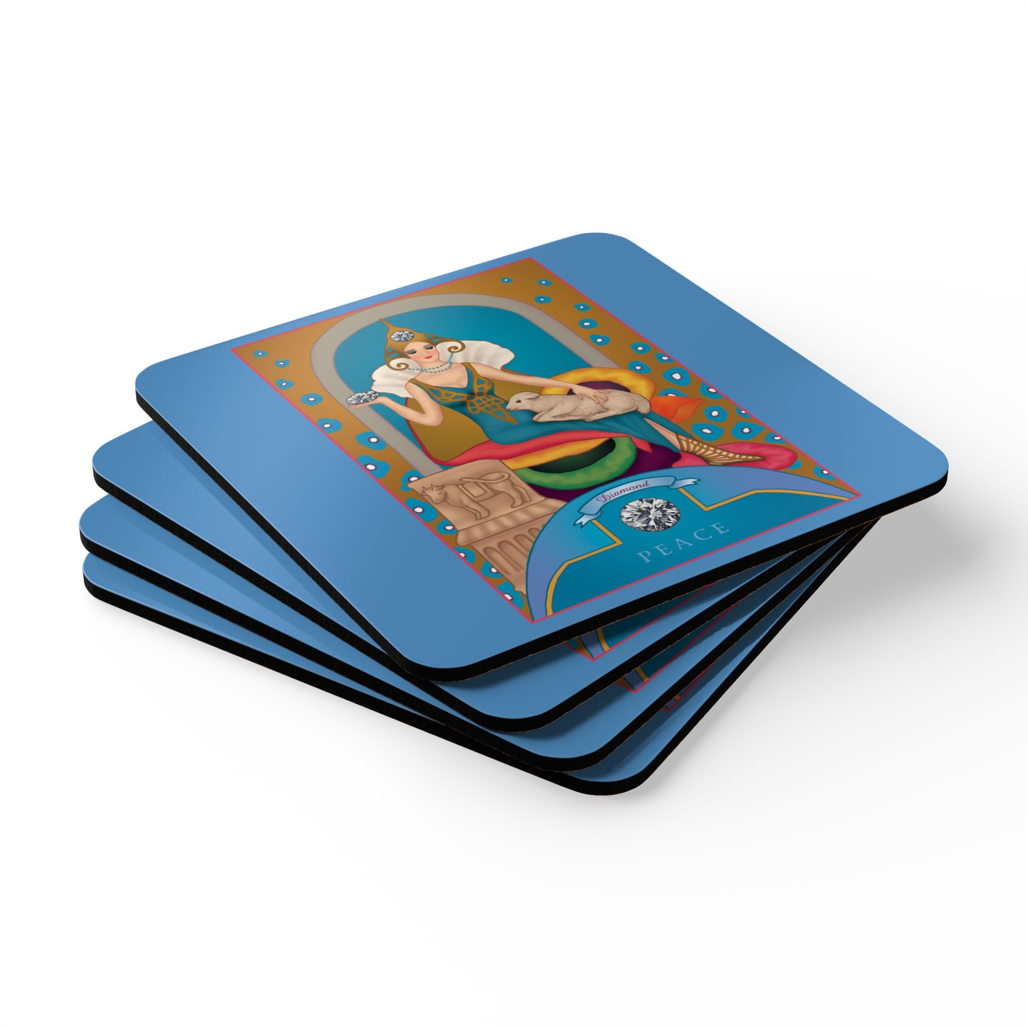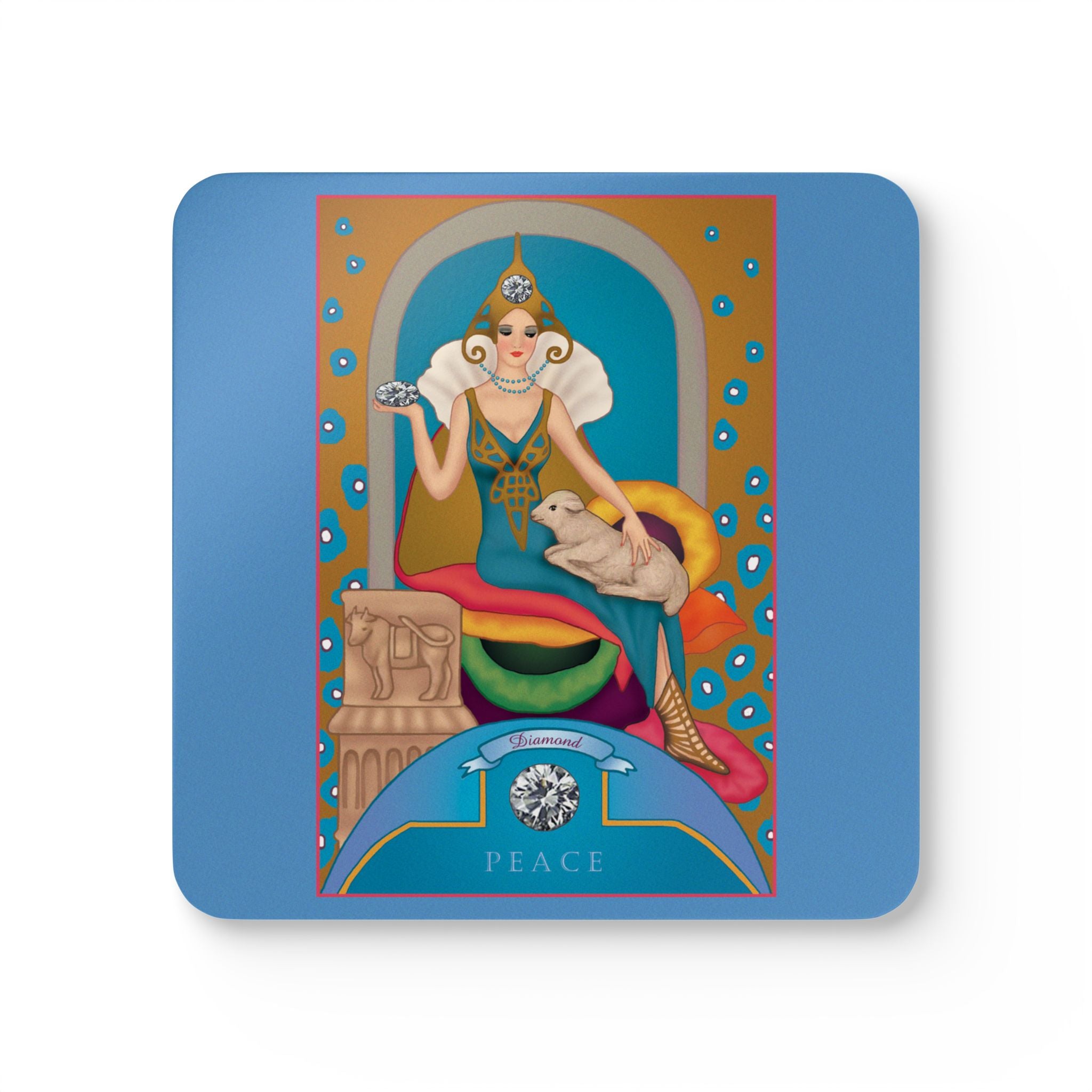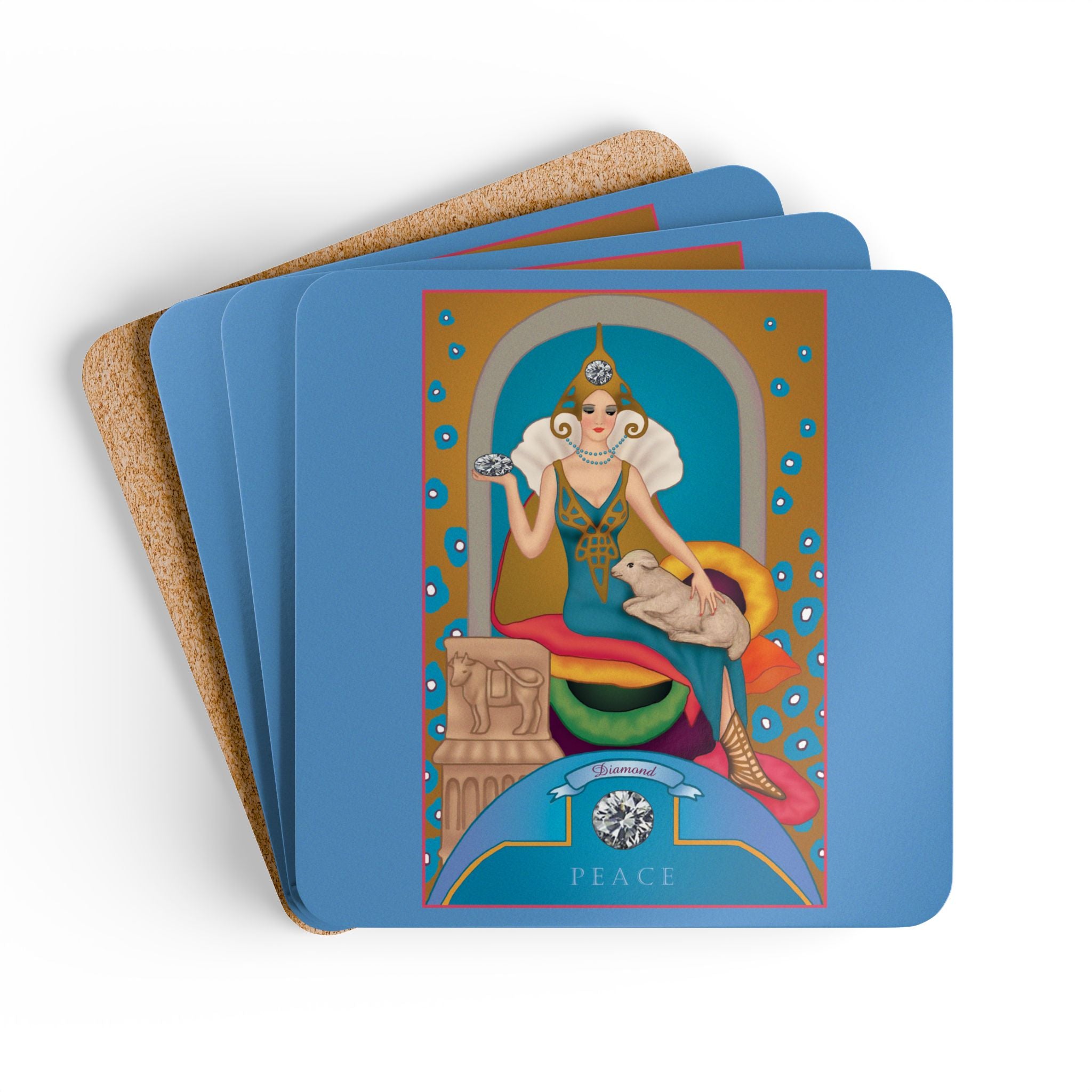 Aries Zodiac Design – April & Diamond by Sofia Chiostri | Corkwood Coaster Set adds a radiant touch of Art Deco sophistication to your living space, office, or studio. Each 4-piece set blends elegance with utility, featuring luminous artwork atop a durable high-gloss MDF surface and a natural cork backing to prevent slipping. Perfect for astrology lovers and collectors of vintage-inspired design.