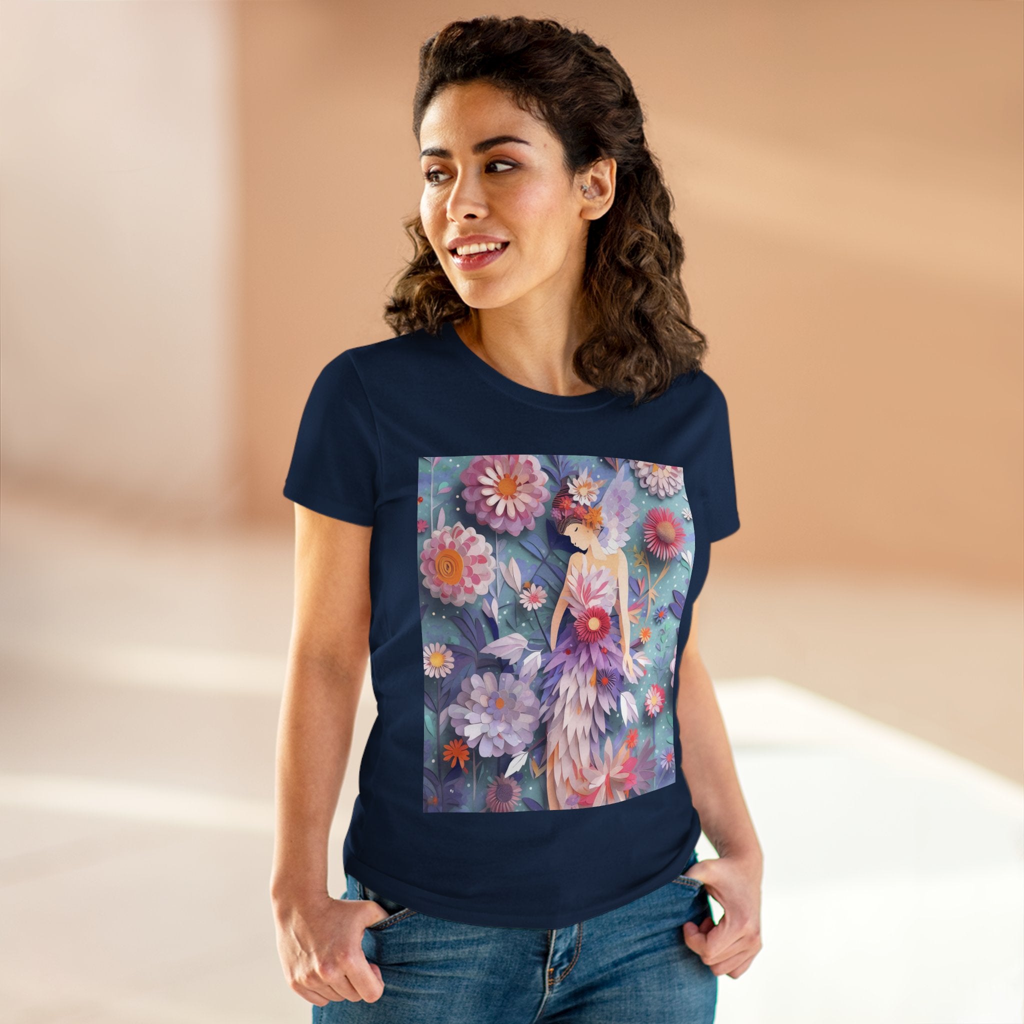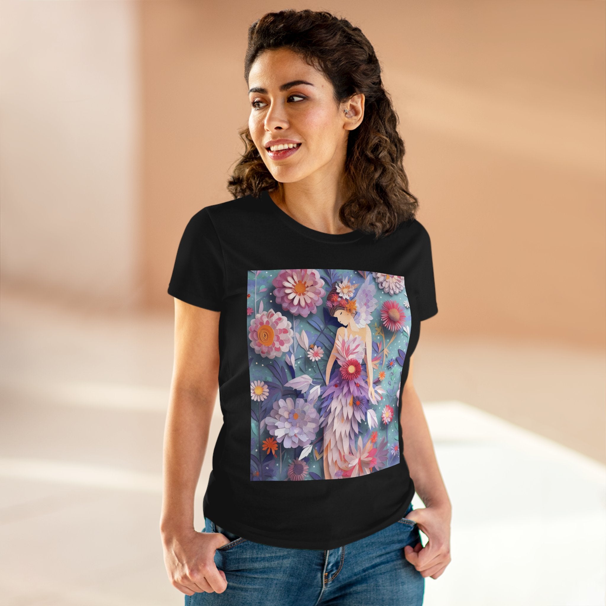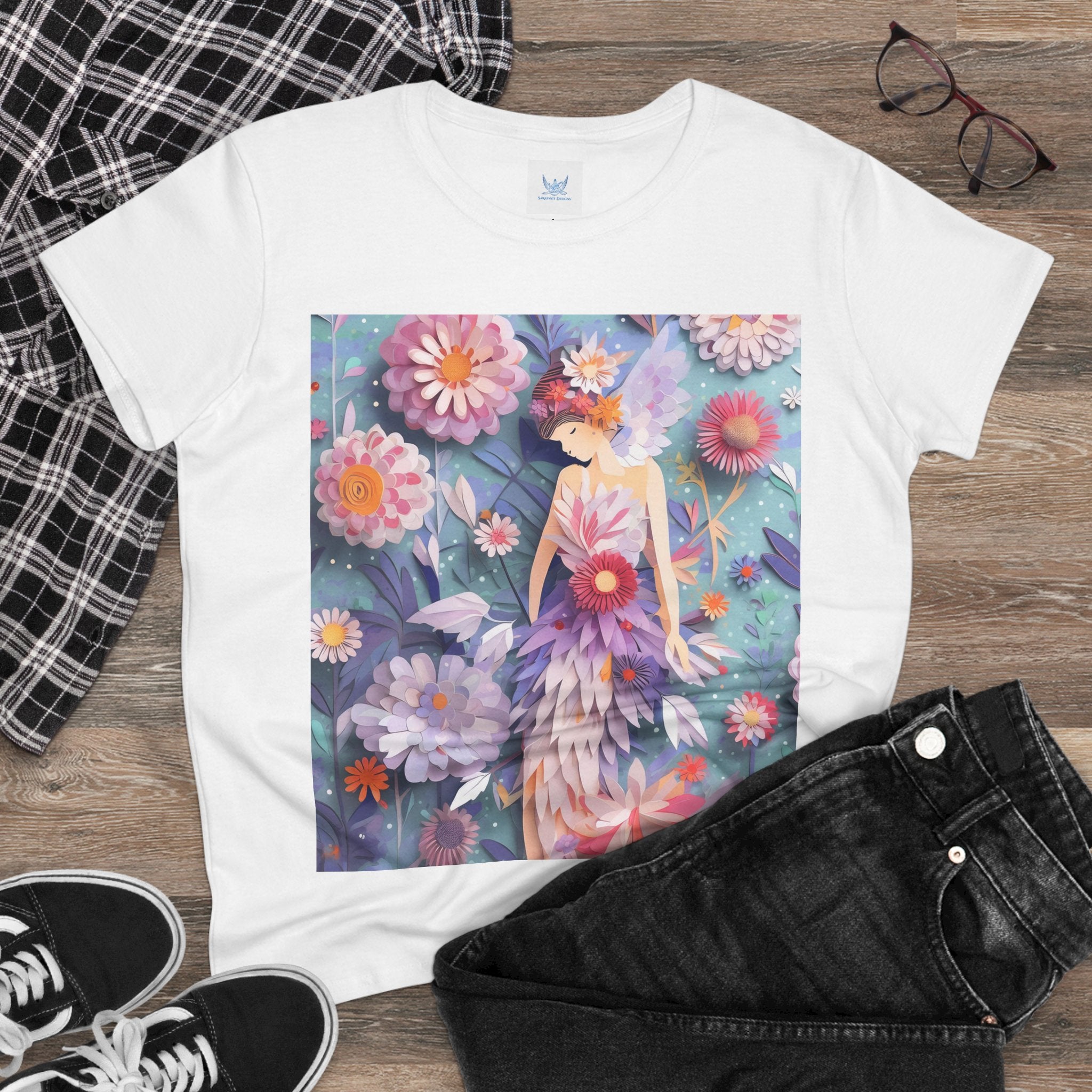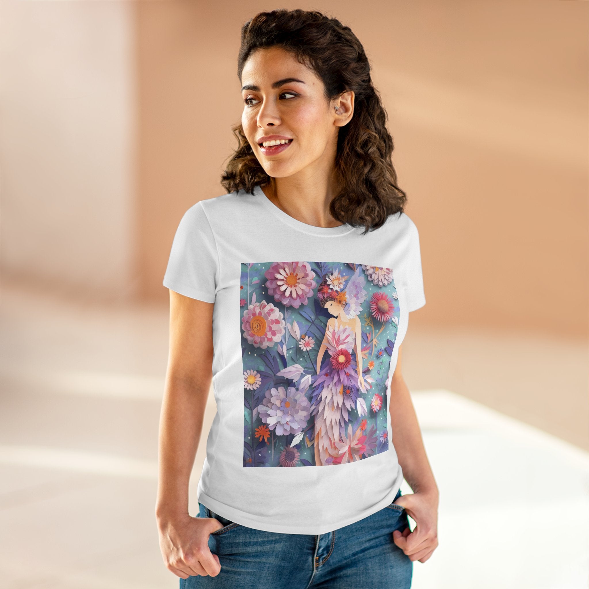 Aster Fairy Cotton Tee adds a touch of whimsy to everyday style with its soft, lightweight feel and charming garden illustration. This comfy, semi-fitted 100% cotton tee is pre-shrunk to keep its shape wear after wear. It features cap sleeves and a taped neck and shoulders for added comfort and durability.