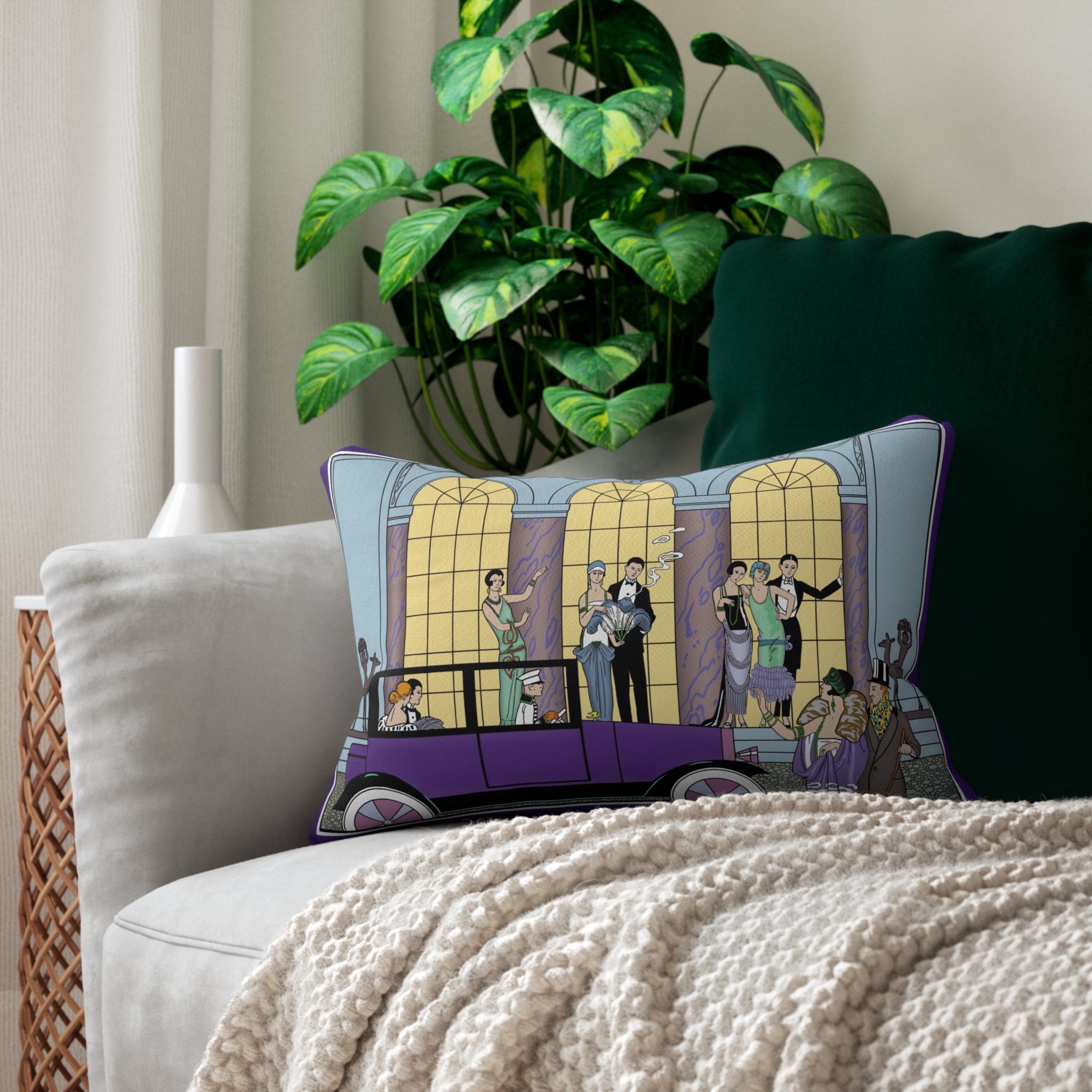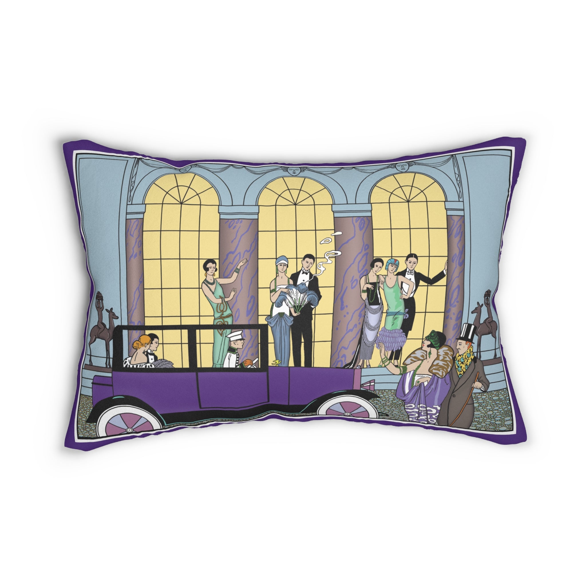 Enhance your home decor with this exquisite Art Deco inspired lumbar pillow. Crafted with care, it features a spun-polyester fabric casing that is not only inherently mildew and water-resistant but also radiates elegance. The pillow comes with a stuffing pillow included, ensuring a plump and comfortable feel. With its hidden beige zipper, this pillow maintains a finished and stylish appearance, seamlessly blending with your existing decor. Perfectly sized to provide lumbar support, it adds both aesthetic charm and functionality to your living space. Whether you're decorating your own home or searching for a thoughtful gift, this art deco-inspired lumbar pillow is a delightful choice that will be cherished for its beauty and practicality.