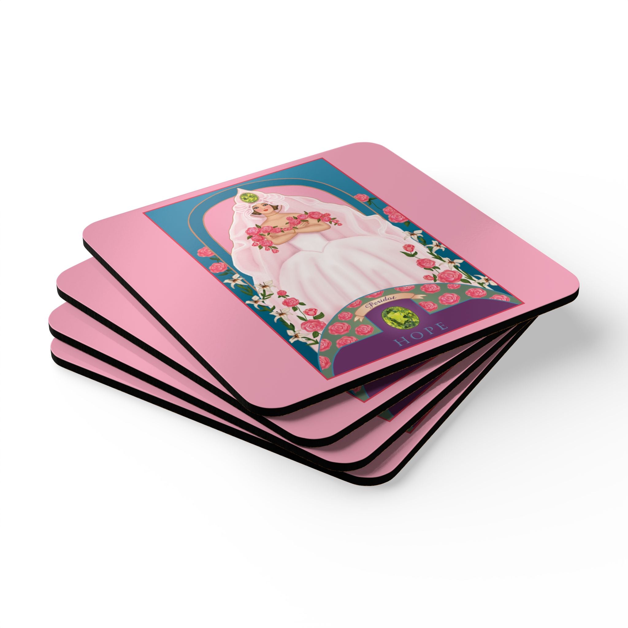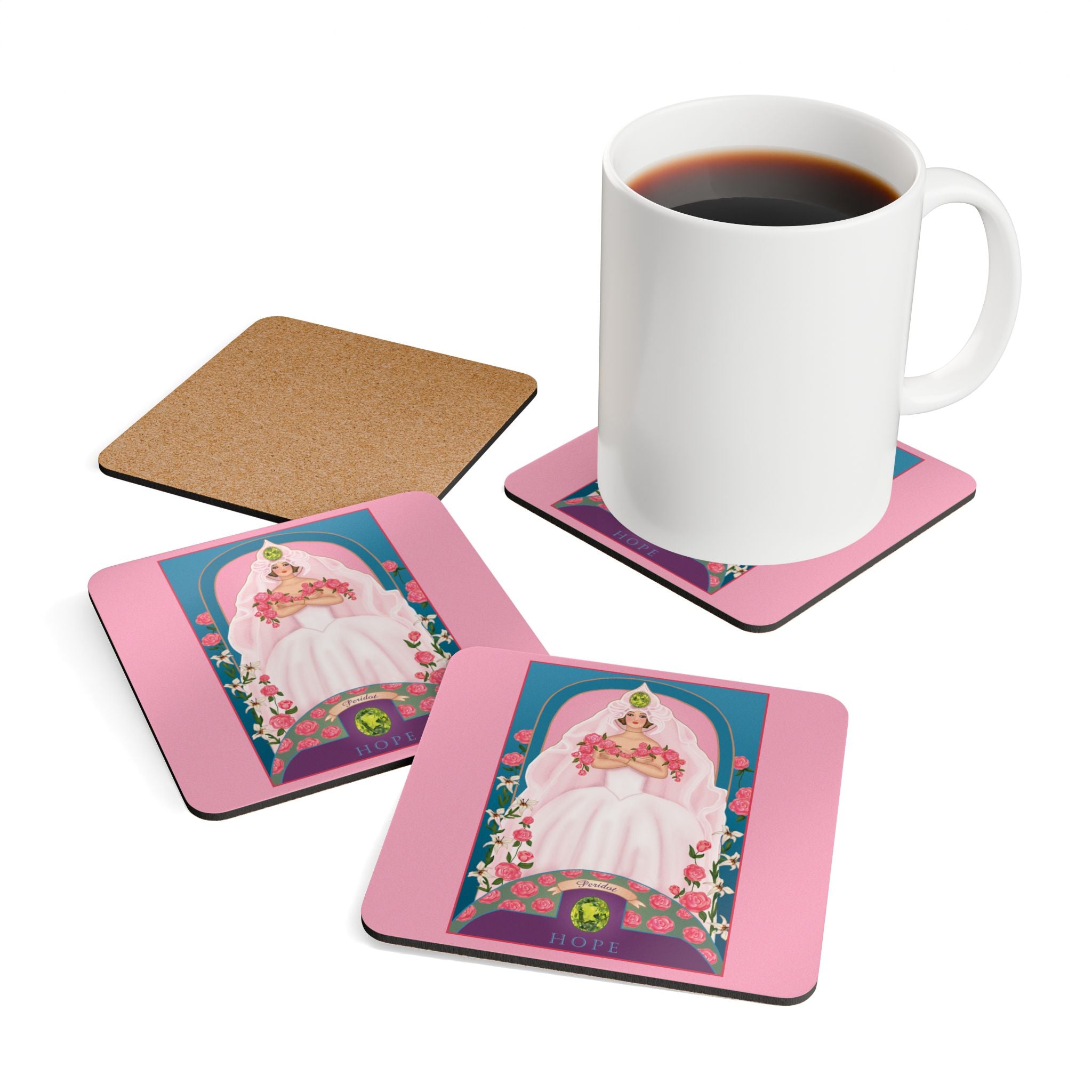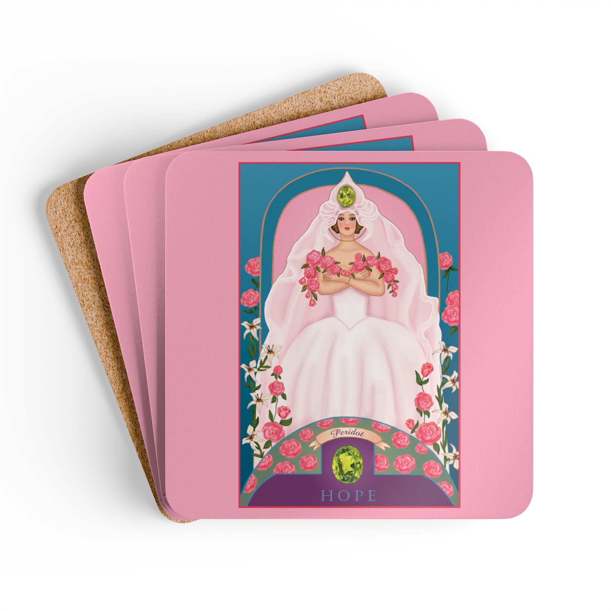 Leo Zodiac Design – August & Peridot by Sofia Chiostri | Corkwood Coaster Set radiates regal charm and vintage sophistication, perfect for elevating your home or office décor. This elegant 4-piece coaster set combines artistic brilliance with everyday function. Each coaster features a luminous high-gloss MDF surface that beautifully showcases the artwork, paired with a cork backing that ensures stability and prevents slipping. A stunning collectible for astrology enthusiasts and lovers of classic Art Deco style.