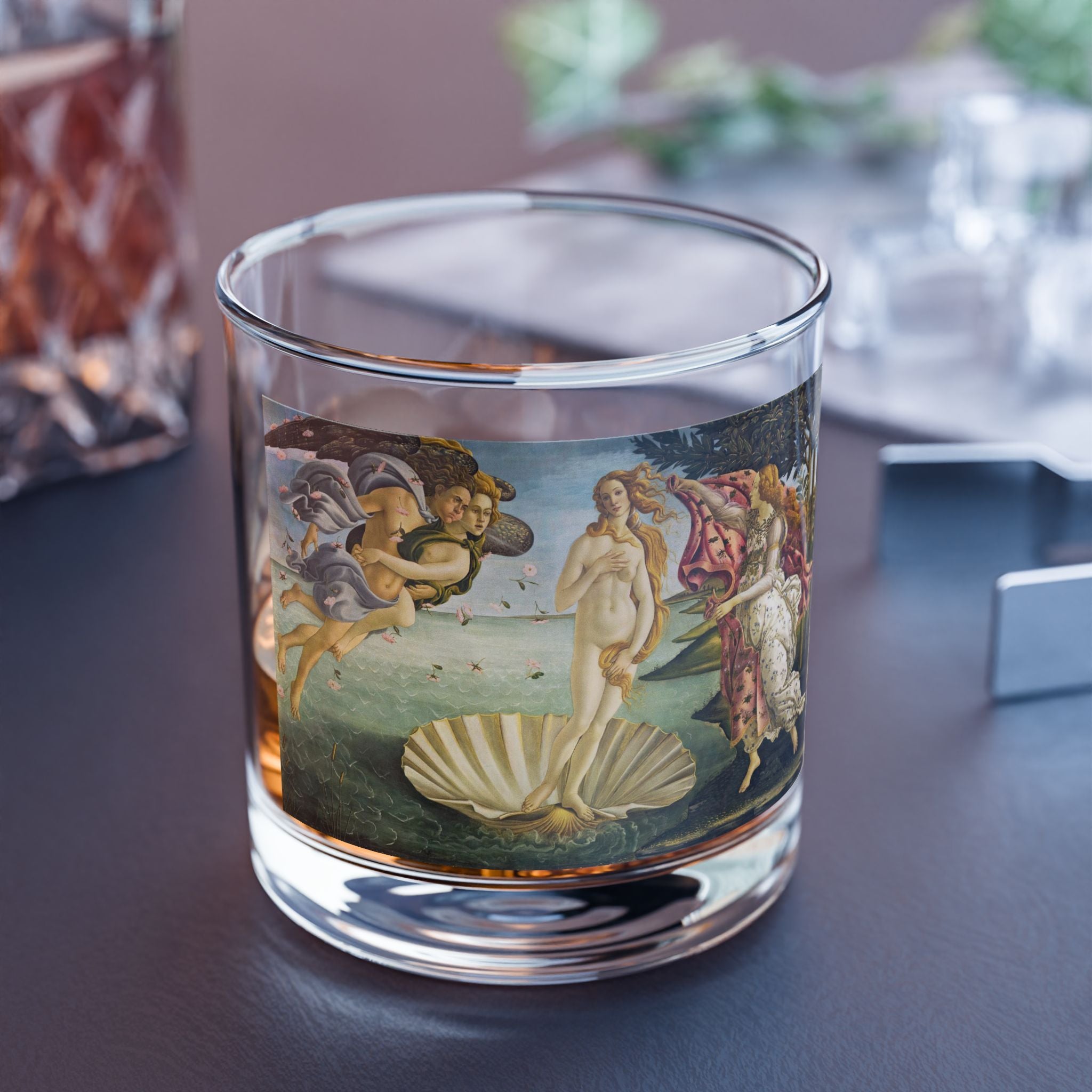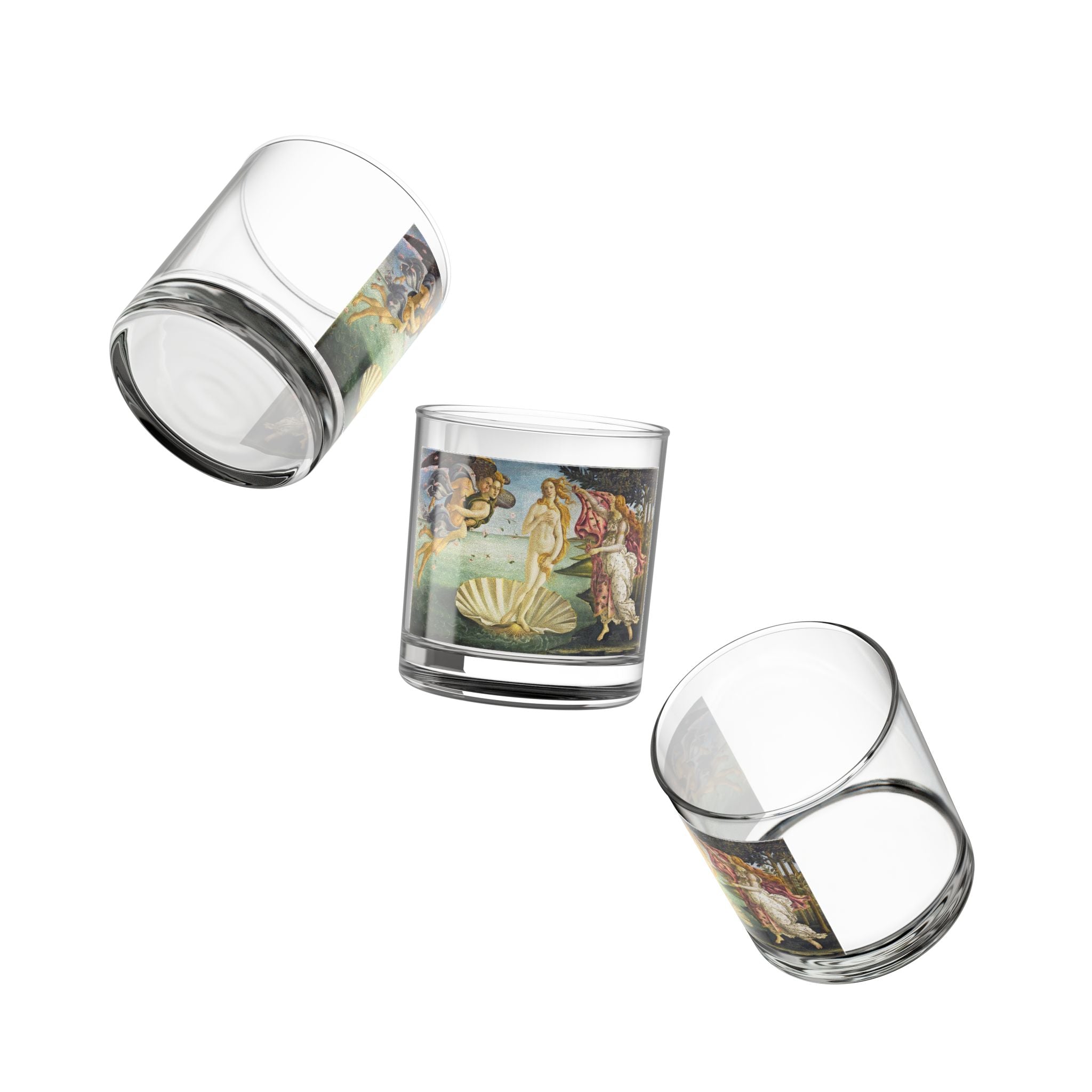 Elevate your drinking experience with this modern and elegant rocks glass featuring a wraparound print of the 'Birth of Venus' by Botticelli. Perfect for art lovers and those who appreciate classical beauty, this 10oz glass is ideal for enjoying your favorite beverage in style. Great for gifting on special occasions like birthdays, anniversaries, or holidays.
