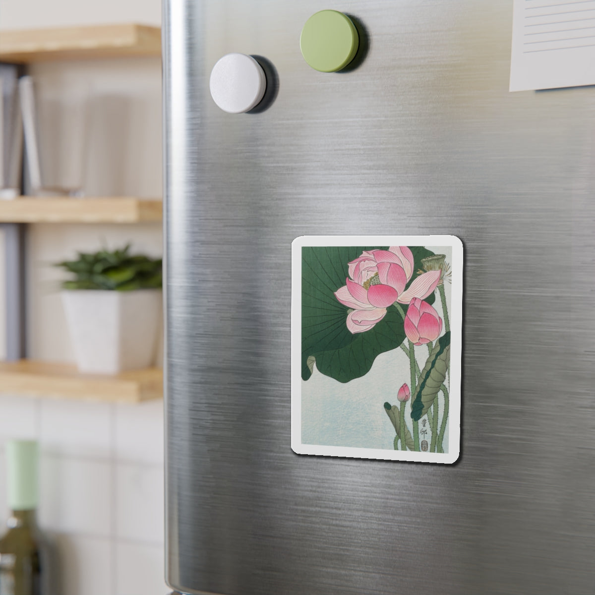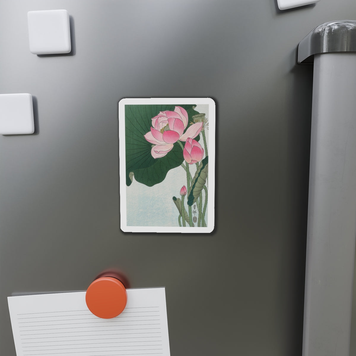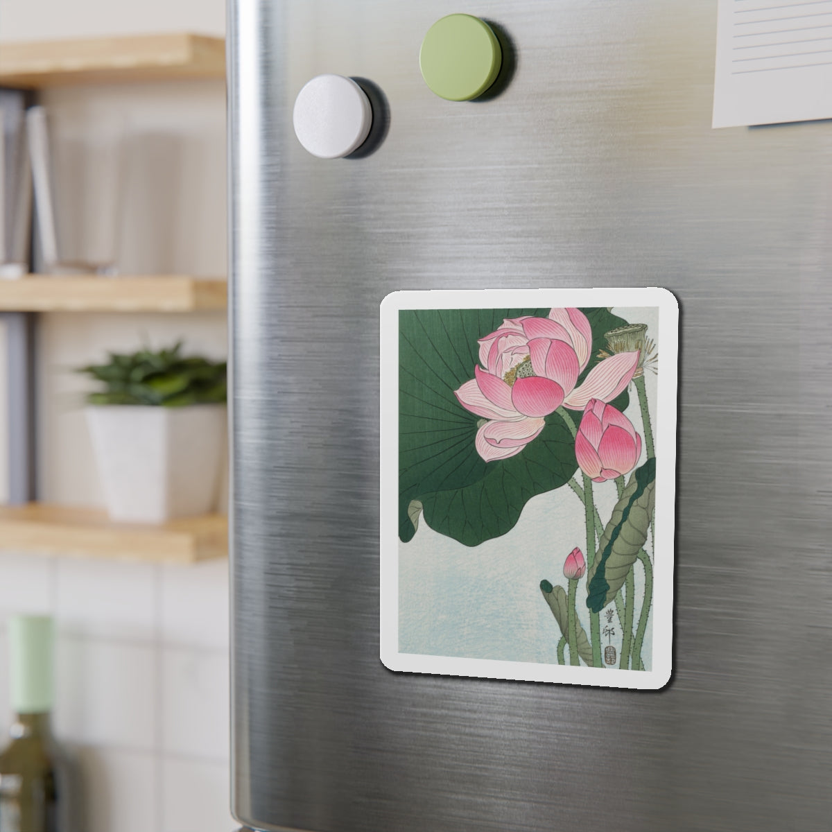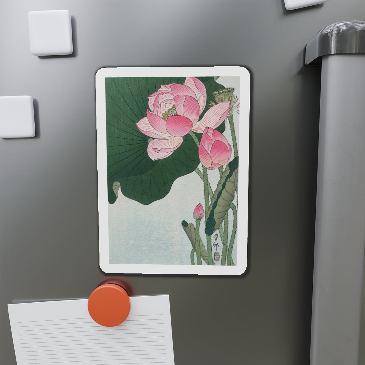 Artwork designed and digitally remastered by Sarasvati Designs. The original artwork, "Blooming Lotus Flowers" by Ohara Koson, is a captivating artwork that showcases the serene beauty of lotus flowers in full bloom. Known for his mastery of nature-inspired subjects, Koson's depiction of lotus flowers in this piece is both delicate and vibrant. Ohara Koson (1877-1945) was a Japanese painter and printmaker known for his exquisite woodblock prints of birds and flowers.