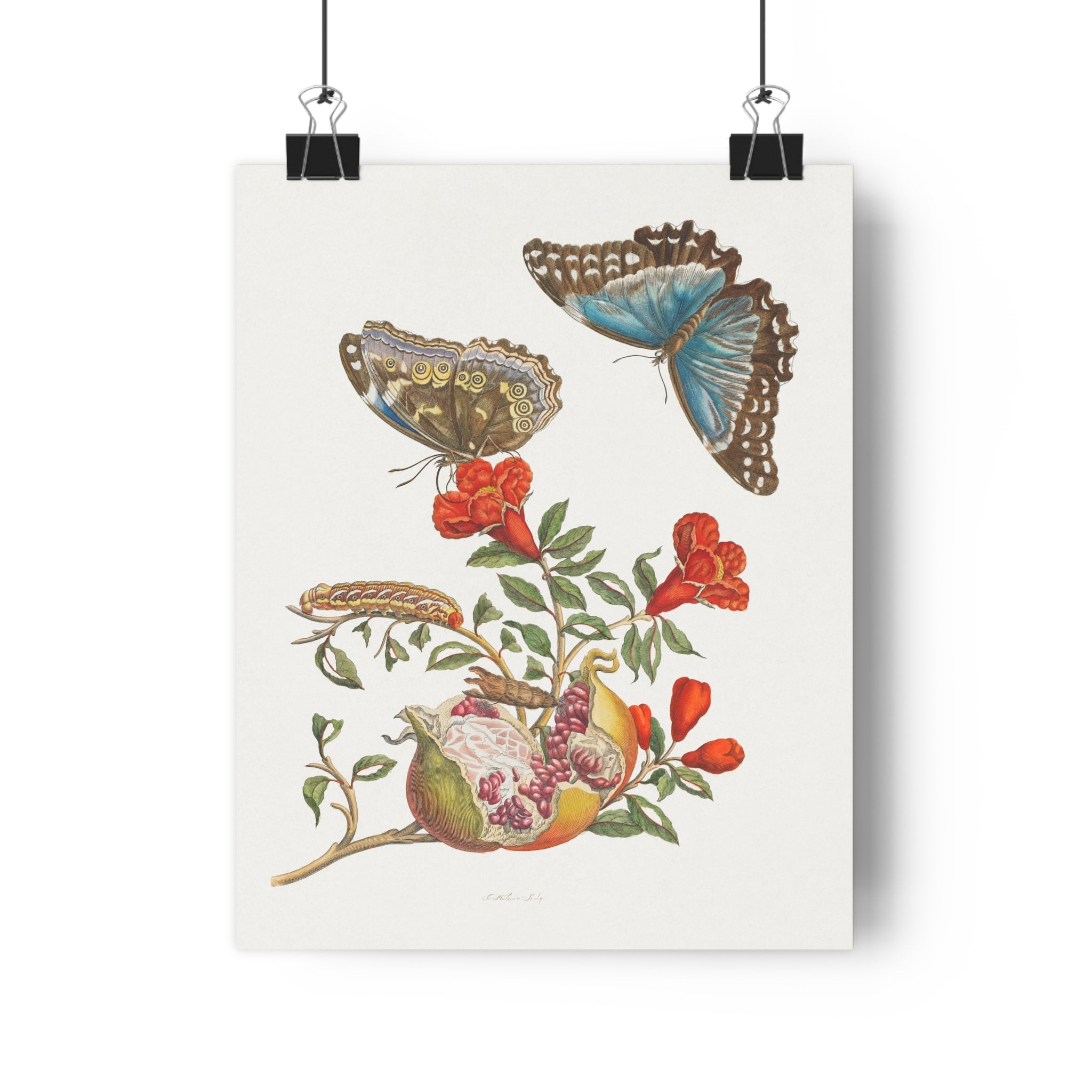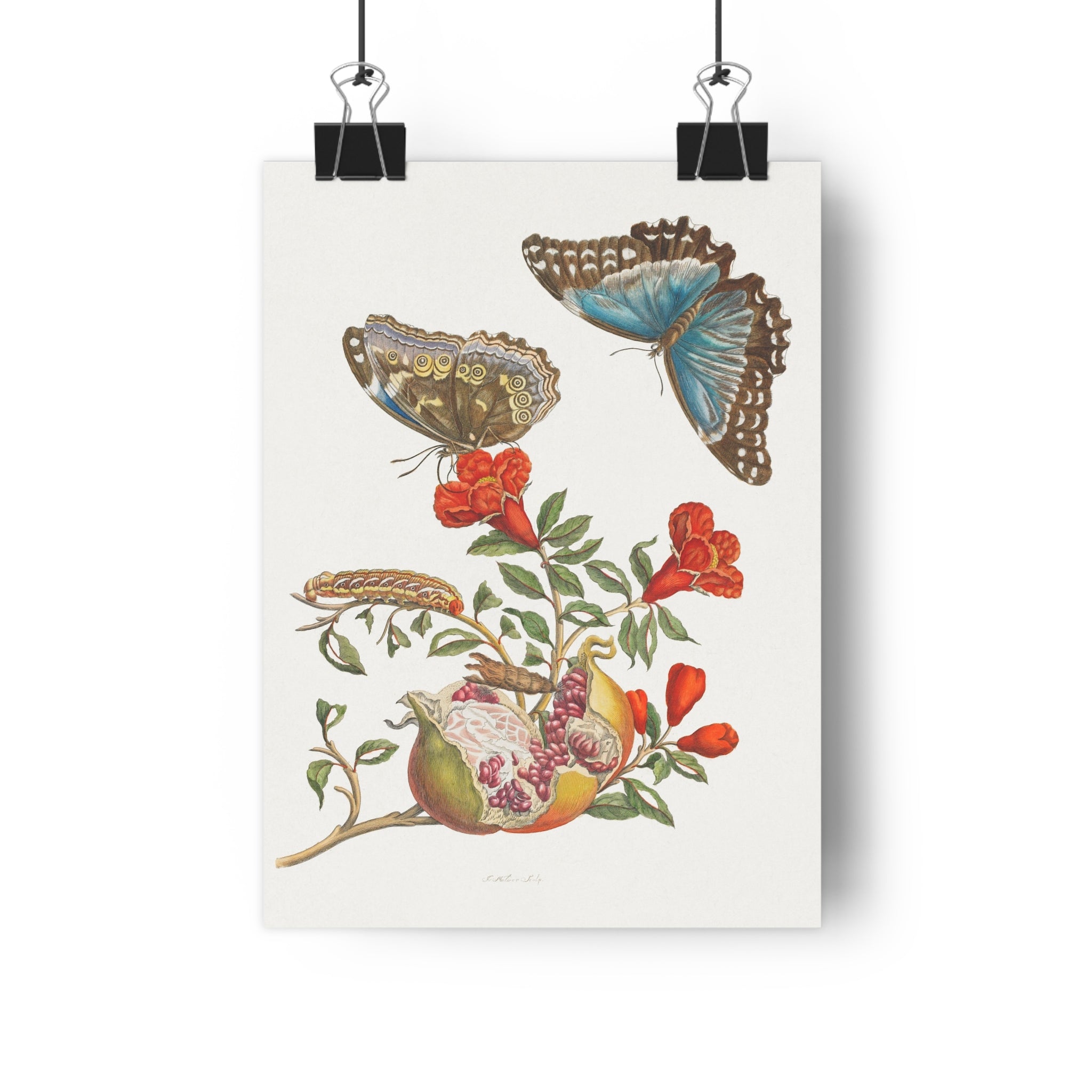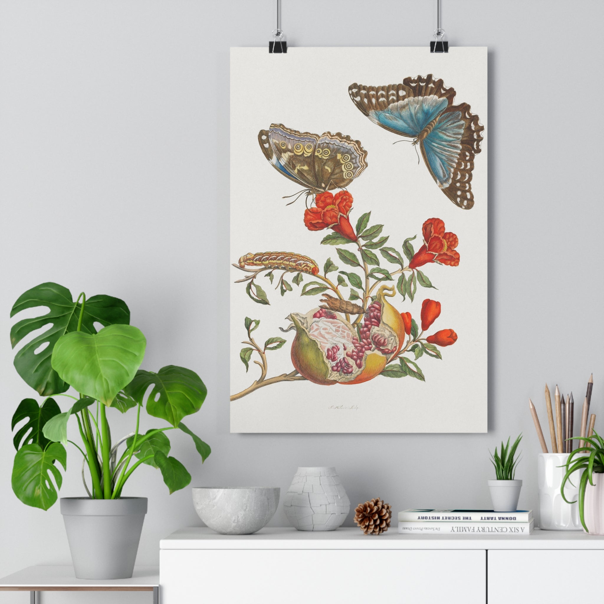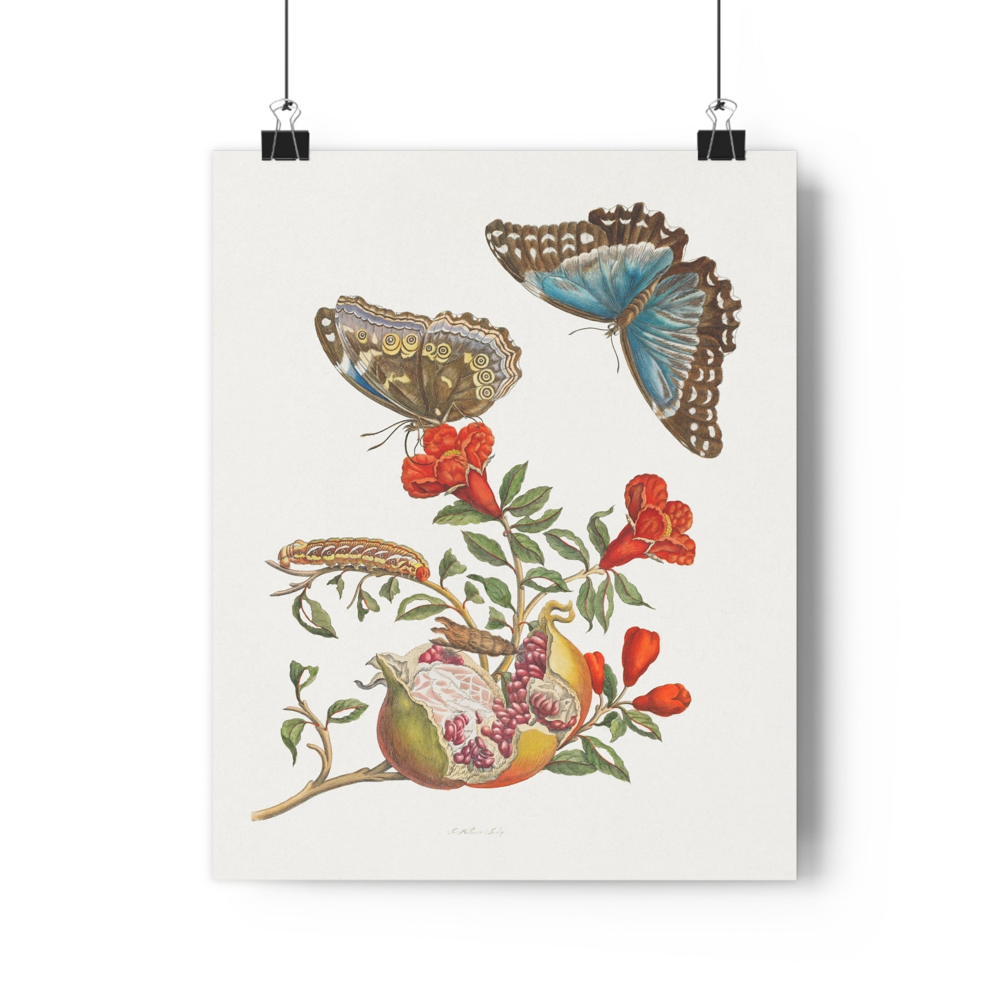 Blue Butterflies and Pomegranate Giclée Art Print offers museum-quality elegance inspired by one of history’s most celebrated naturalists. Available in four versatile sizes, this fine art print is giclée-printed on thick, archival matte paper, ensuring rich detail, vivid color, and long-lasting beauty suitable for gallery walls, reading rooms, offices, or botanical-themed spaces.