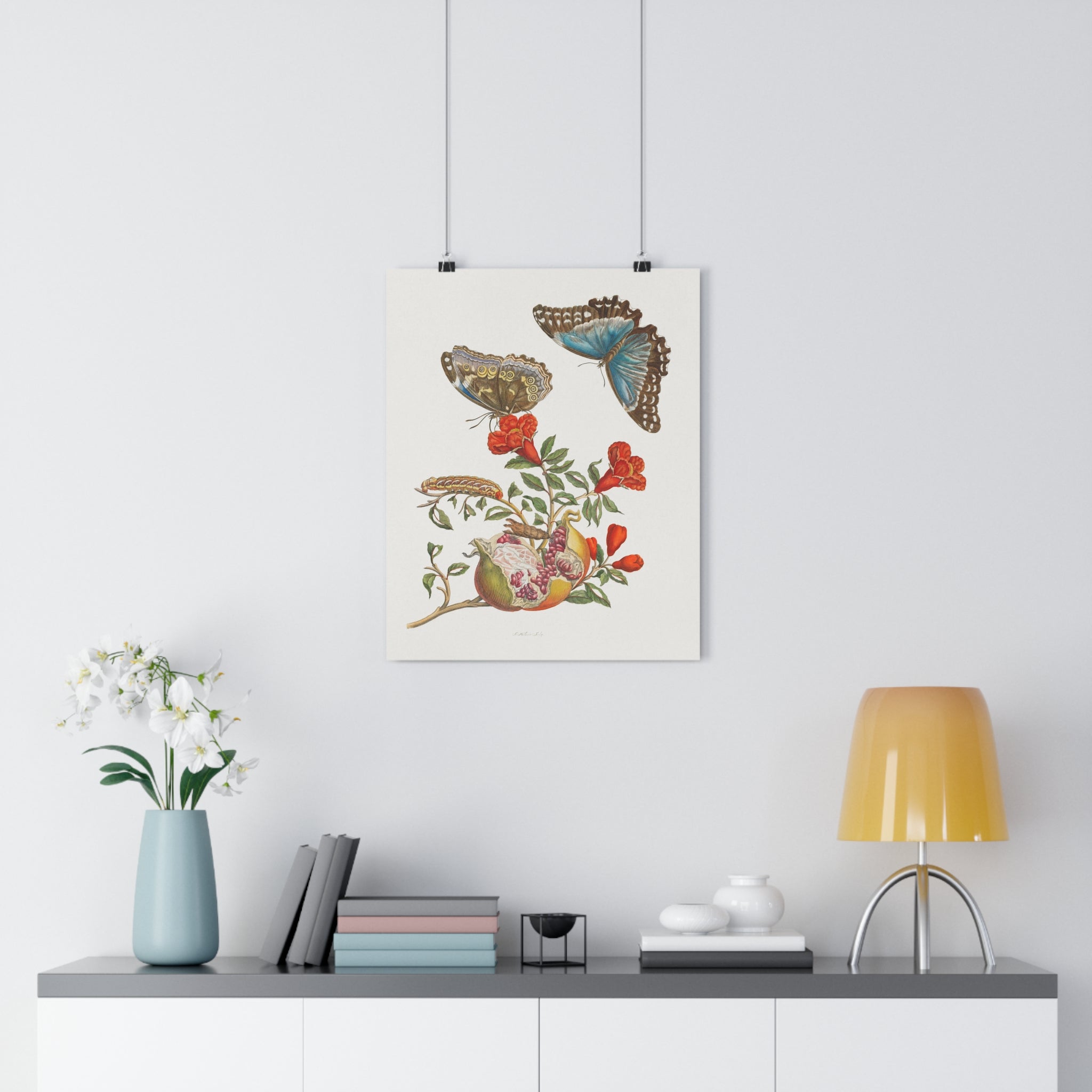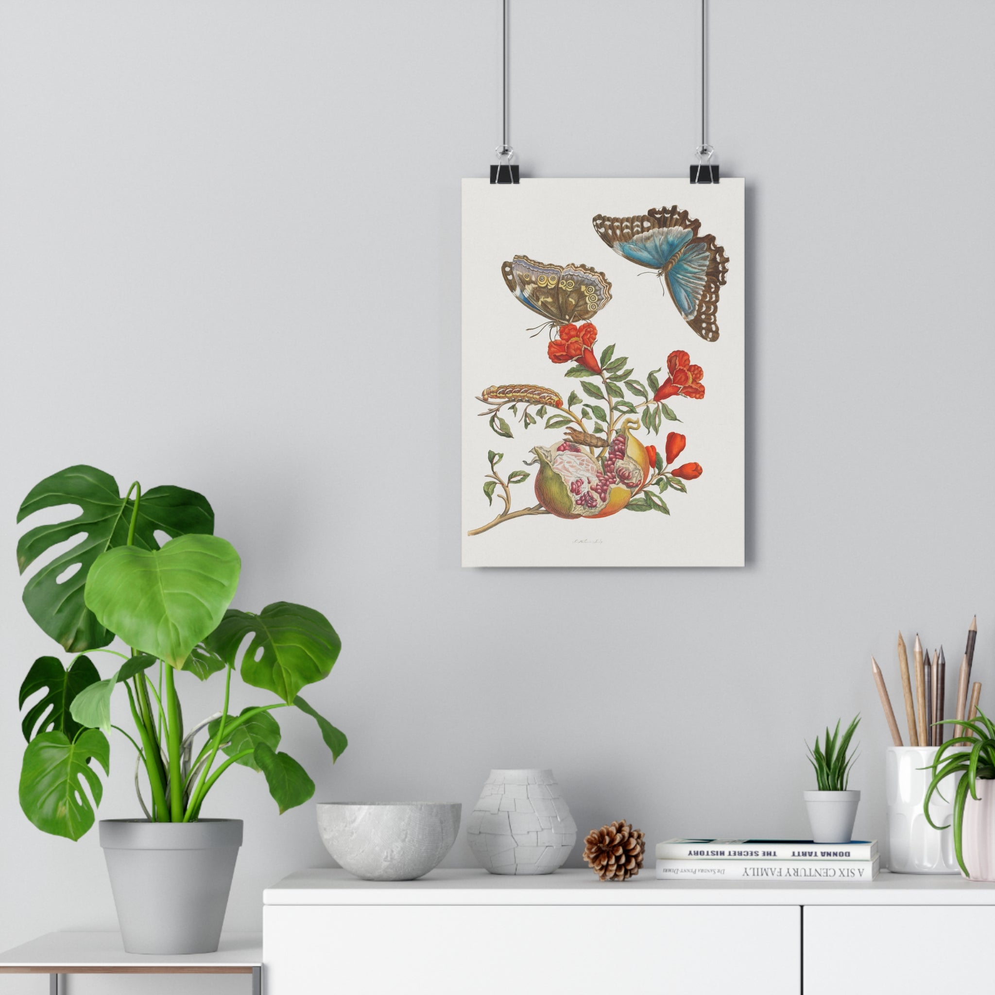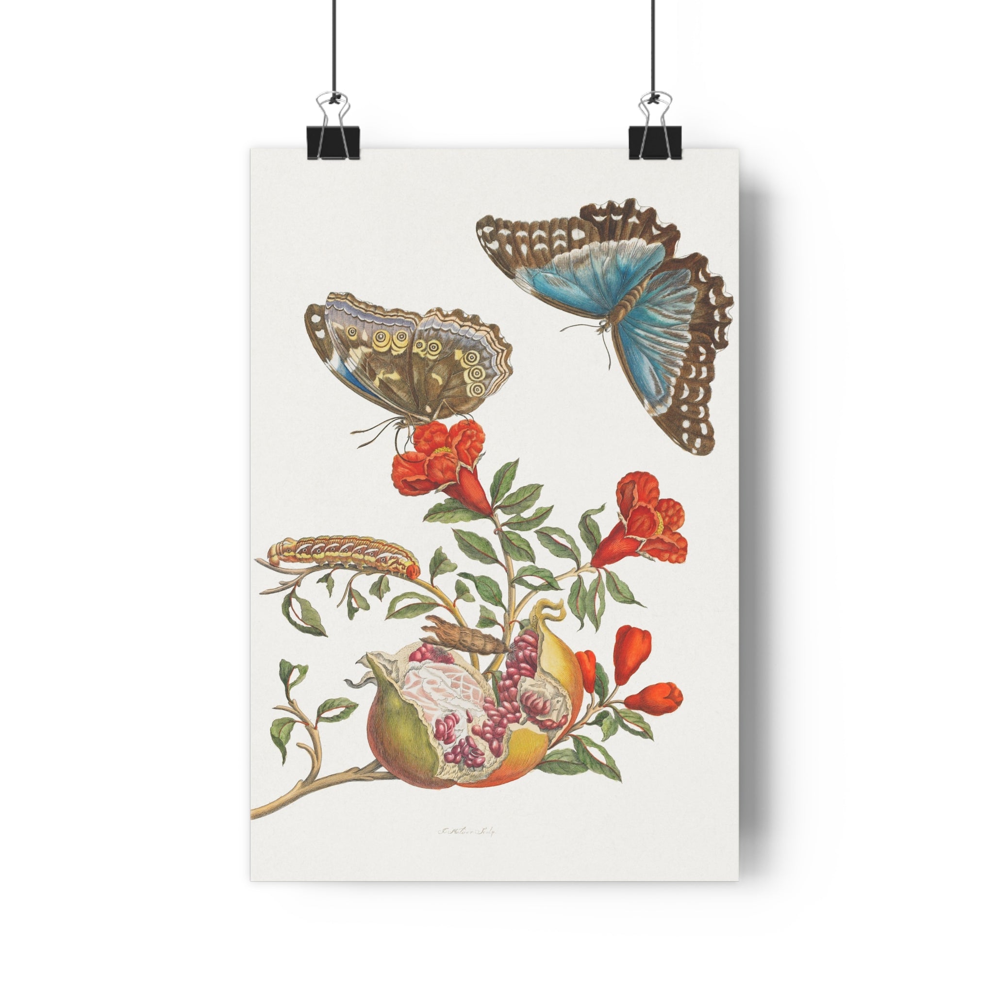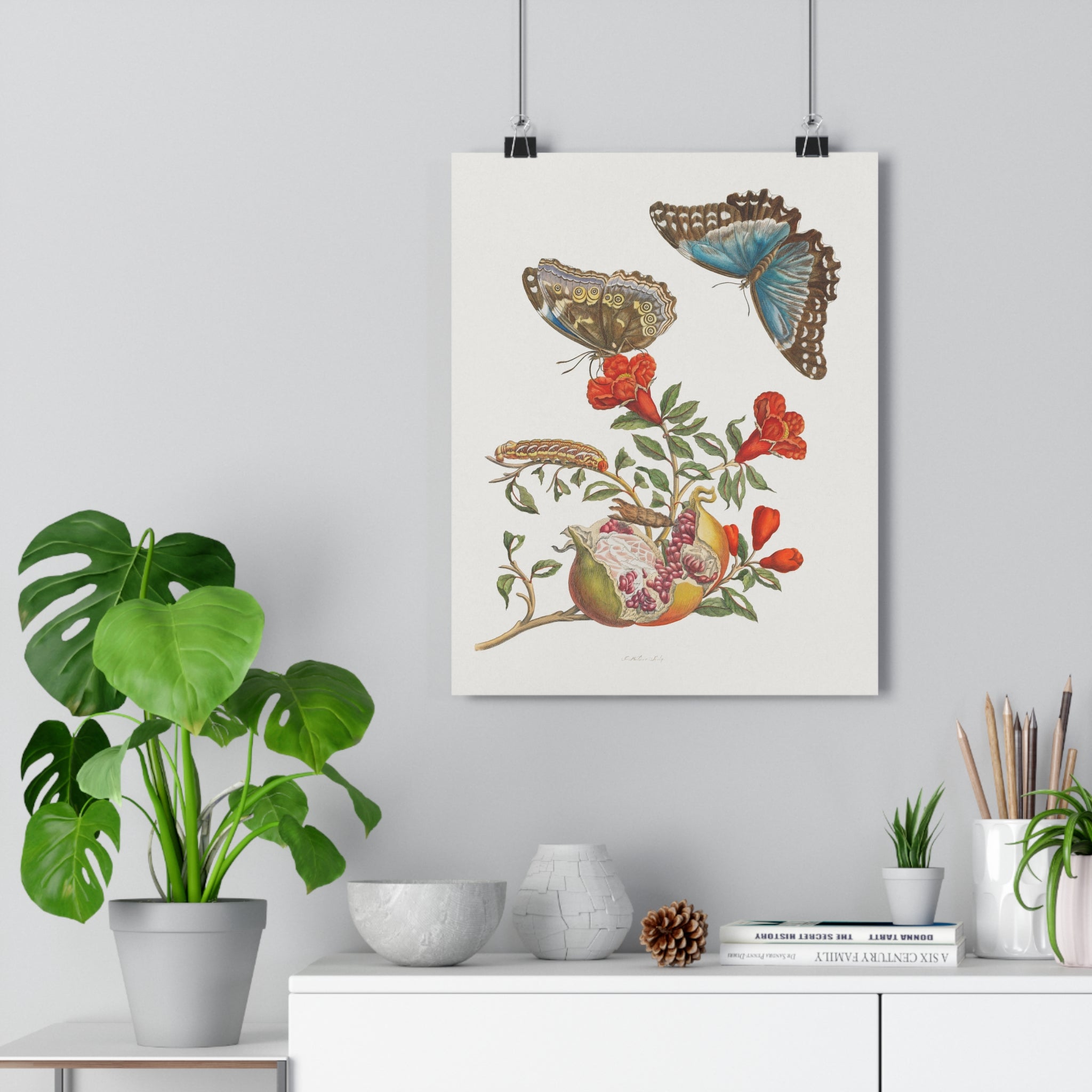 Blue Butterflies and Pomegranate Giclée Art Print offers museum-quality elegance inspired by one of history’s most celebrated naturalists. Available in four versatile sizes, this fine art print is giclée-printed on thick, archival matte paper, ensuring rich detail, vivid color, and long-lasting beauty suitable for gallery walls, reading rooms, offices, or botanical-themed spaces.