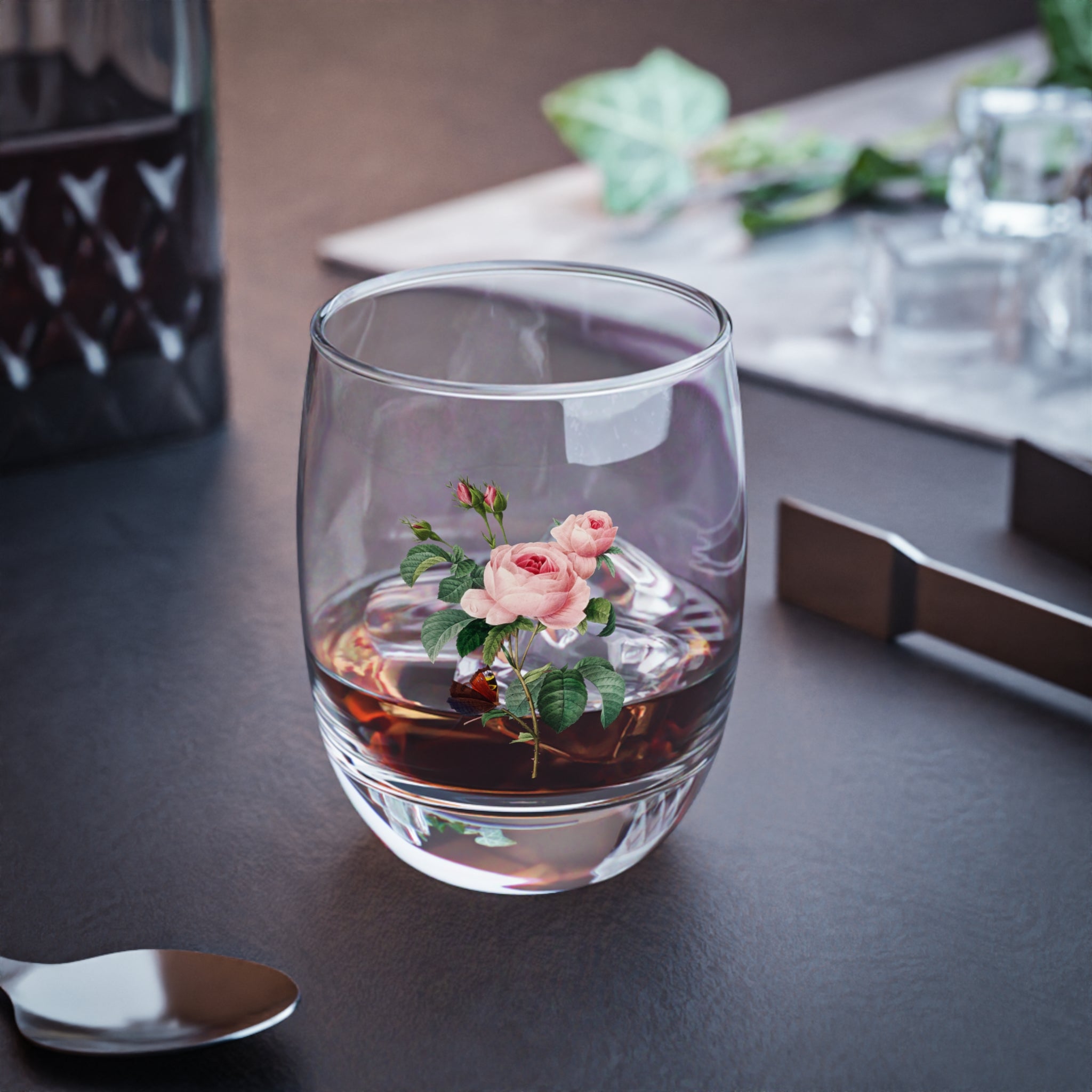 Cabbage Rose botanical illustration by Pierre-Joseph Redouté Whiskey Glass