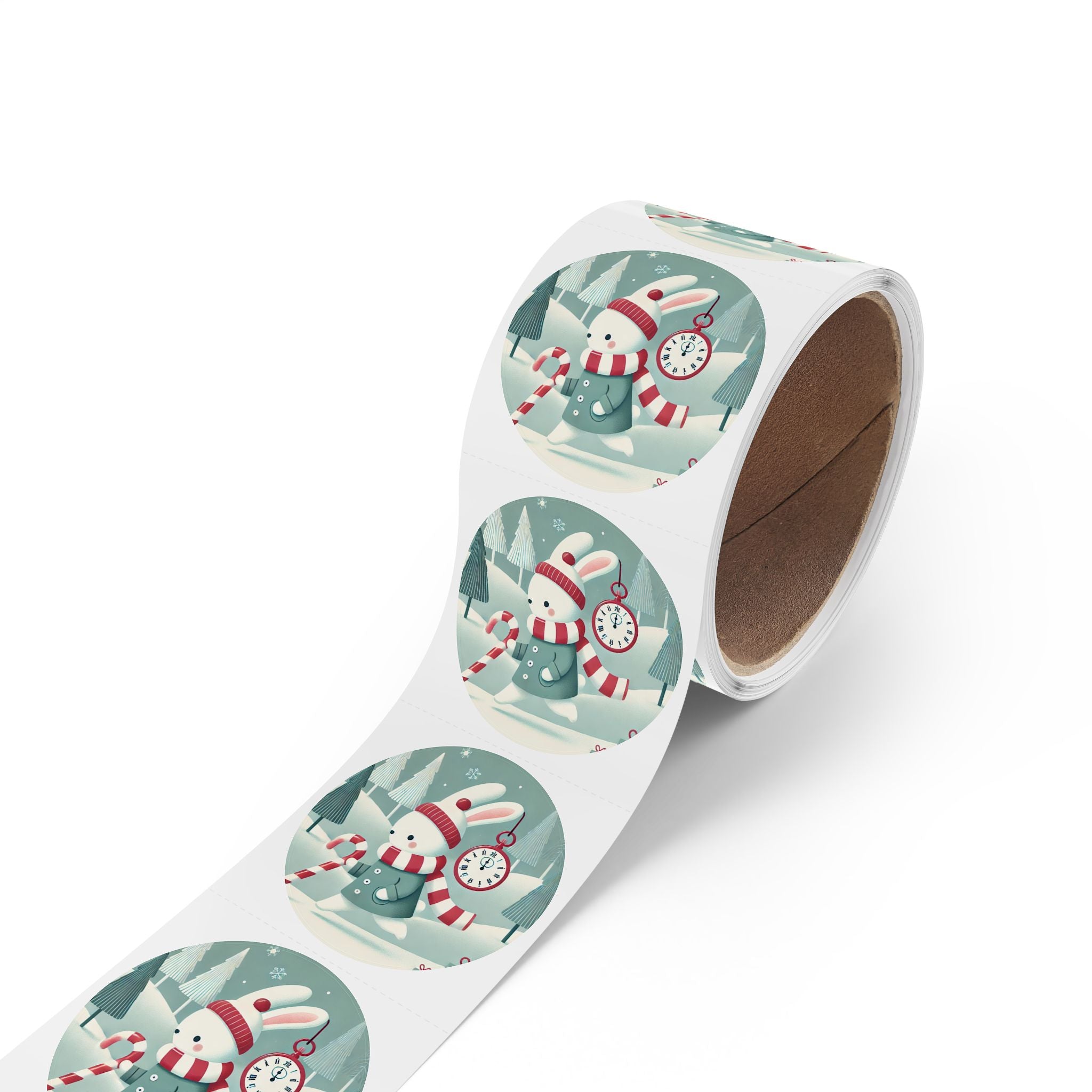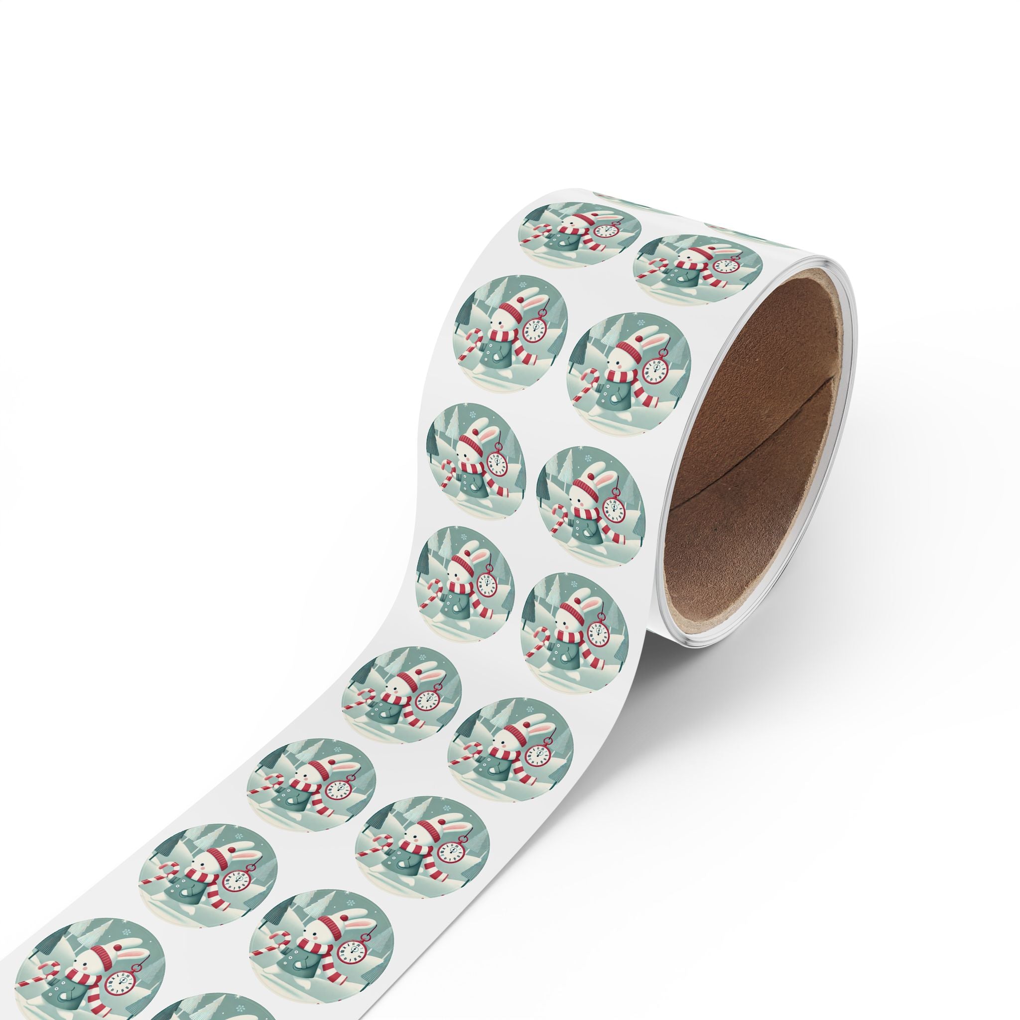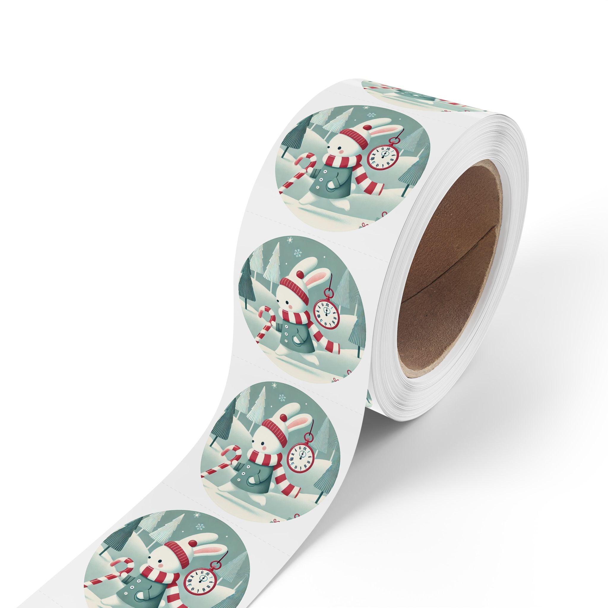Bring festive charm to your gifts, crafts, and décor with these Candy Cane Timekeeper Bunny round sticker label rolls. Made with BOPP material, they’re extra durable against scratches, high temperatures, water, and sunlight—ensuring your designs look vibrant and lasting. Each sticker comes with a glossy finish for a polished effect, available in 1"x1" or 2"x2" sizes, and in rolls of 50, 100, or 250 pieces to fit projects big or small.