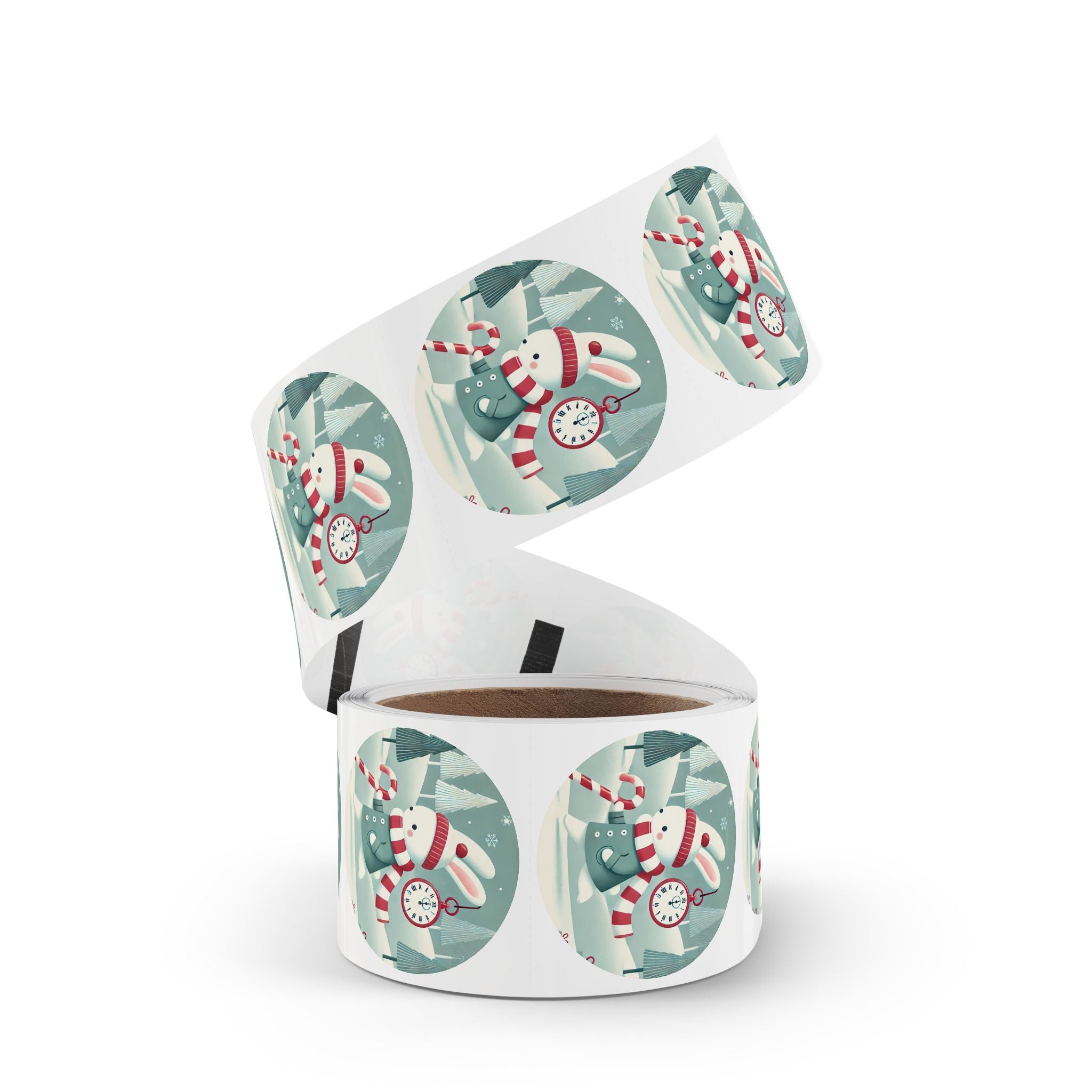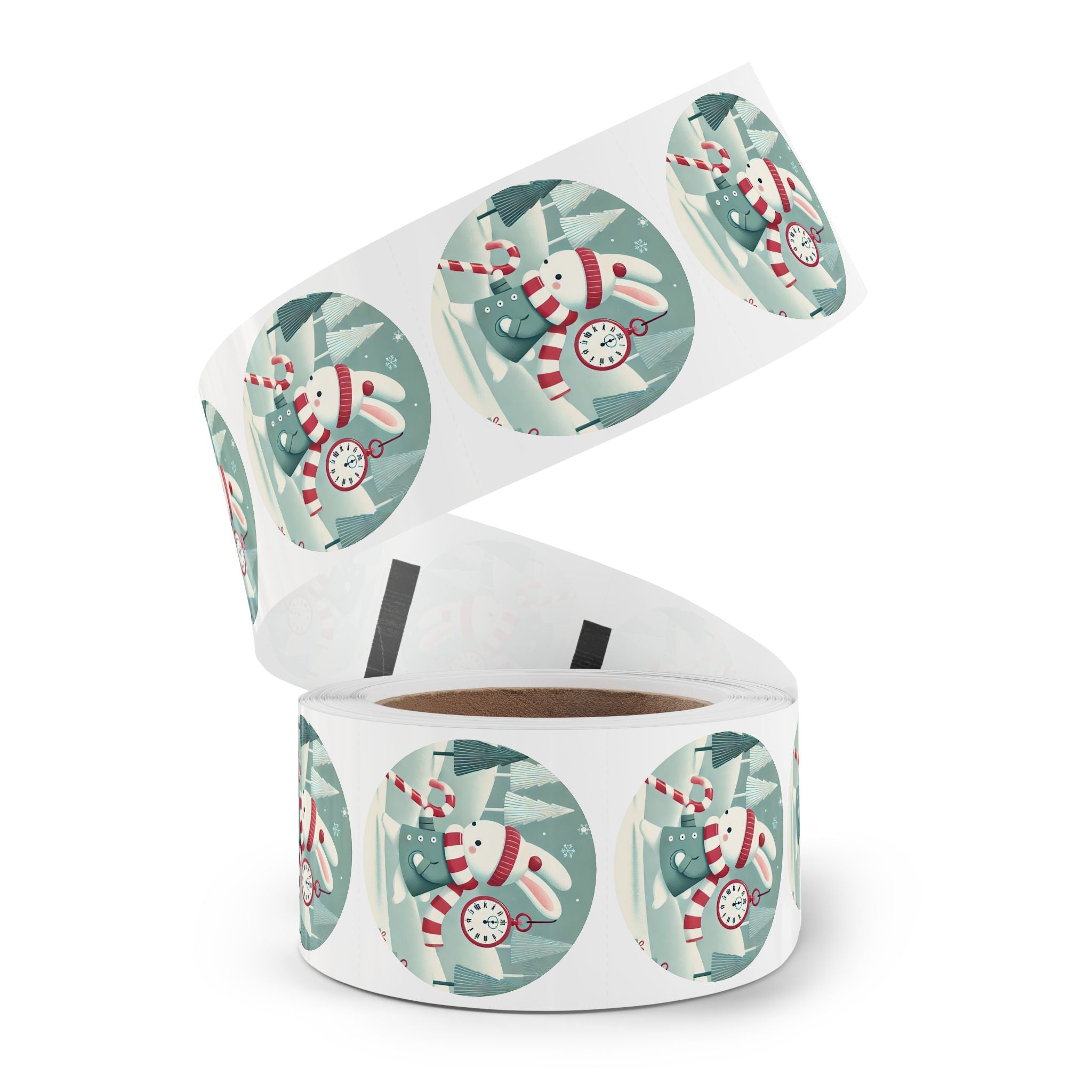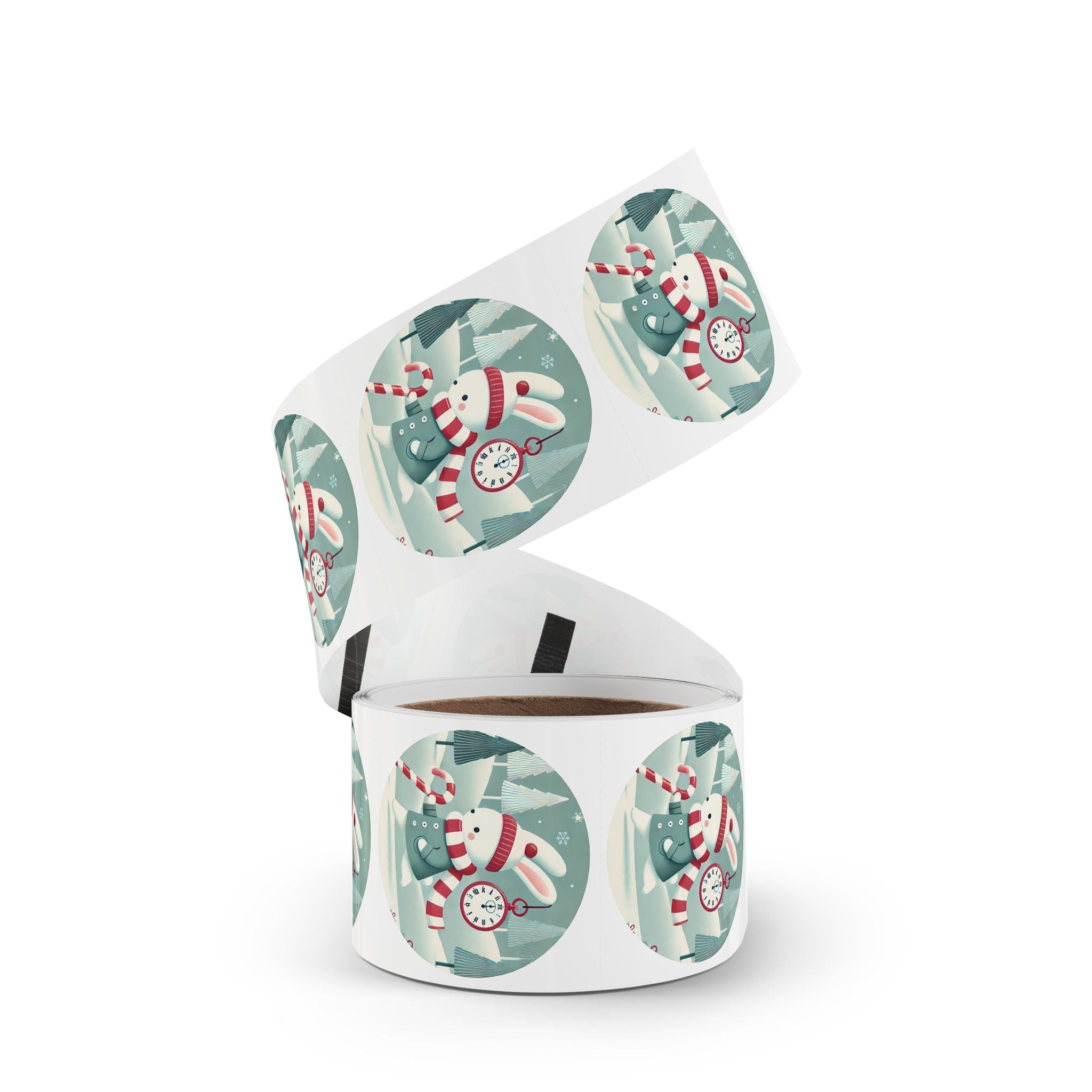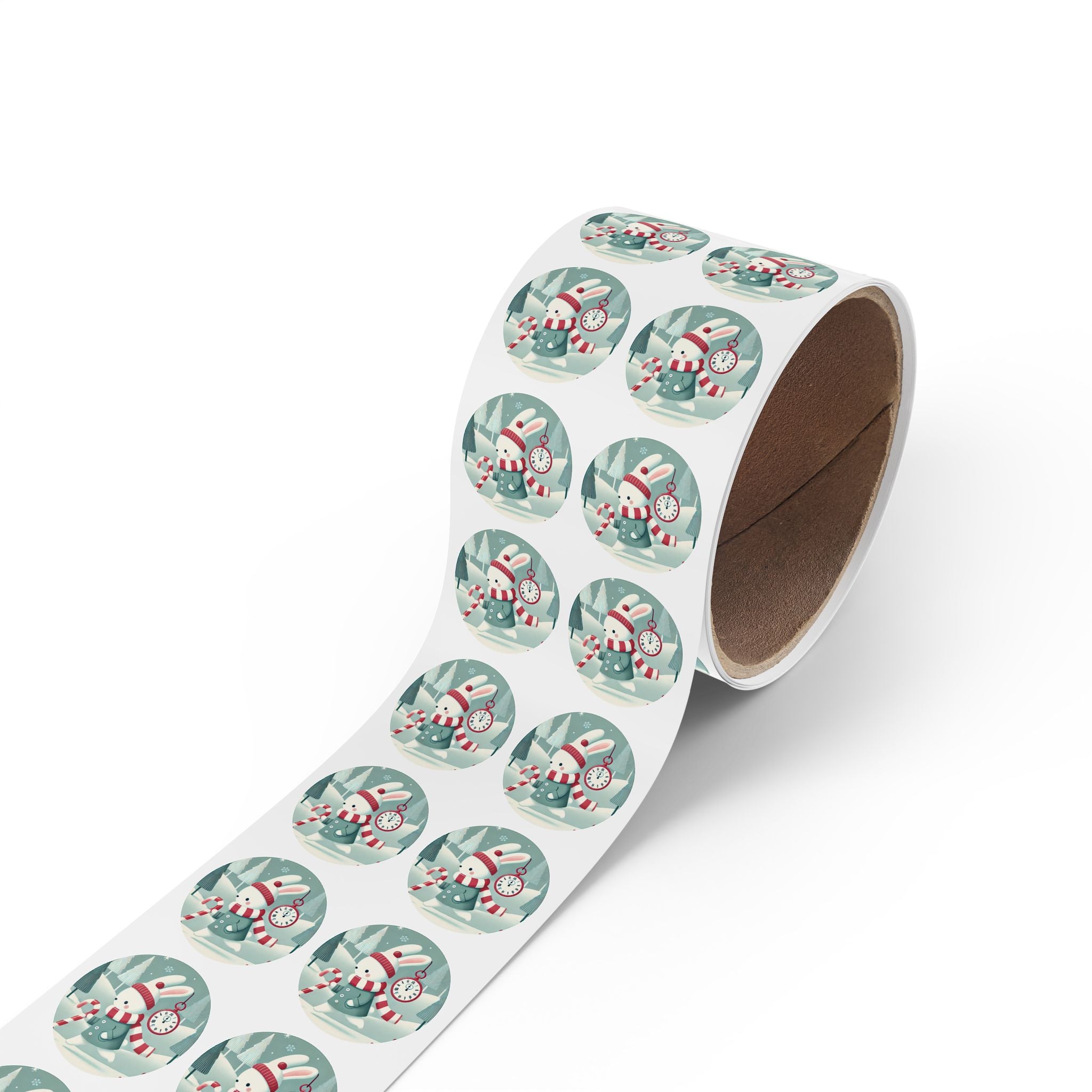 Bring festive charm to your gifts, crafts, and décor with these Candy Cane Timekeeper Bunny round sticker label rolls. Made with BOPP material, they’re extra durable against scratches, high temperatures, water, and sunlight—ensuring your designs look vibrant and lasting. Each sticker comes with a glossy finish for a polished effect, available in 1"x1" or 2"x2" sizes, and in rolls of 50, 100, or 250 pieces to fit projects big or small.