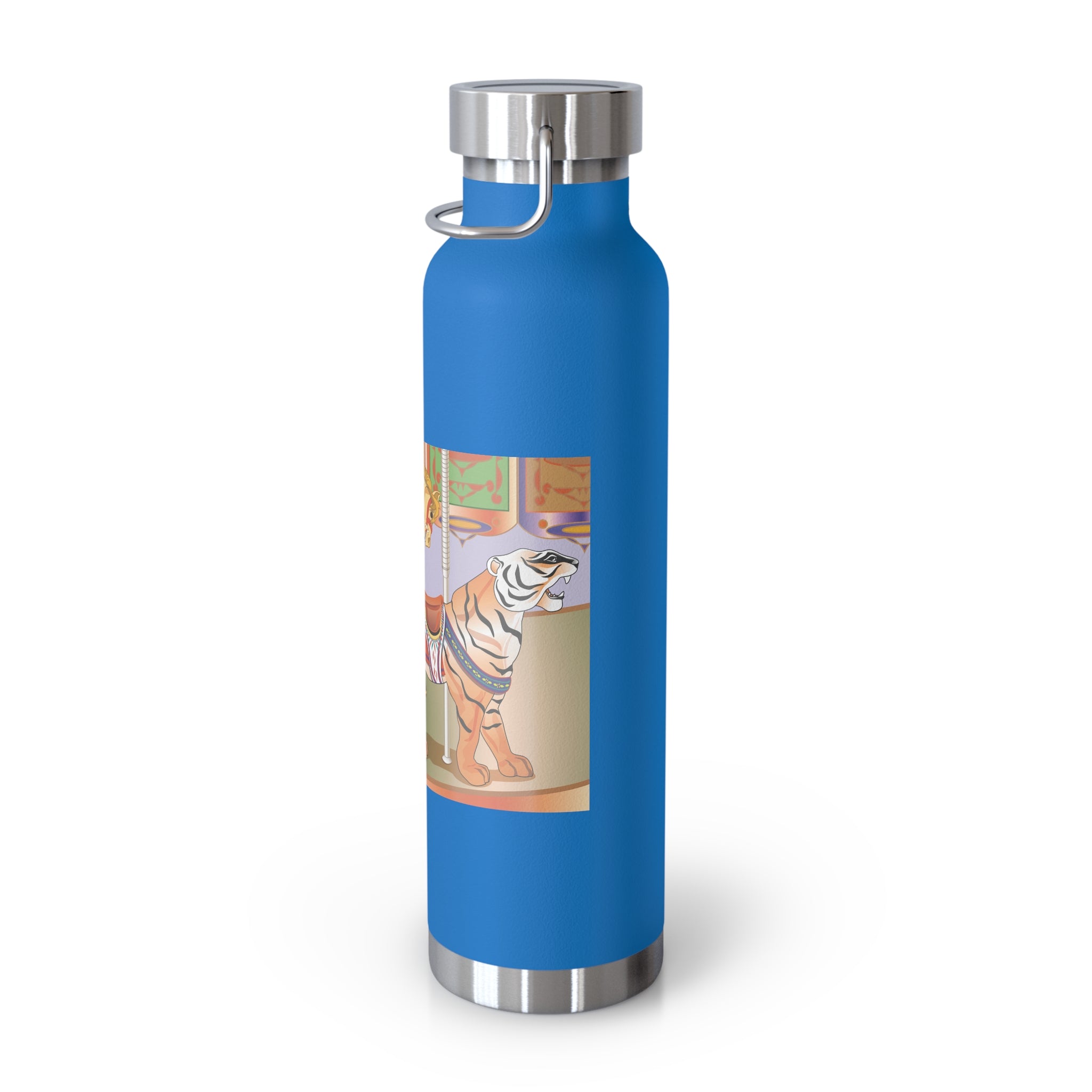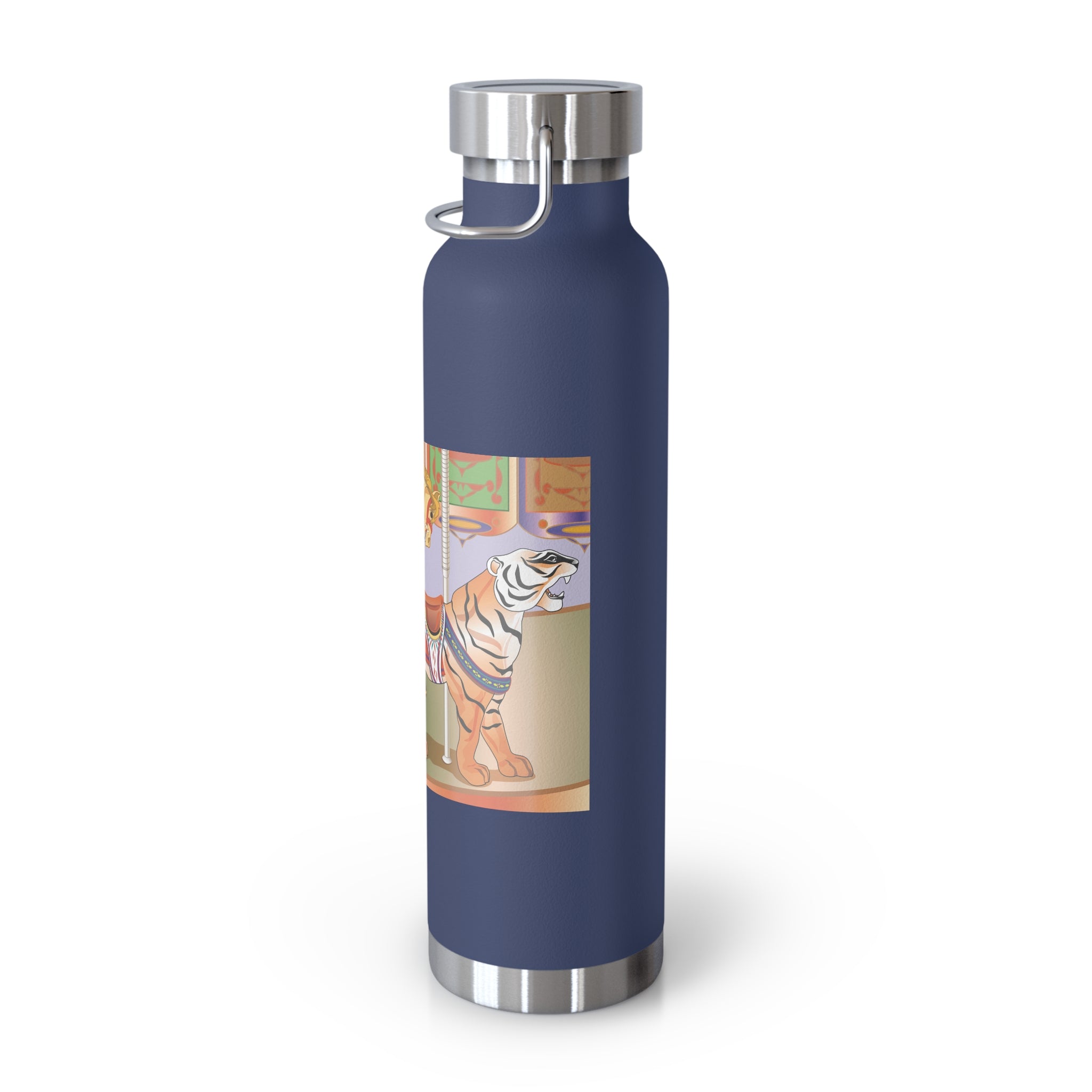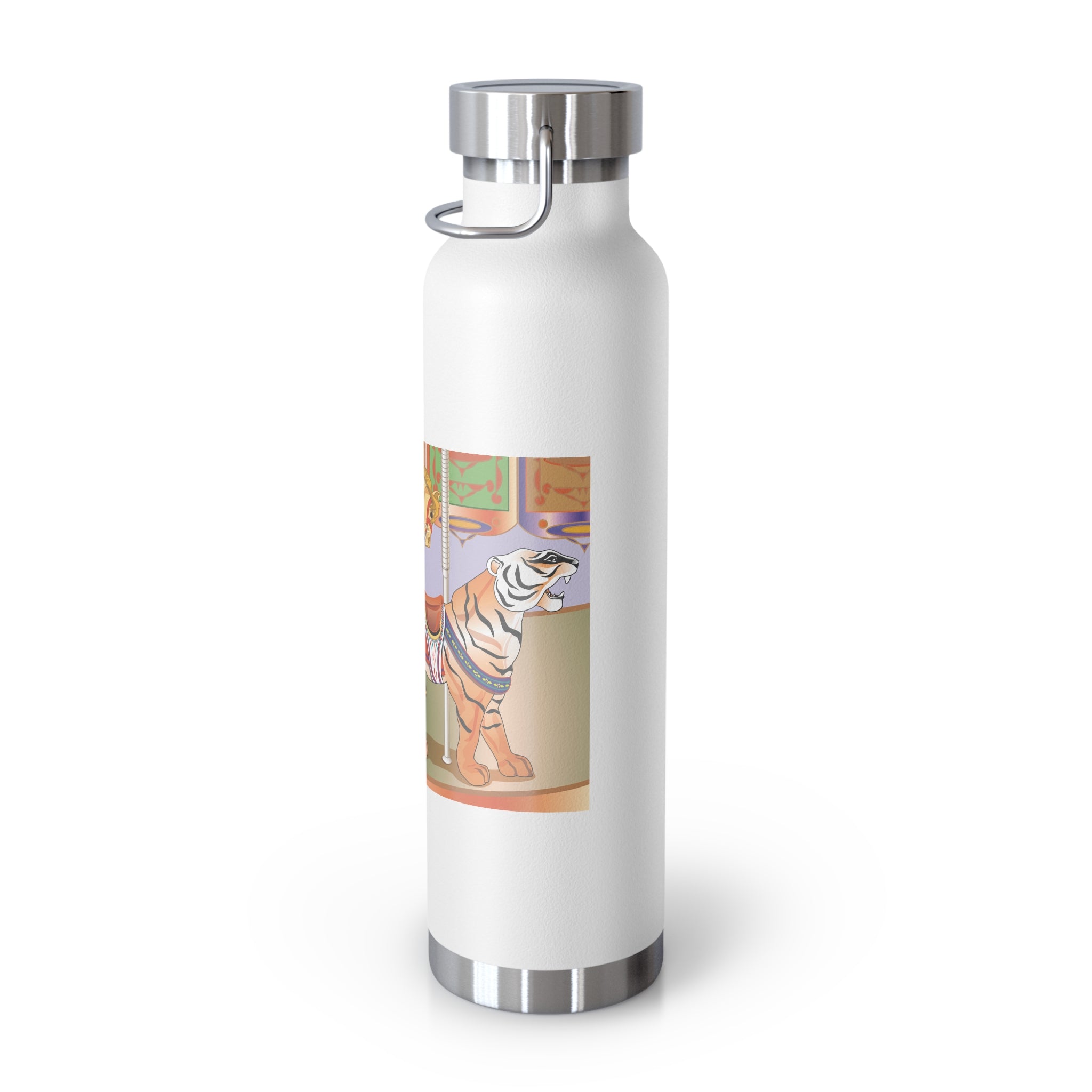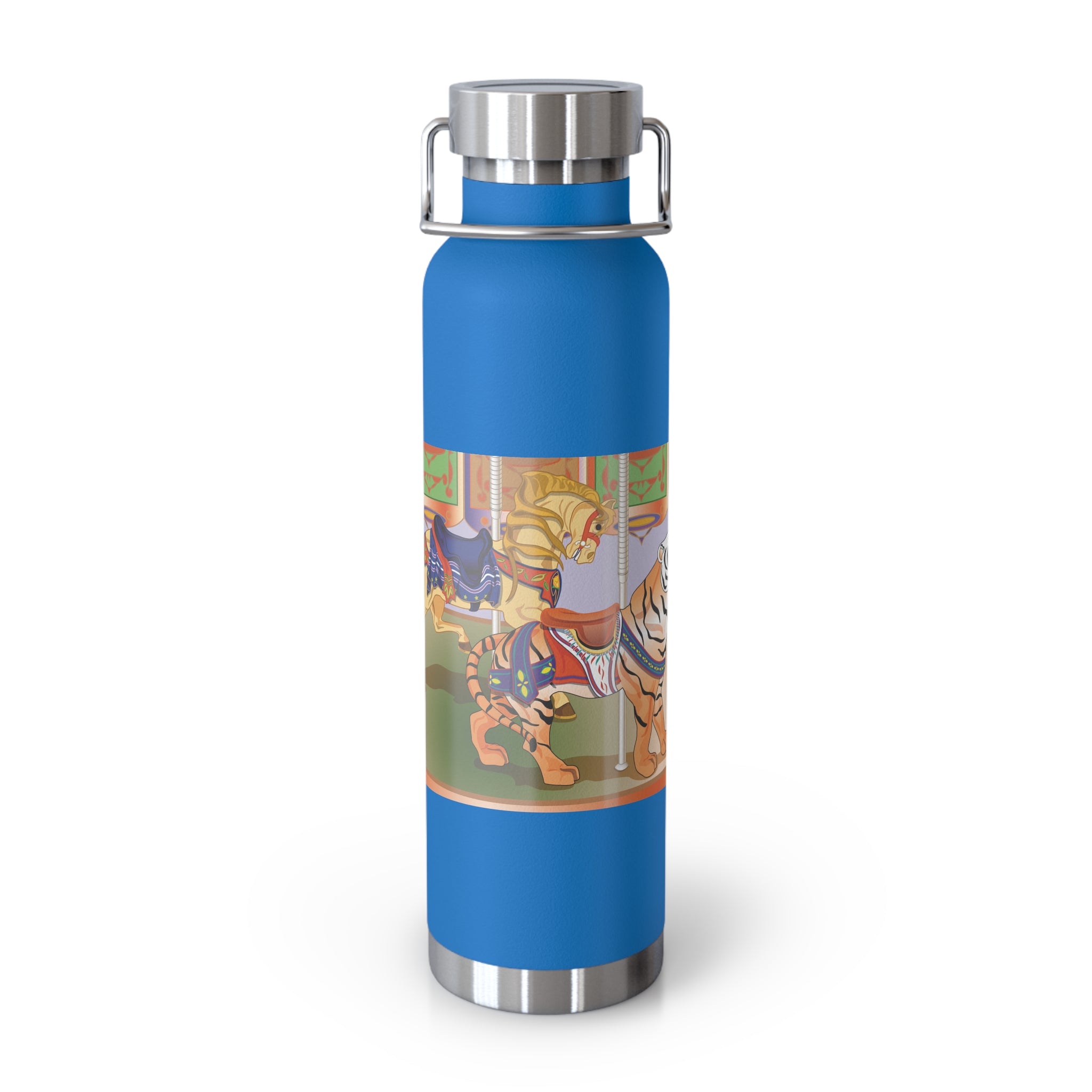 Artwork created, designed and digitally remastered by Sarasvati Designs. A carousel painting featuring a golden horse and an orange tiger, set against a backdrop of colorful panels, evokes a sense of nostalgia, magic, and joy.
