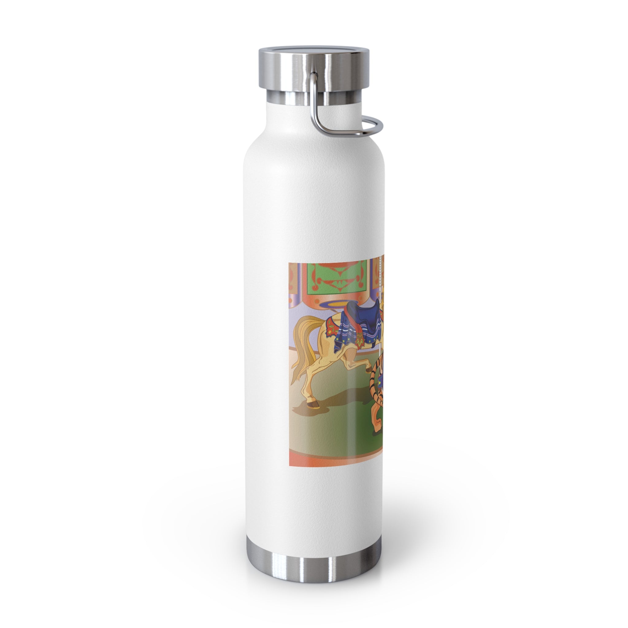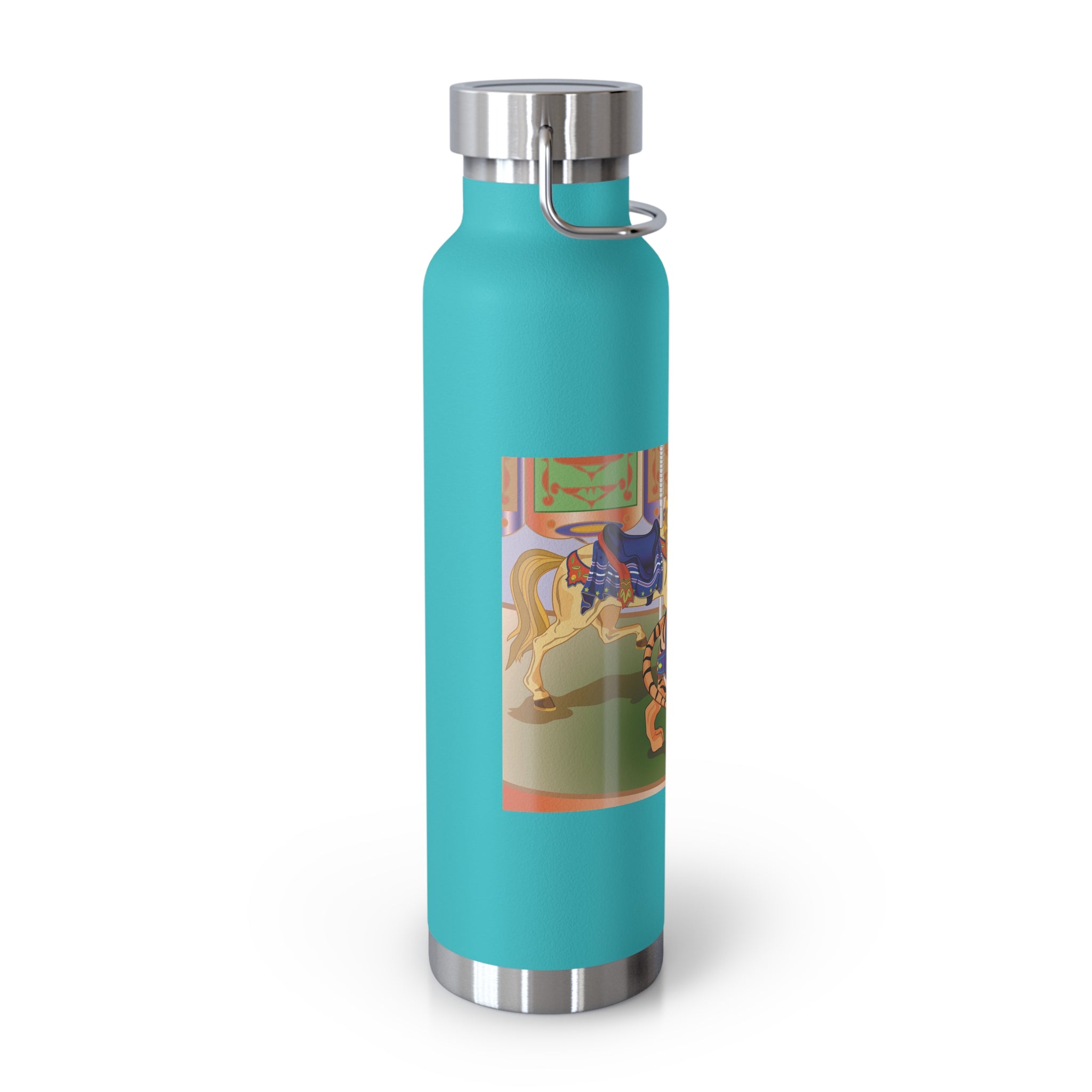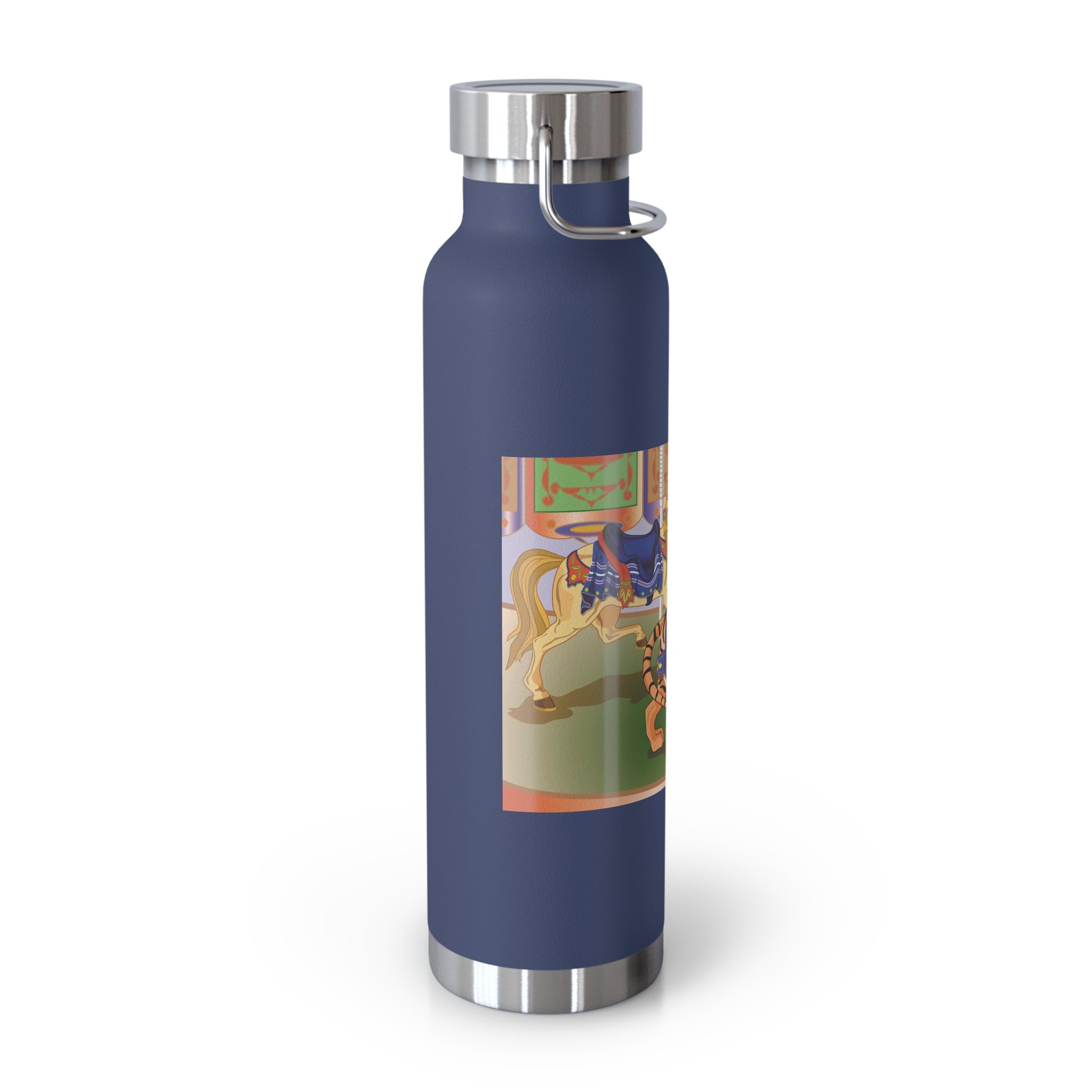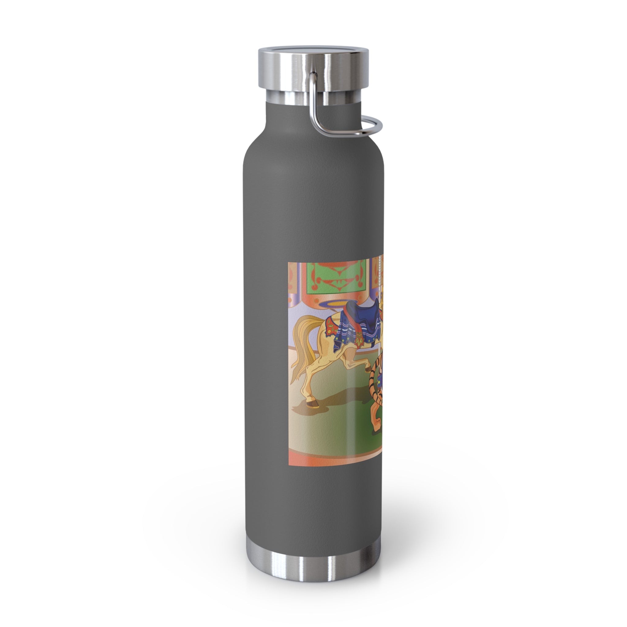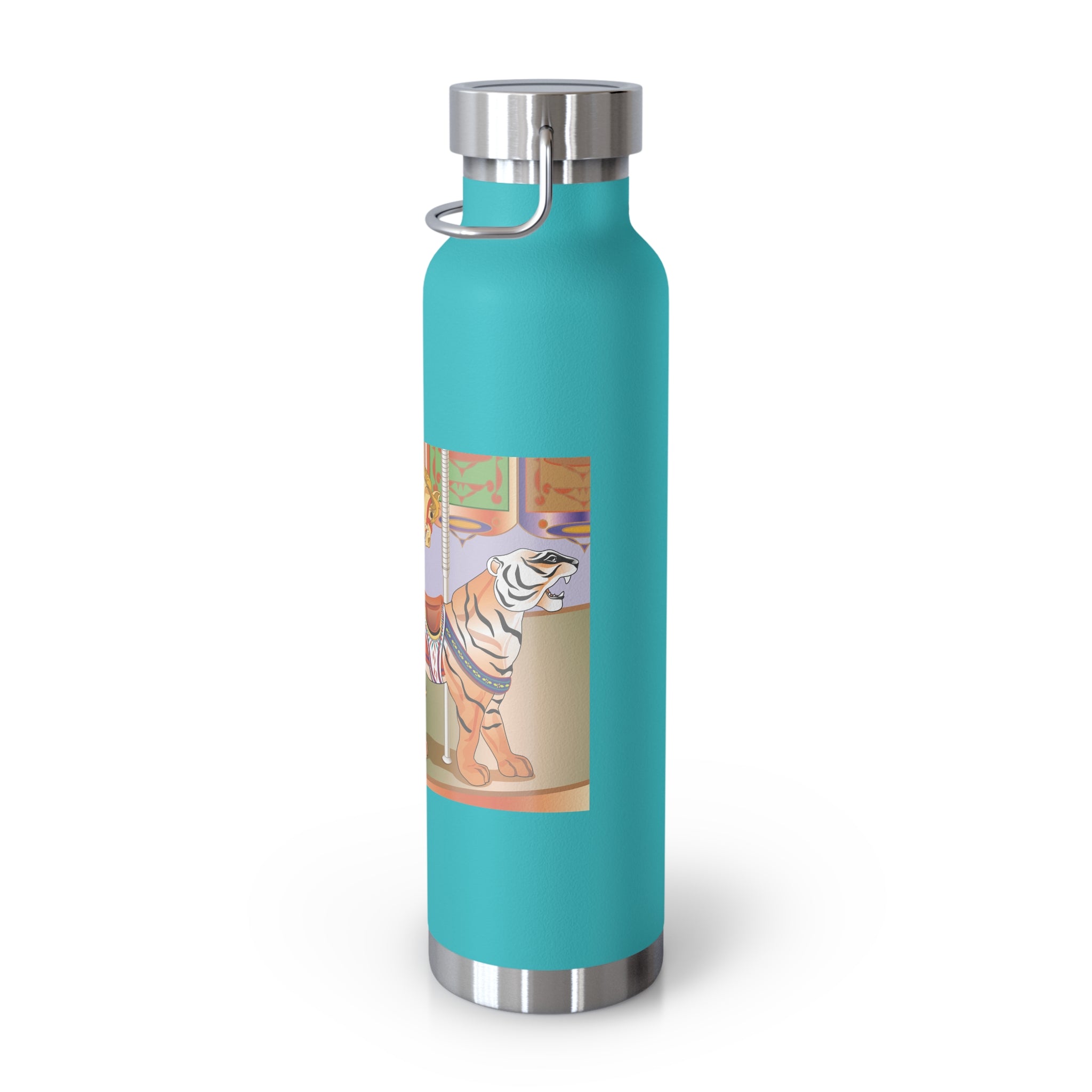 Artwork created, designed and digitally remastered by Sarasvati Designs. A carousel painting featuring a golden horse and an orange tiger, set against a backdrop of colorful panels, evokes a sense of nostalgia, magic, and joy.
