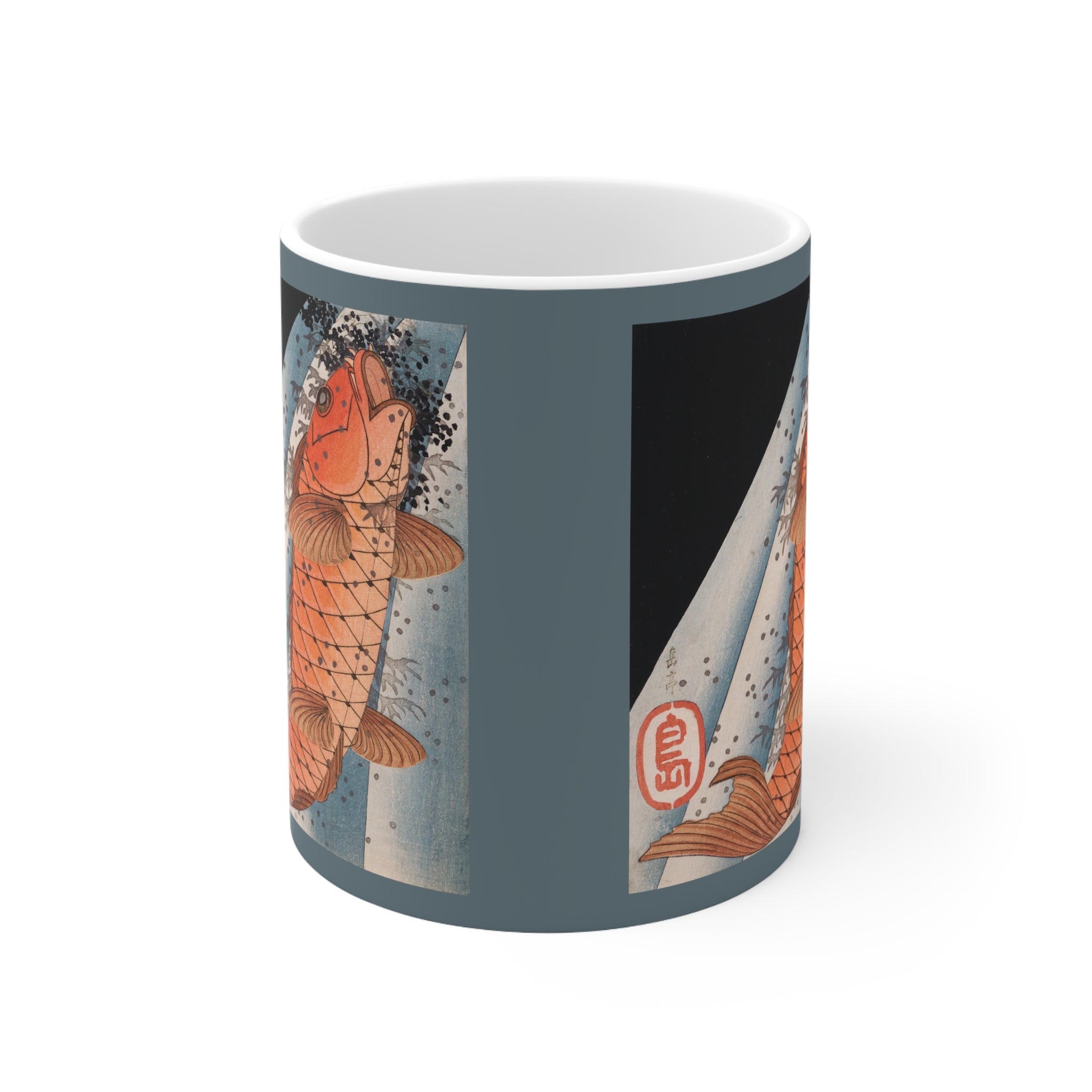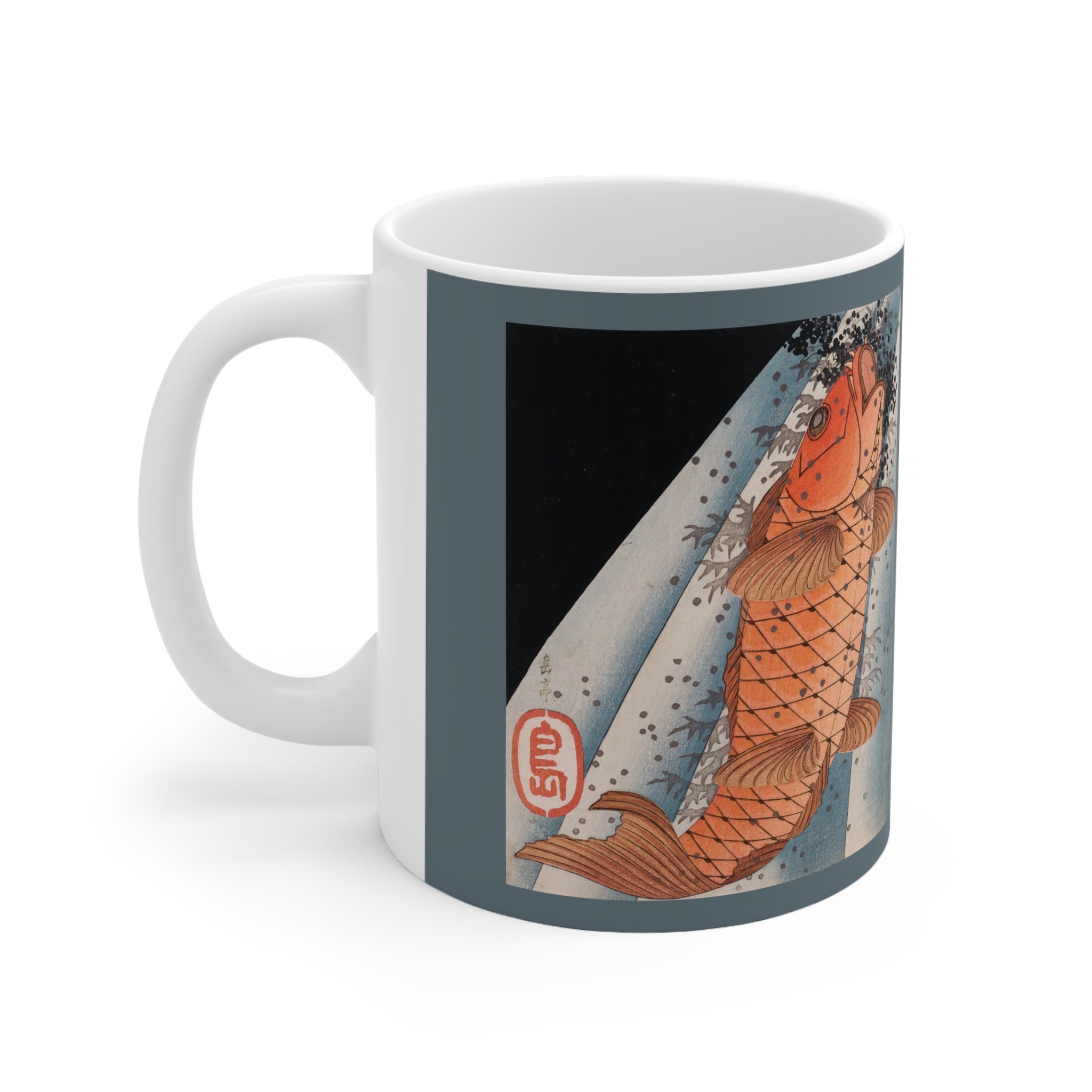 “Carp Swimming up a Waterfall” (circa 1827-28) by Yashima Gakutei is a Japanese ukiyo-e woodblock print. It depicts a carp swimming upstream in a waterfall. The print is notable for its dynamic composition and its use of color. Gakutei used a variety of shades of blue and green to create a sense of movement and depth in the waterfall. The carp is shown in bright red and orange, contrasting with the cooler colors of the waterfall. The print is also significant for its symbolism. In Japanese culture, the carp is a symbol of perseverance and determination. It is said that if a carp can swim upstream and leap over the Dragon Gate, it will be transformed into a dragon. Thus, the print can be seen as a representation of the human struggle to overcome challenges and achieve their goals. Overall, Carp Swimming up a Waterfall is a beautiful and inspiring work of art. It is a testament to Gakutei's skill as a printmaker and his understanding of Japanese culture.