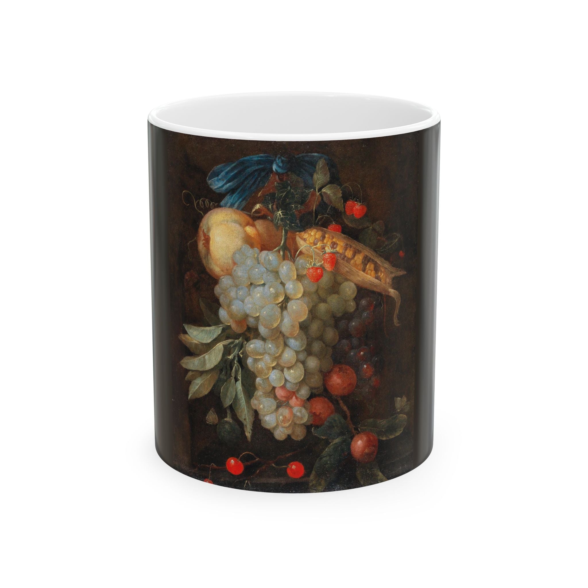 " is a captivating artwork created by Joris van Son, a Dutch still-life painter of the 17th century. Known for his skillful renderings of fruit compositions, van Son's work exemplifies the richness and abundance of the Dutch Golden Age still-life tradition. In this particular artwork, van Son presents a meticulously arranged hanging basket filled with an array of luscious fruits.