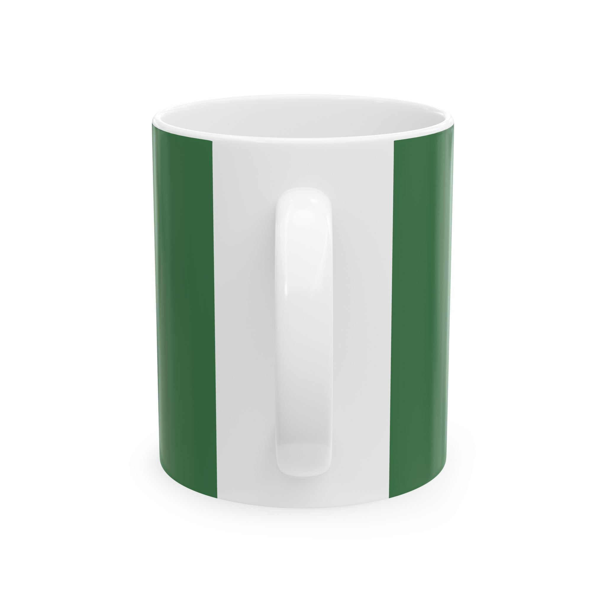 This 11 oz ceramic mug is the perfect gift for coffee, tea, and chocolate lovers. It's made of high-quality white ceramic that is lead and BPA-free, and it's microwave and dishwasher safe for easy cleanup. The mug has rounded corners and a comfortable C-handle for a secure grip.