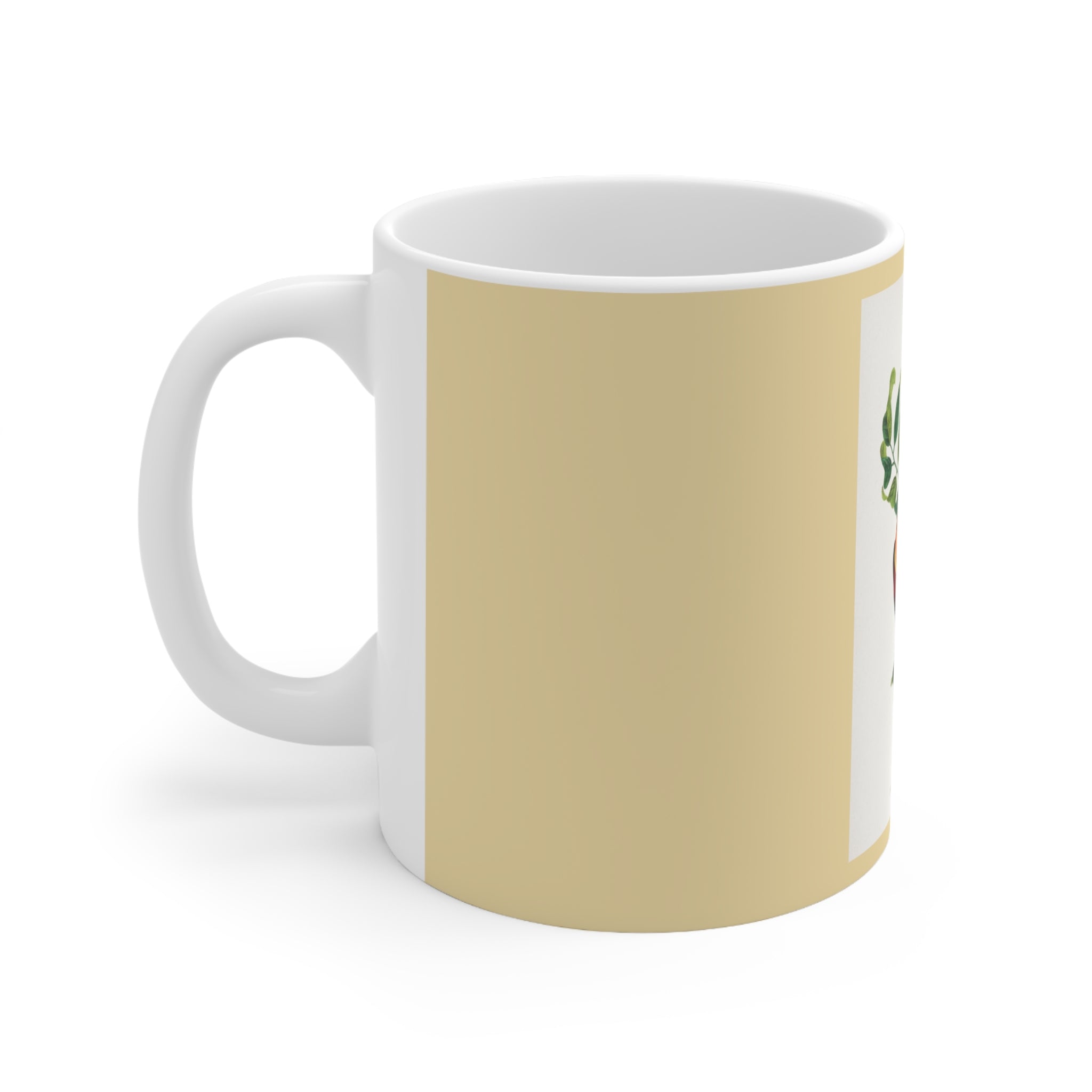 This 11 oz ceramic mug is the perfect gift for coffee, tea, and chocolate lovers. It's made of high-quality white ceramic that is lead and BPA-free, and it's microwave and dishwasher safe for easy cleanup. The mug has rounded corners and a comfortable C-handle for a secure grip.