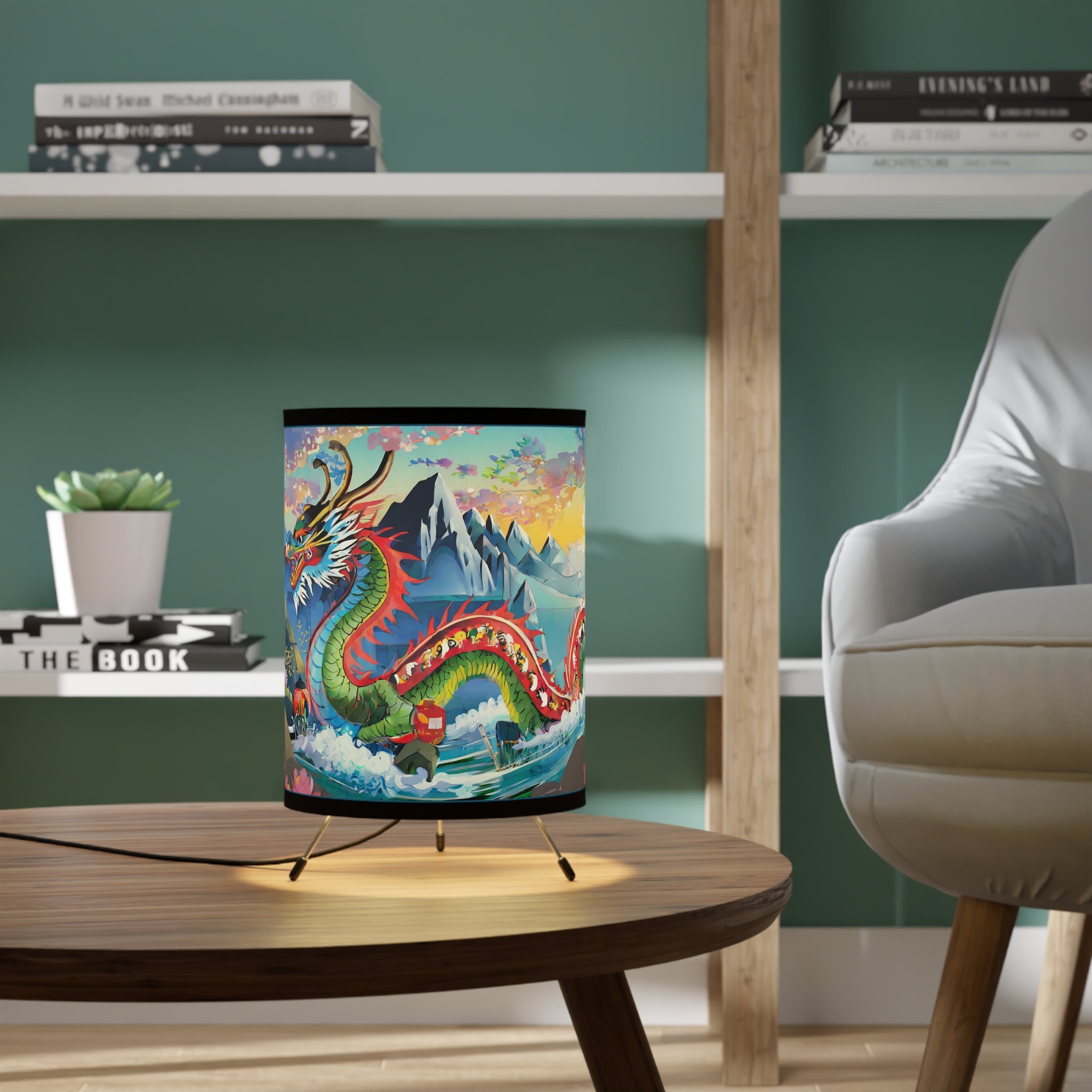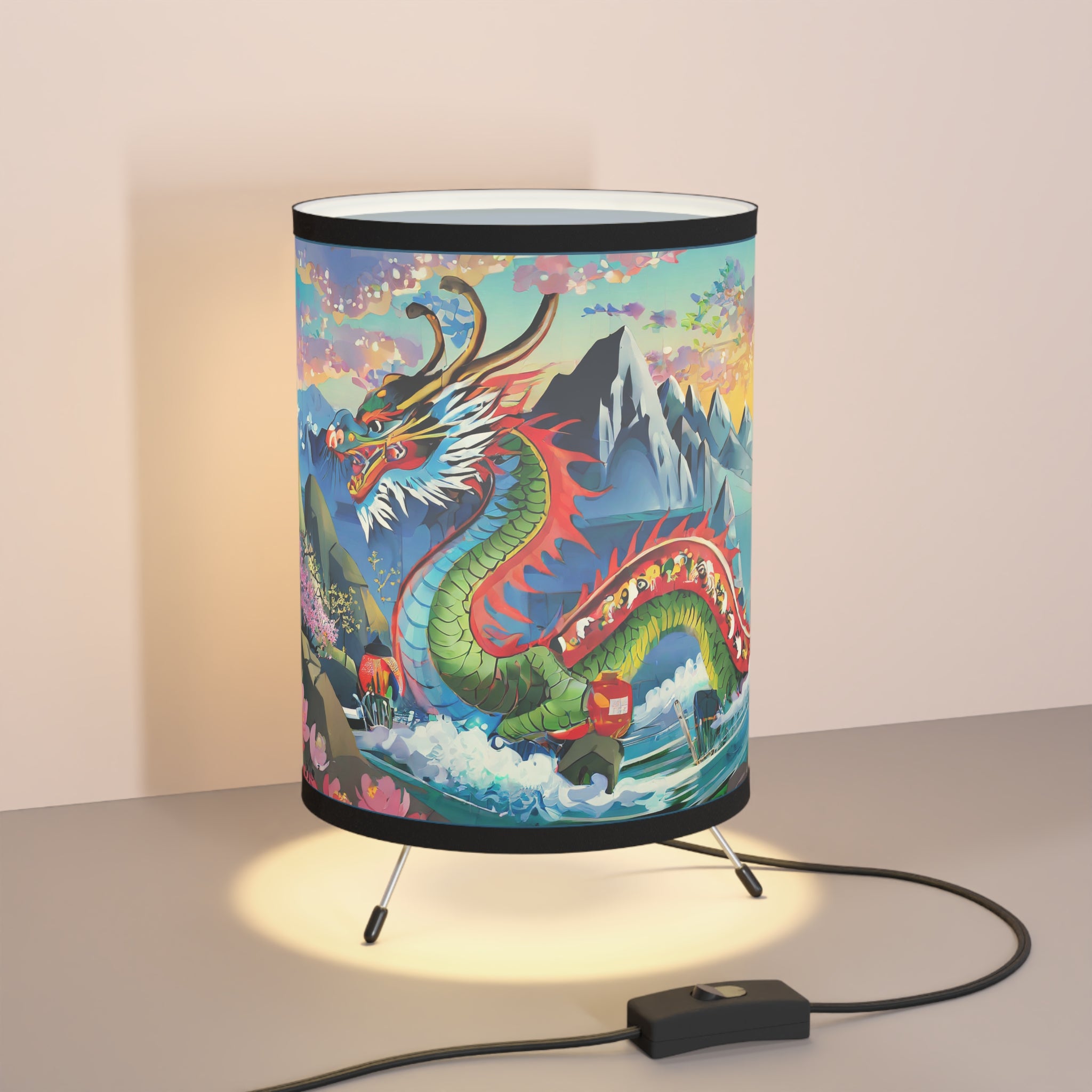 Transform your room with this epic tripod lamp! This sturdy lamp has a cool metal base, and the best part? It comes with an awesome pre-designed artwork for the shade! The high-resolution image is super vibrant, so your favorite design will light up your space in style. This lamp isn't just for lighting, it's a statement piece that lets you show off your personality. Light up your room and your imagination with this must-have lamp!