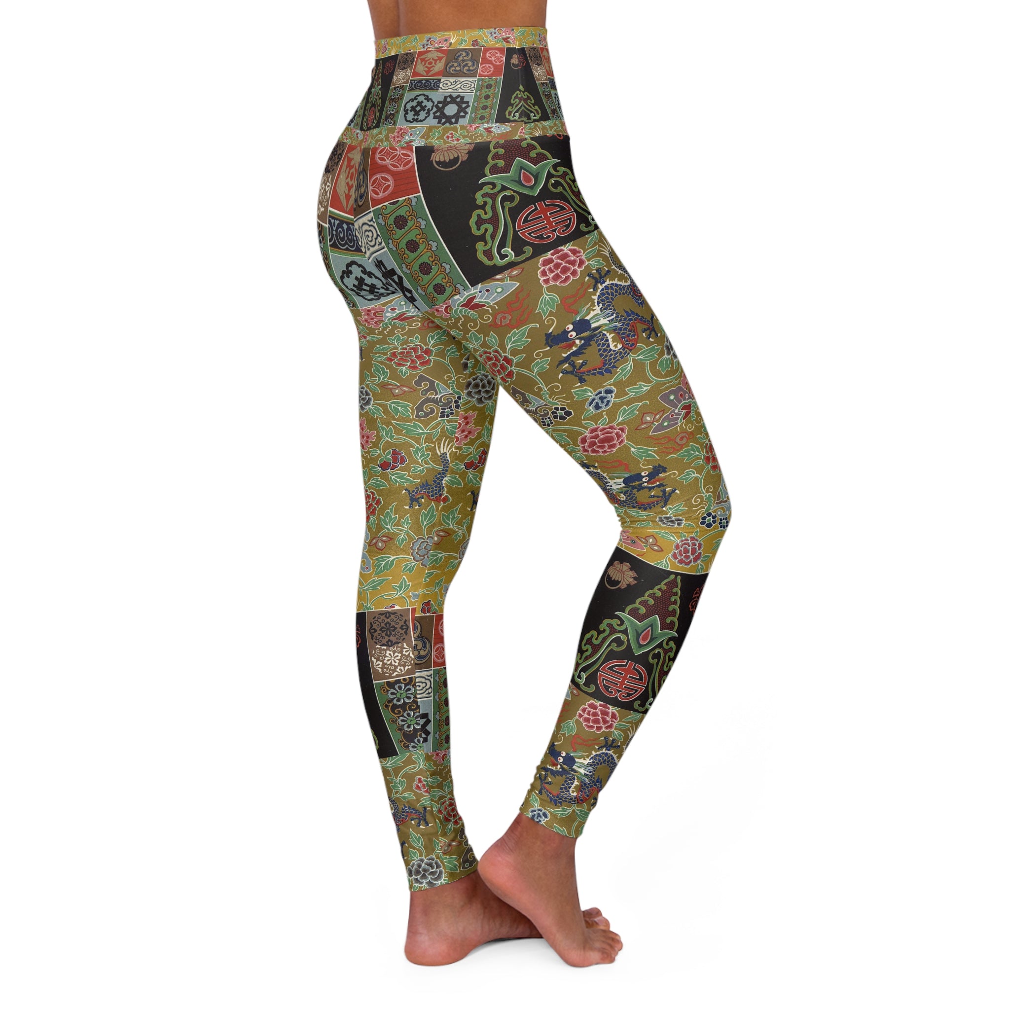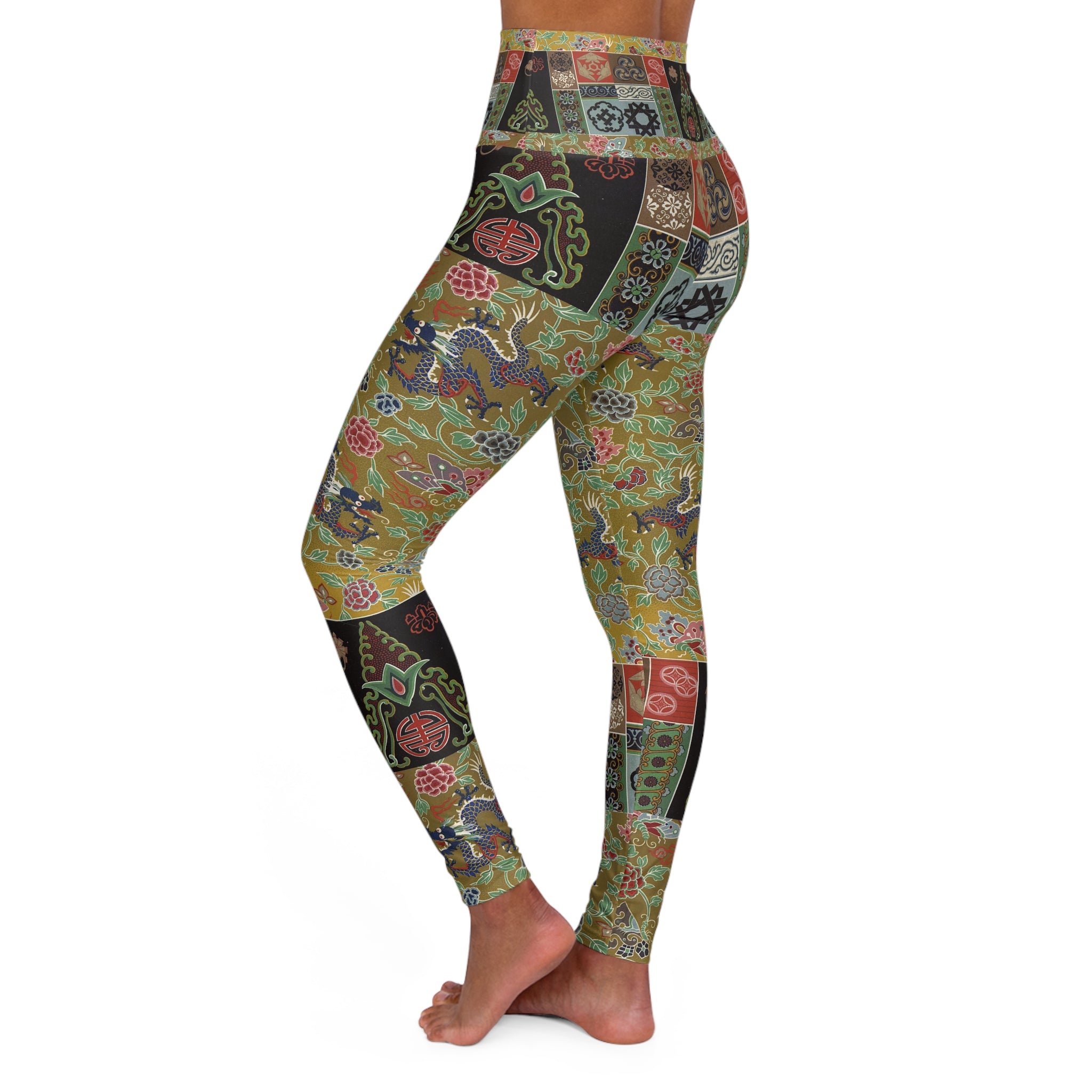 Immerse yourself in vintage-inspired elegance with these high-waisted yoga leggings, adorned with captivating artwork and prints. Combining a slender, high-waisted design, these leggings seamlessly accompany you from workouts to daily outings. The unique all-over print infuses a burst of style into your athleisure ensemble, showcasing an array of timeless designs that are ready to make a statement.