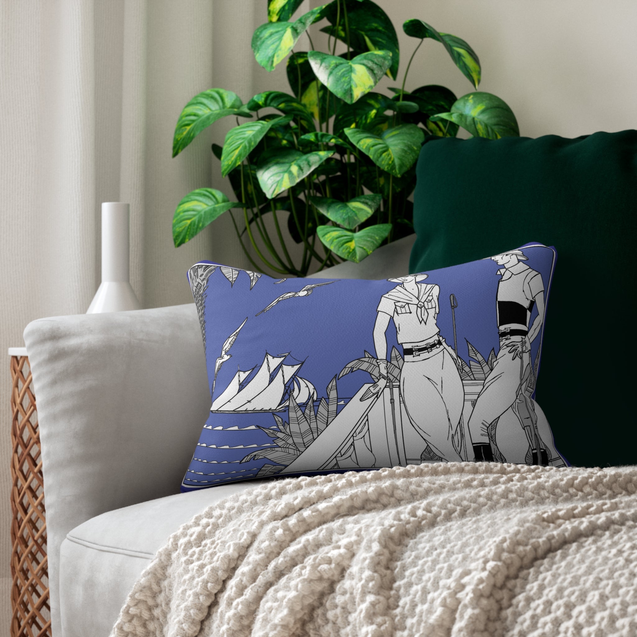 Enhance your home decor with this exquisite Art Deco inspired lumbar pillow. Crafted with care, it features a spun-polyester fabric casing that is not only inherently mildew and water-resistant but also radiates elegance. The pillow comes with a stuffing pillow included, ensuring a plump and comfortable feel. With its hidden beige zipper, this pillow maintains a finished and stylish appearance, seamlessly blending with your existing decor. Perfectly sized to provide lumbar support, it adds both aesthetic charm and functionality to your living space. Whether you're decorating your own home or searching for a thoughtful gift, this art deco-inspired lumbar pillow is a delightful choice that will be cherished for its beauty and practicality.