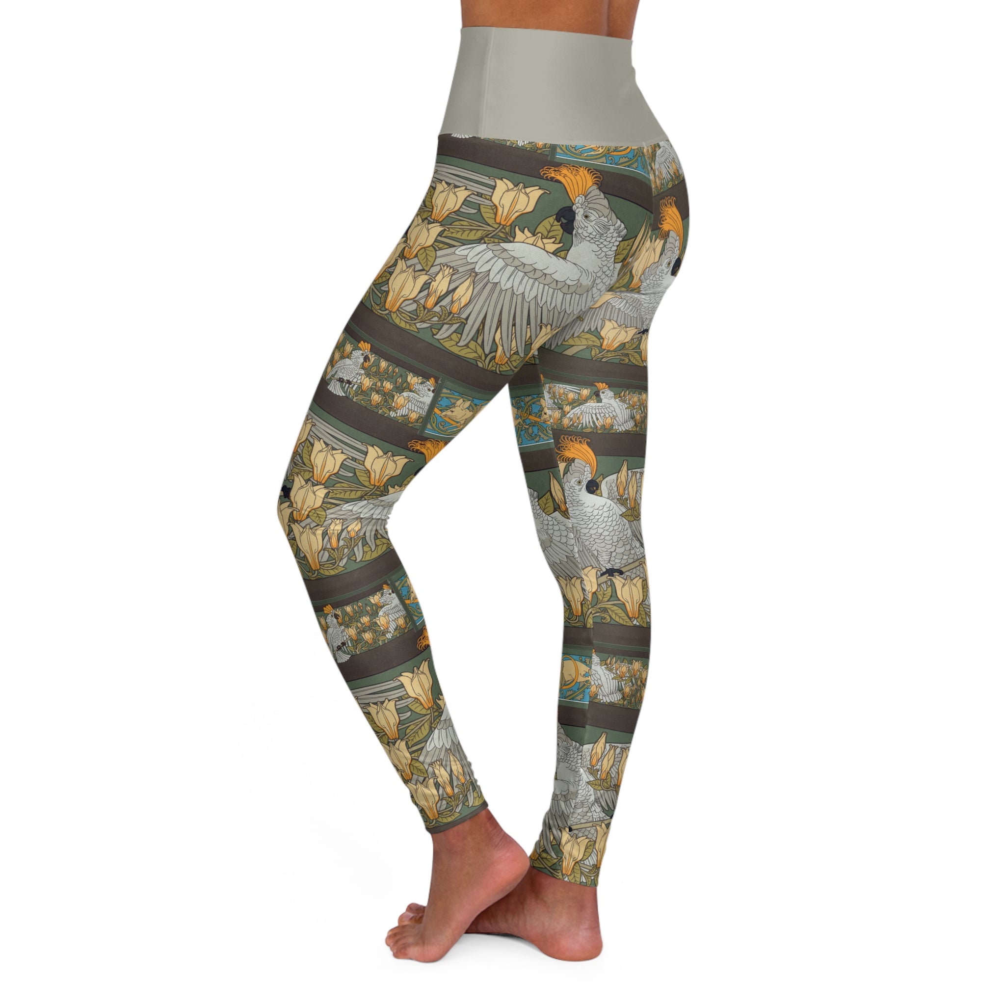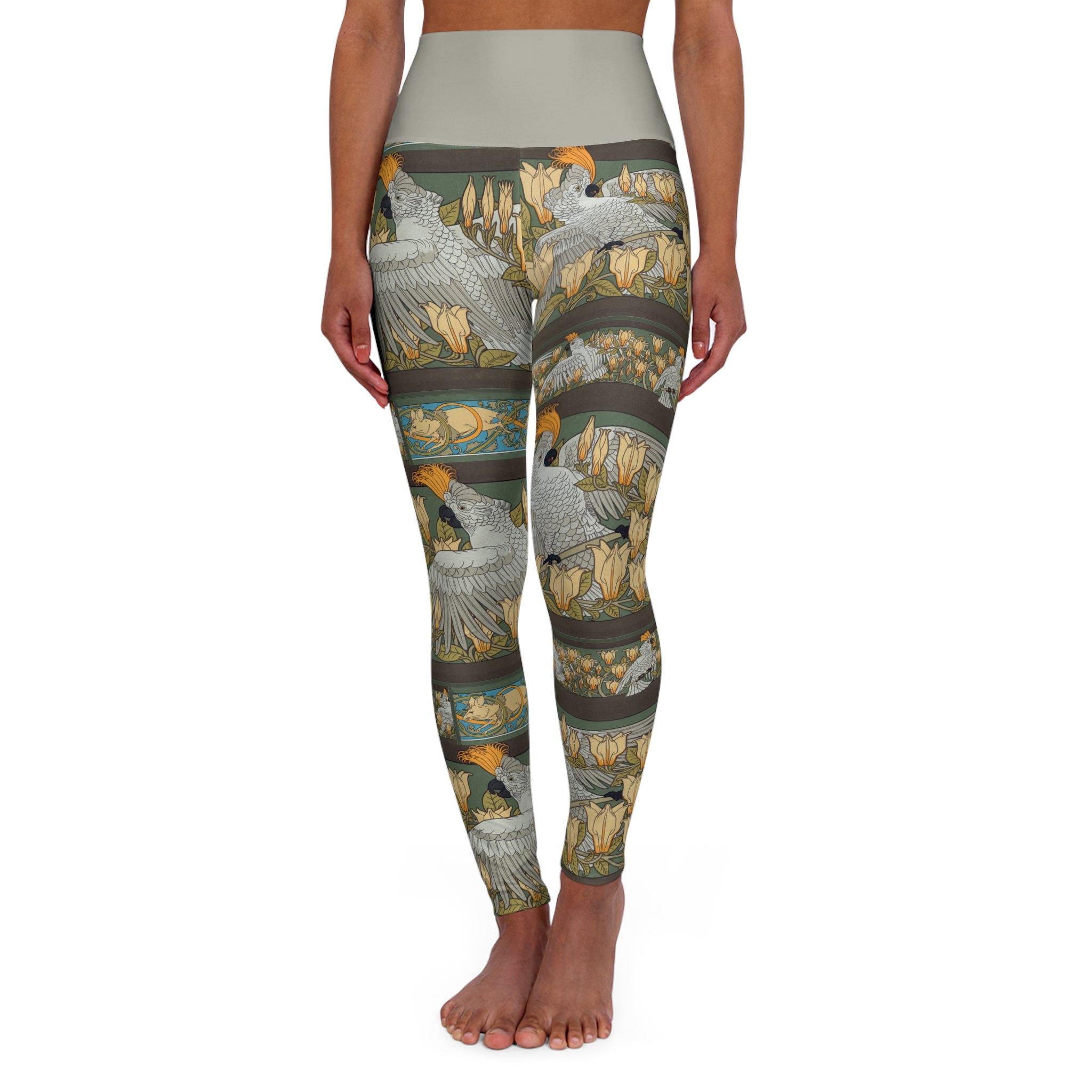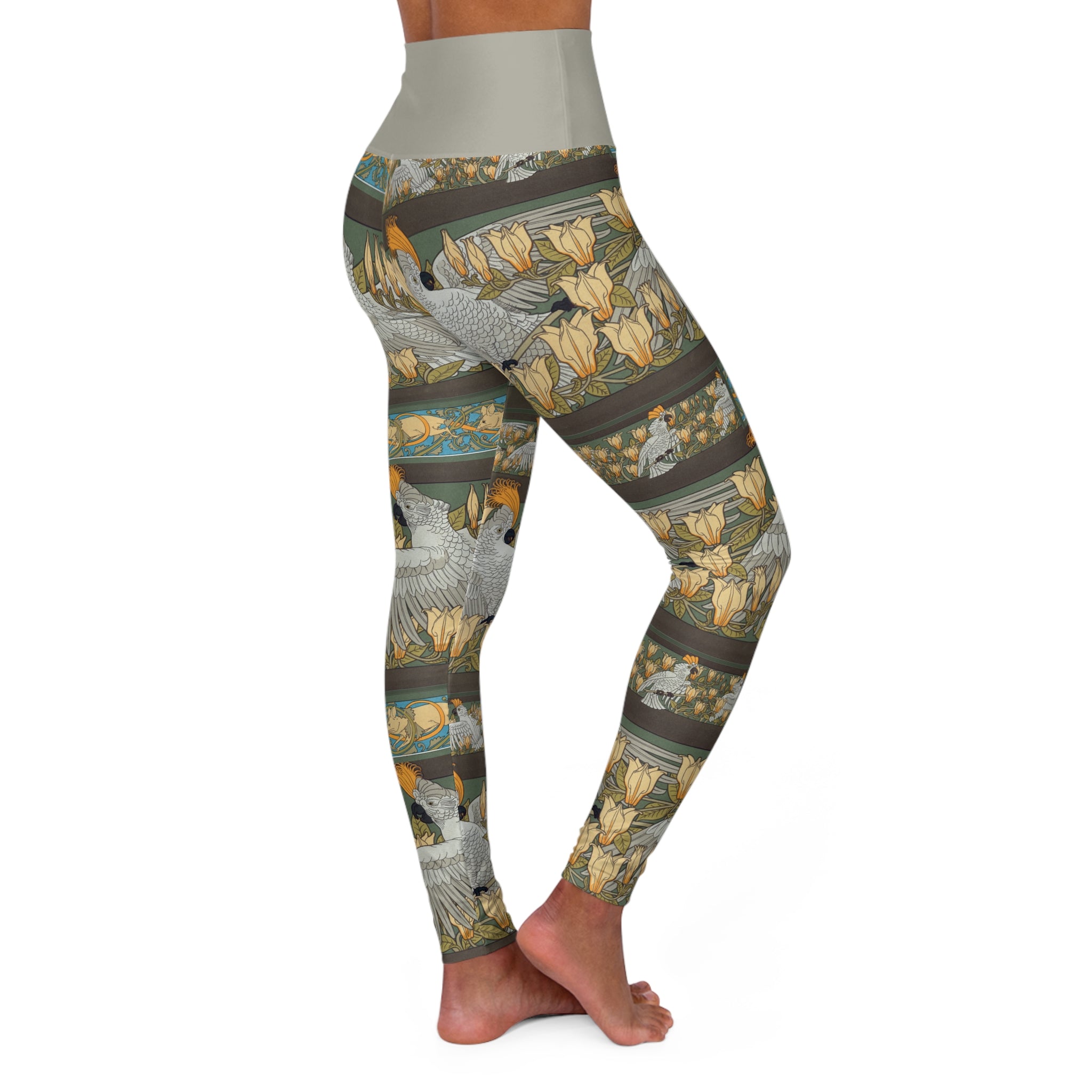 Immerse yourself in vintage-inspired elegance with these high-waisted yoga leggings, adorned with captivating artwork and prints. Combining a slender, high-waisted design, these leggings seamlessly accompany you from workouts to daily outings. The unique all-over print infuses a burst of style into your athleisure ensemble, showcasing an array of timeless designs that are ready to make a statement.