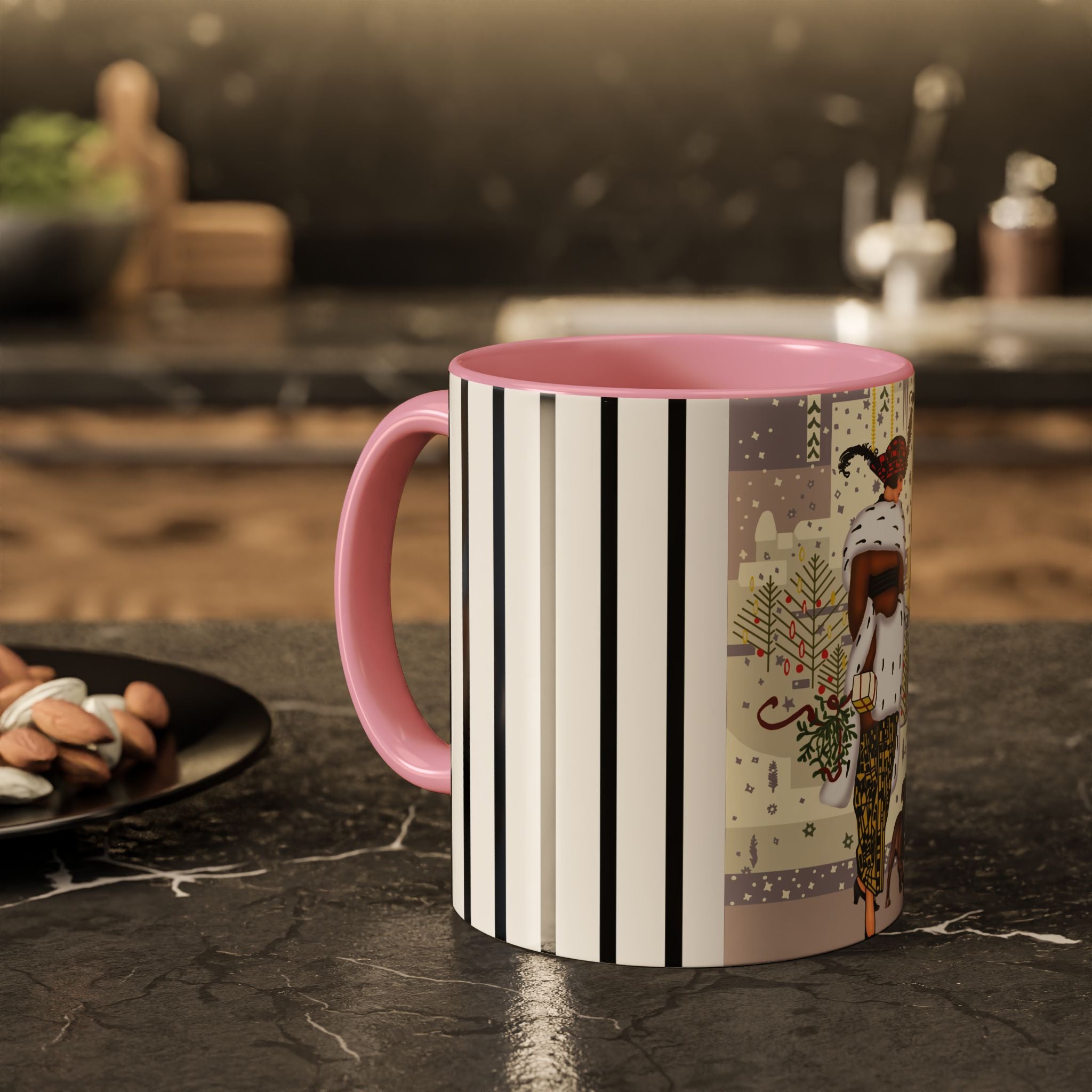 Start your mornings with a touch of holiday sophistication. These mugs, available in 11oz or 15oz sizes and offered in 12 vibrant color options, are designed with a glossy finish that enhances every sip. Each mug features a colored handle and interior, creating a stylish complement to the high-fidelity print.