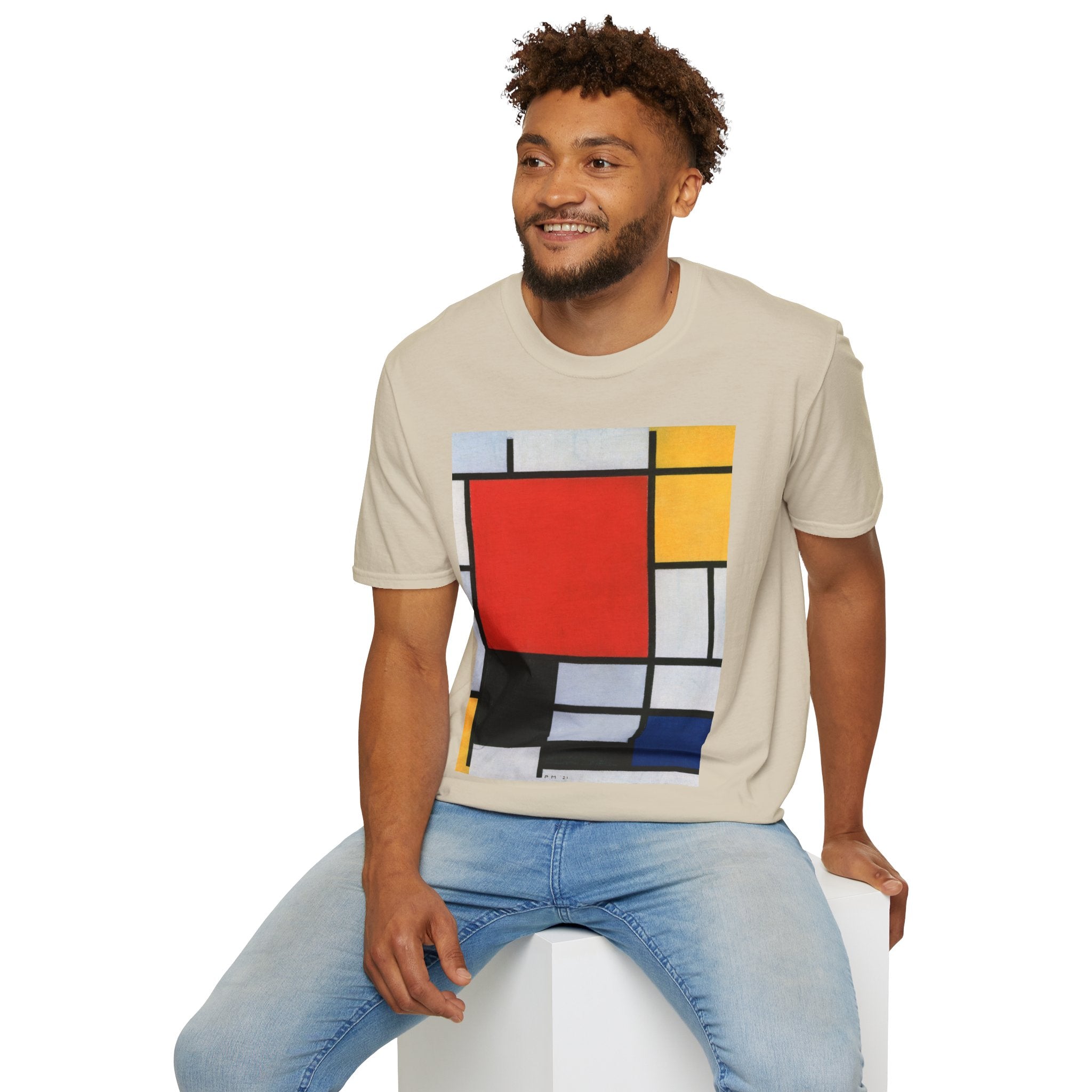 Composition with Red, Yellow, Blue, and Black Softstyle T-Shirt celebrates Piet Mondrian’s timeless exploration of balance, simplicity, and form. Created in 1921, this masterpiece embodies the artist’s vision of Neo-Plasticism — a harmony achieved through pure geometry and color. The composition’s clean grid of black lines and bold rectangles of primary hues evokes both calm and precision, transforming minimalism into profound visual poetry. Mondrian’s disciplined structure reveals beauty in order, reminding us that simplicity can hold infinite meaning.