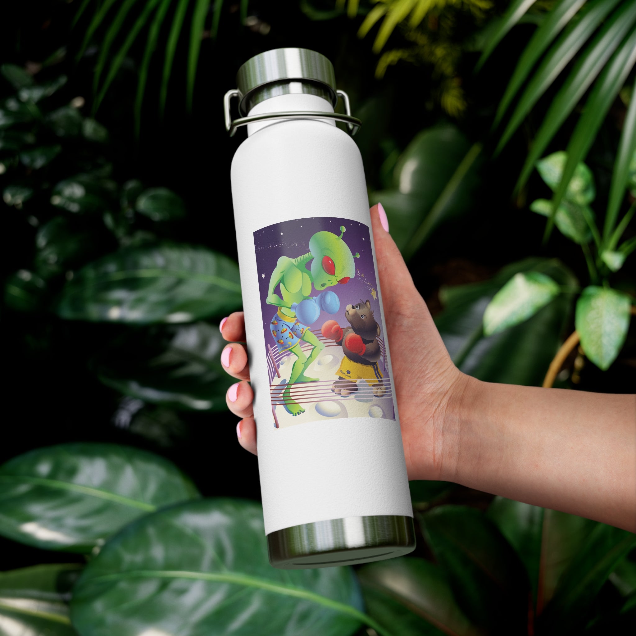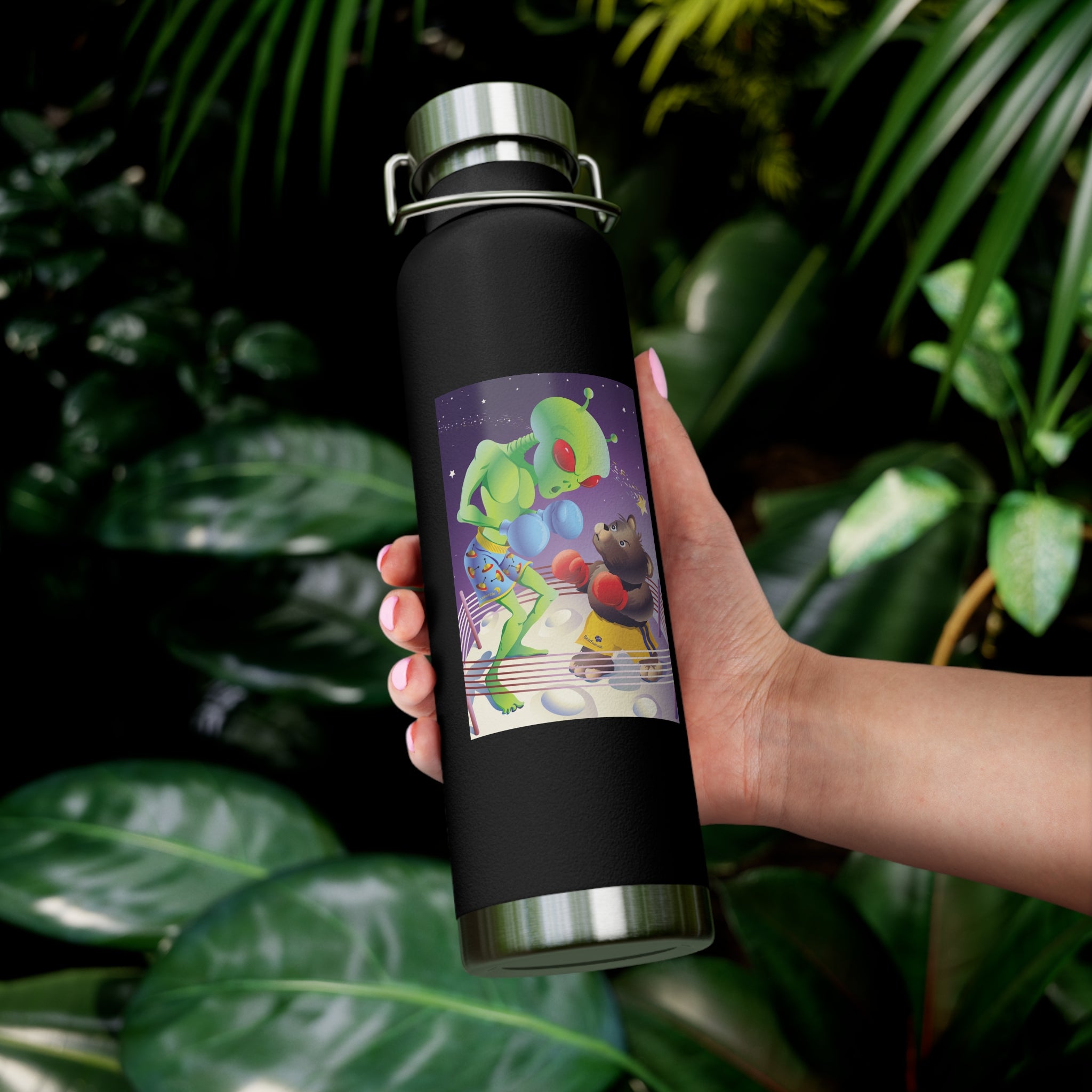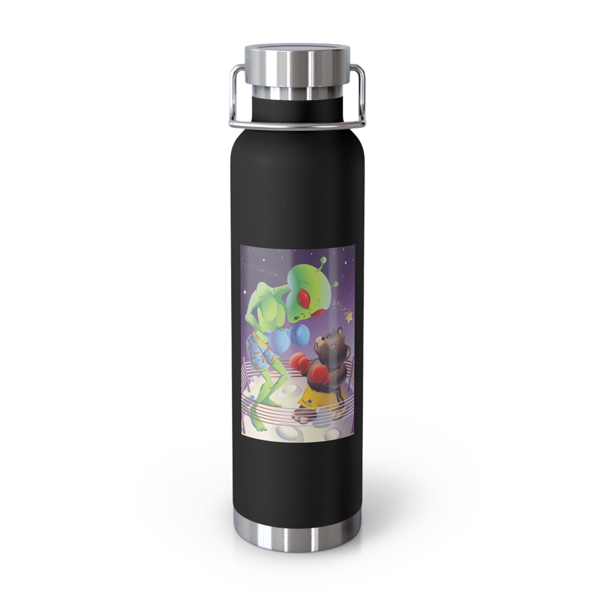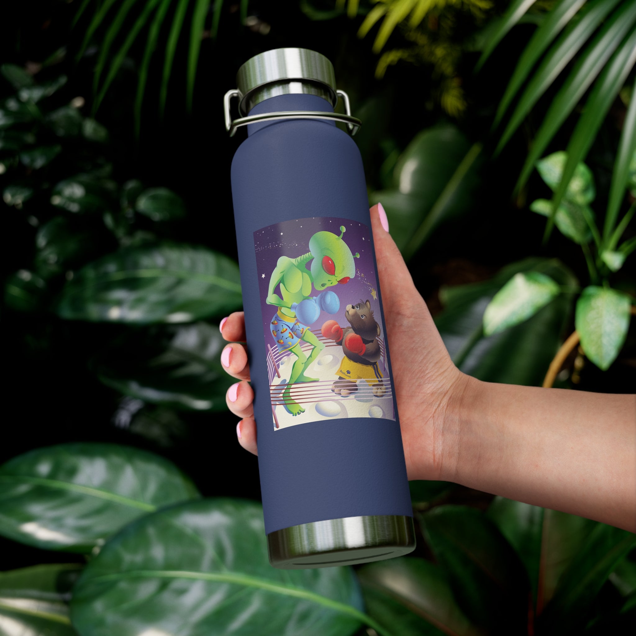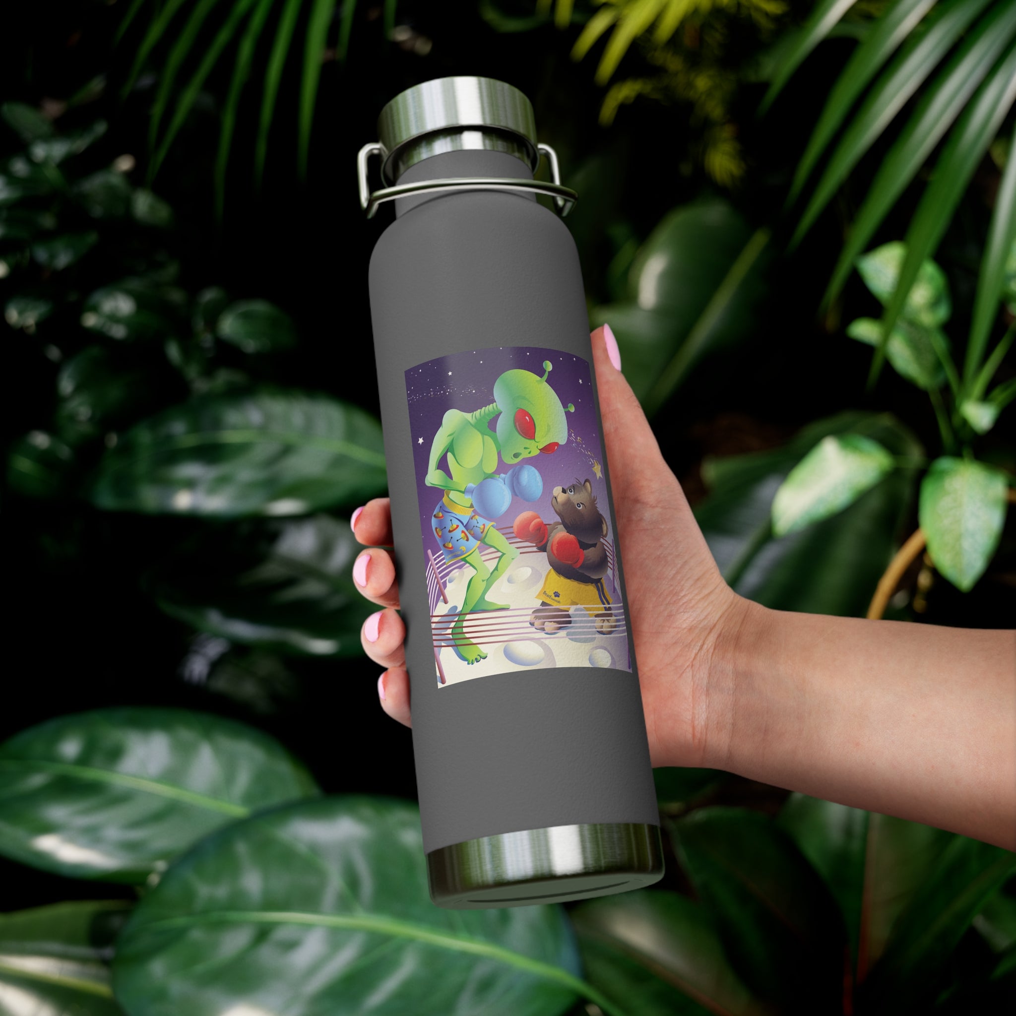 Artwork created, designed and digitally remastered by Sarasvati Designs. This bold, modern, and vibrant artwork showcases a captivating scene set in outer space, featuring an alien and a bear boxing in a ring.