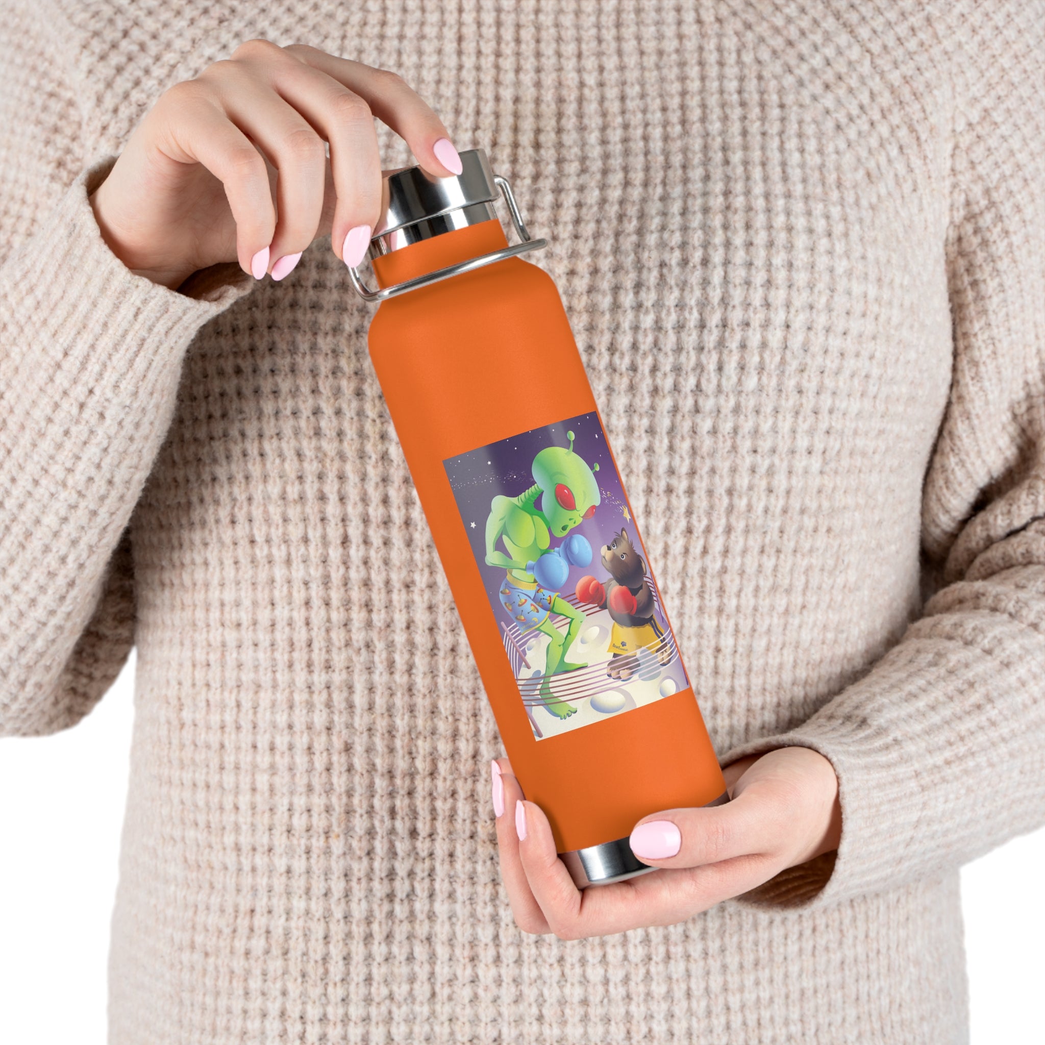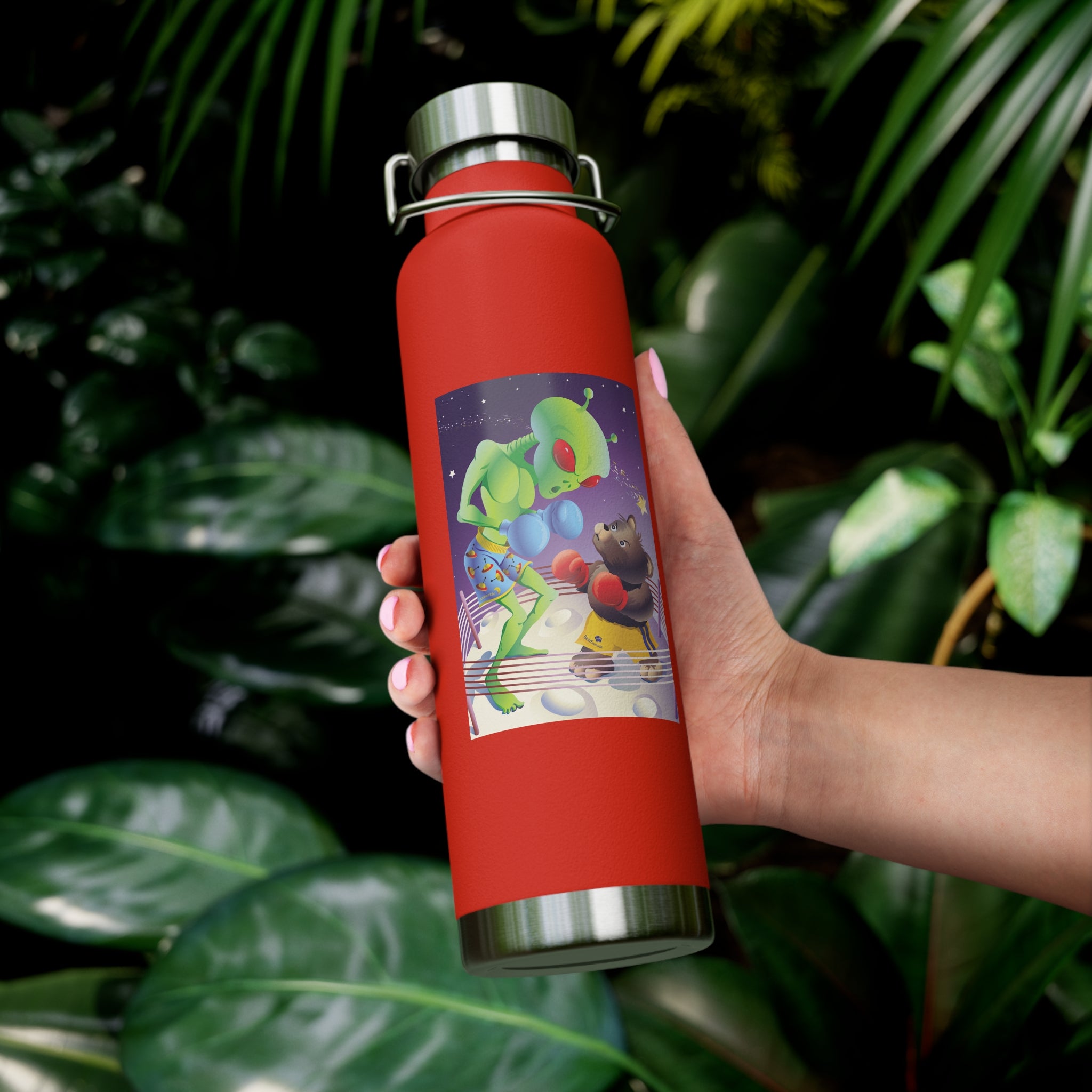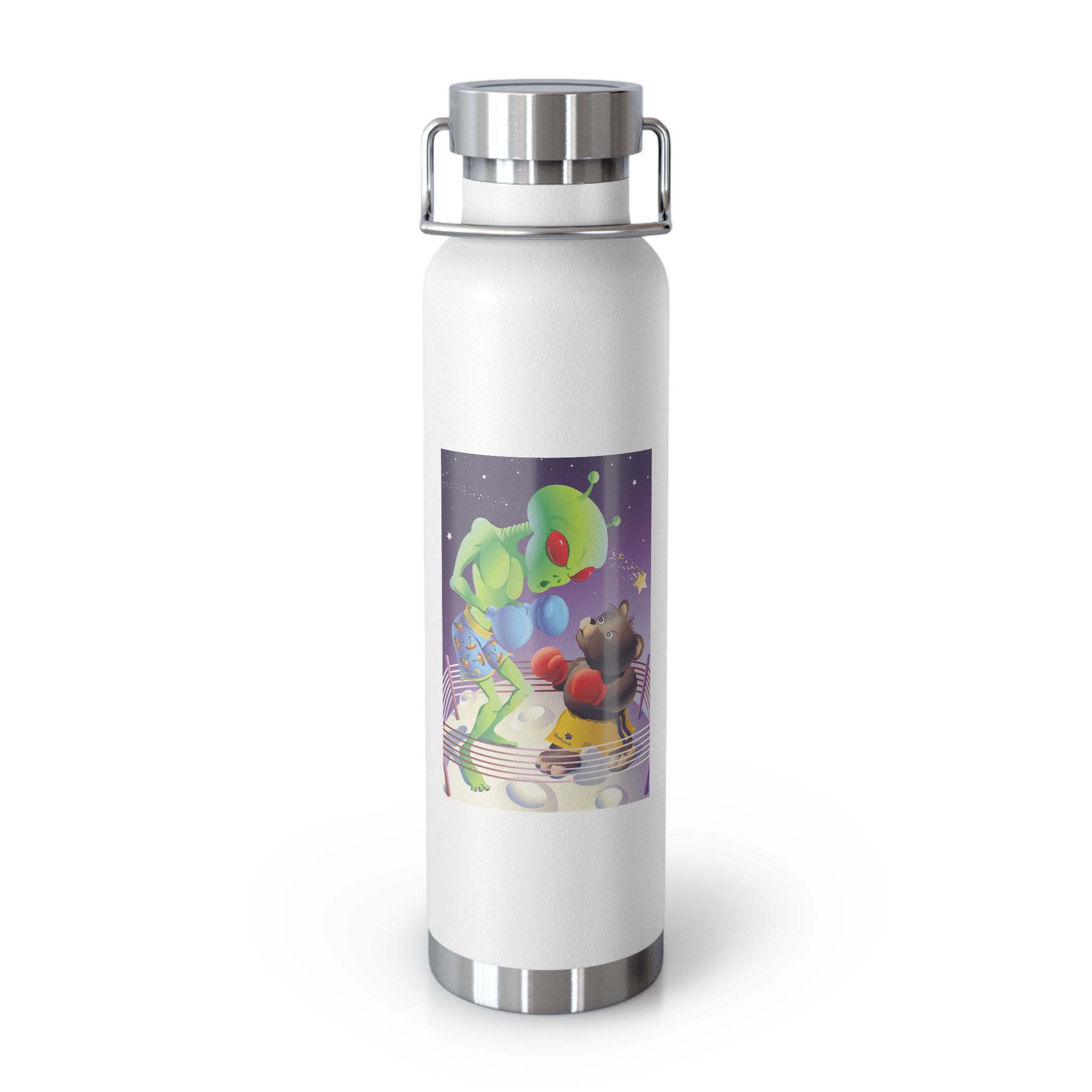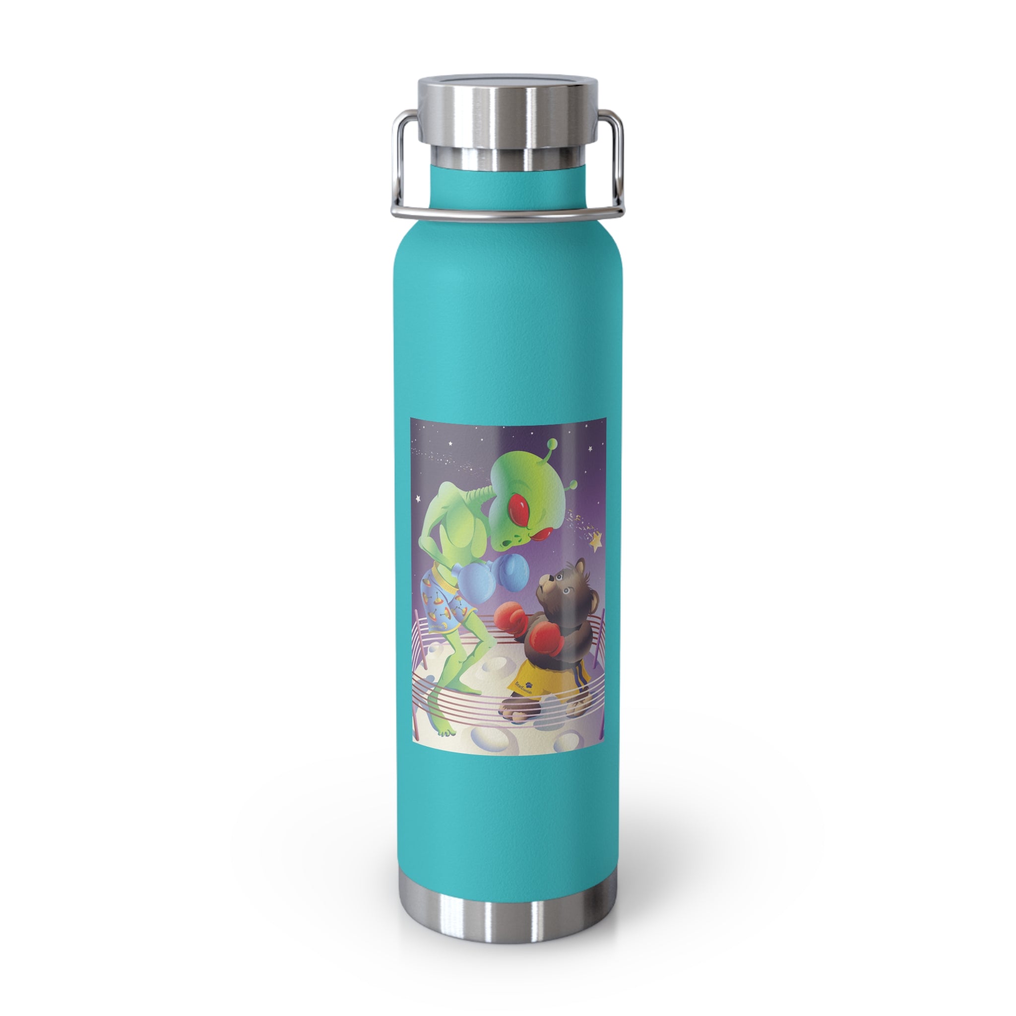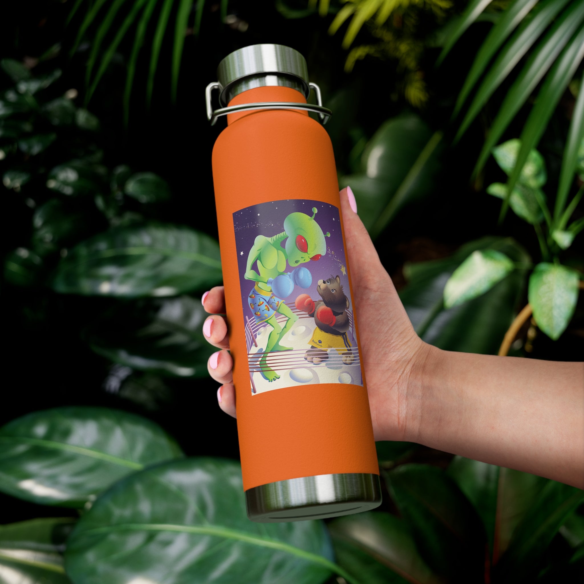 Artwork created, designed and digitally remastered by Sarasvati Designs. This bold, modern, and vibrant artwork showcases a captivating scene set in outer space, featuring an alien and a bear boxing in a ring.