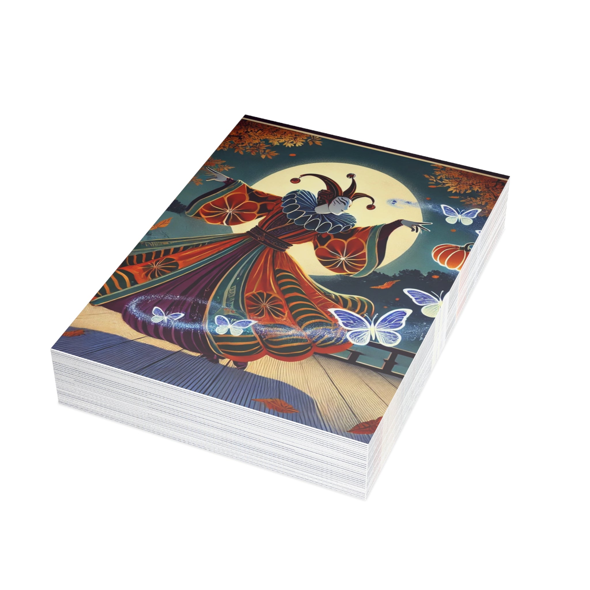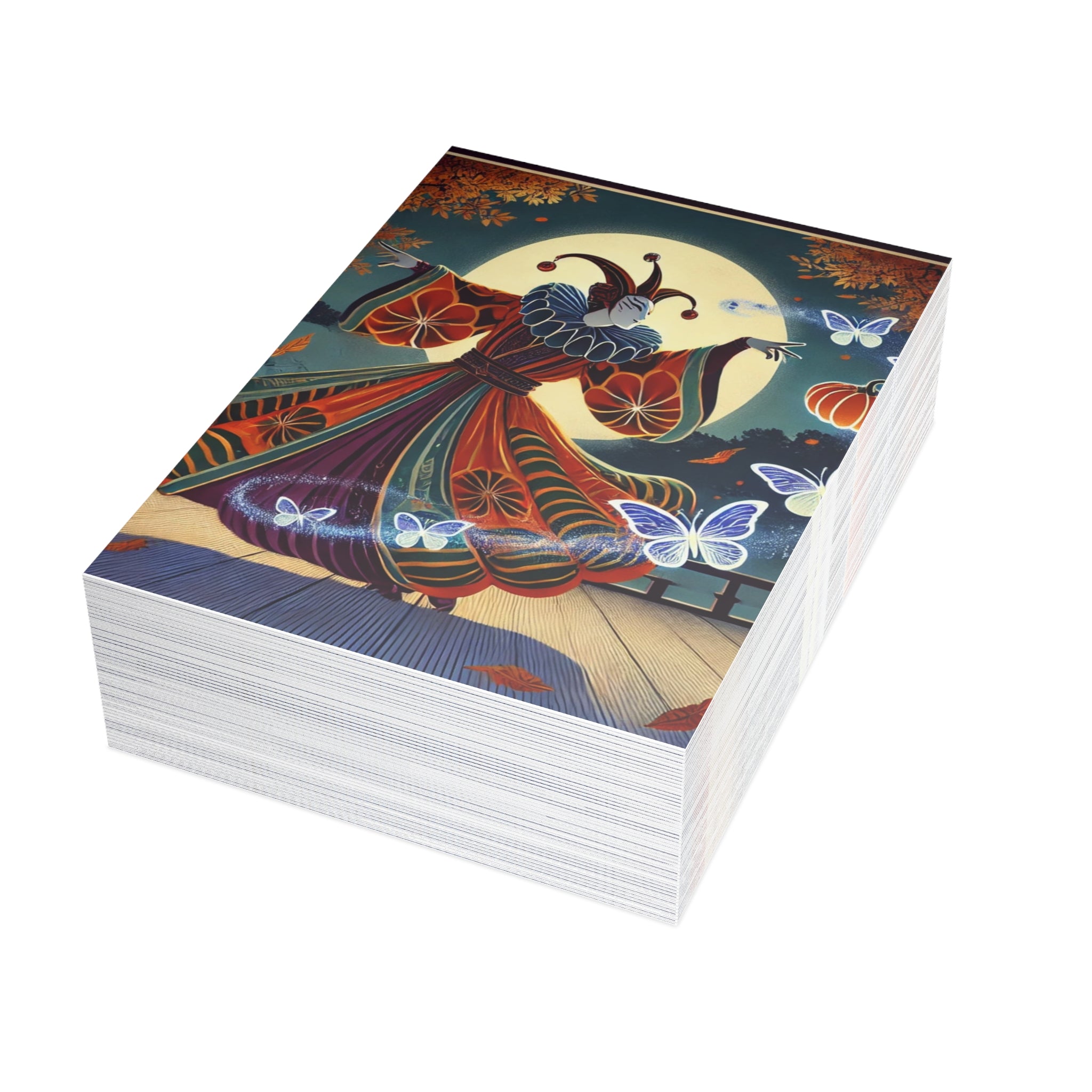 Send notes, invitations, or greetings with a touch of theatrical elegance using the Court Magician with Ghost Butterflies Postcards. Printed on durable cardstock and available in four finishes—matte, uncoated, one-side coat, or two-side coat—these postcards are designed for both beauty and function. Sold in bundles of 10, 30, or 50 with envelopes included, they make correspondence feel special.