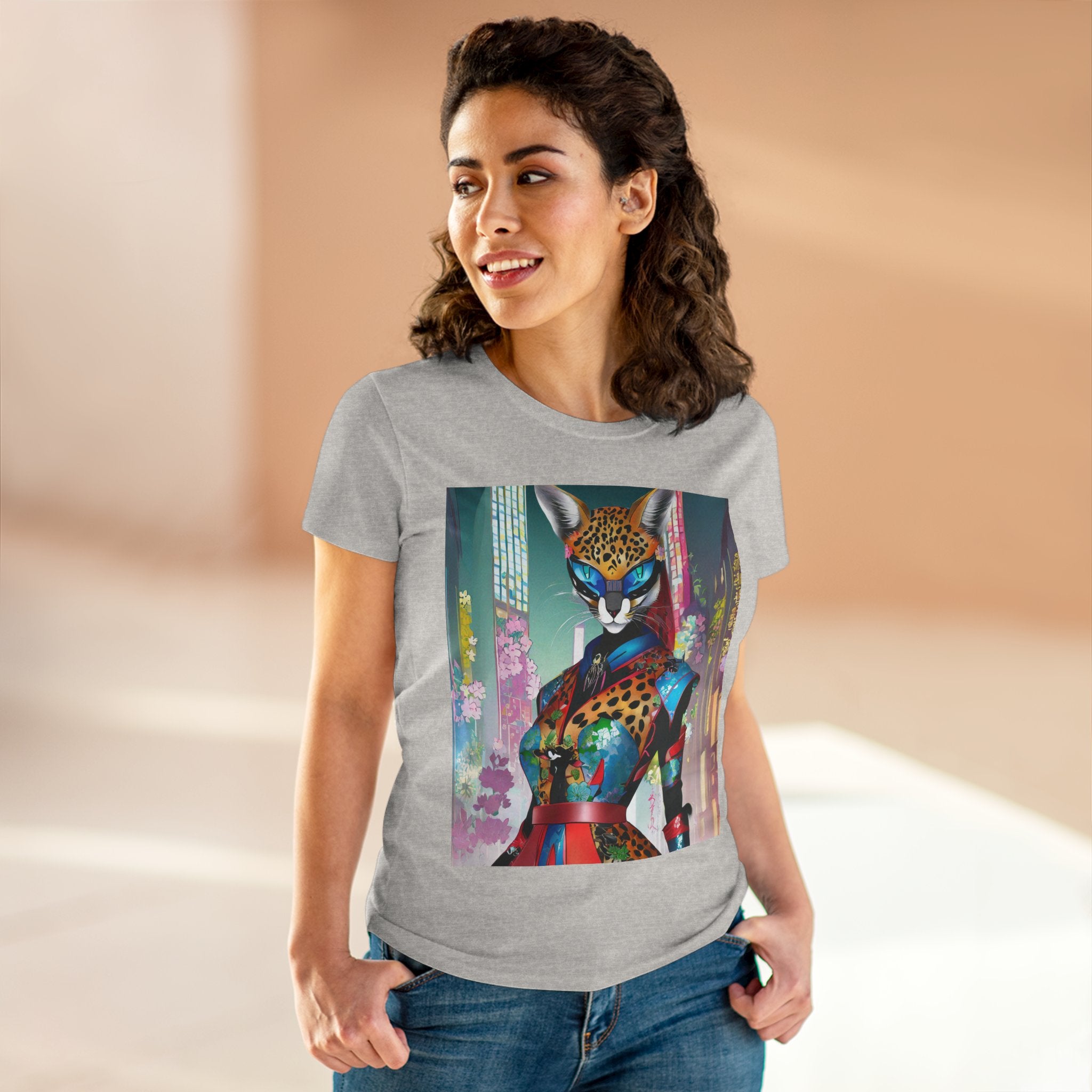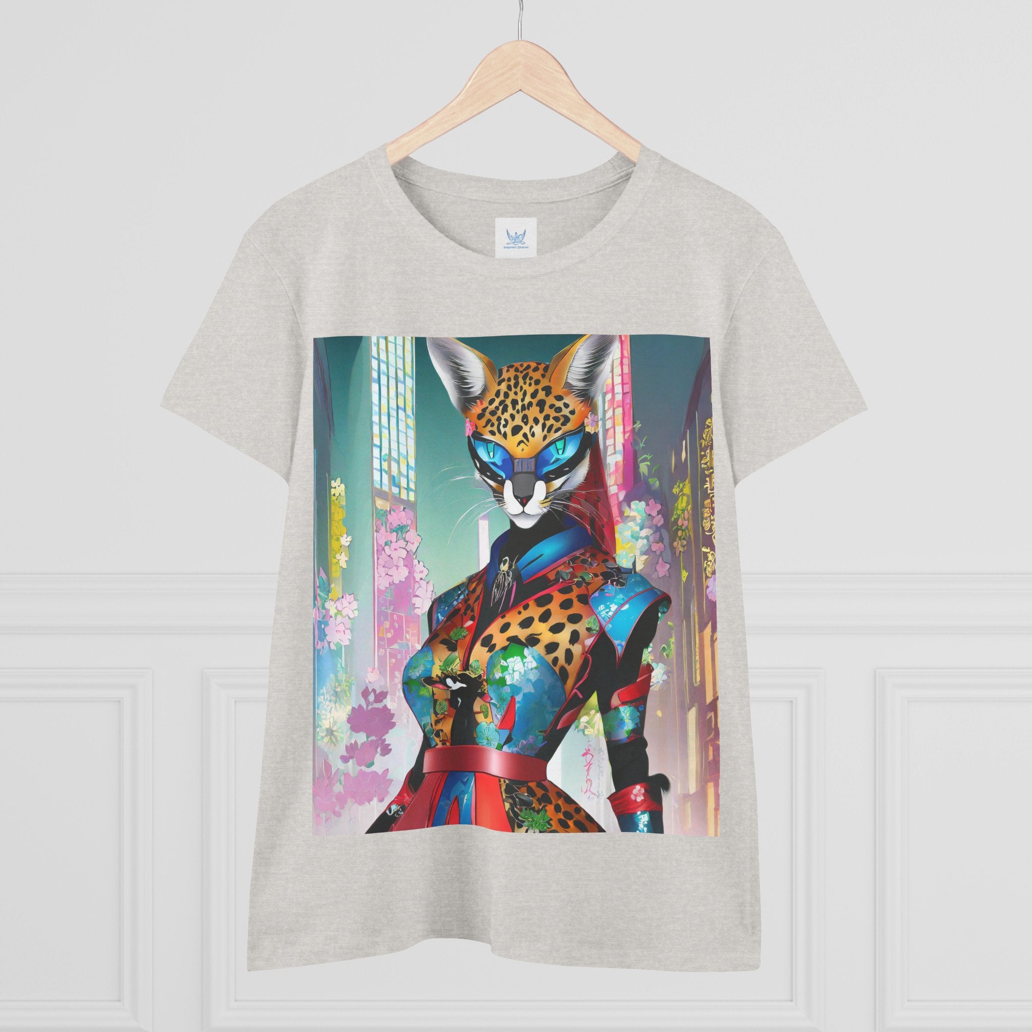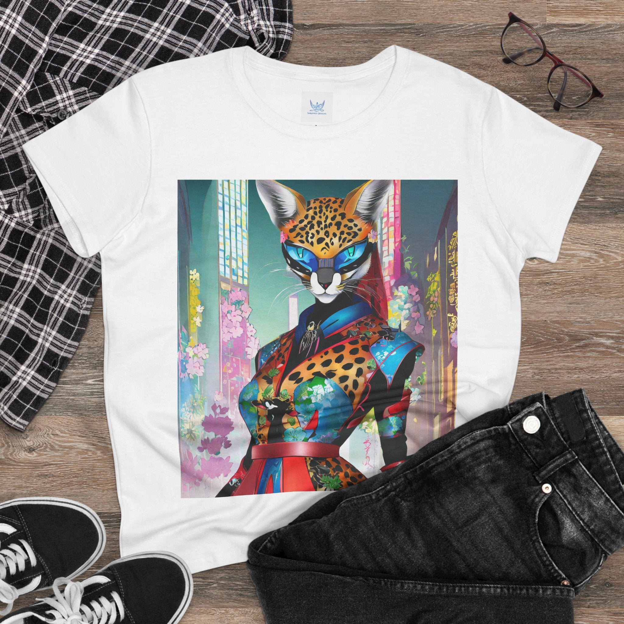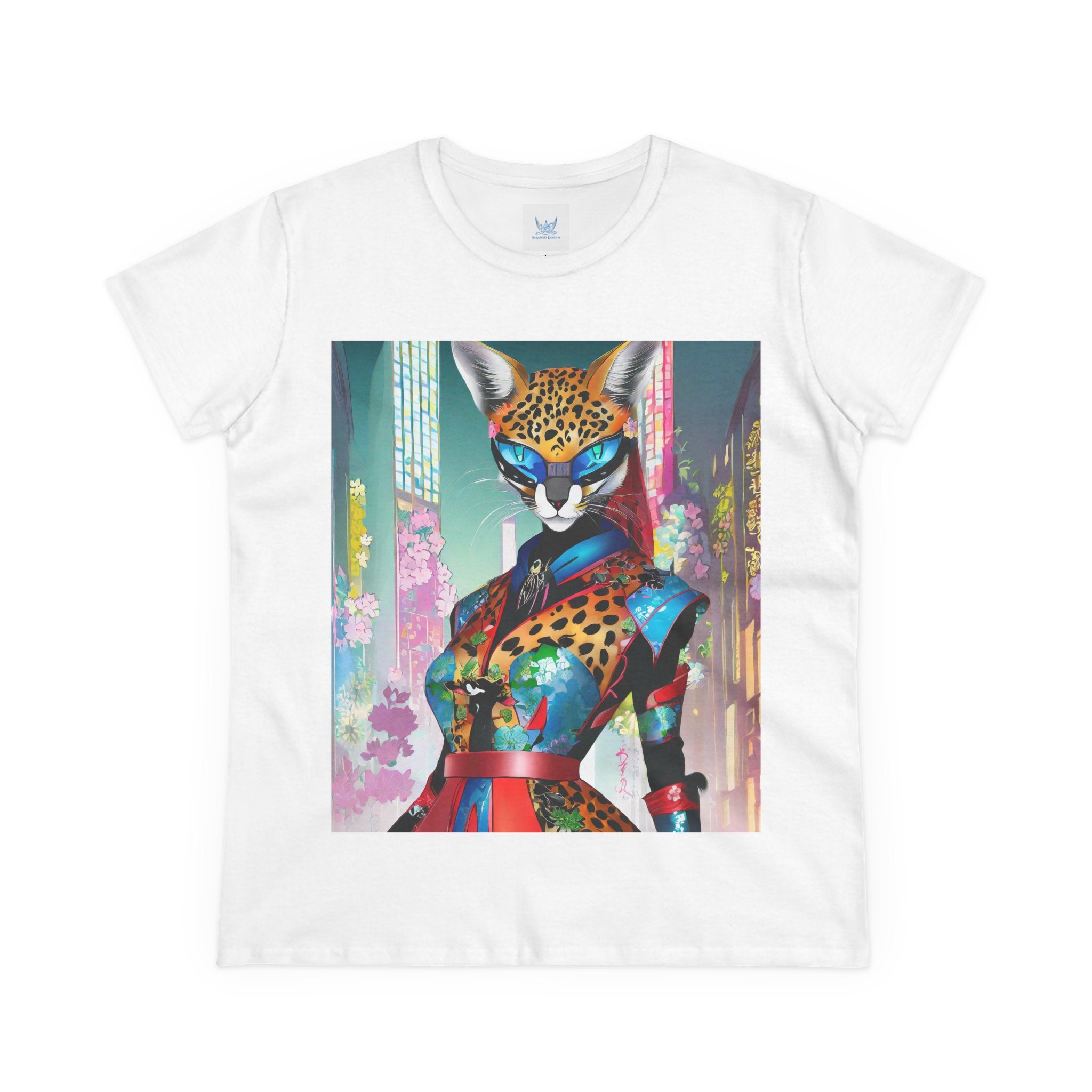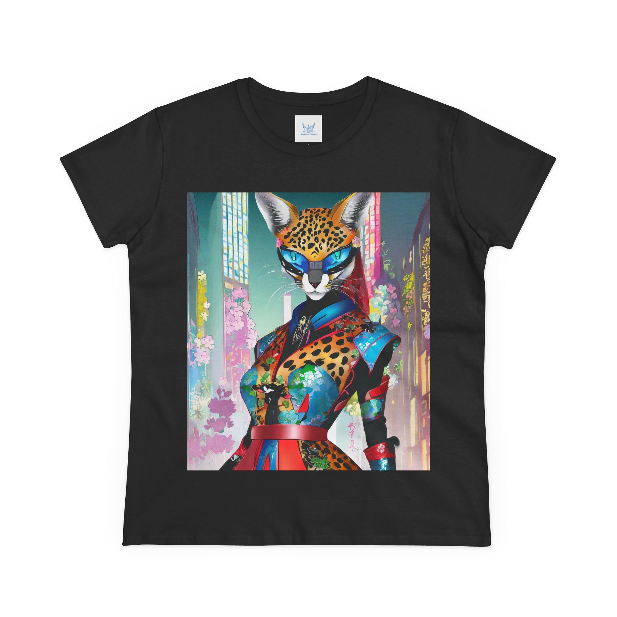 Cyber Cat Glamour Cotton Tee brings sleek style and futuristic flair to your everyday wardrobe. Crafted from soft, breathable 100% cotton, this contoured tee offers a flattering semi-fitted silhouette designed for comfort and movement. Pre-shrunk for lasting shape, it features cap sleeves and a taped neck and shoulders for durability and ease of wear.