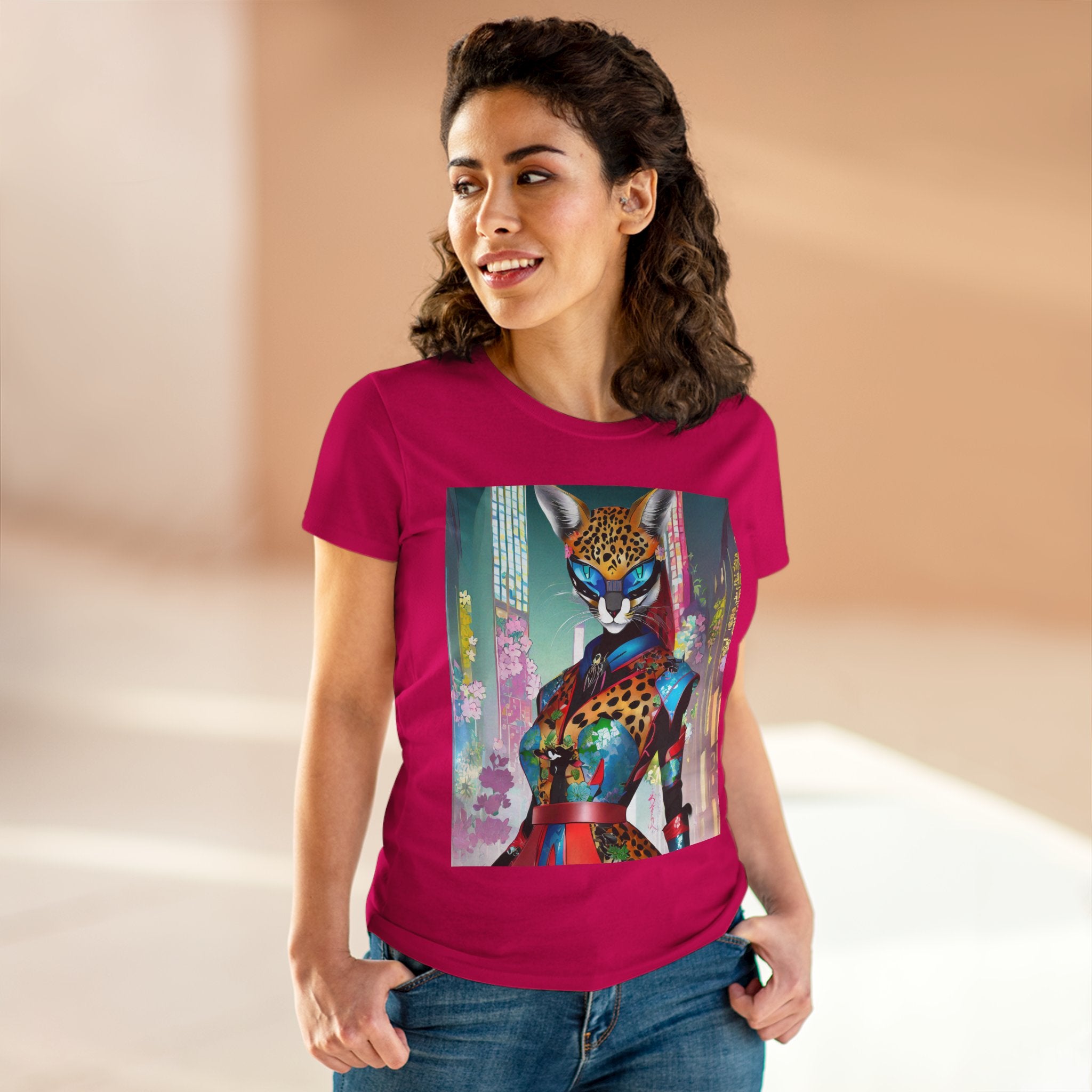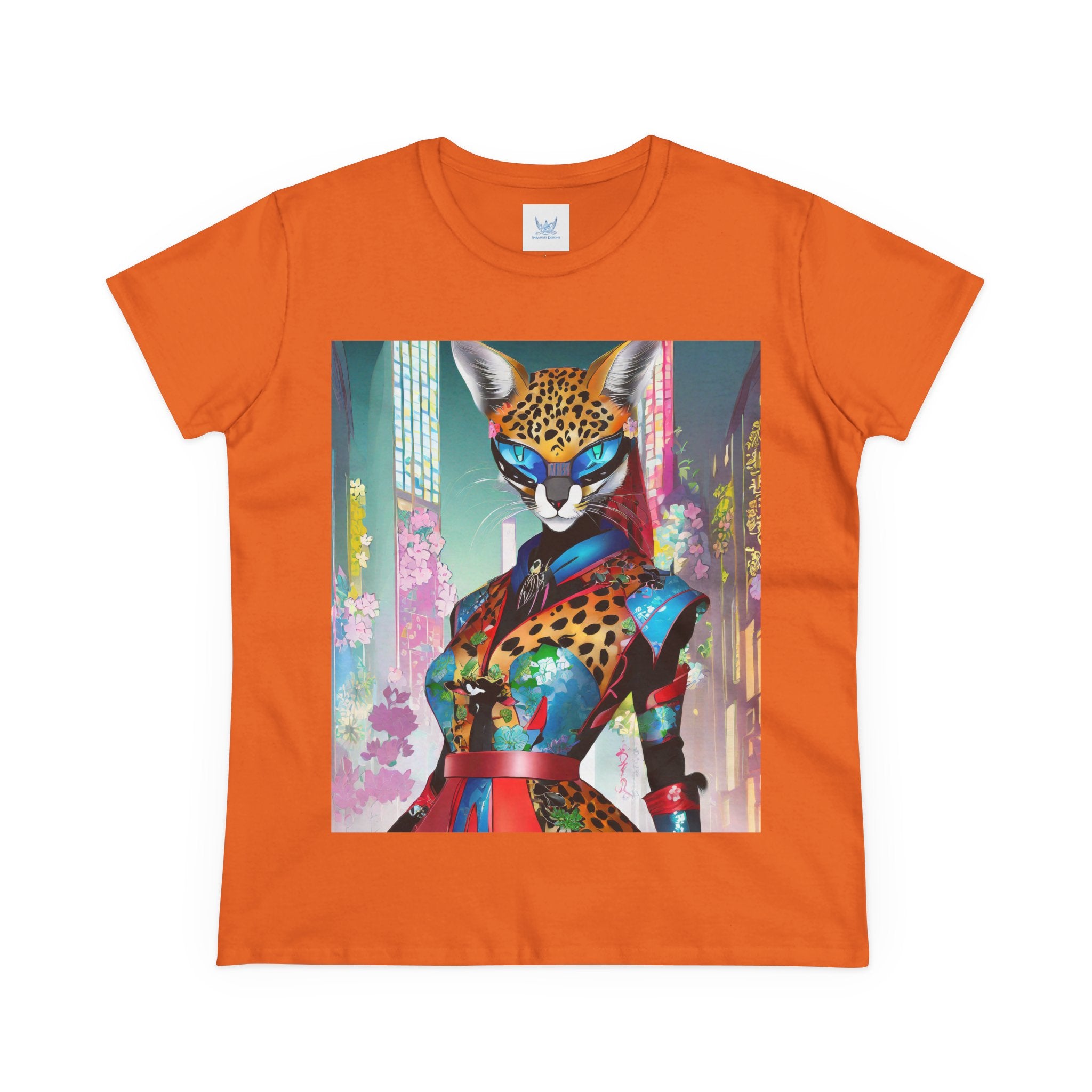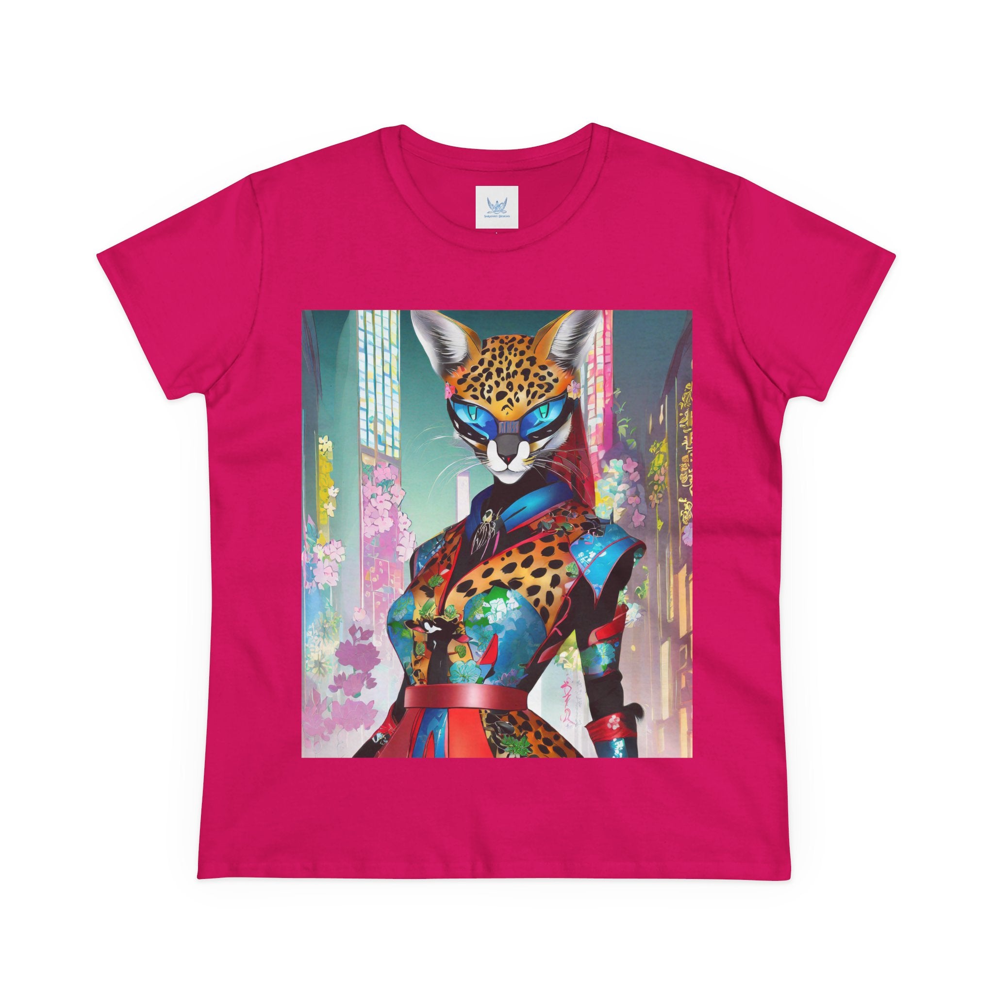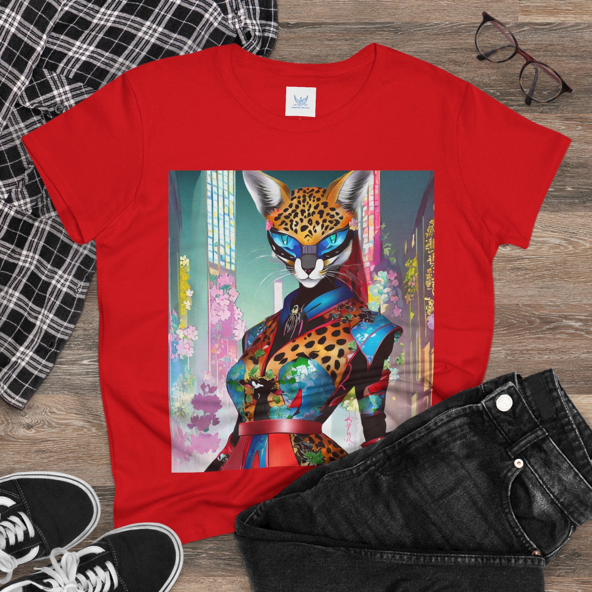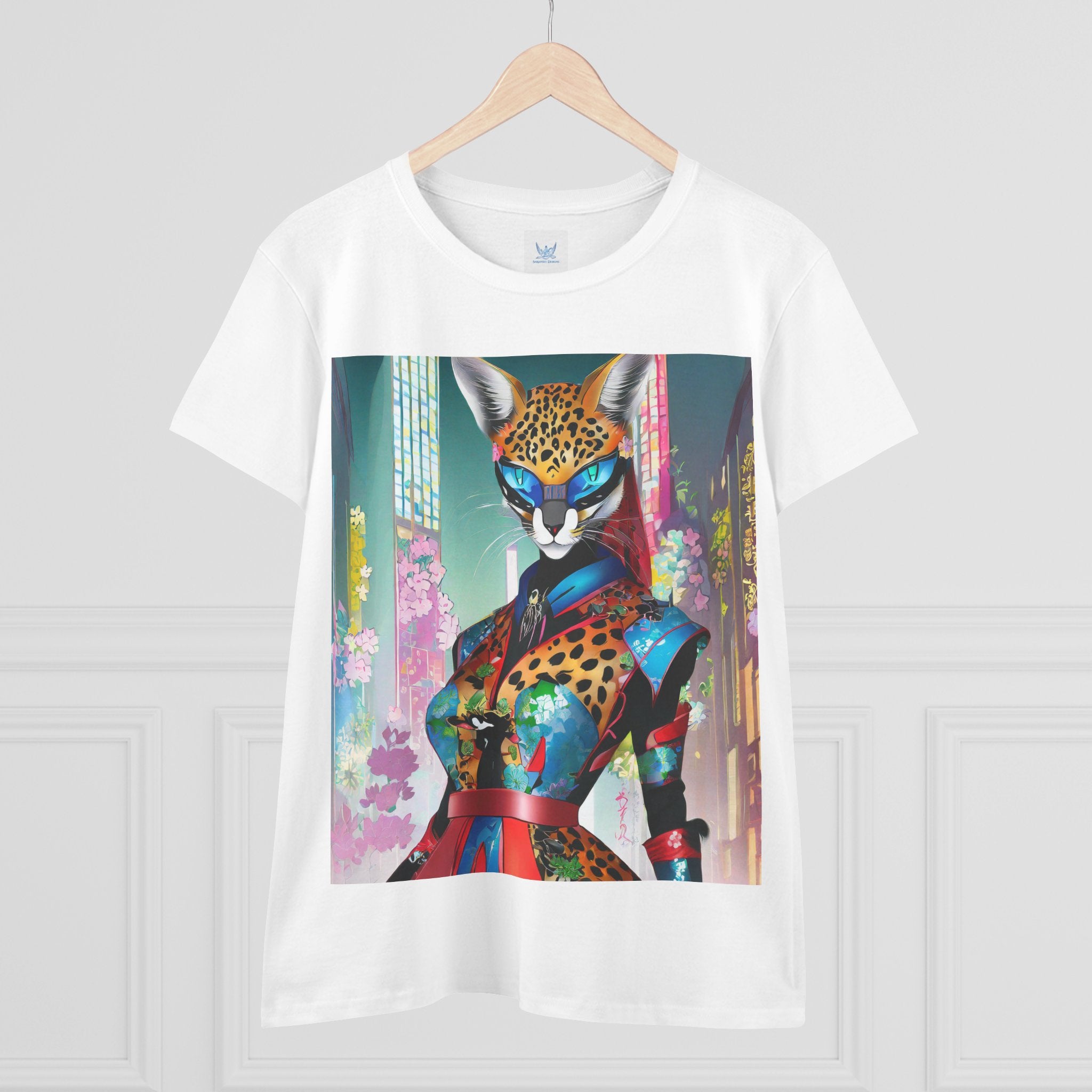 Cyber Cat Glamour Cotton Tee brings sleek style and futuristic flair to your everyday wardrobe. Crafted from soft, breathable 100% cotton, this contoured tee offers a flattering semi-fitted silhouette designed for comfort and movement. Pre-shrunk for lasting shape, it features cap sleeves and a taped neck and shoulders for durability and ease of wear.