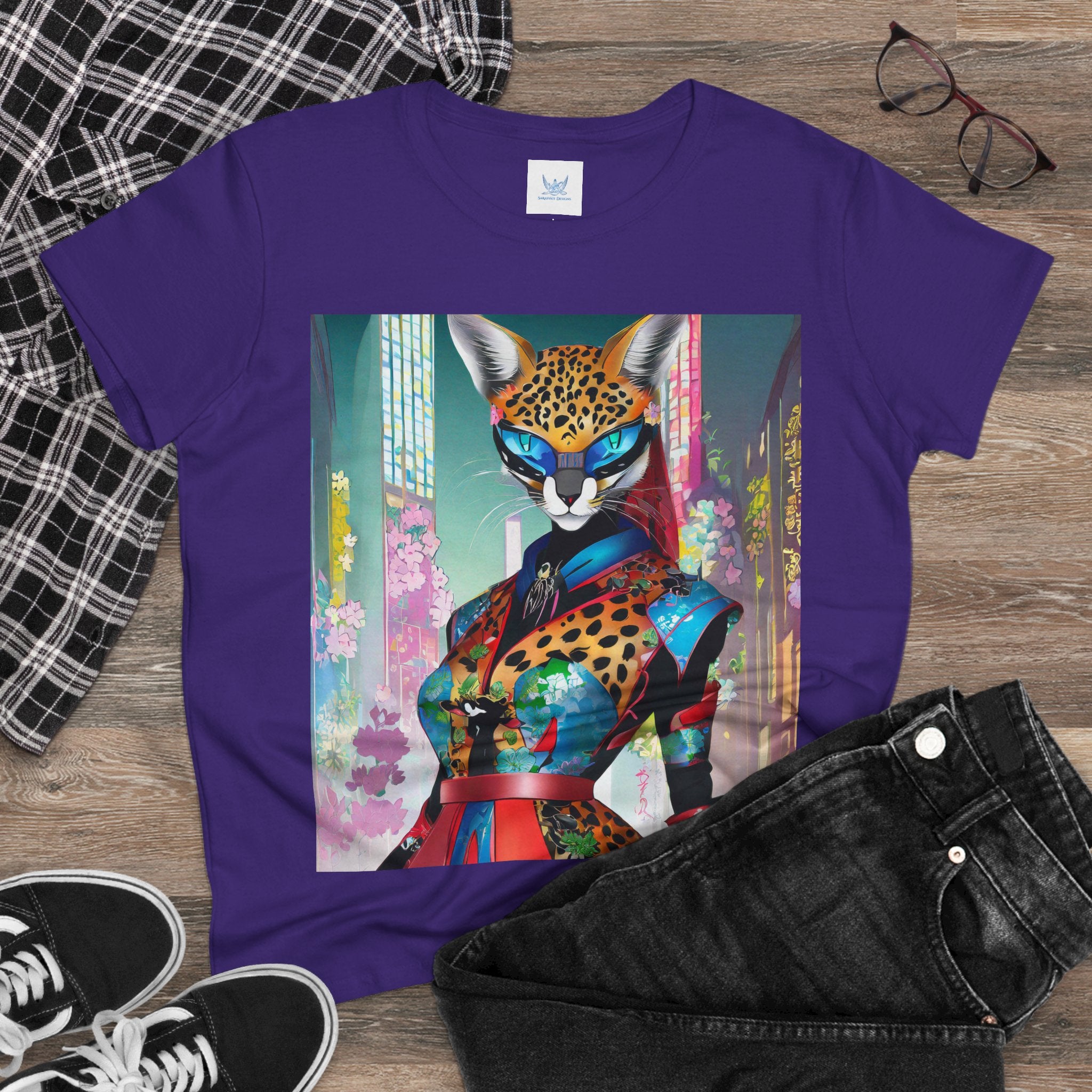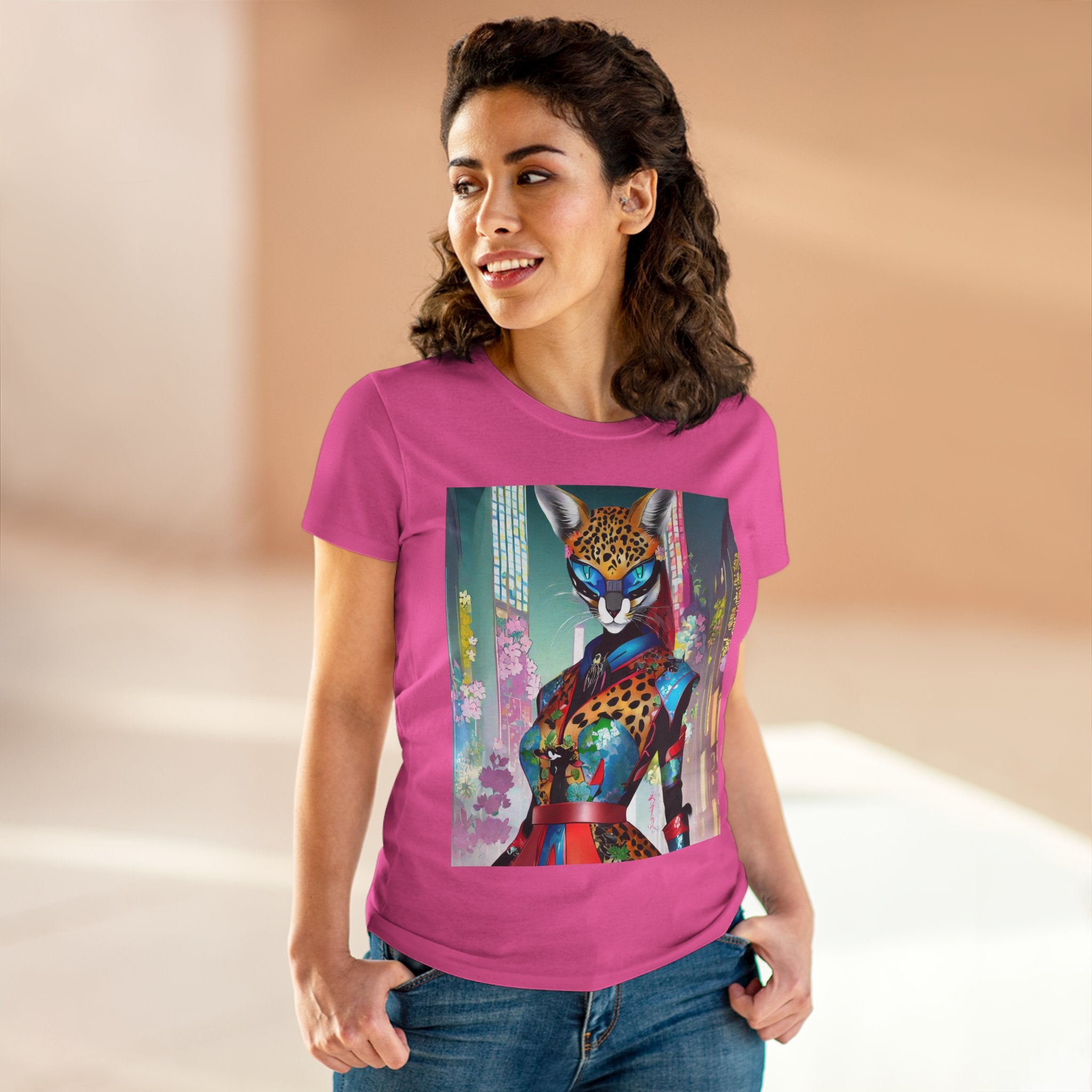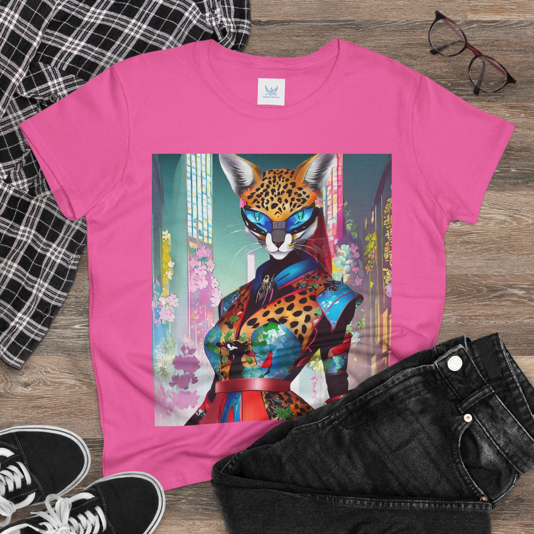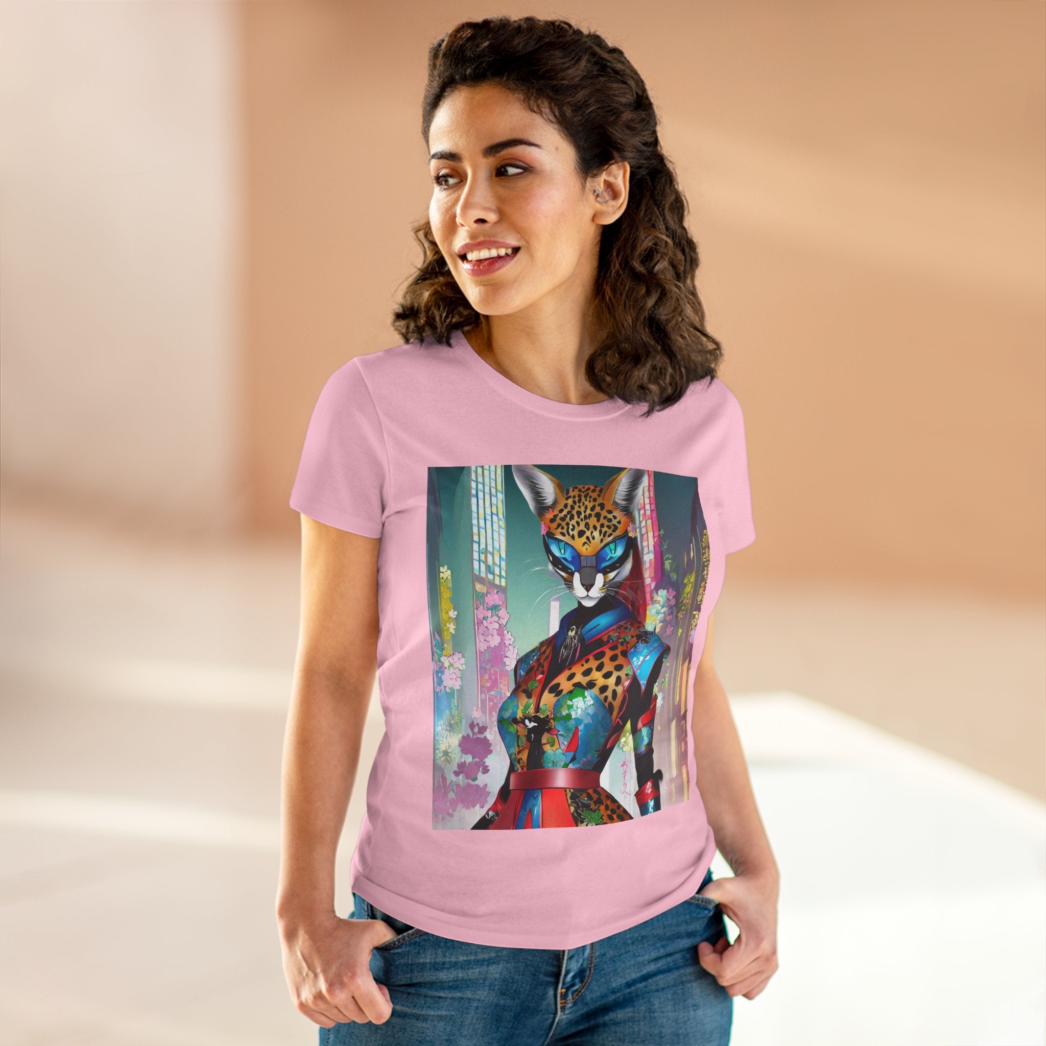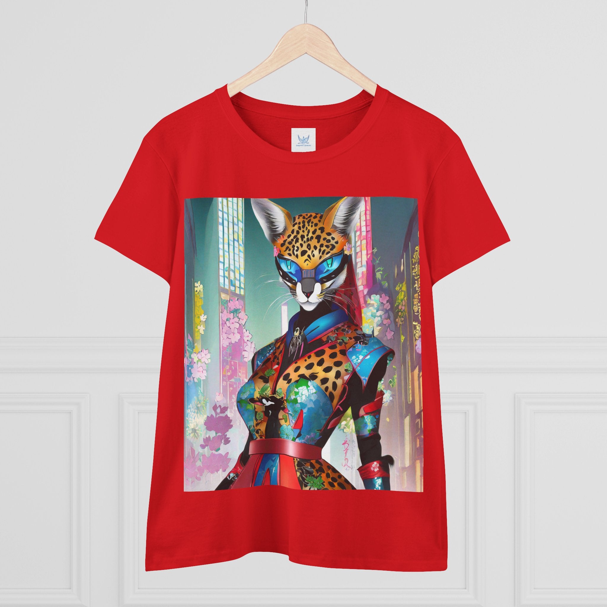 Cyber Cat Glamour Cotton Tee brings sleek style and futuristic flair to your everyday wardrobe. Crafted from soft, breathable 100% cotton, this contoured tee offers a flattering semi-fitted silhouette designed for comfort and movement. Pre-shrunk for lasting shape, it features cap sleeves and a taped neck and shoulders for durability and ease of wear.