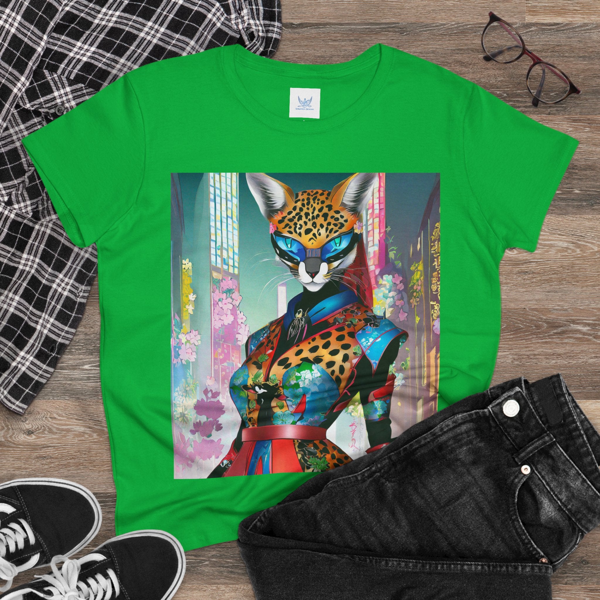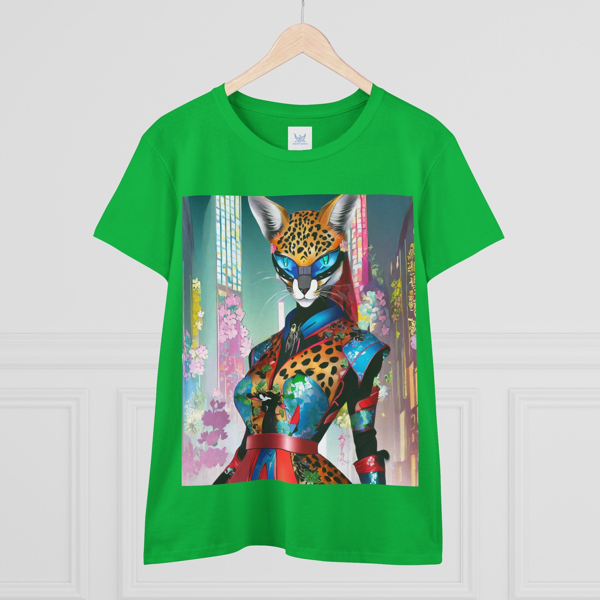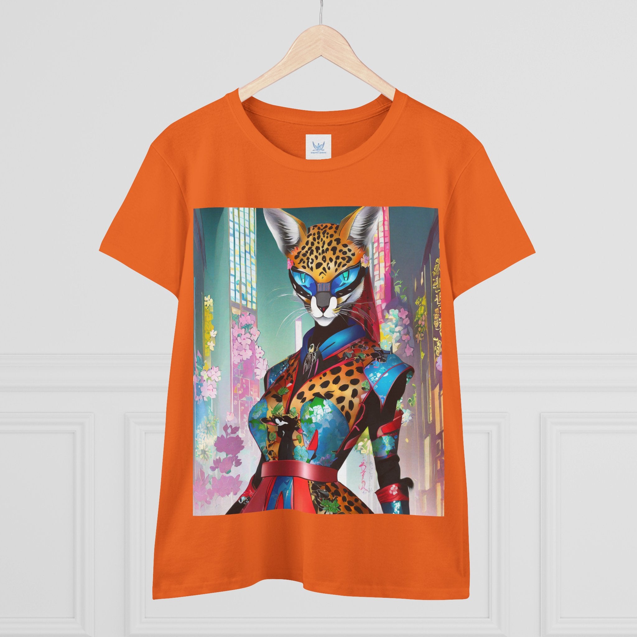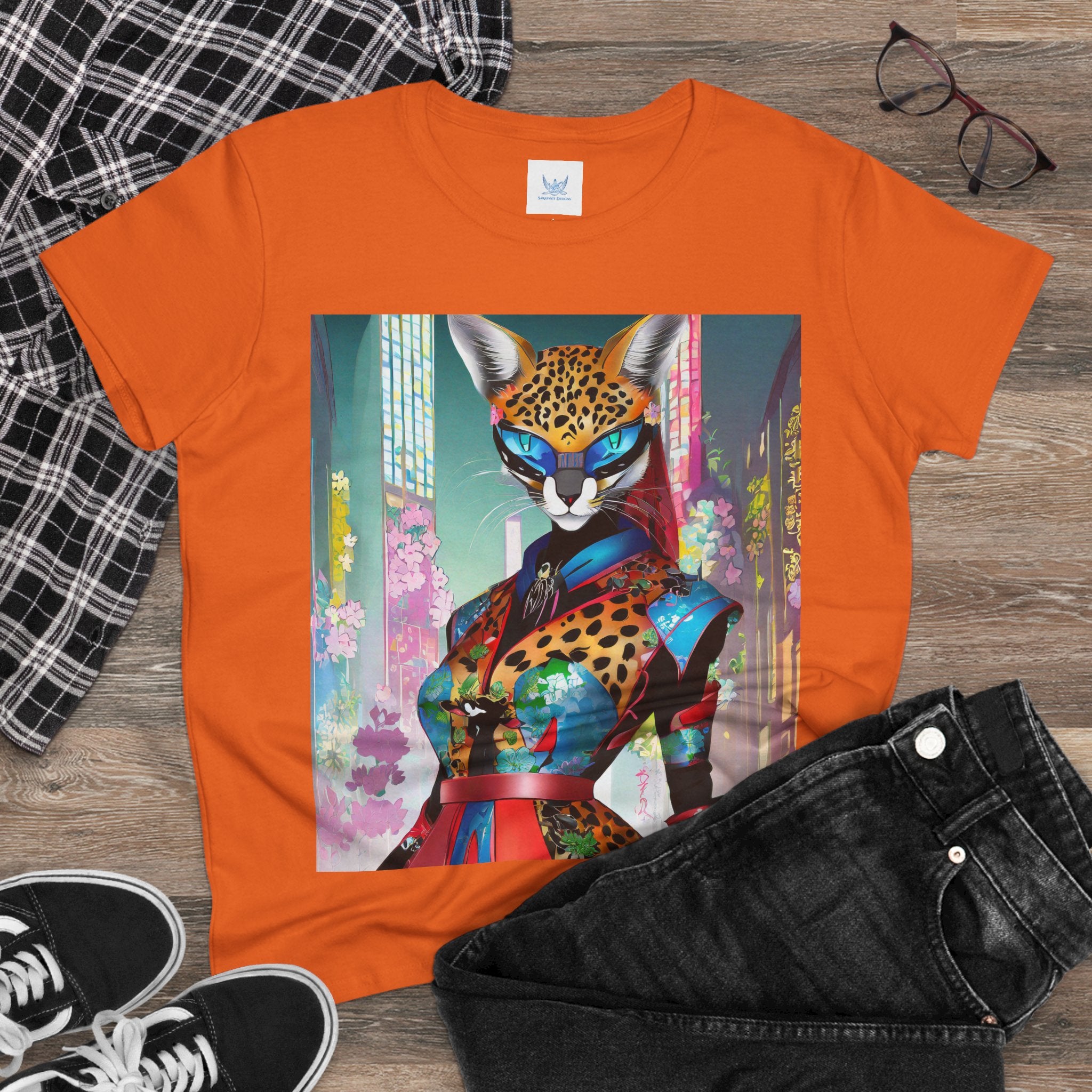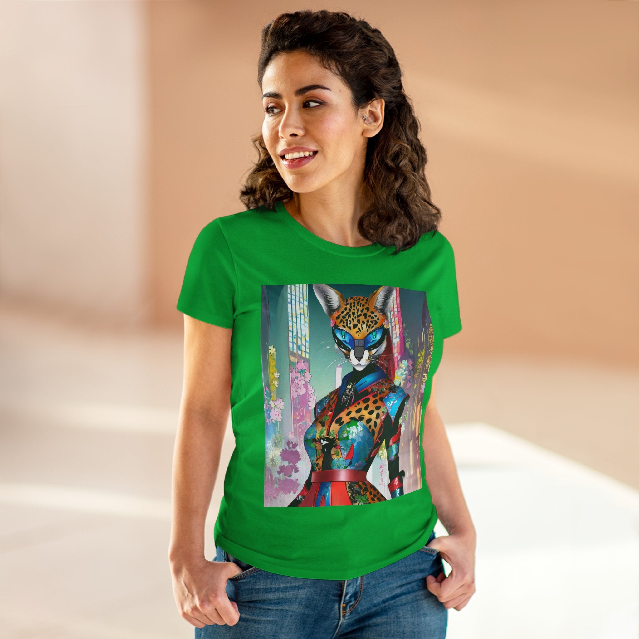 Cyber Cat Glamour Cotton Tee brings sleek style and futuristic flair to your everyday wardrobe. Crafted from soft, breathable 100% cotton, this contoured tee offers a flattering semi-fitted silhouette designed for comfort and movement. Pre-shrunk for lasting shape, it features cap sleeves and a taped neck and shoulders for durability and ease of wear.