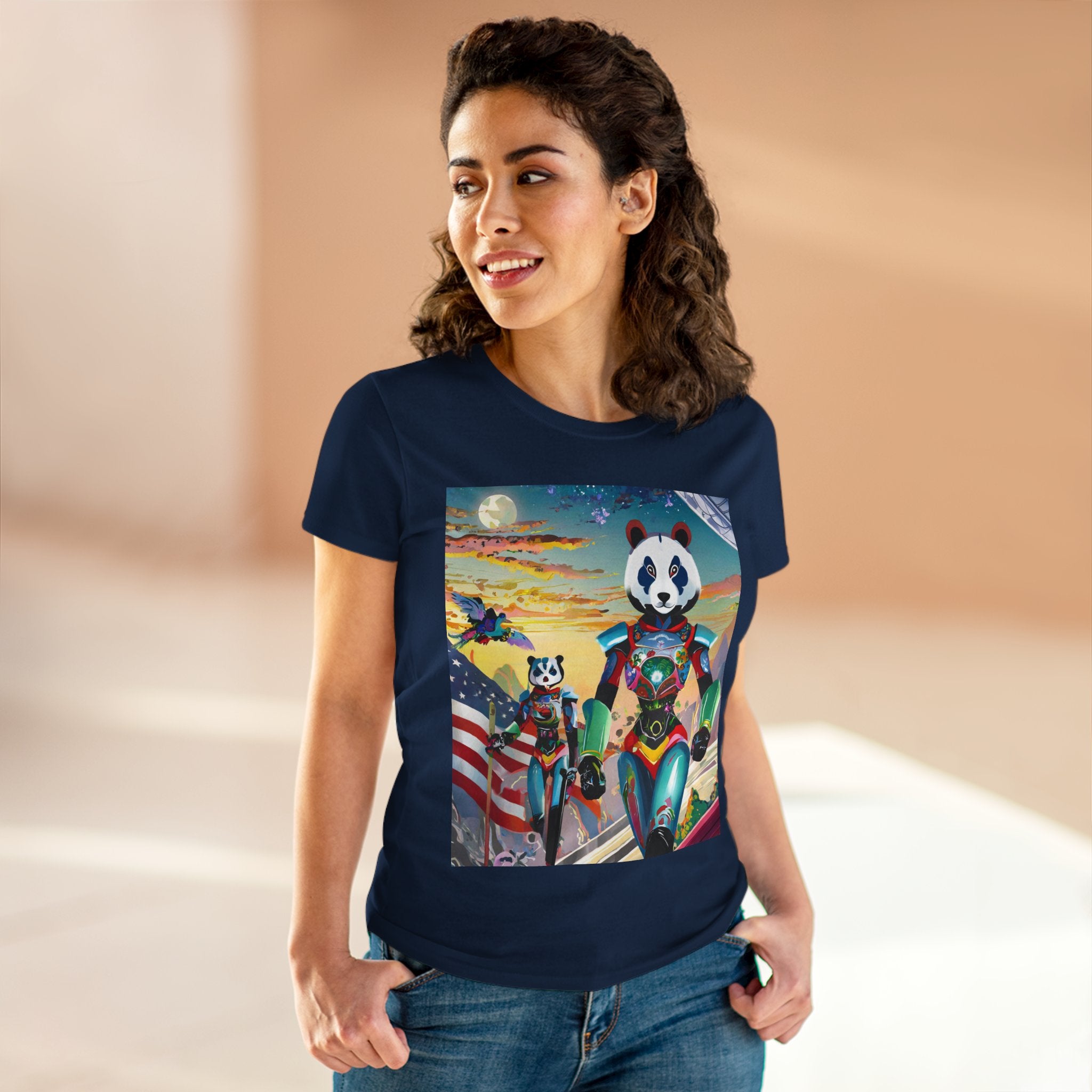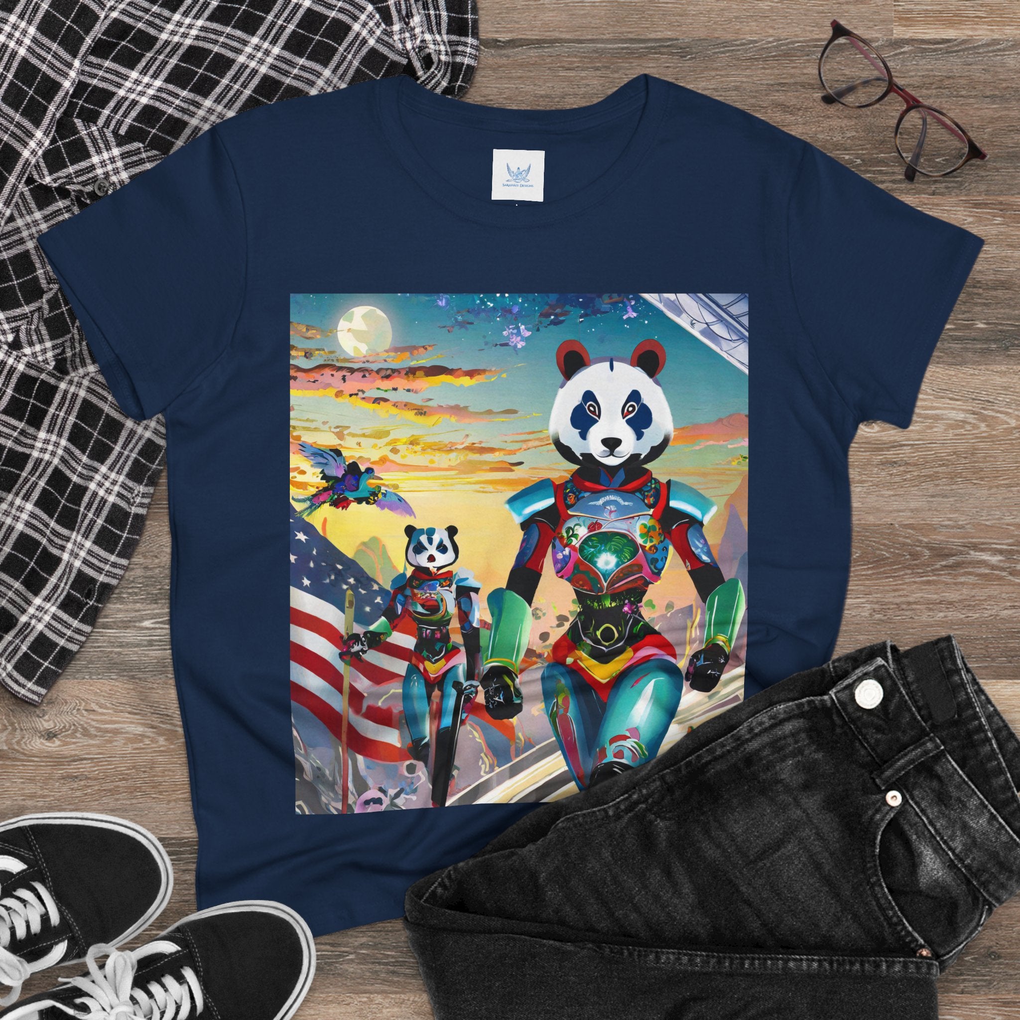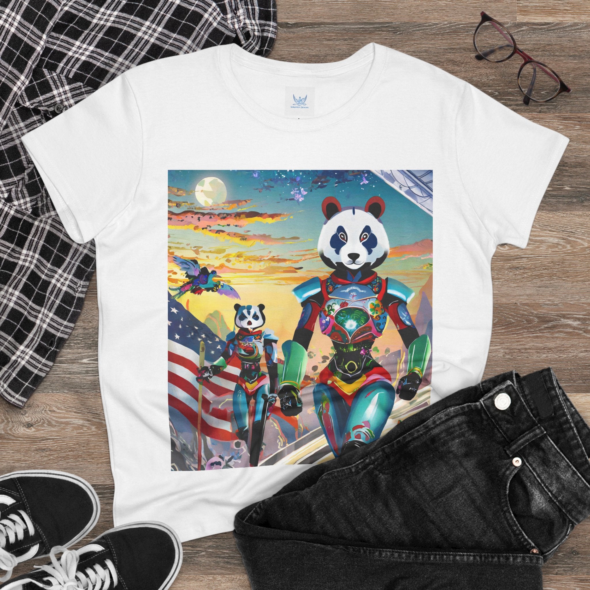 Cyber Punk Robots Cotton Tee brings bold futuristic energy and patriotic flair to a soft everyday essential. Made from light, breathable 100% cotton, this contoured tee offers a flattering semi-fitted silhouette that feels comfortable and easy to wear all day.