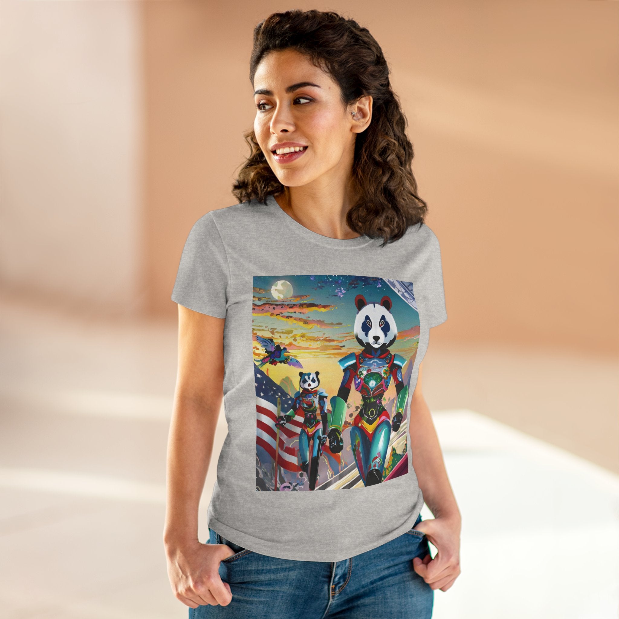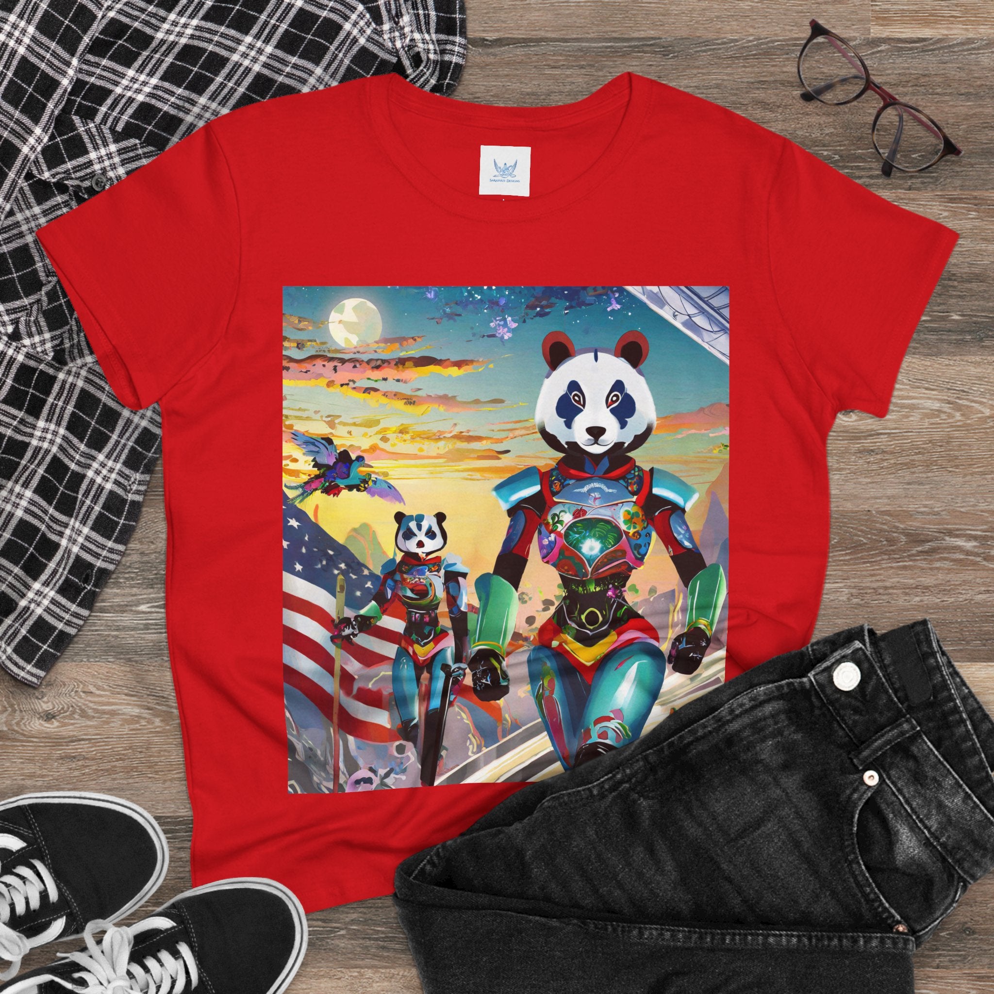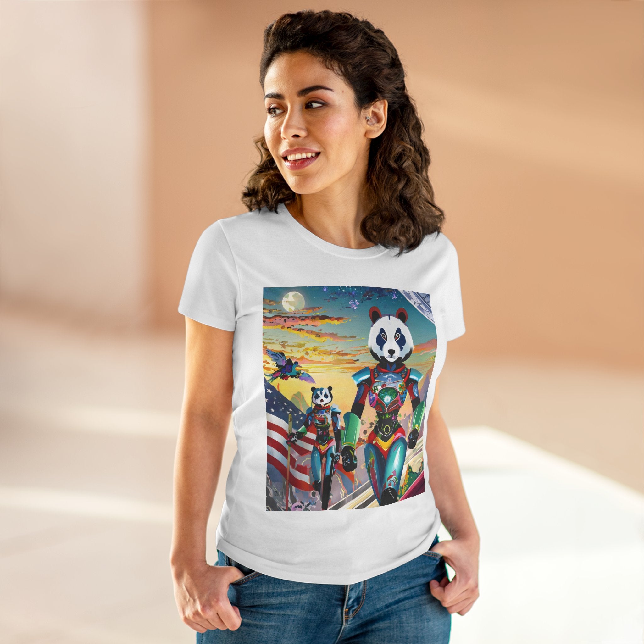 Cyber Punk Robots Cotton Tee brings bold futuristic energy and patriotic flair to a soft everyday essential. Made from light, breathable 100% cotton, this contoured tee offers a flattering semi-fitted silhouette that feels comfortable and easy to wear all day.