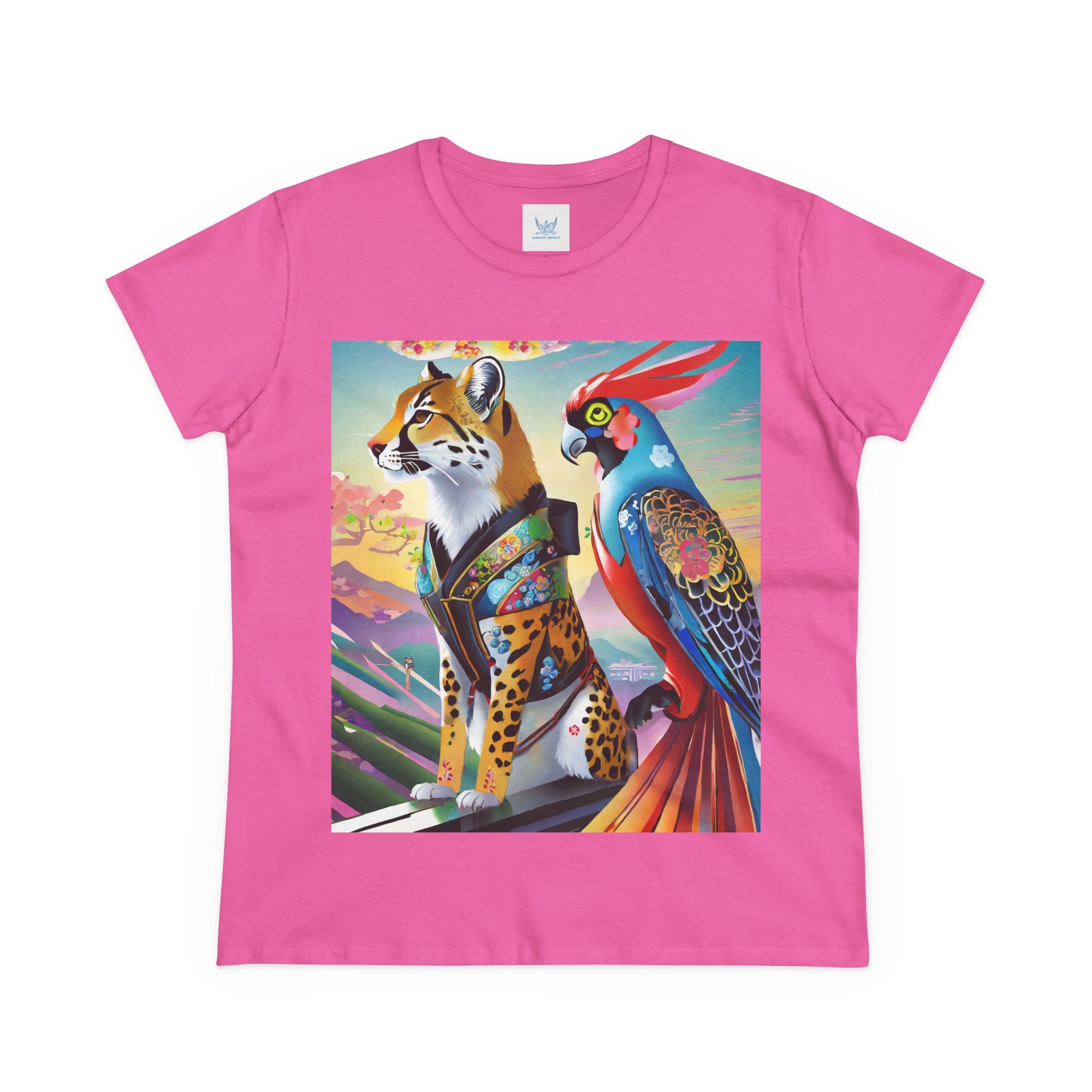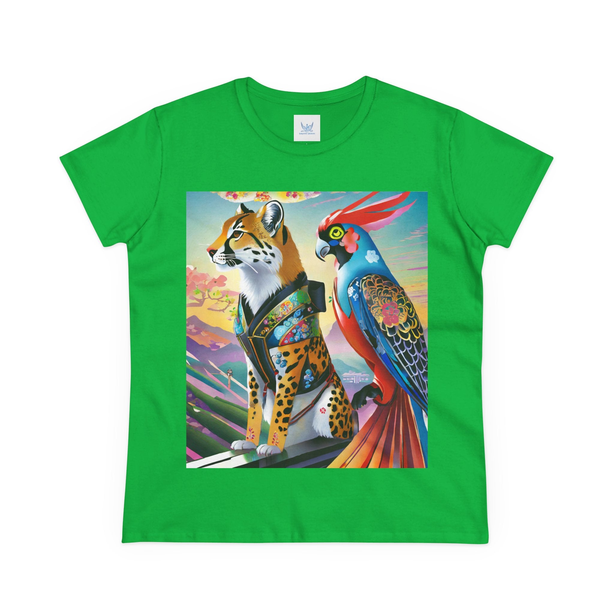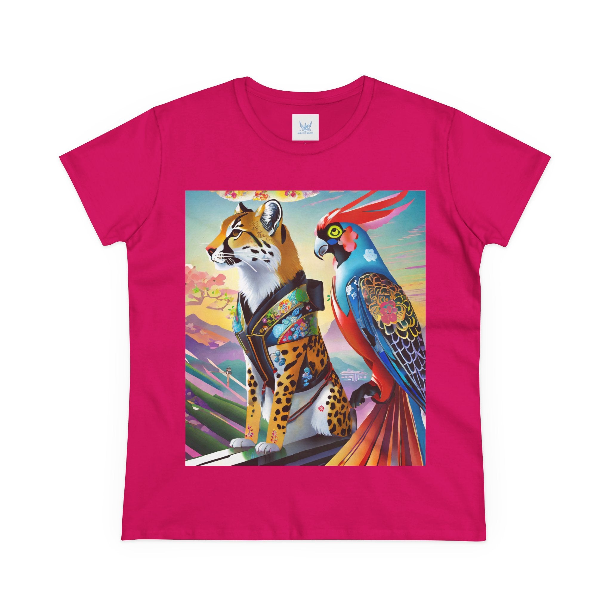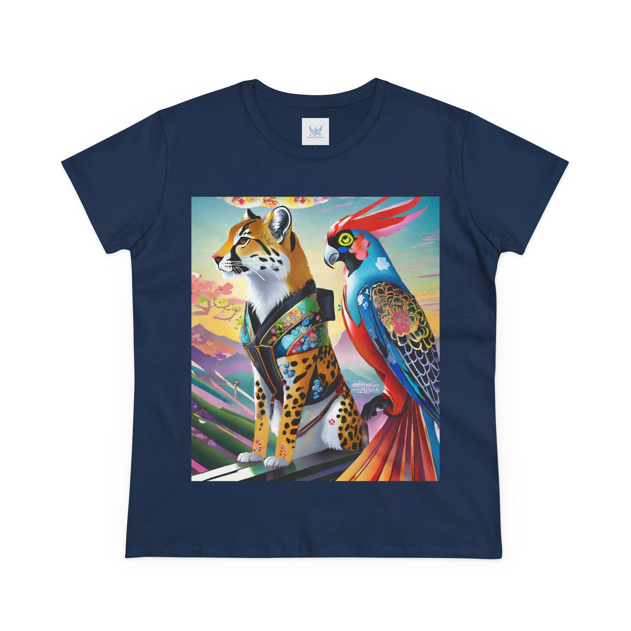 The featured artwork, Cybernetic Duets, showcases a cybernetic cheetah in a shimmering holographic dress and mysterious Kitsune mask striding with confident grace, while a cybernetic parrot beside it flaunts vibrant feathers enhanced with holographic displays and chrome wings. Together they create a mesmerizing fusion of natural elegance and technological prowess that defines cutting edge cyberpunk fashion.