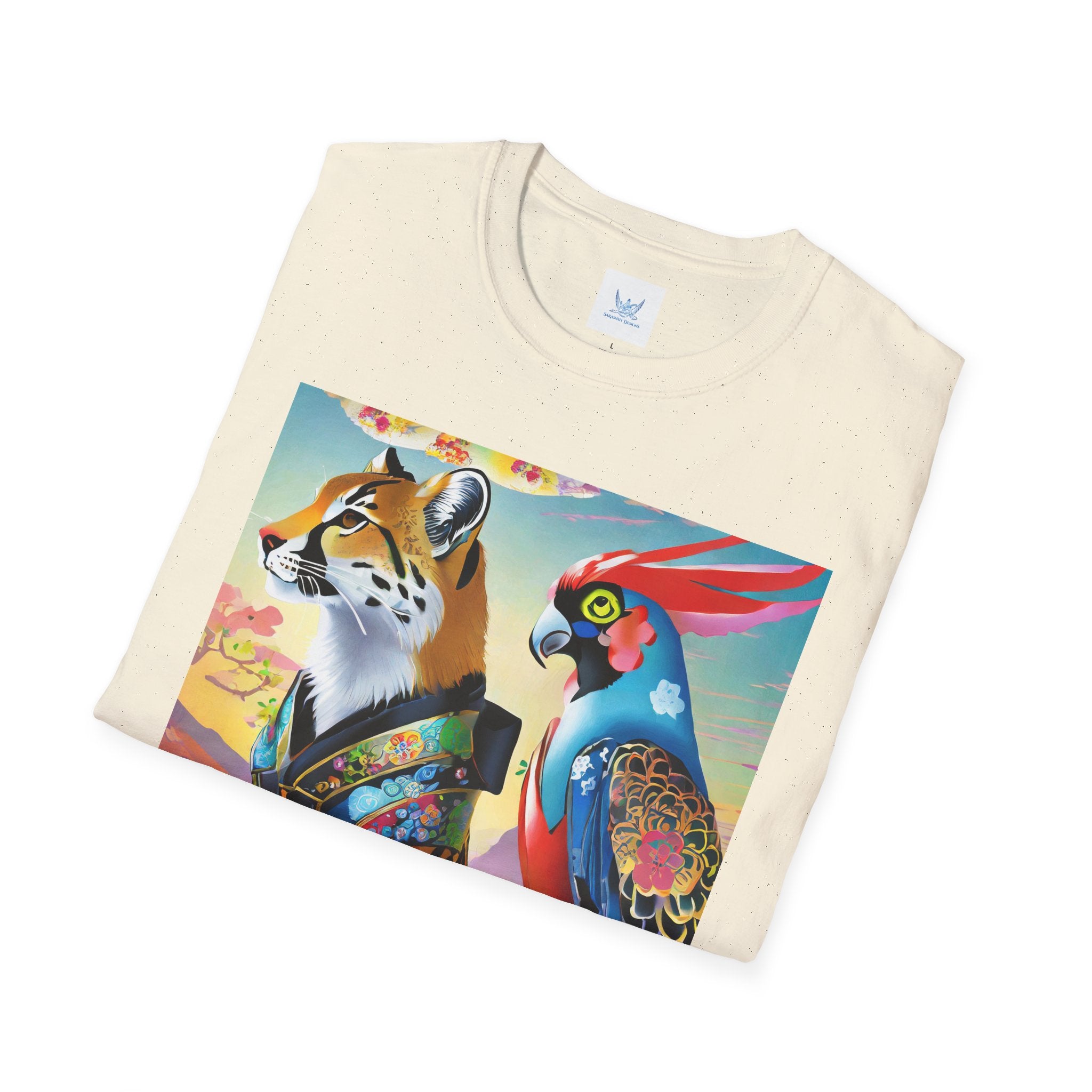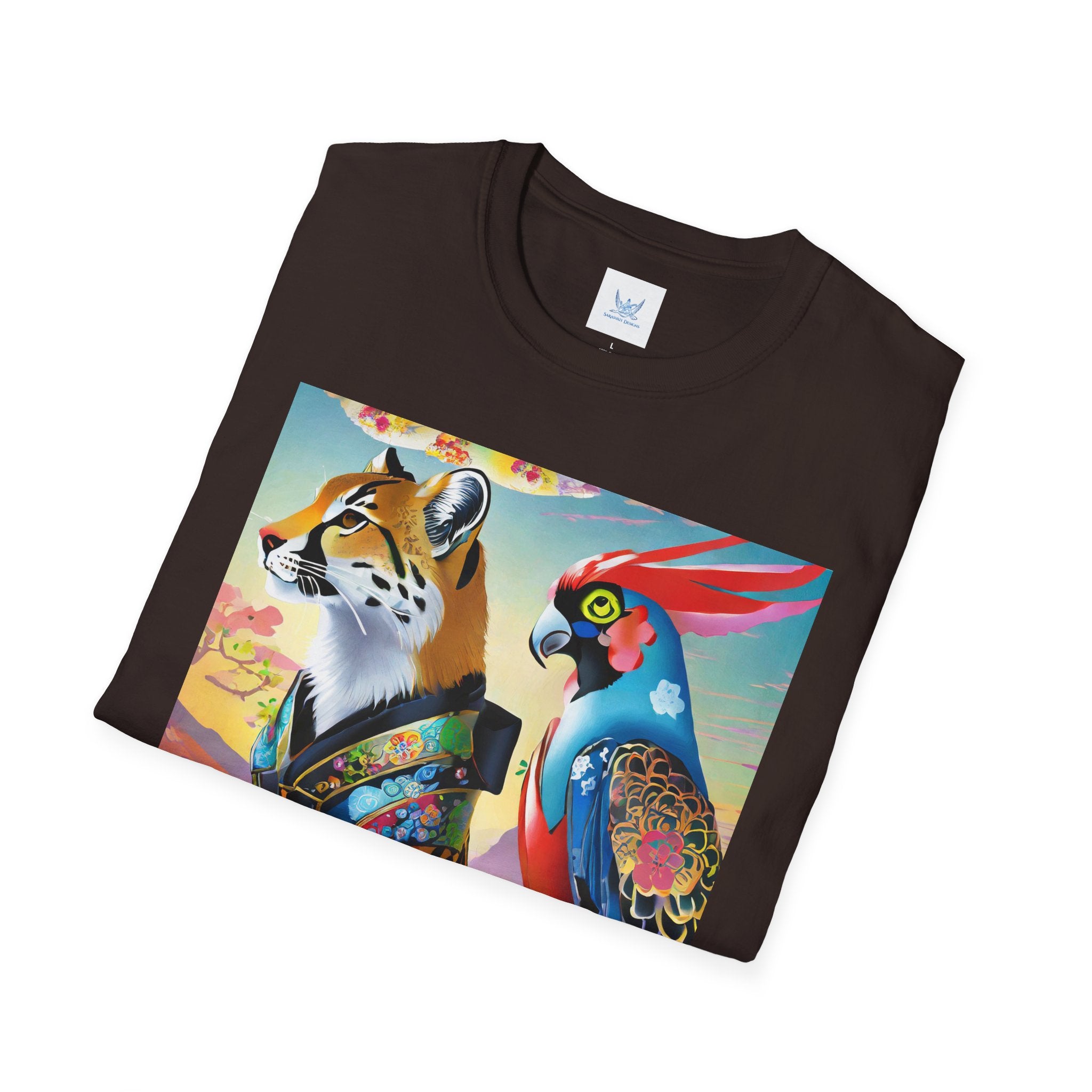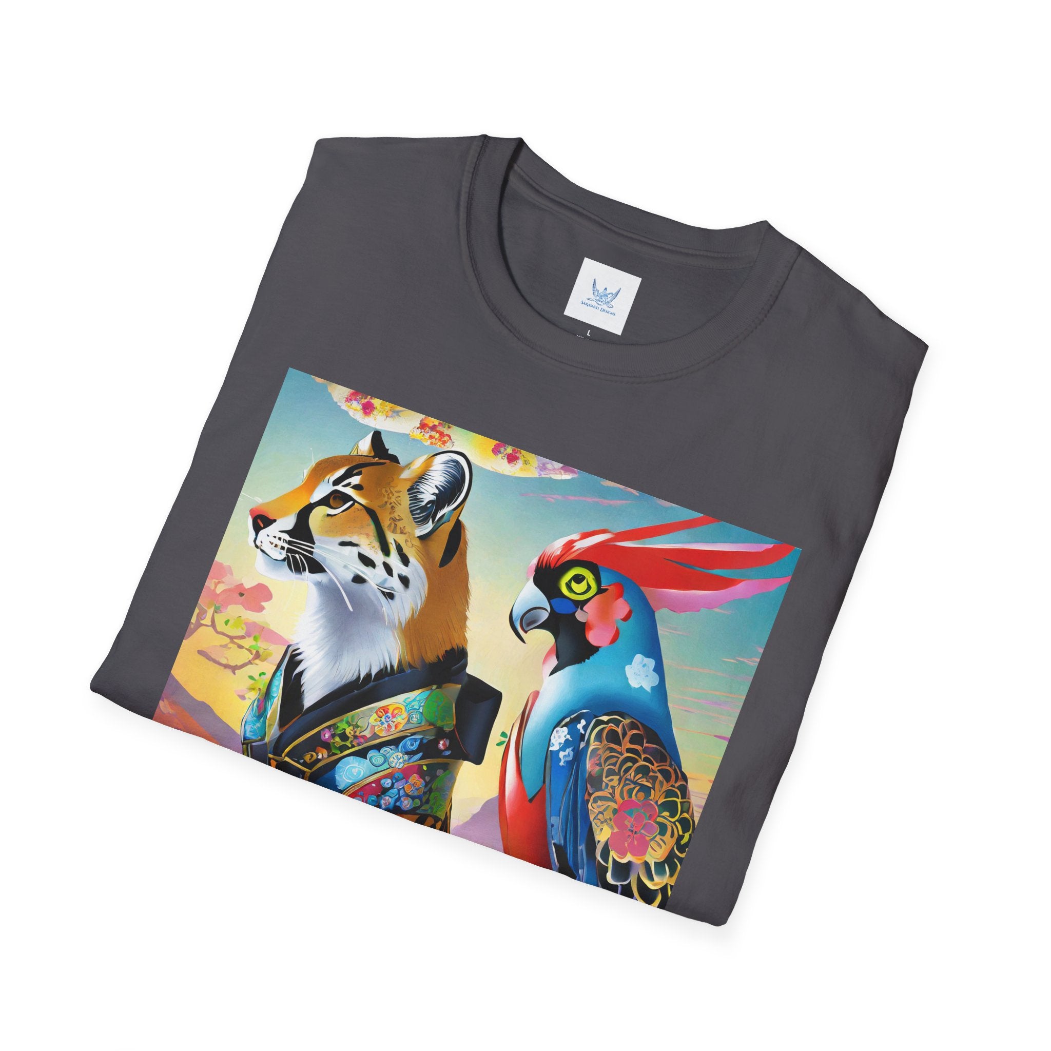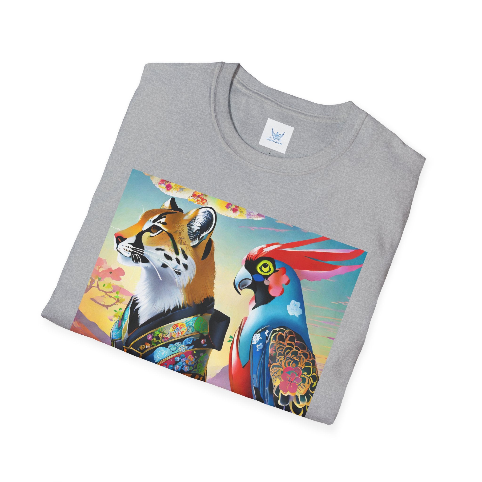 Cybernetic Duets Softstyle T-Shirt delivers a striking fusion of futuristic design and bold animal elegance. Crafted from the Gildan Softstyle® 64000, this shirt combines modern style with luxurious comfort. Solid colors are made from 100% cotton, while heathers and sport grey include polyester blends for added durability and flexibility. Reinforced shoulders, a seamless body design, and a ribbed-knit collar ensure a flattering fit that resists wear and maintains its shape—perfect for both statement fashion and everyday wear.