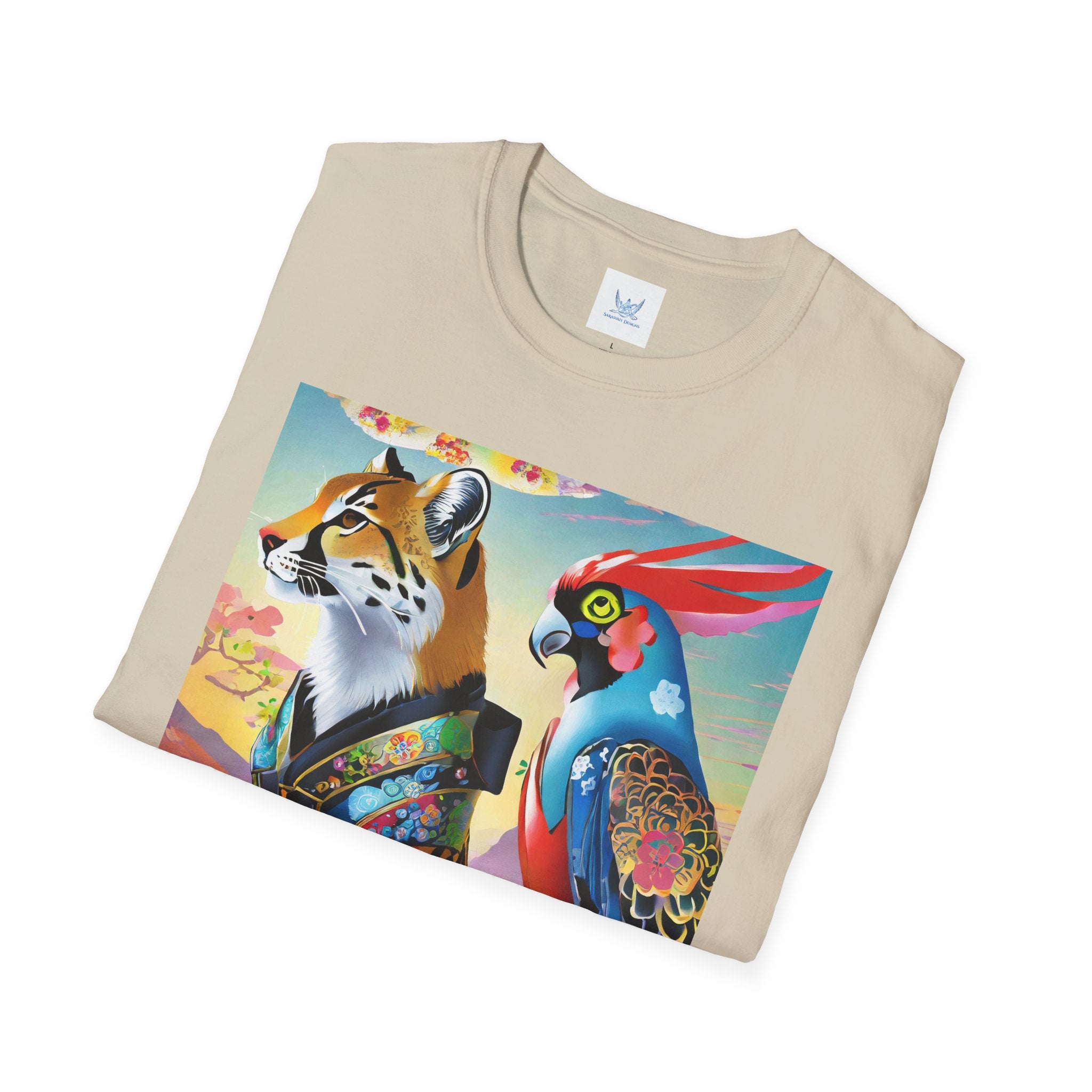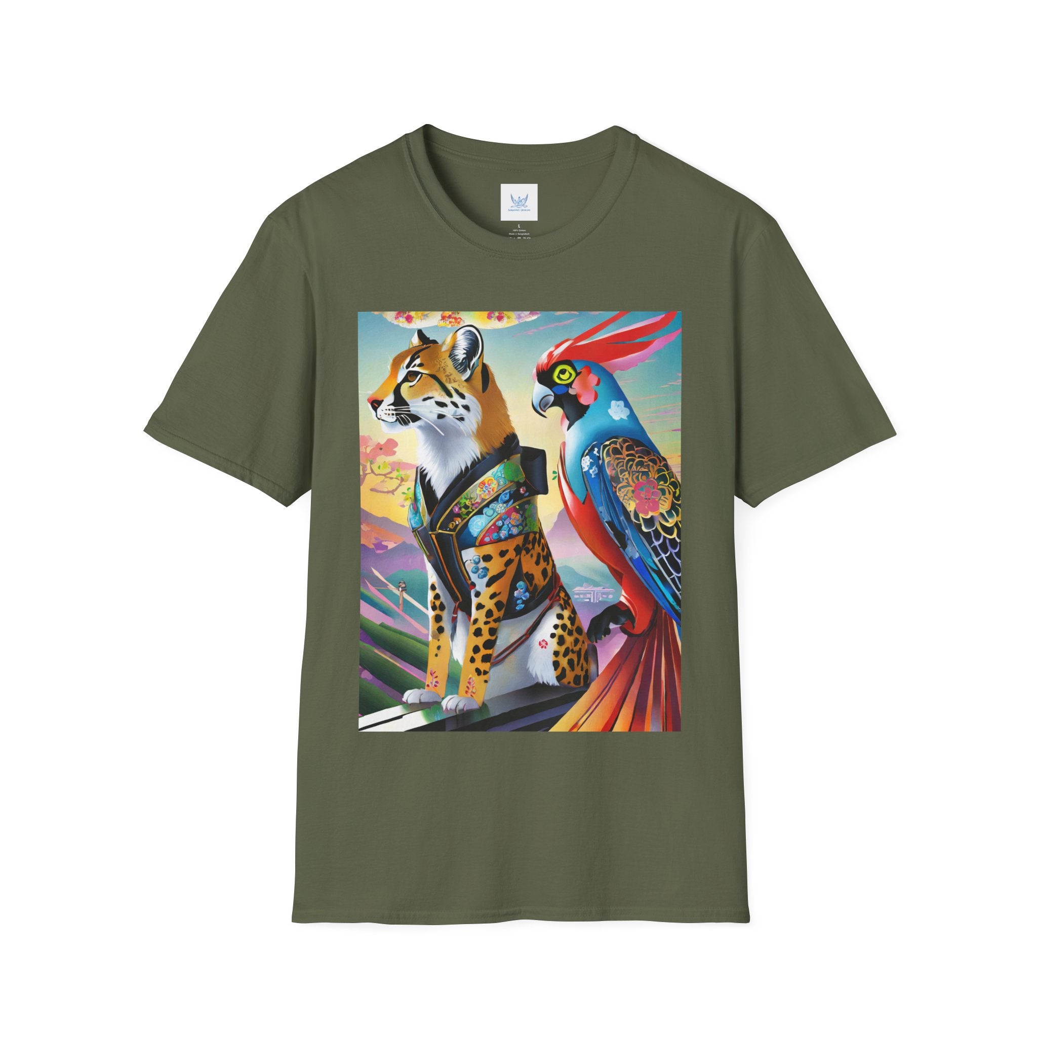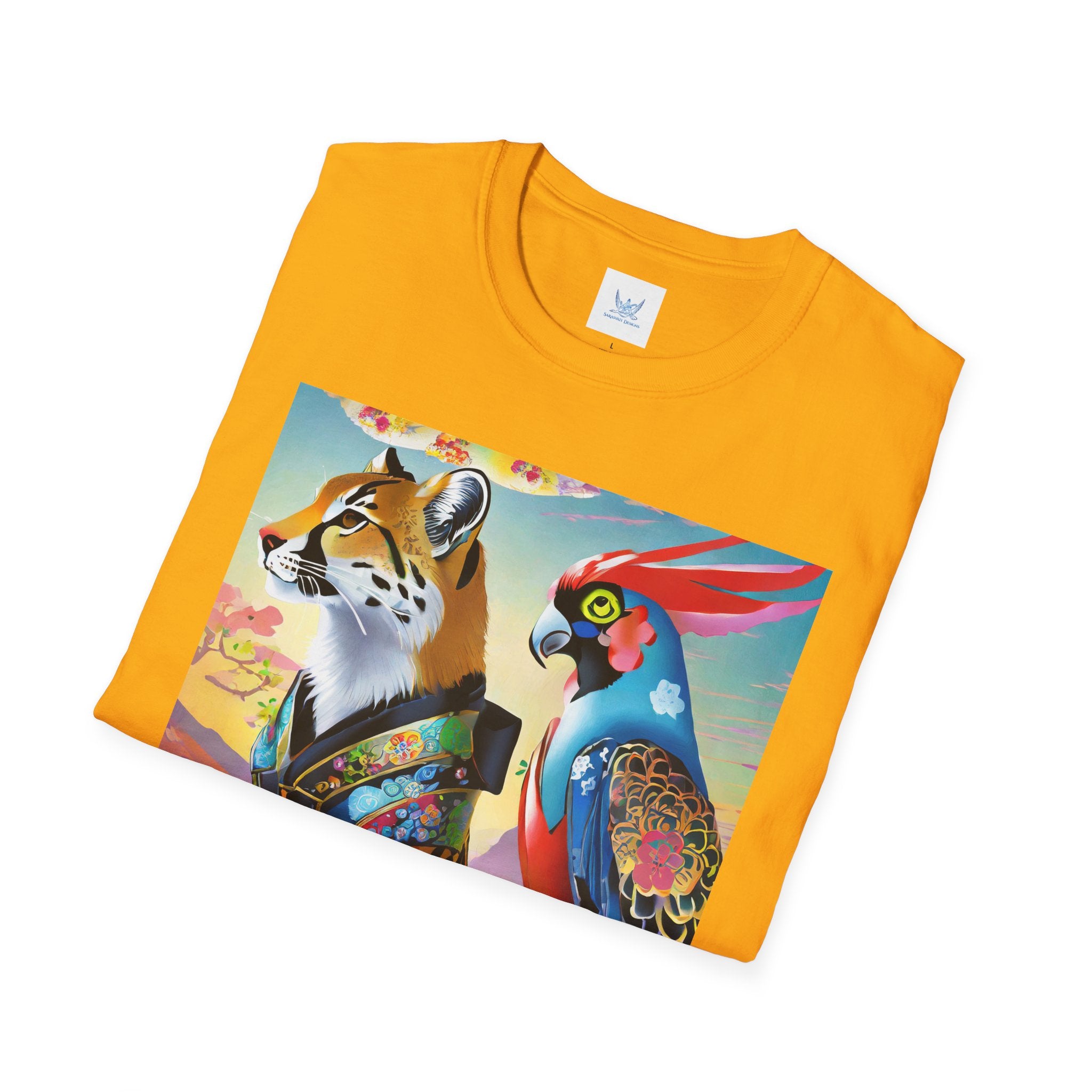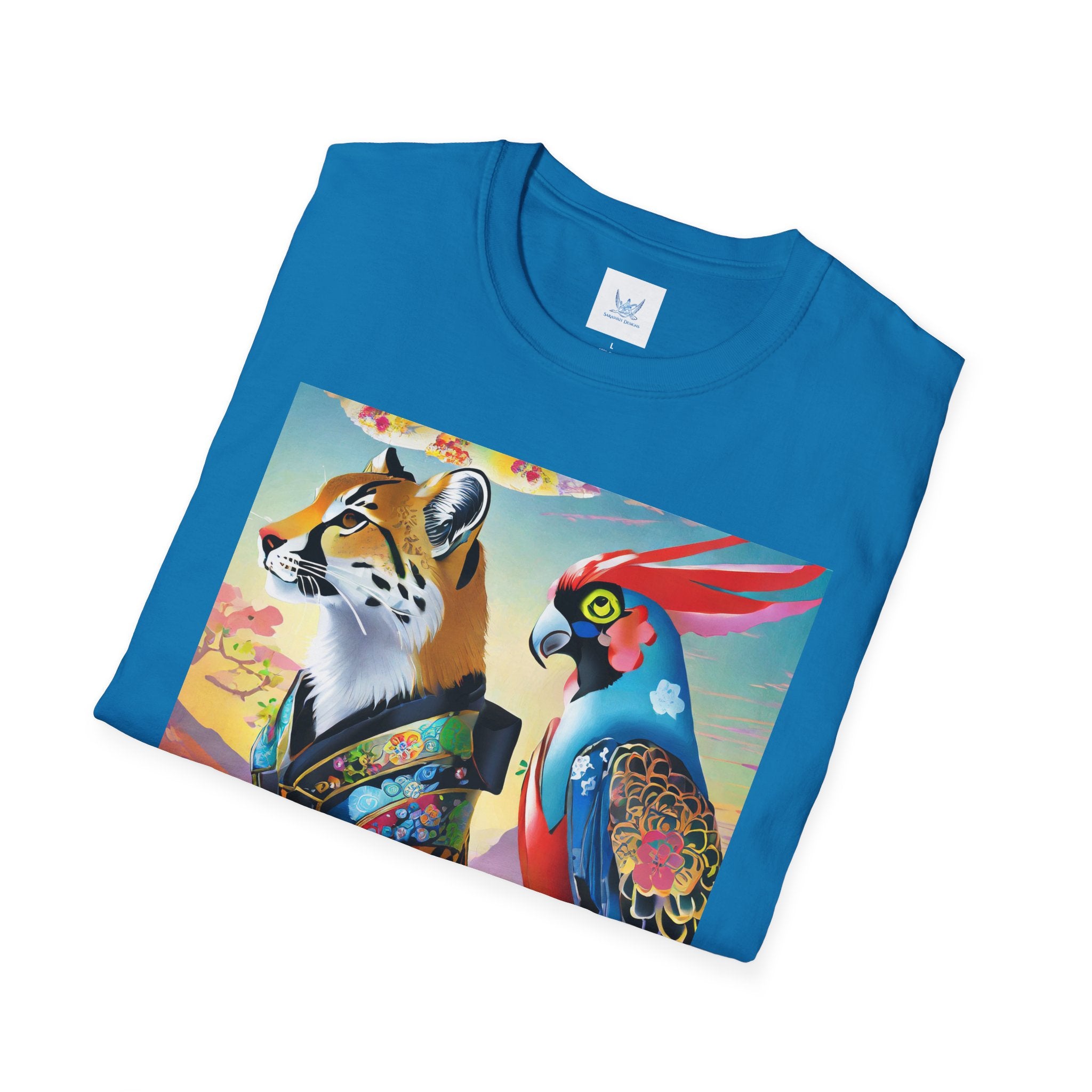 Cybernetic Duets Softstyle T-Shirt delivers a striking fusion of futuristic design and bold animal elegance. Crafted from the Gildan Softstyle® 64000, this shirt combines modern style with luxurious comfort. Solid colors are made from 100% cotton, while heathers and sport grey include polyester blends for added durability and flexibility. Reinforced shoulders, a seamless body design, and a ribbed-knit collar ensure a flattering fit that resists wear and maintains its shape—perfect for both statement fashion and everyday wear.