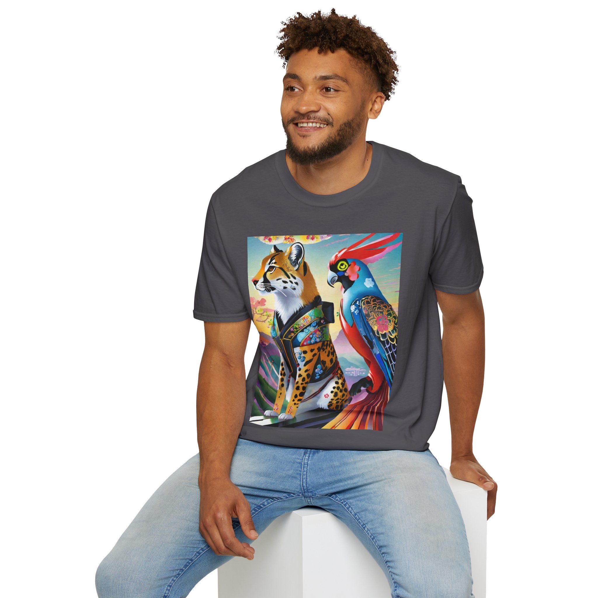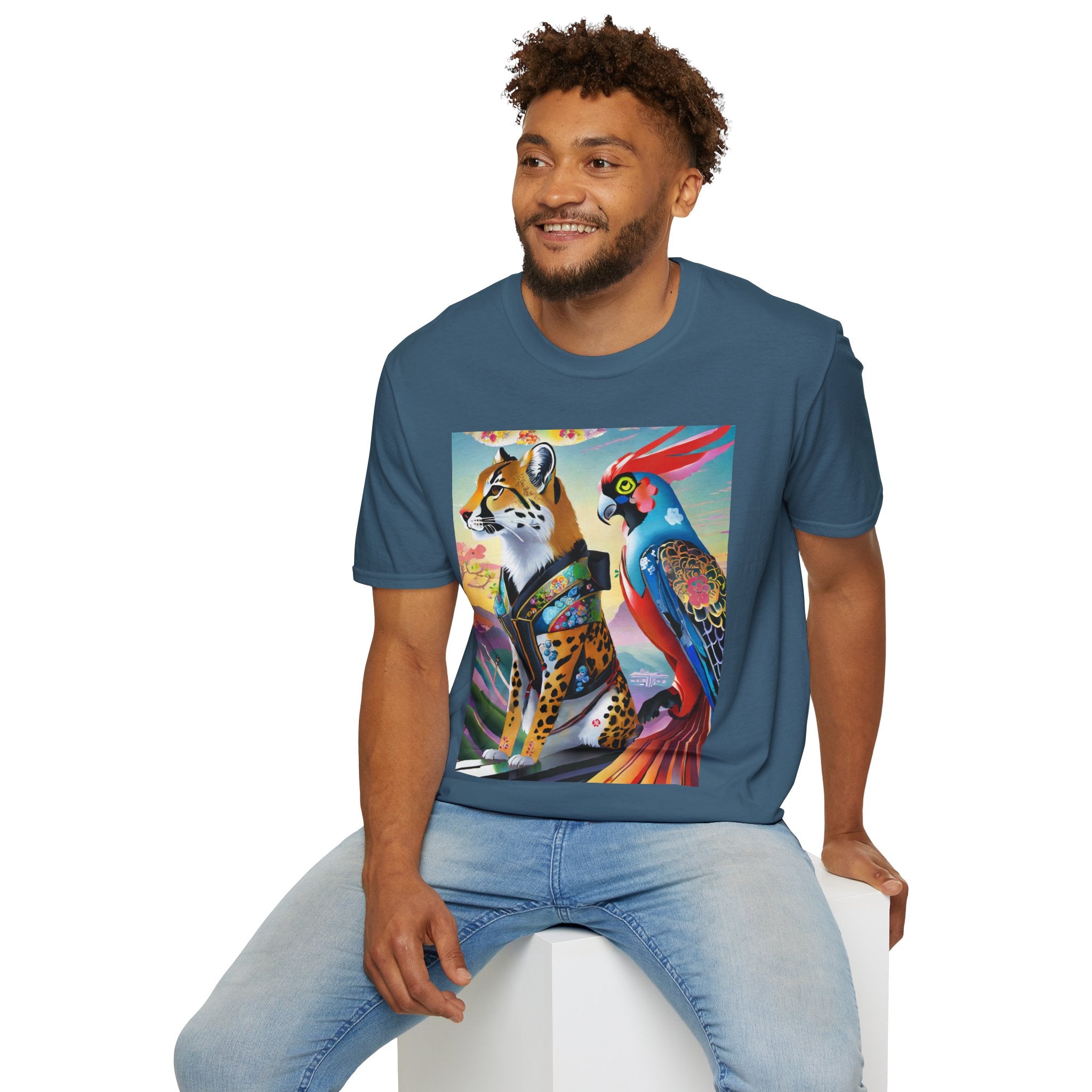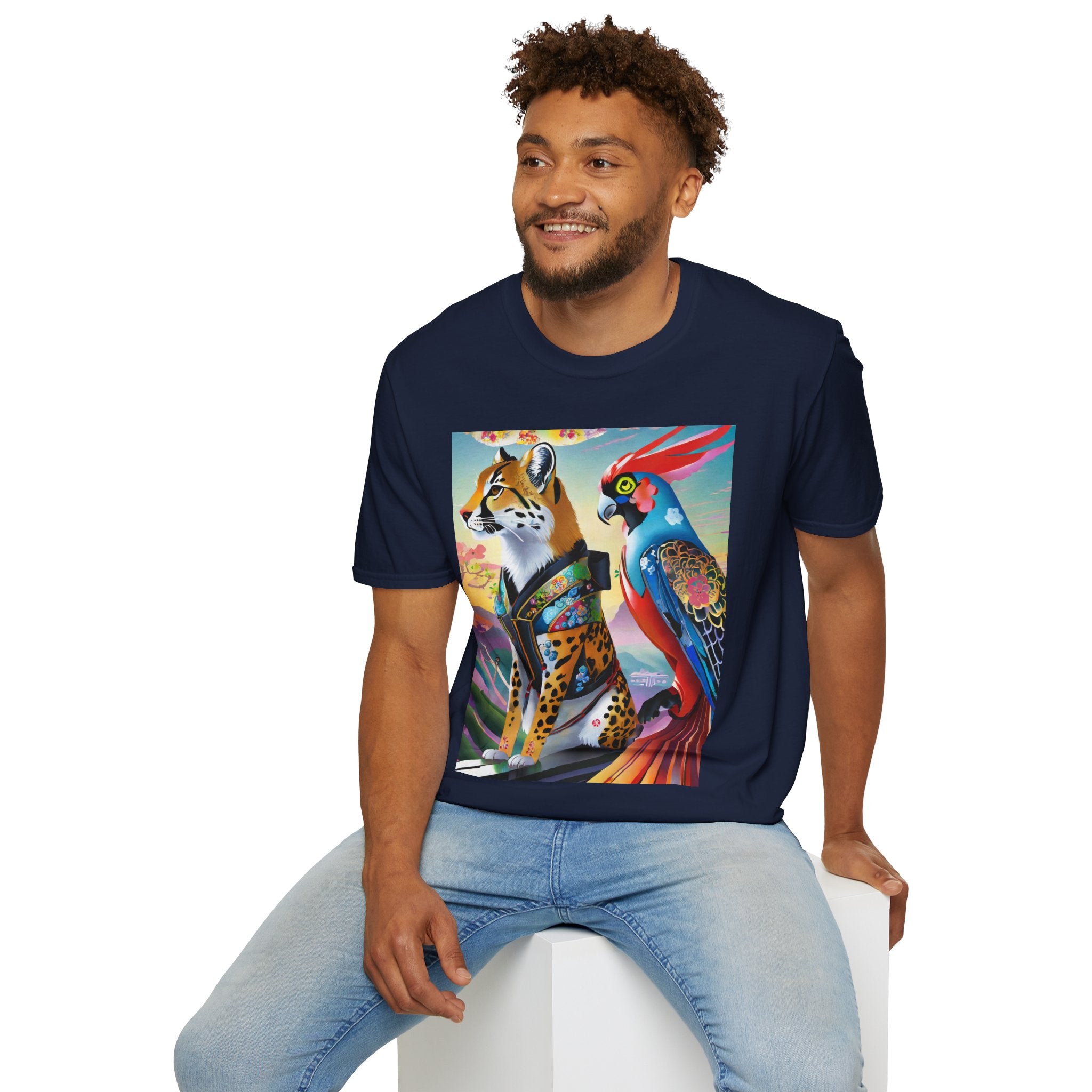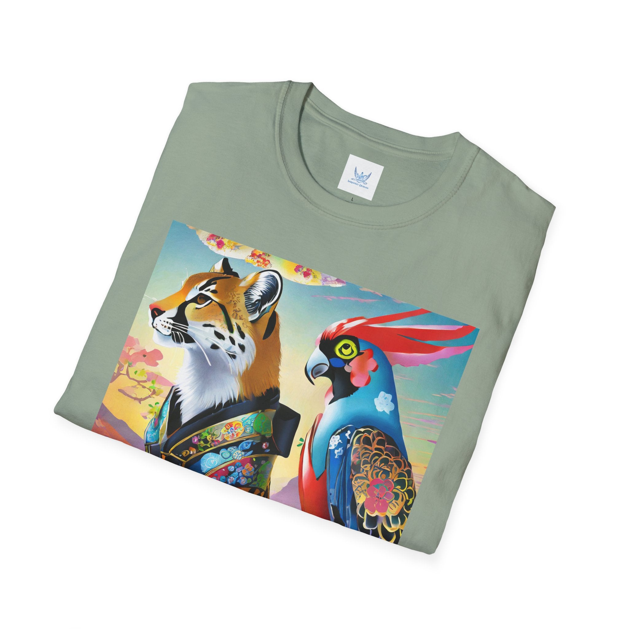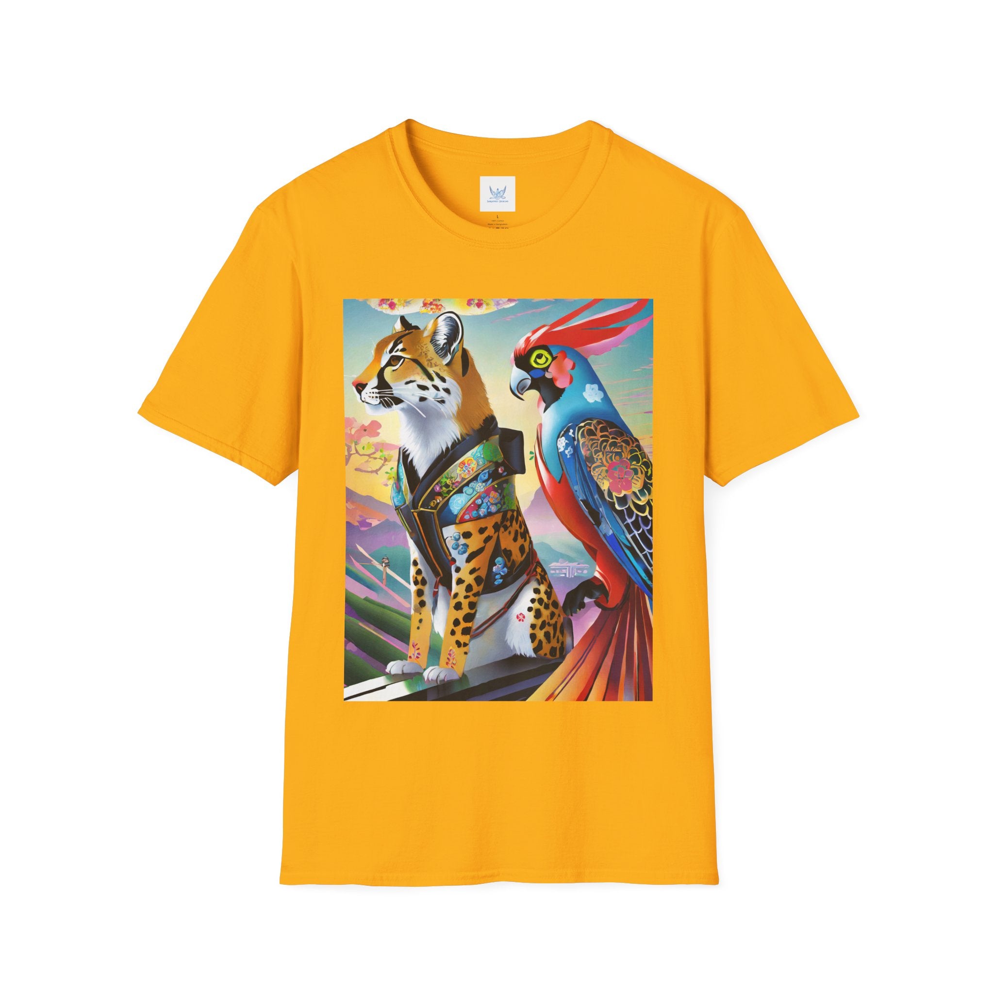 Cybernetic Duets Softstyle T-Shirt delivers a striking fusion of futuristic design and bold animal elegance. Crafted from the Gildan Softstyle® 64000, this shirt combines modern style with luxurious comfort. Solid colors are made from 100% cotton, while heathers and sport grey include polyester blends for added durability and flexibility. Reinforced shoulders, a seamless body design, and a ribbed-knit collar ensure a flattering fit that resists wear and maintains its shape—perfect for both statement fashion and everyday wear.