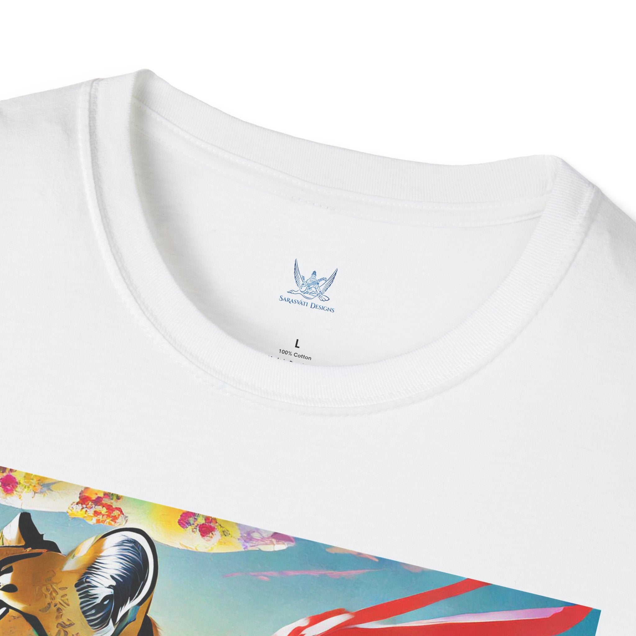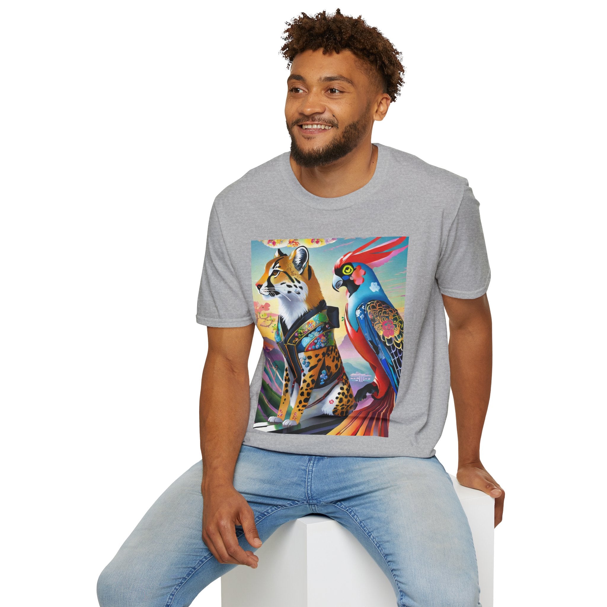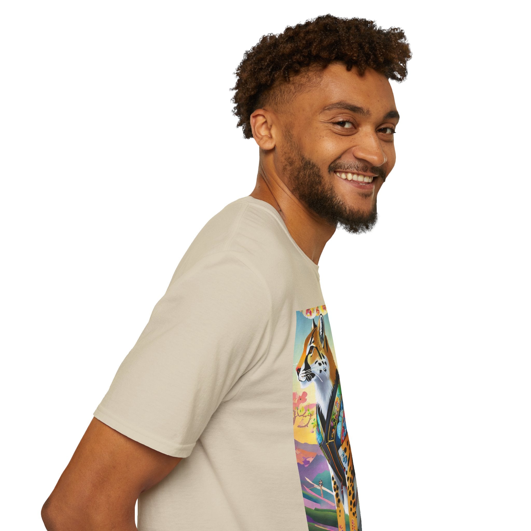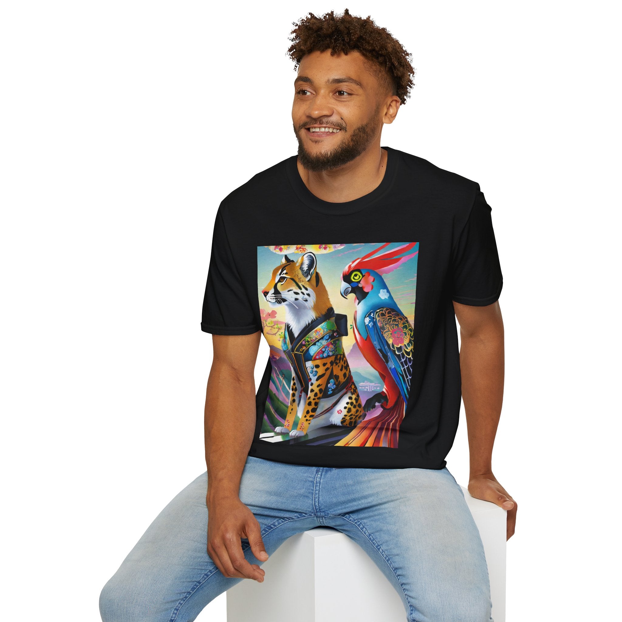 Cybernetic Duets Softstyle T-Shirt delivers a striking fusion of futuristic design and bold animal elegance. Crafted from the Gildan Softstyle® 64000, this shirt combines modern style with luxurious comfort. Solid colors are made from 100% cotton, while heathers and sport grey include polyester blends for added durability and flexibility. Reinforced shoulders, a seamless body design, and a ribbed-knit collar ensure a flattering fit that resists wear and maintains its shape—perfect for both statement fashion and everyday wear.