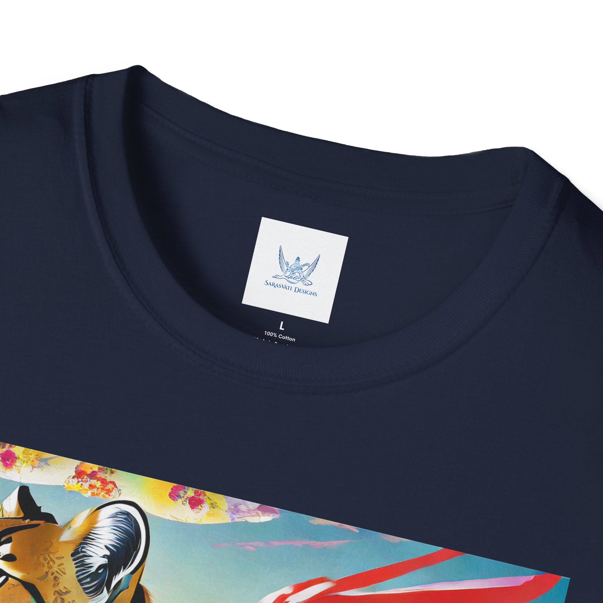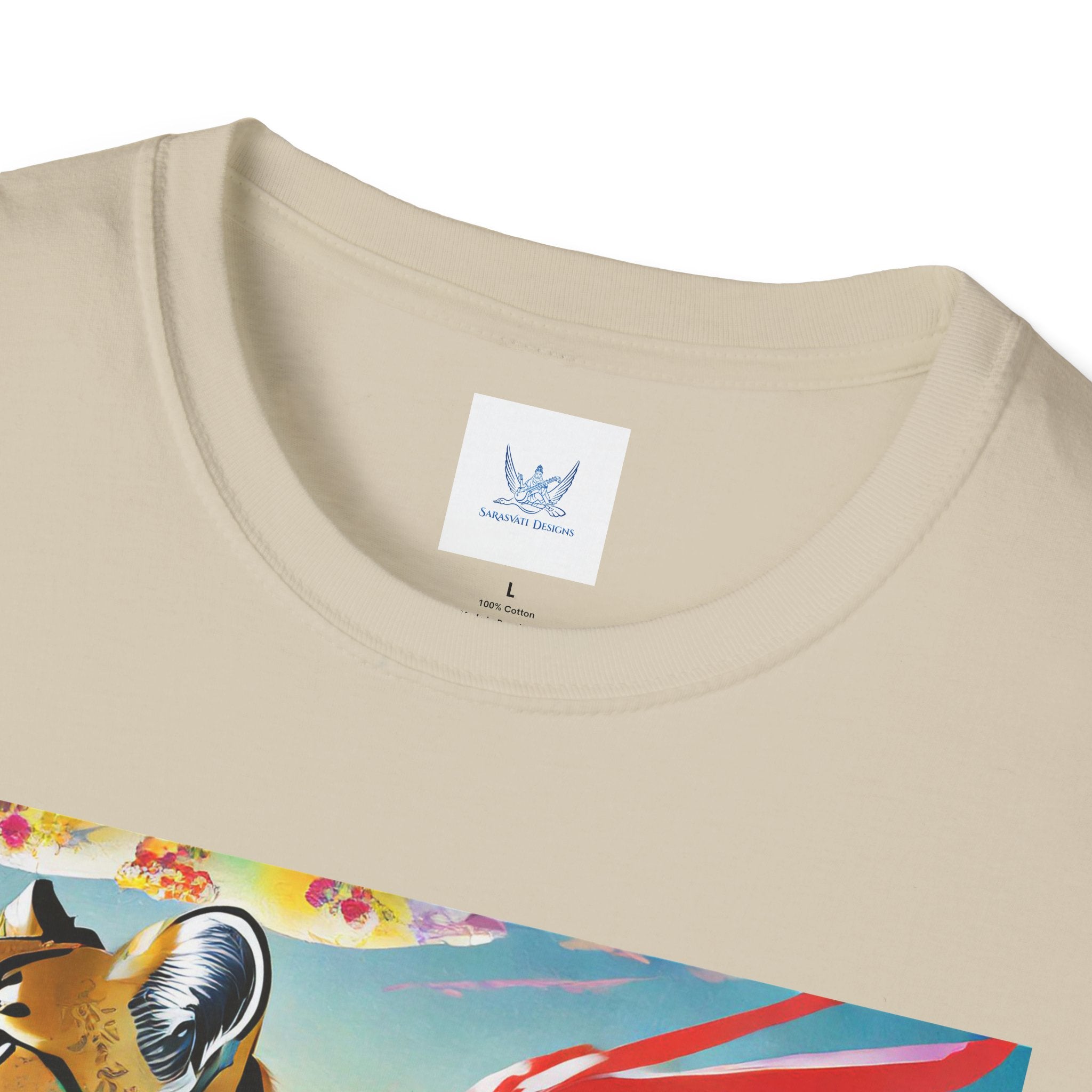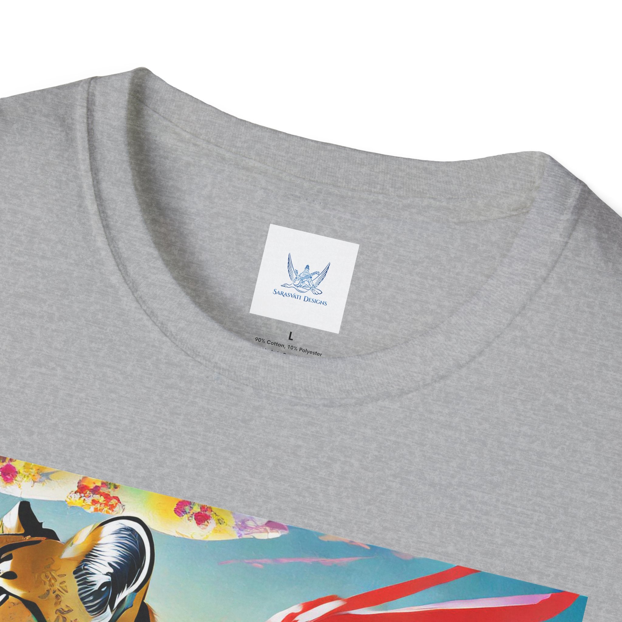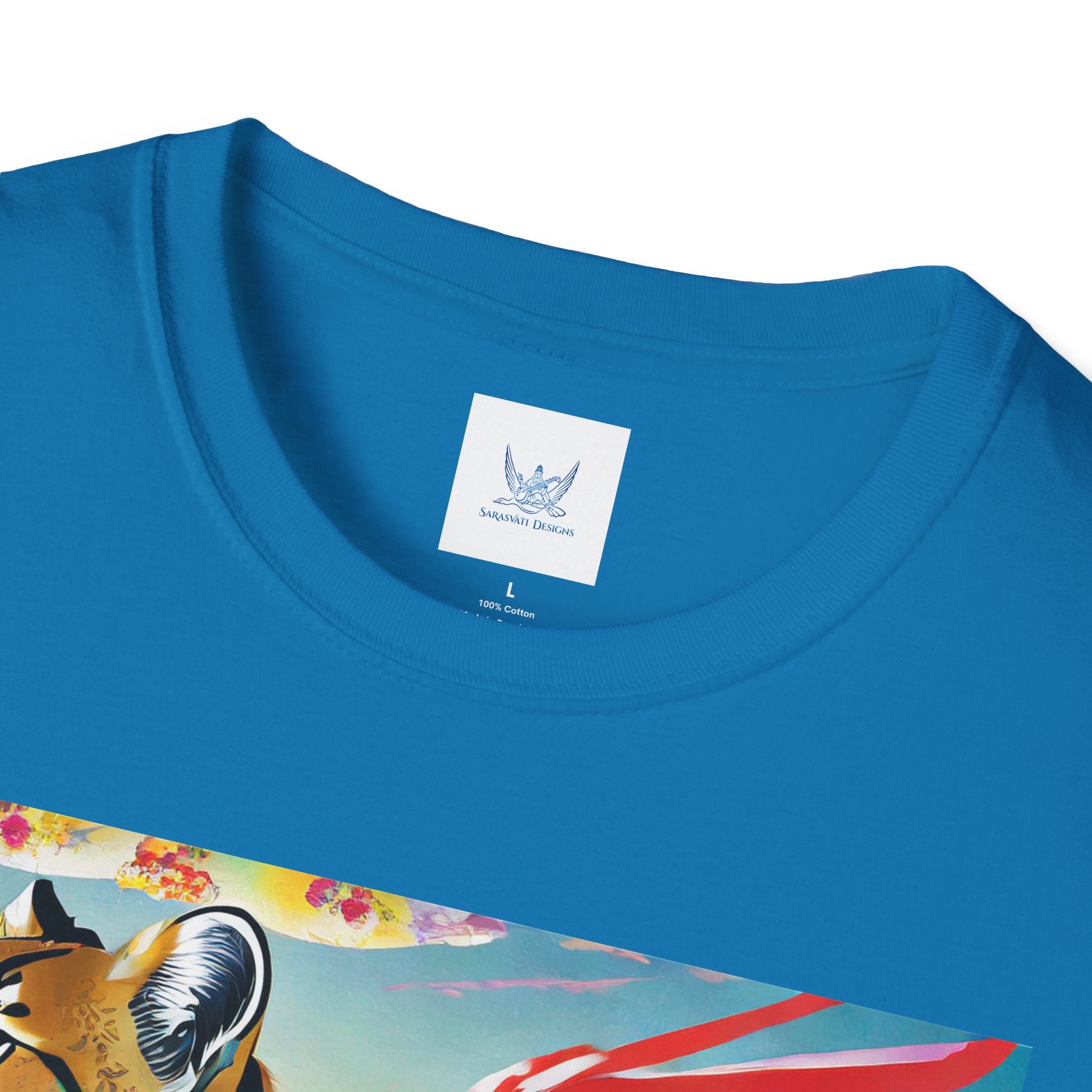 Cybernetic Duets Softstyle T-Shirt delivers a striking fusion of futuristic design and bold animal elegance. Crafted from the Gildan Softstyle® 64000, this shirt combines modern style with luxurious comfort. Solid colors are made from 100% cotton, while heathers and sport grey include polyester blends for added durability and flexibility. Reinforced shoulders, a seamless body design, and a ribbed-knit collar ensure a flattering fit that resists wear and maintains its shape—perfect for both statement fashion and everyday wear.