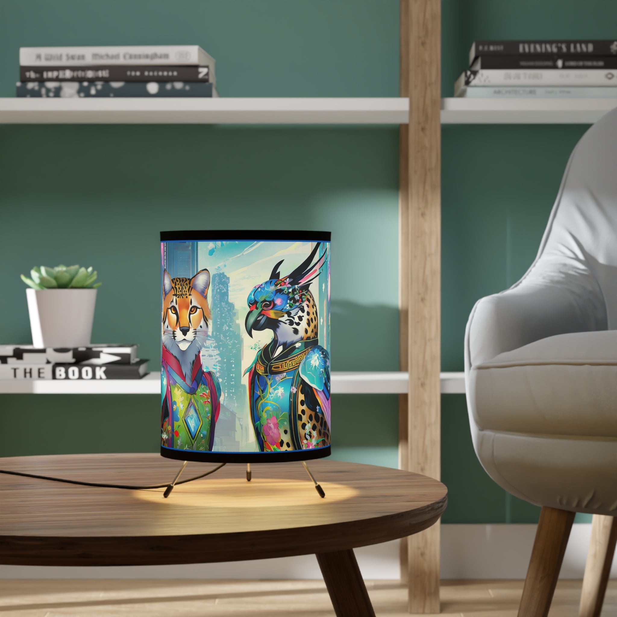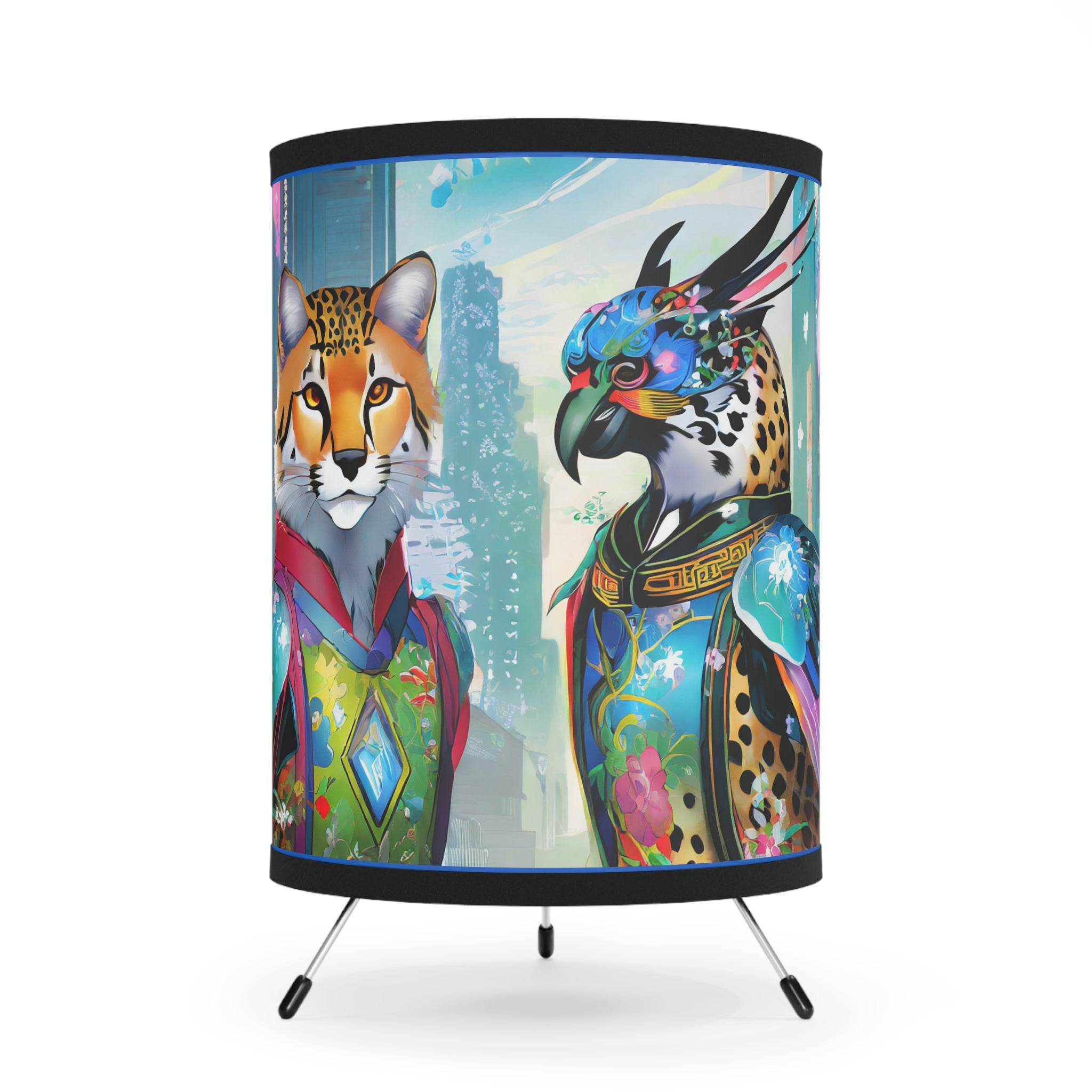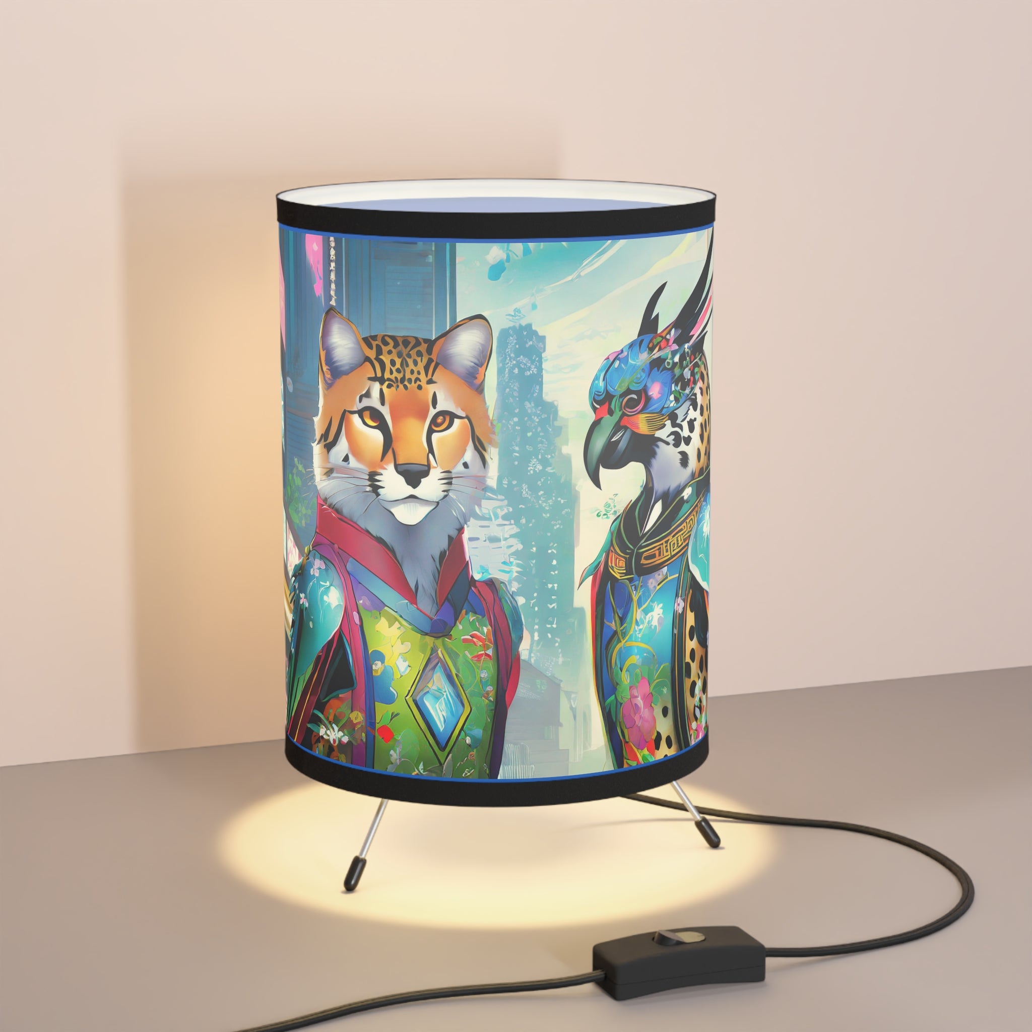 Transform your room with this epic tripod lamp! This sturdy lamp has a cool metal base, and the best part? It comes with an awesome pre-designed artwork for the shade! The high-resolution image is super vibrant, so your favorite design will light up your space in style. This lamp isn't just for lighting, it's a statement piece that lets you show off your personality. Light up your room and your imagination with this must-have lamp!