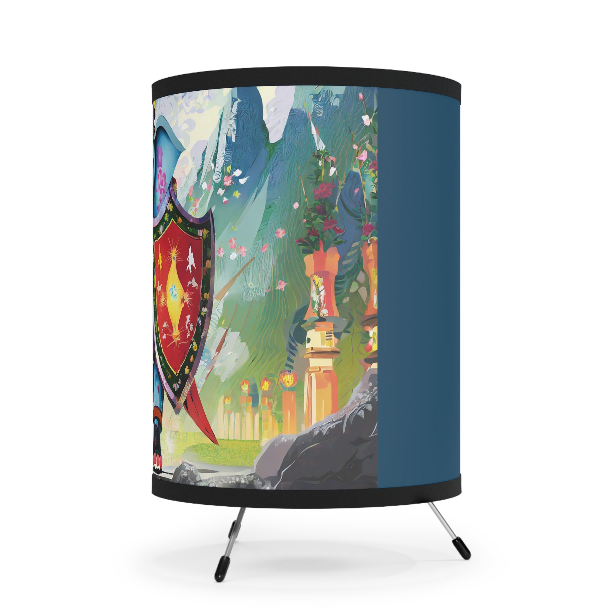 Transform your room with this epic tripod lamp! This sturdy lamp has a cool metal base, and the best part? It comes with an awesome pre-designed artwork for the shade! The high-resolution image is super vibrant, so your favorite design will light up your space in style. This lamp isn't just for lighting, it's a statement piece that lets you show off your personality. Light up your room and your imagination with this must-have lamp!