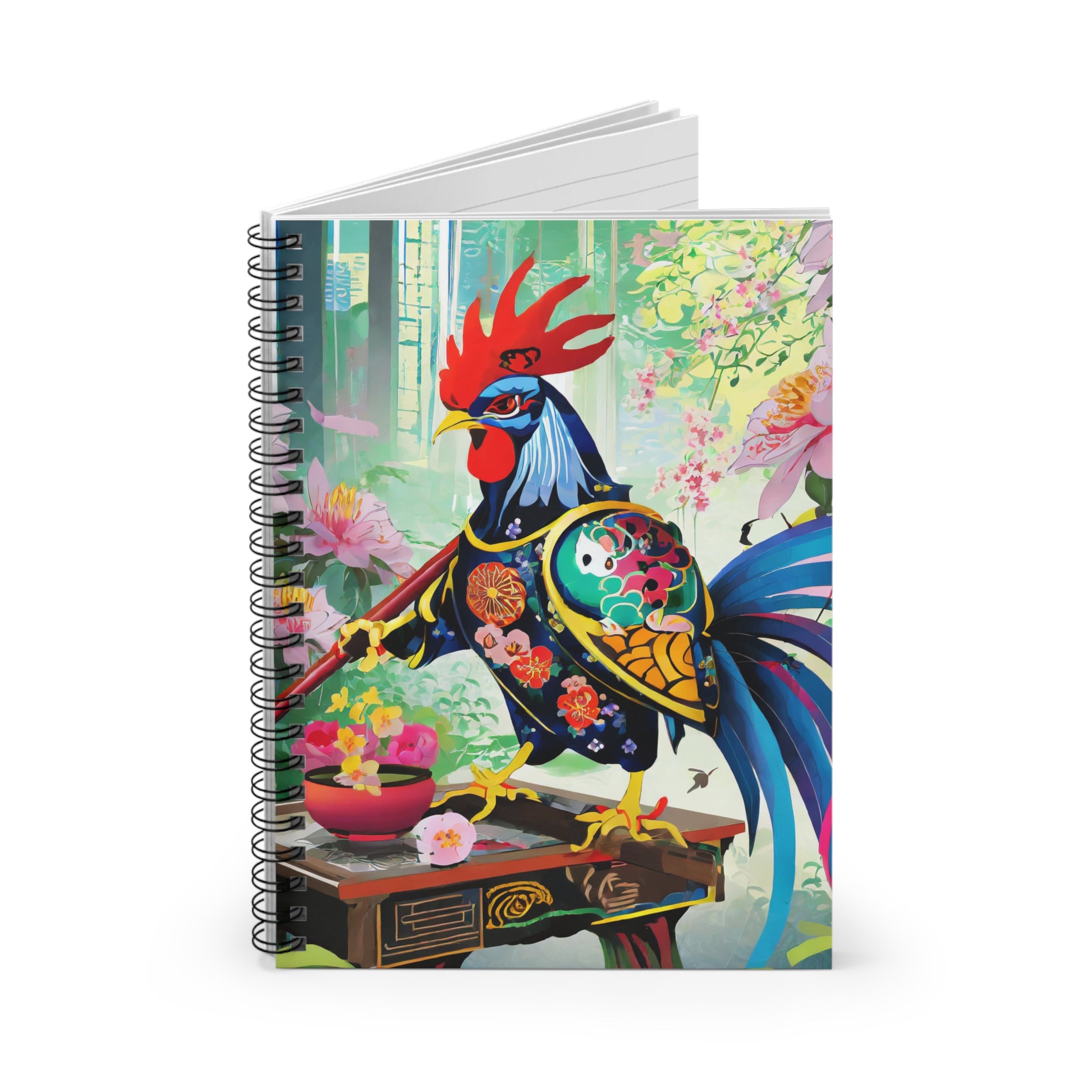 Artwork created, designed and digitally remastered by Sarasvati Designs. Amidst a cyberpunk flower garden, a samurai-rooster, infused with cybernetic enhancements, practices the art of Japanese flower arranging, blending ancient tradition with futuristic flair.