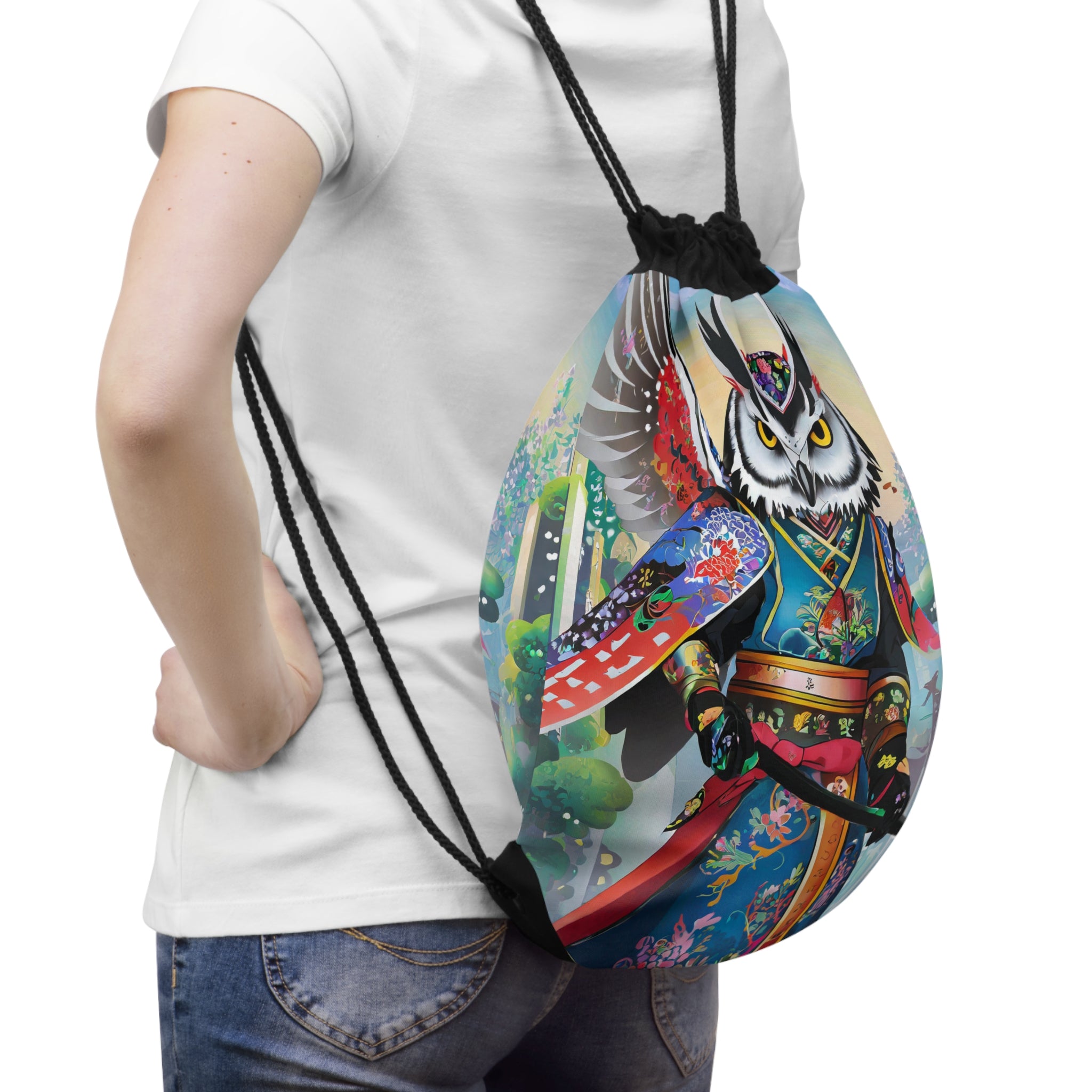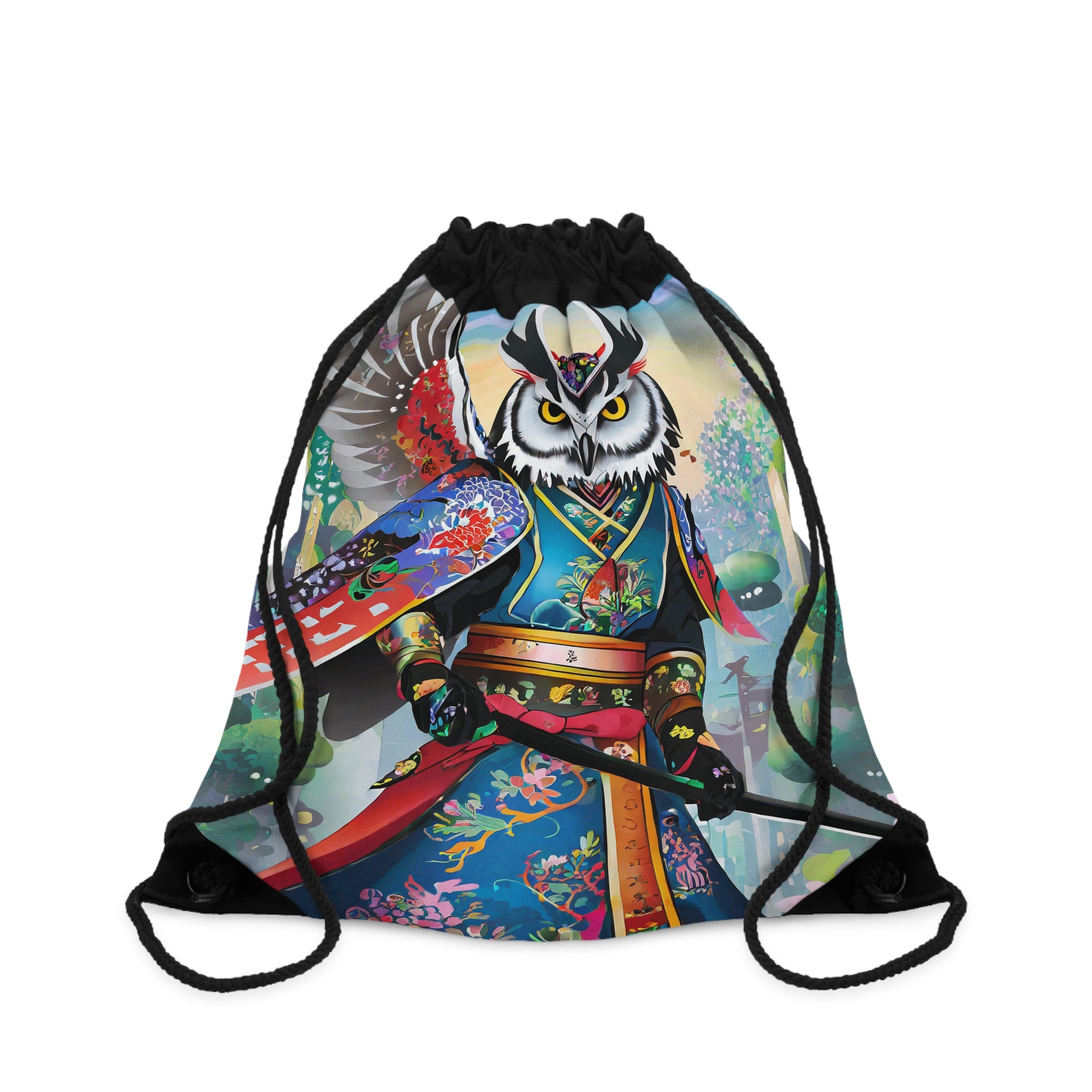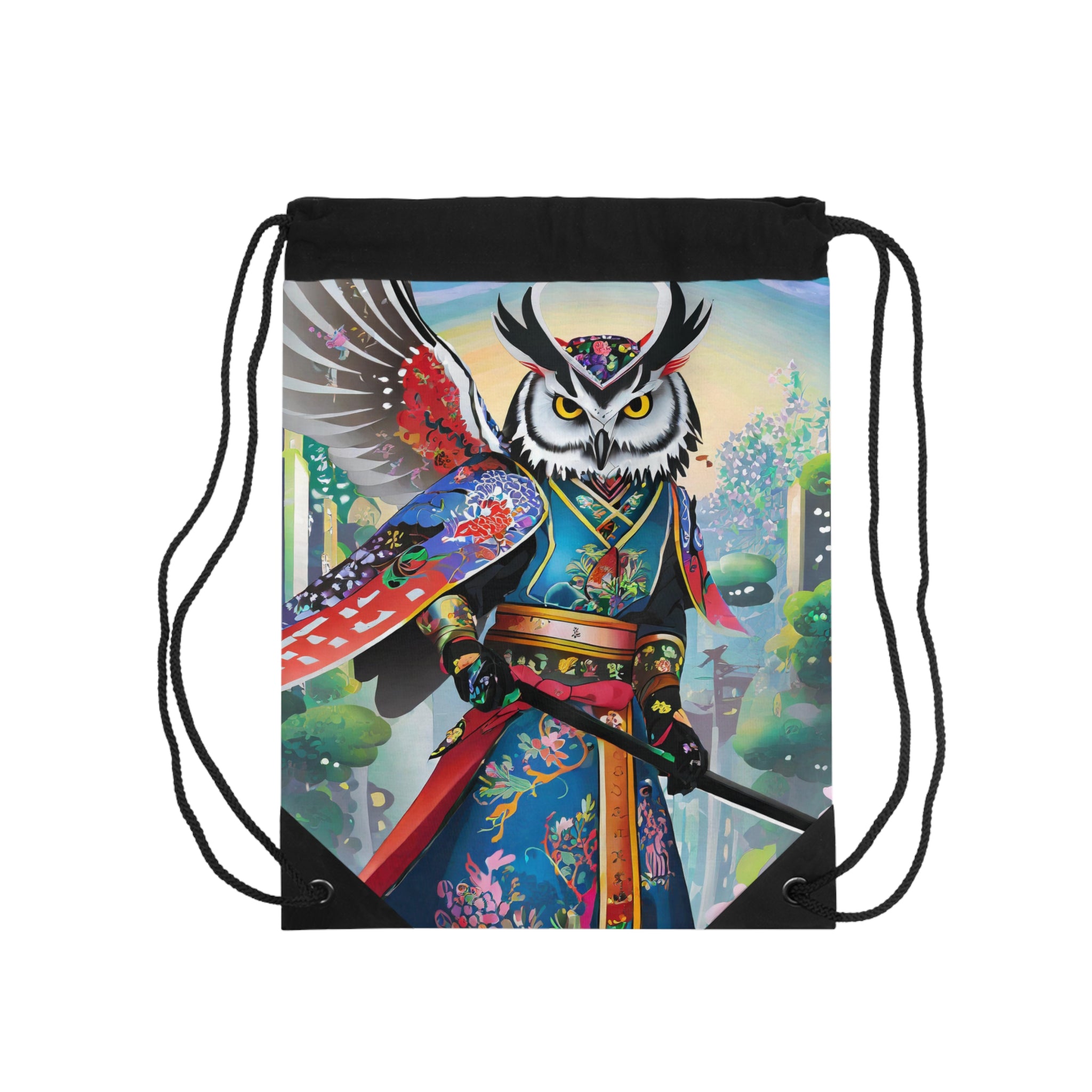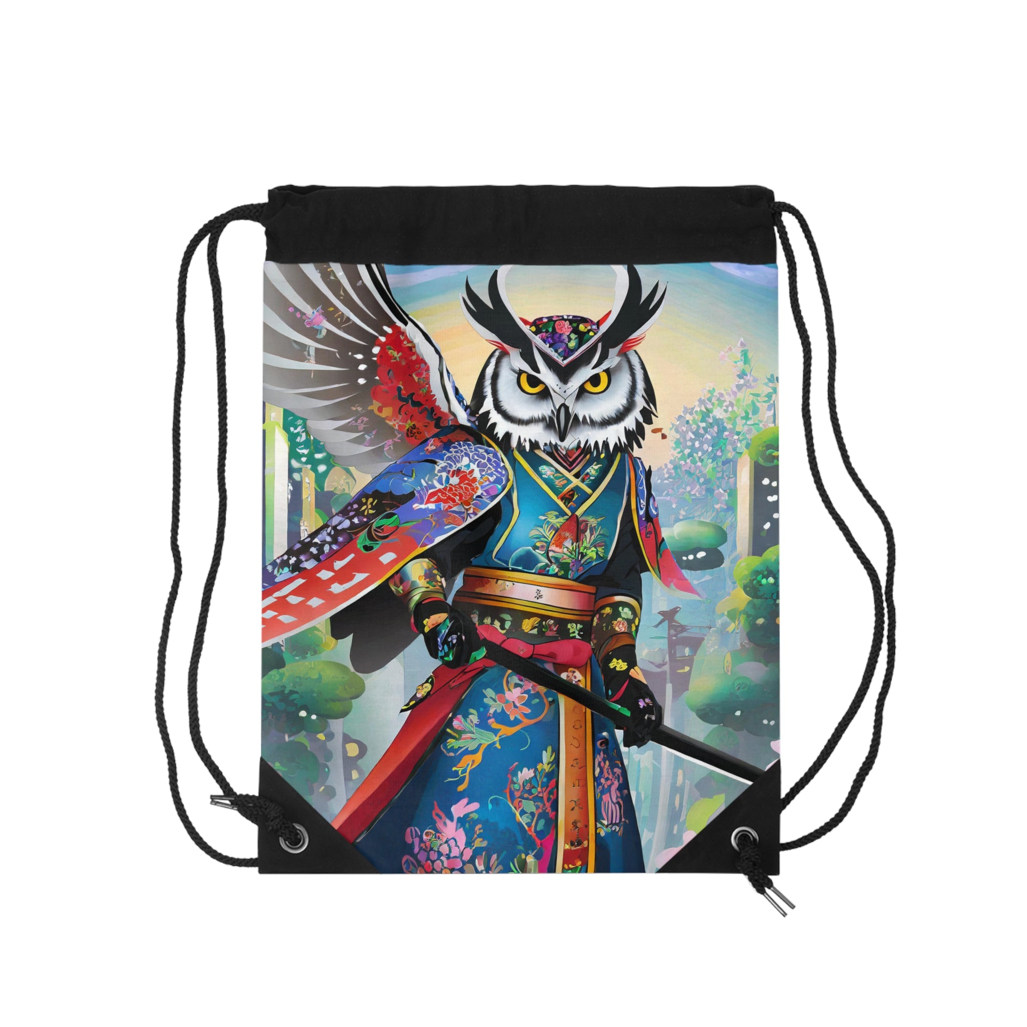 Artwork created, designed and digitally remastered by Sarasvati Designs. Cyberpunk Samurai Owl with a cybernetic arm.