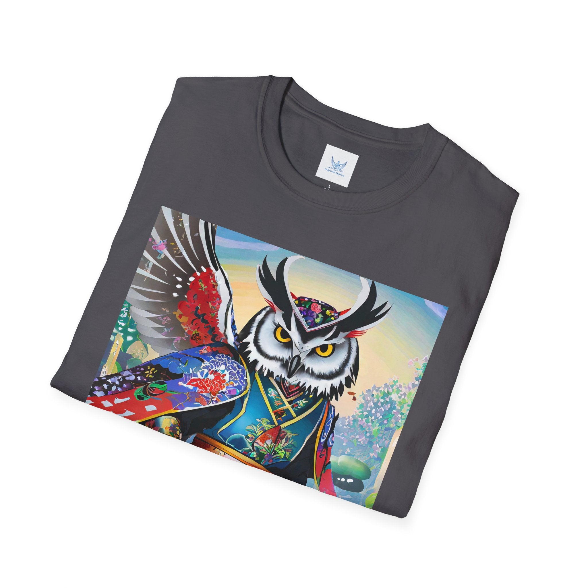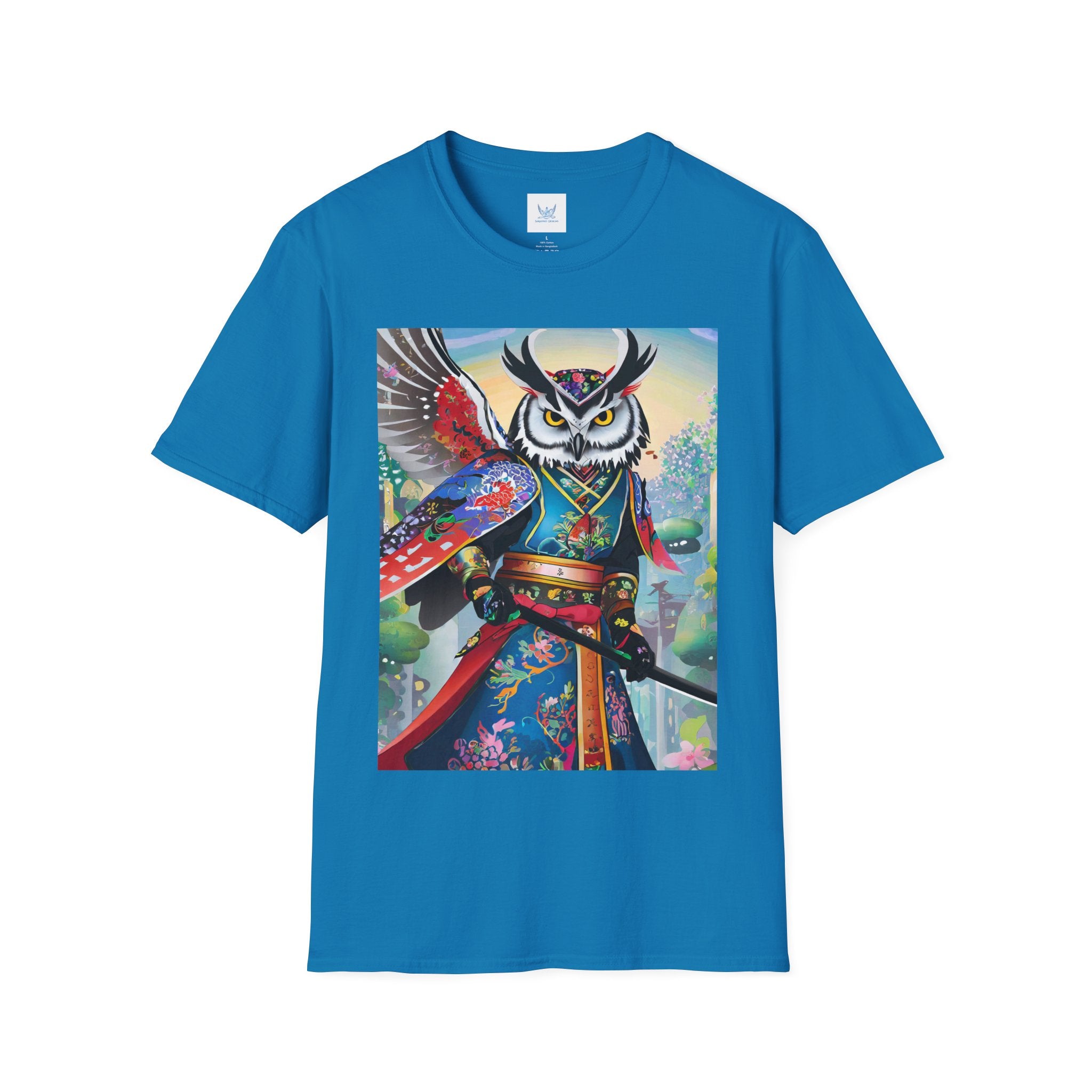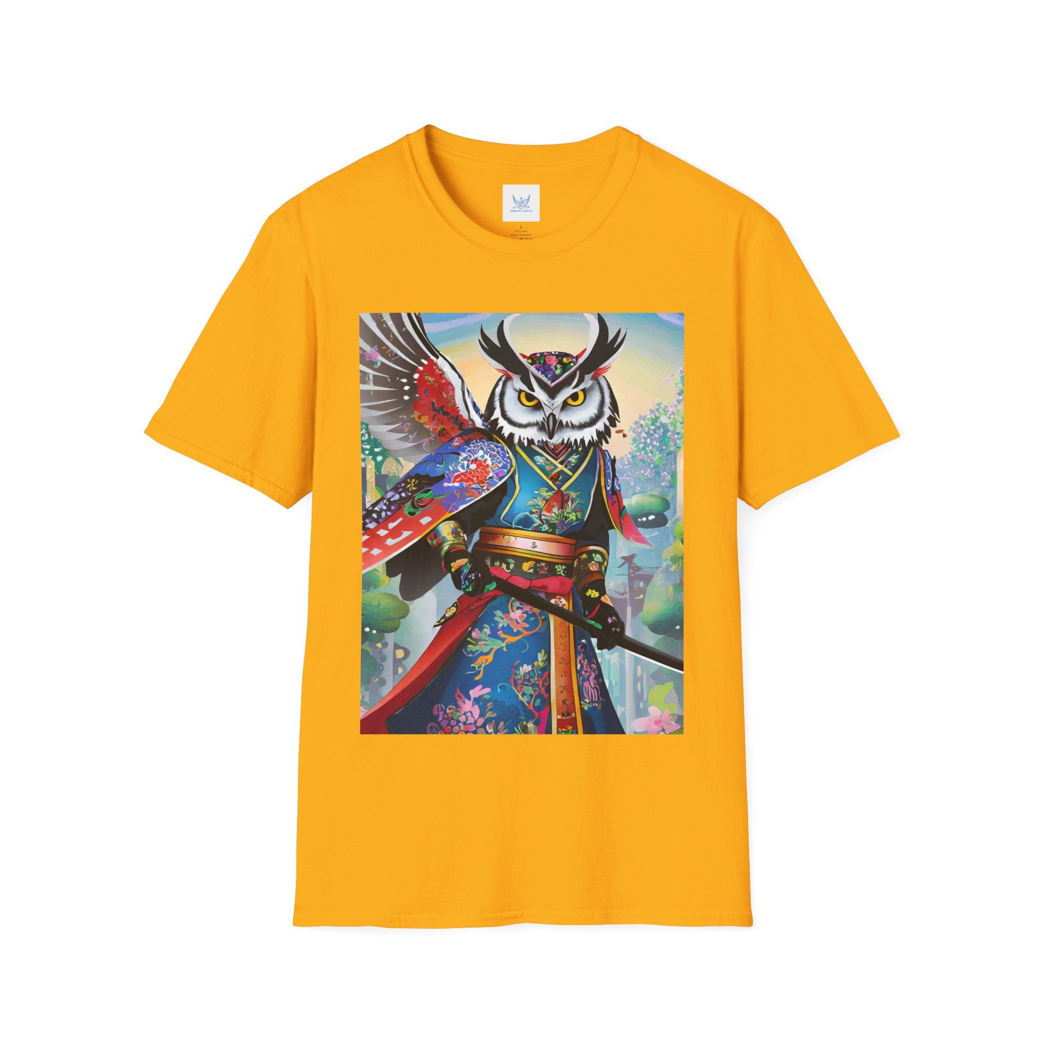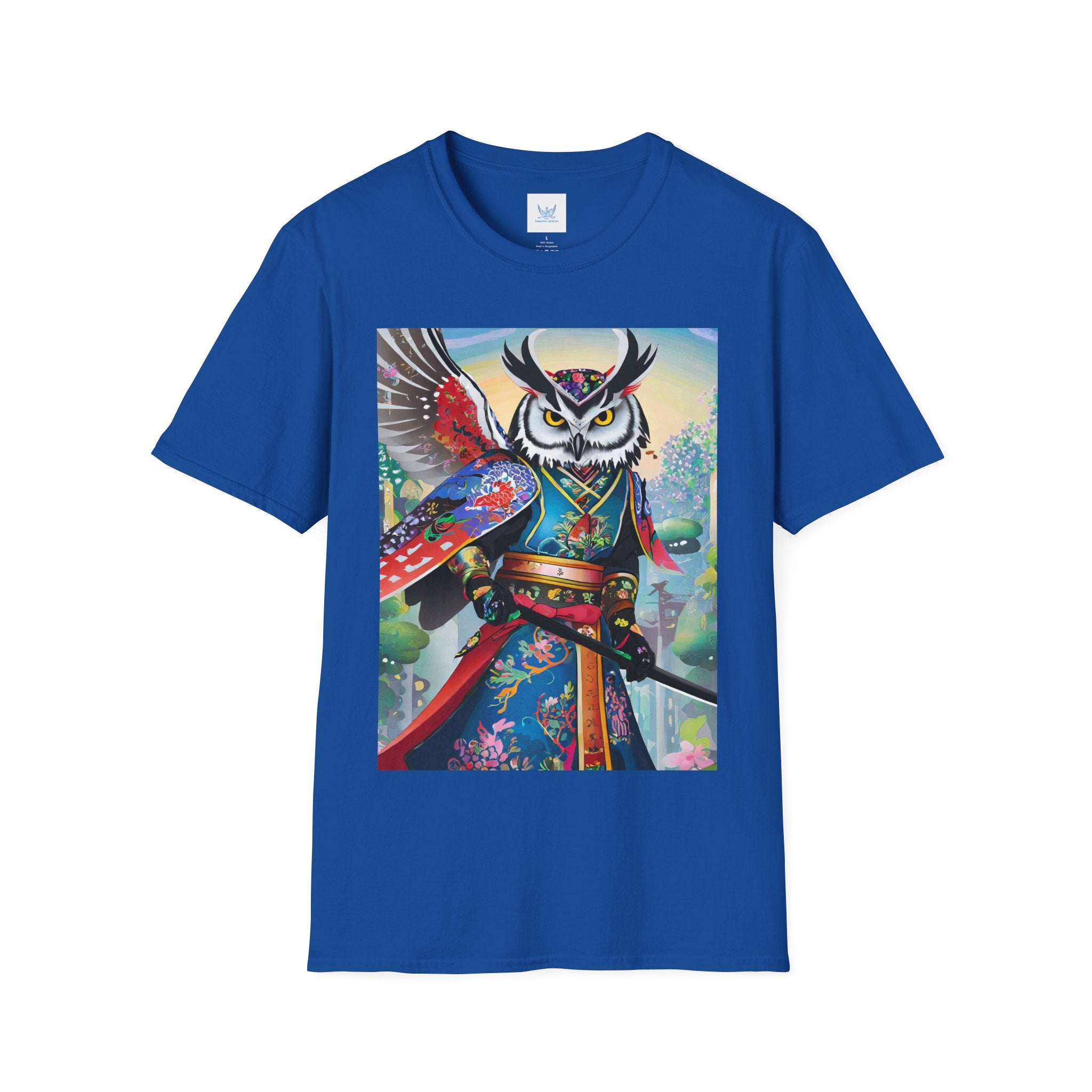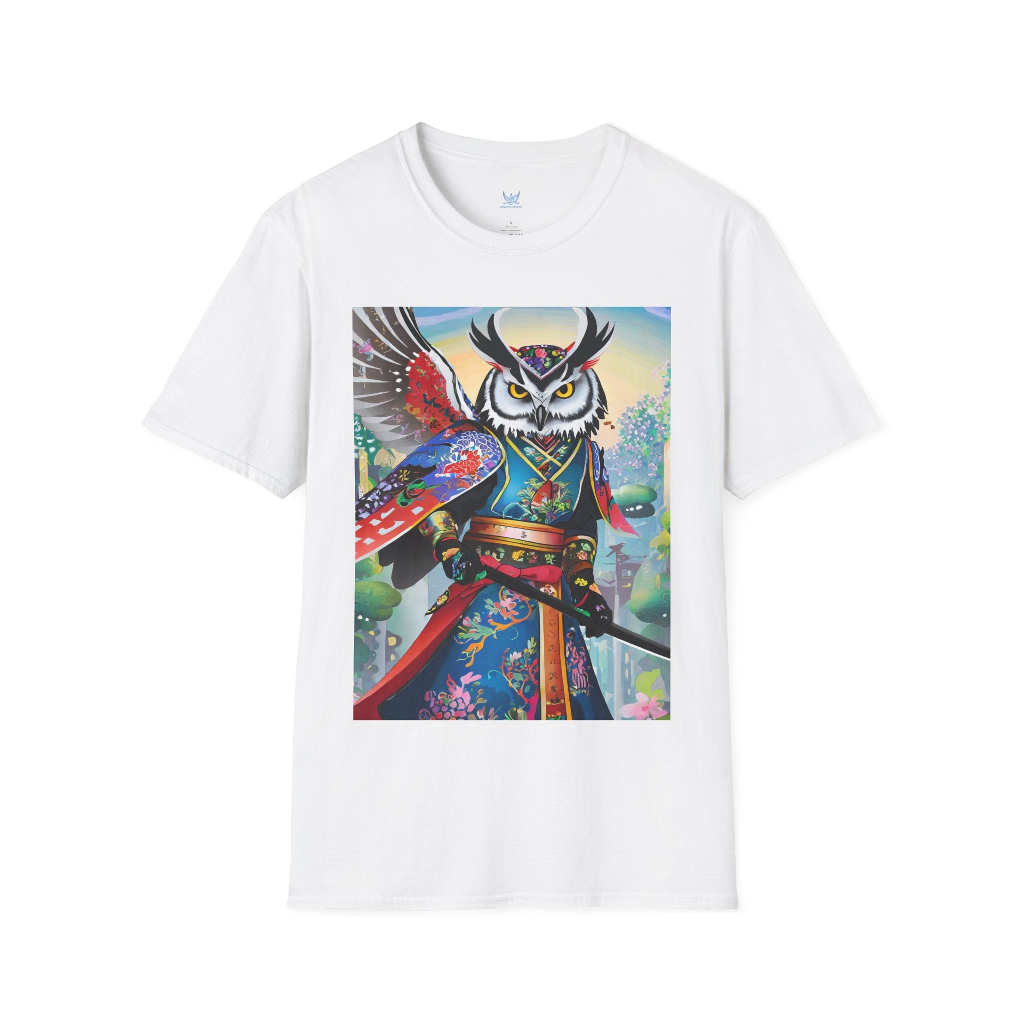 Cyberpunk Samurai Owl Softstyle T-Shirt unites cutting-edge design with ancient symbolism in a striking wearable art piece. Crafted from the Gildan Softstyle® 64000, this shirt offers unmatched comfort and quality. Solid colors are 100% cotton, while heathers and sport grey include durable polyester blends. With reinforced shoulders, no side seams, and a ribbed-knit collar that resists curling, it’s built for everyday style and creative expression.