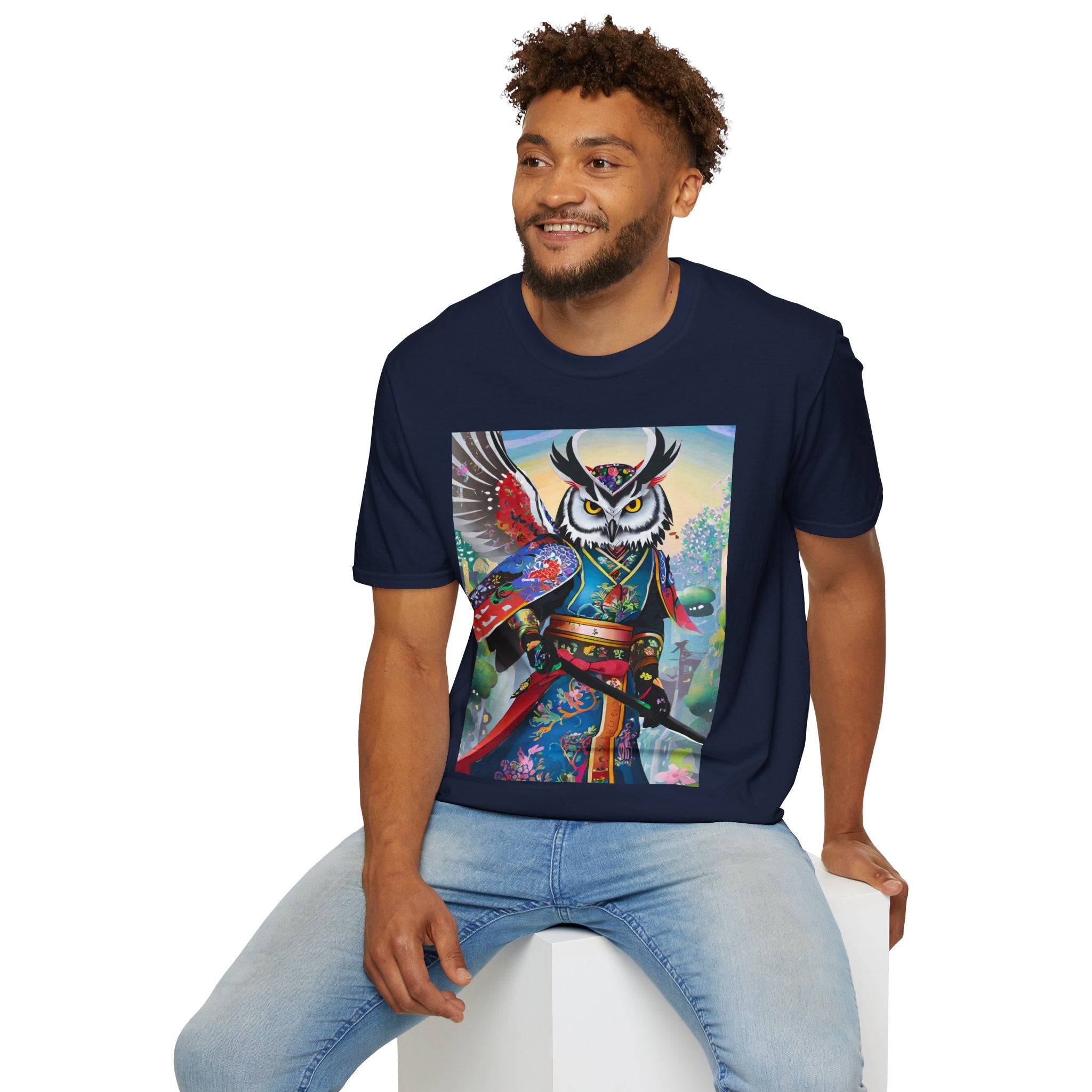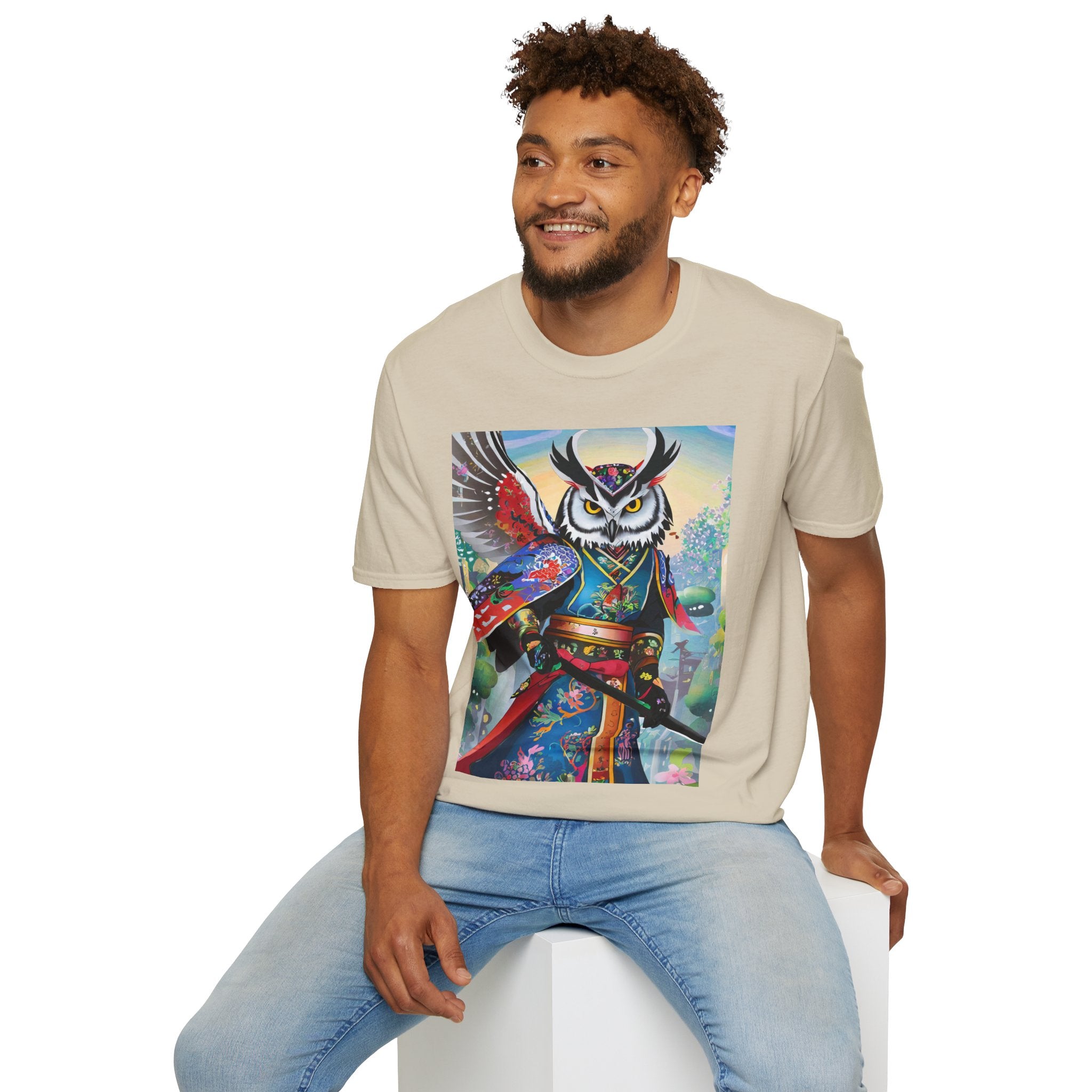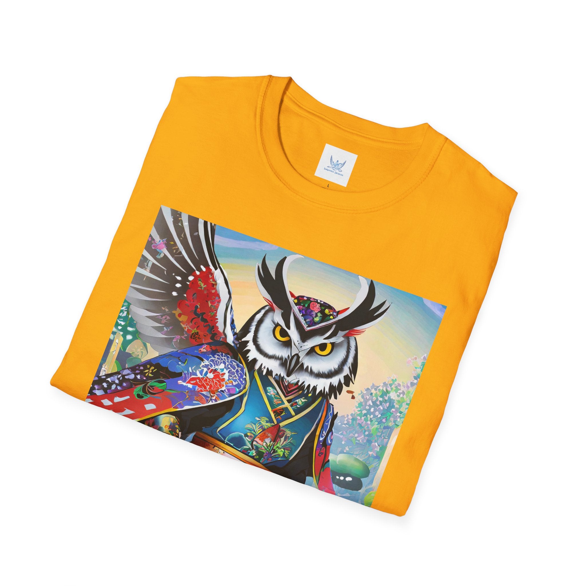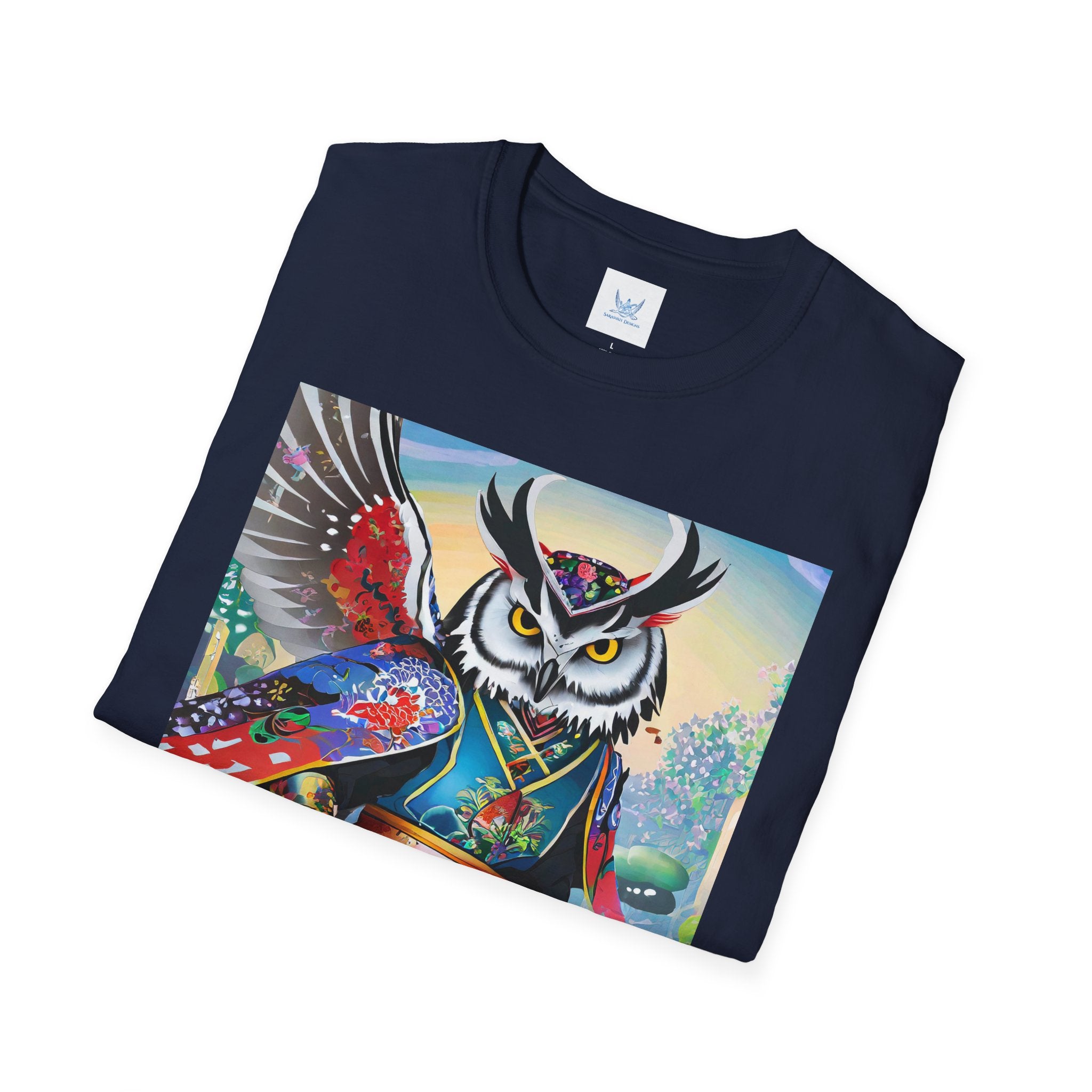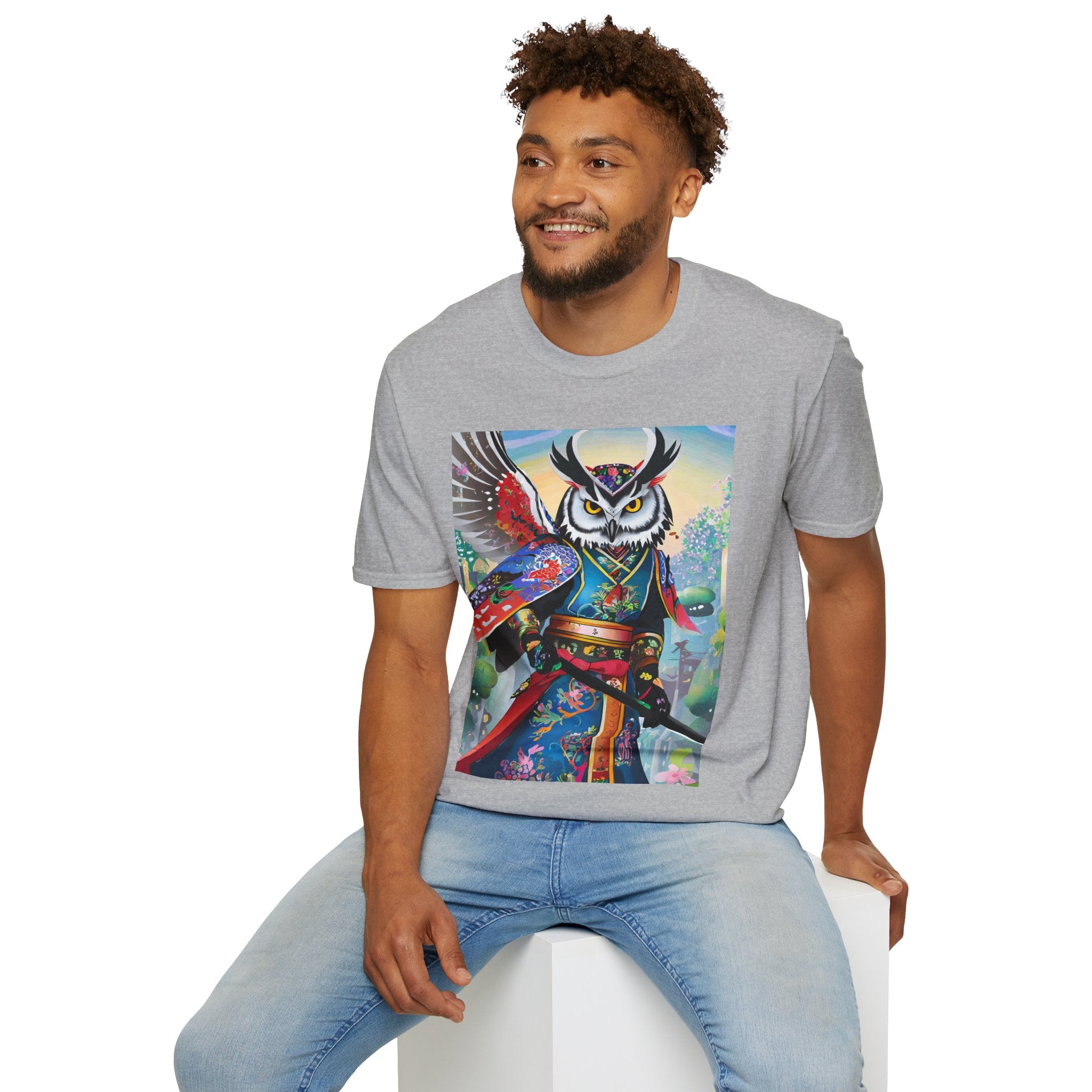 Cyberpunk Samurai Owl Softstyle T-Shirt unites cutting-edge design with ancient symbolism in a striking wearable art piece. Crafted from the Gildan Softstyle® 64000, this shirt offers unmatched comfort and quality. Solid colors are 100% cotton, while heathers and sport grey include durable polyester blends. With reinforced shoulders, no side seams, and a ribbed-knit collar that resists curling, it’s built for everyday style and creative expression.