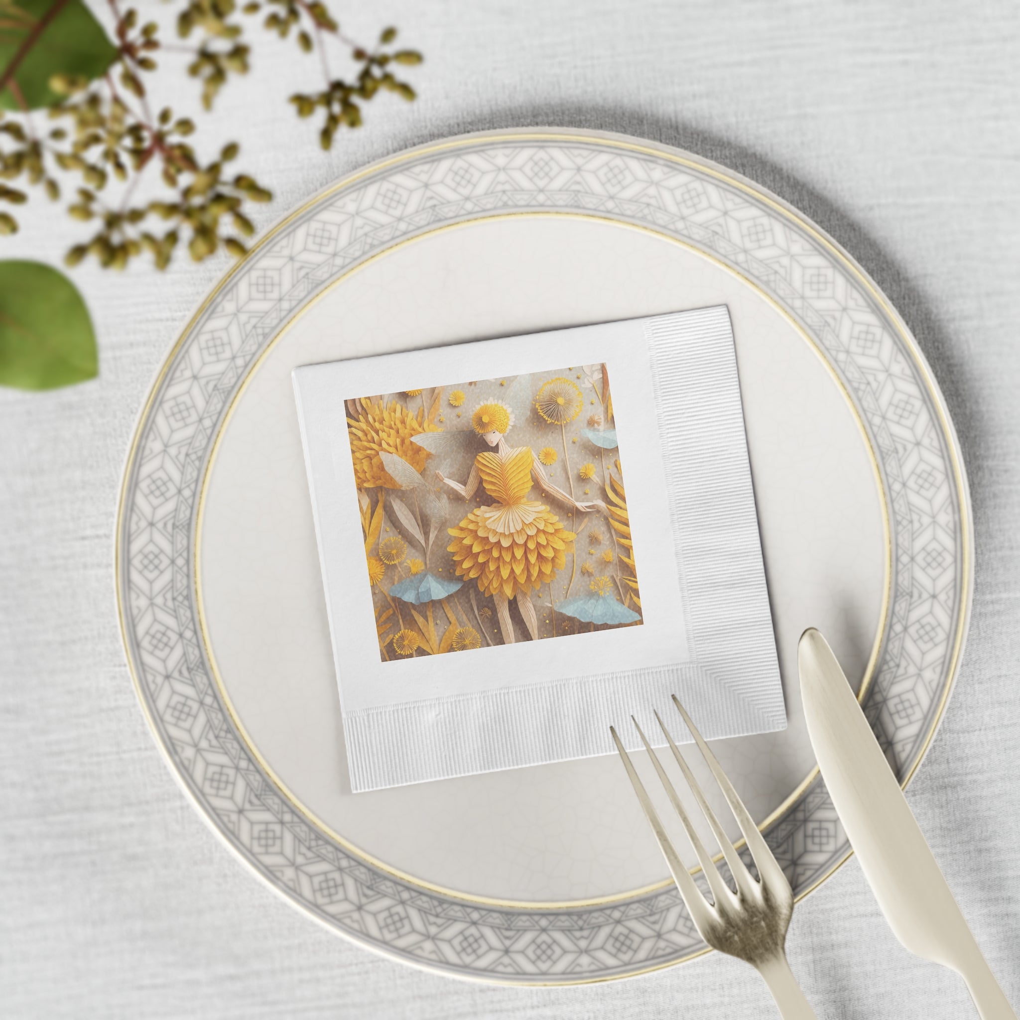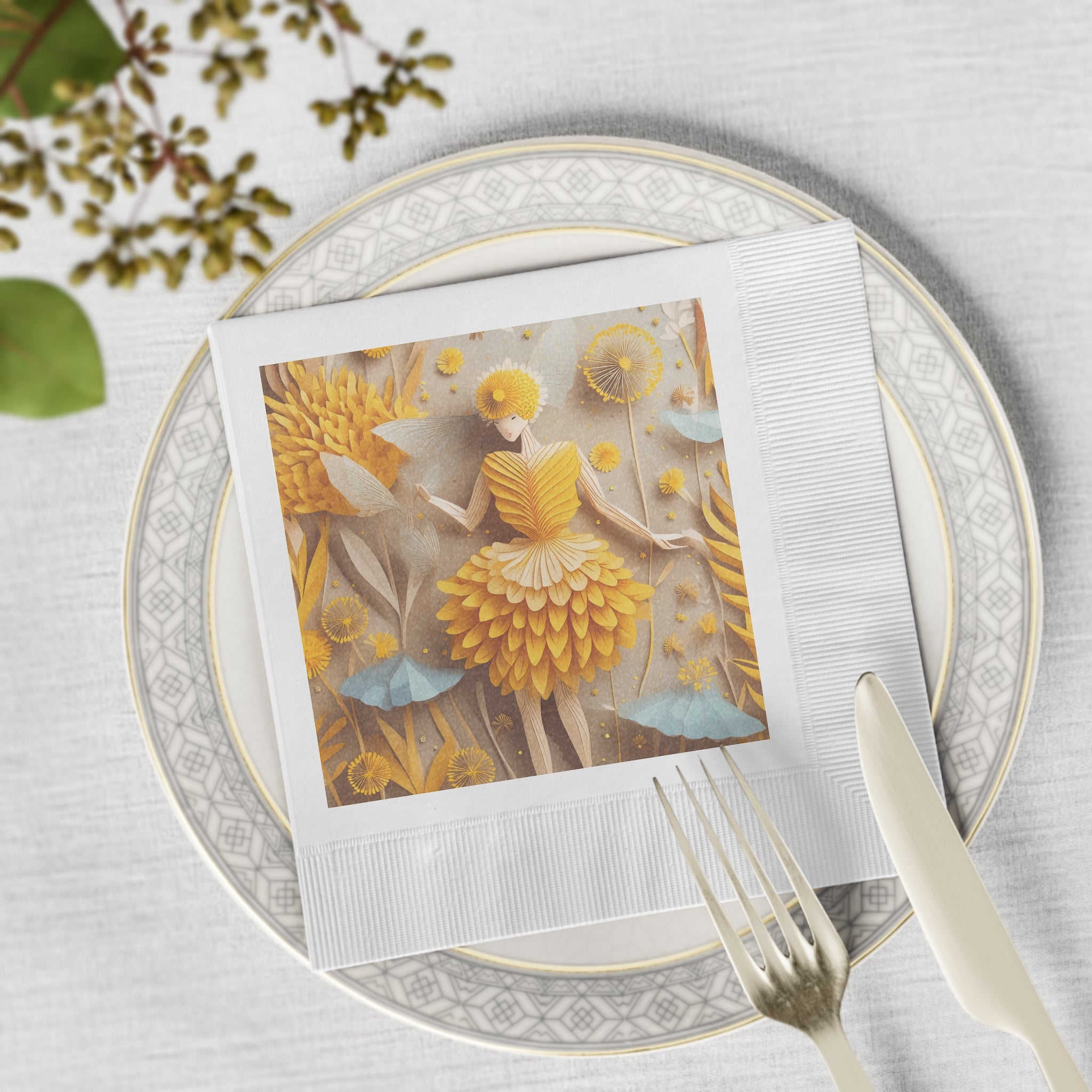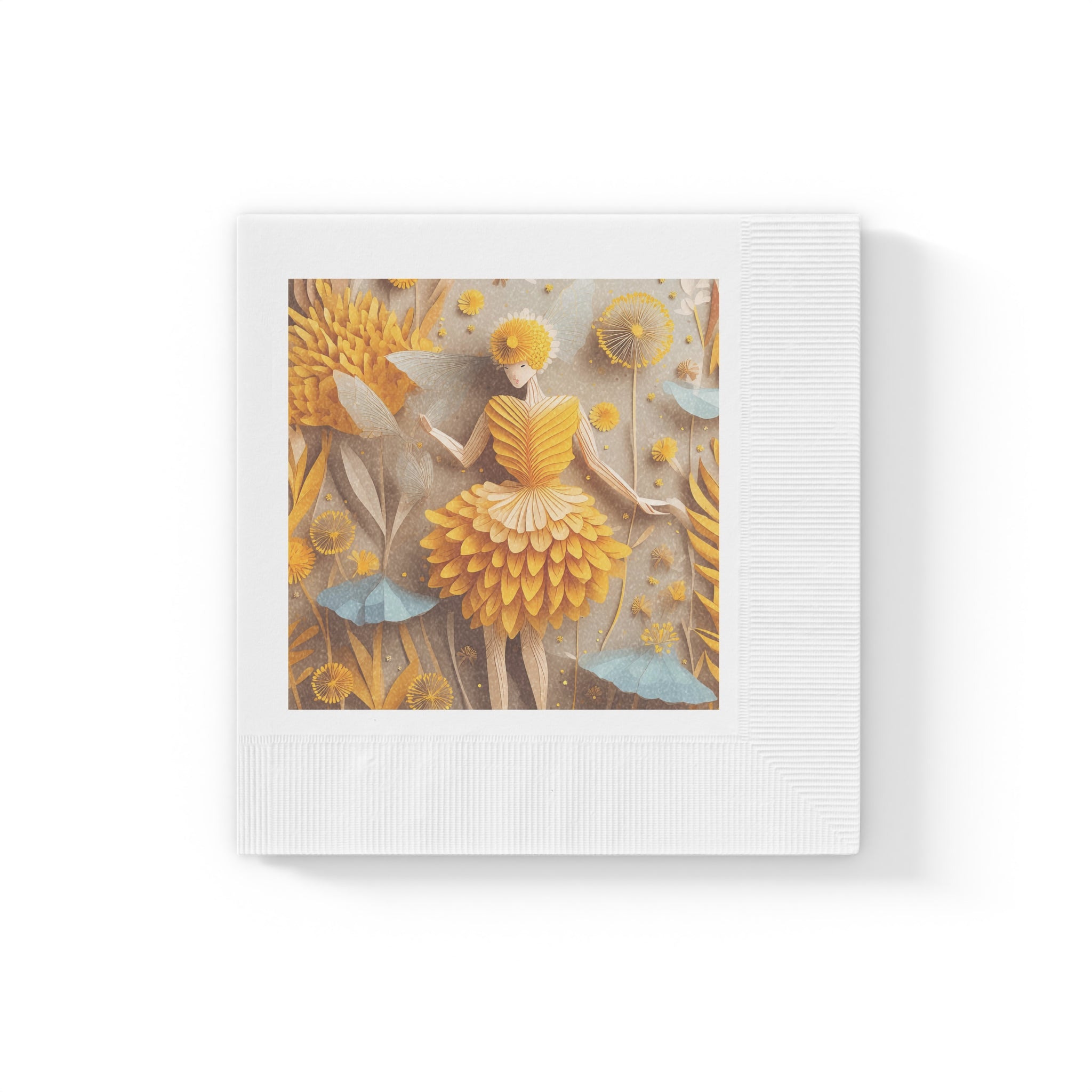 Dandelion Fairy White Coined Napkins